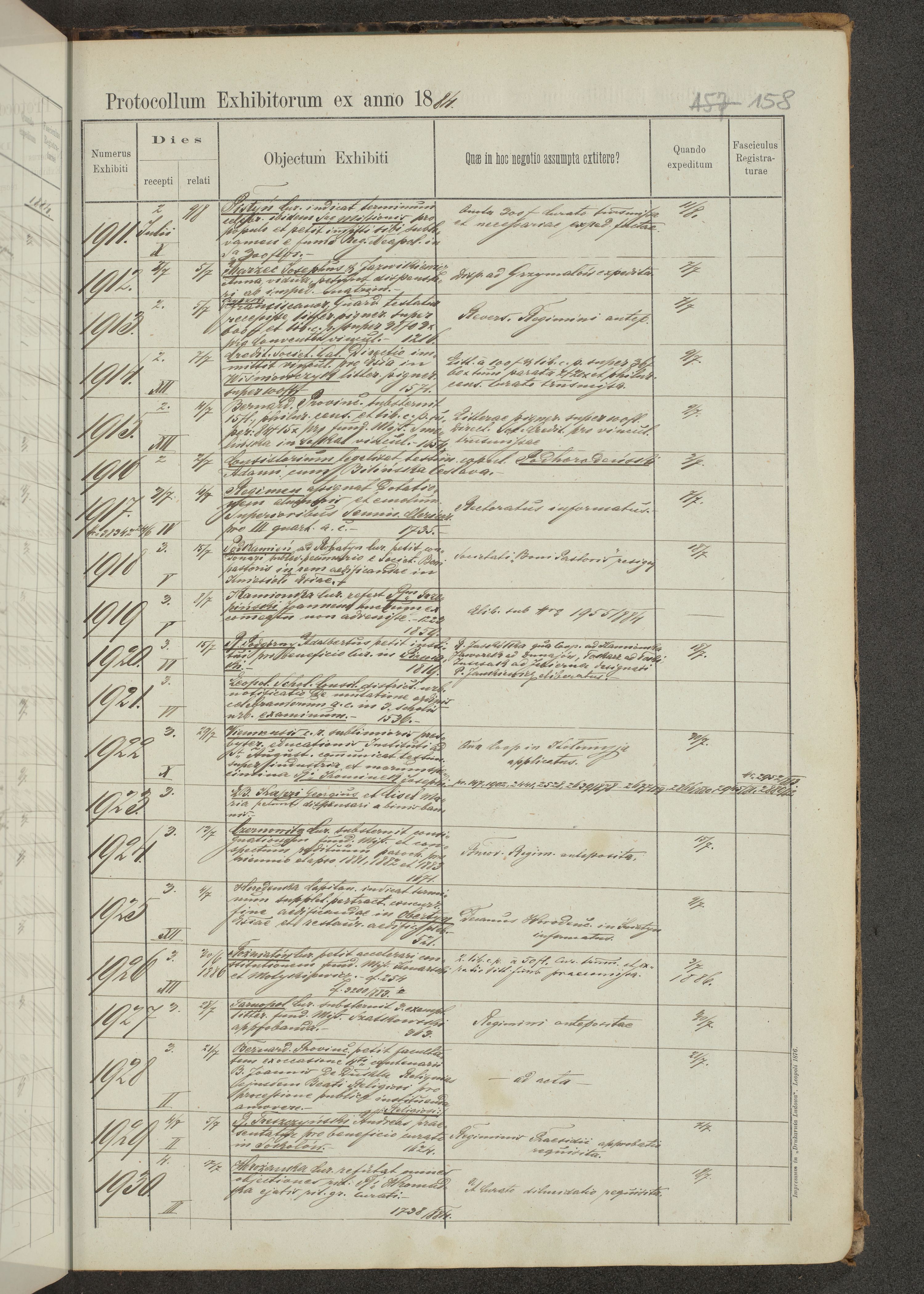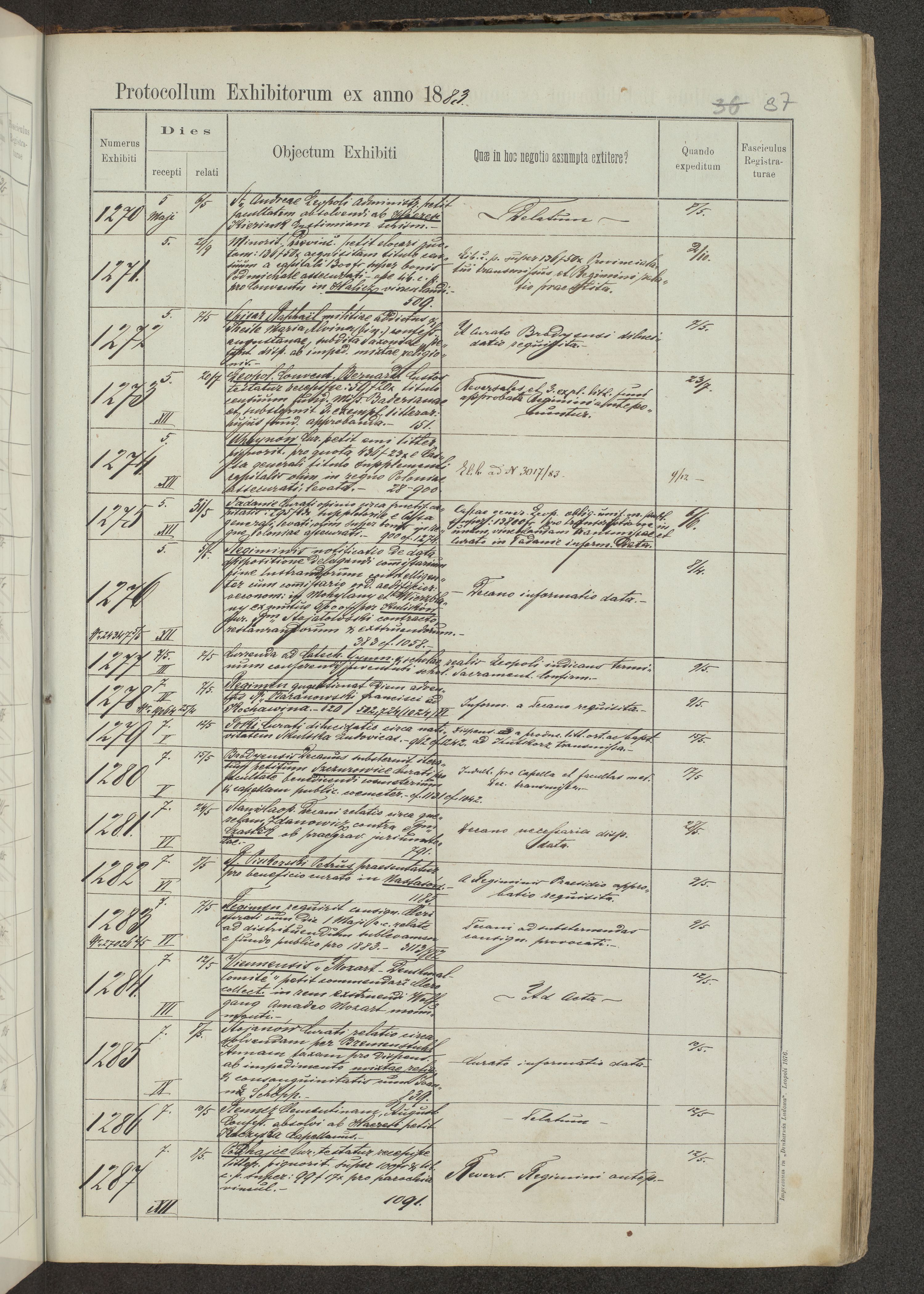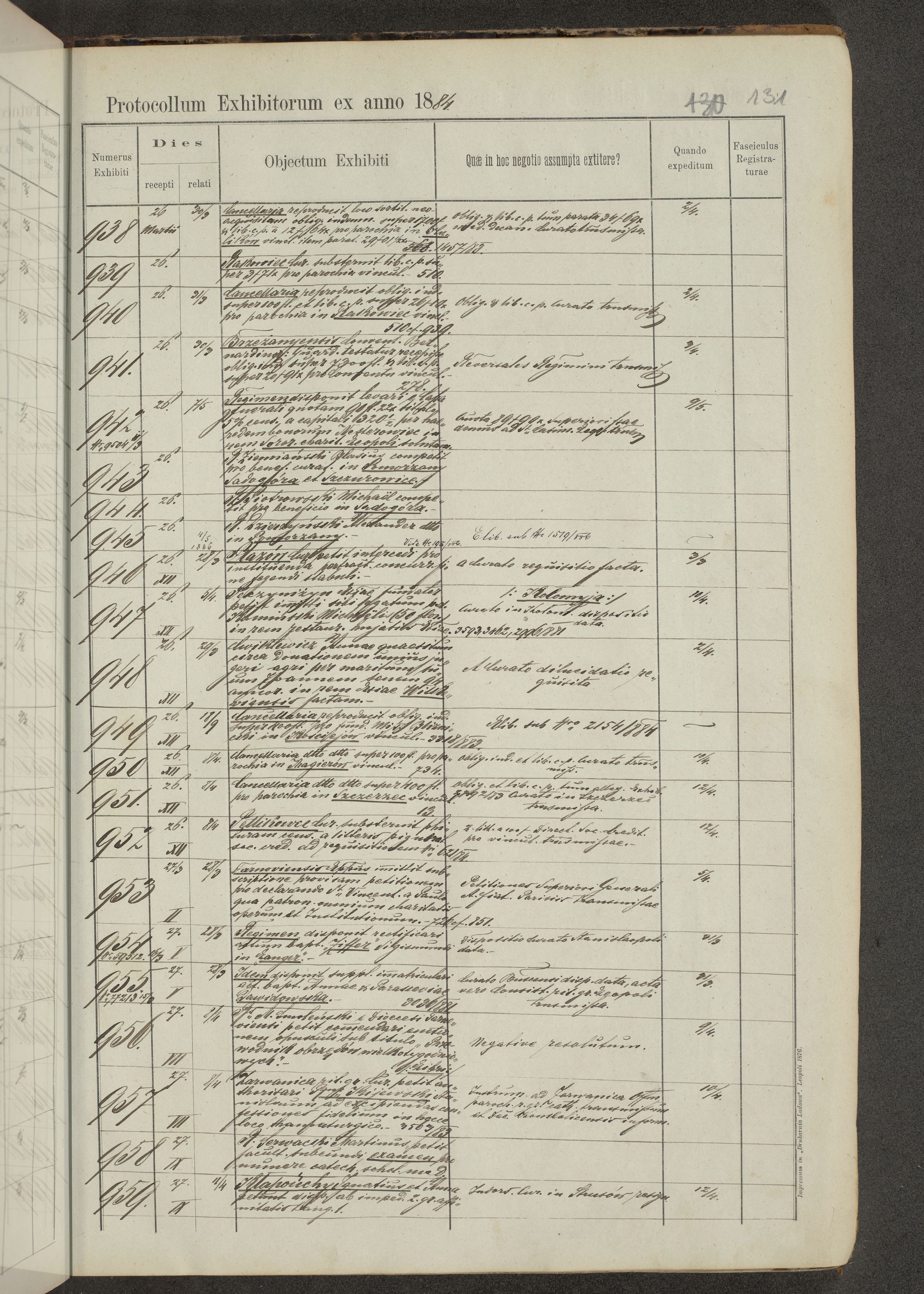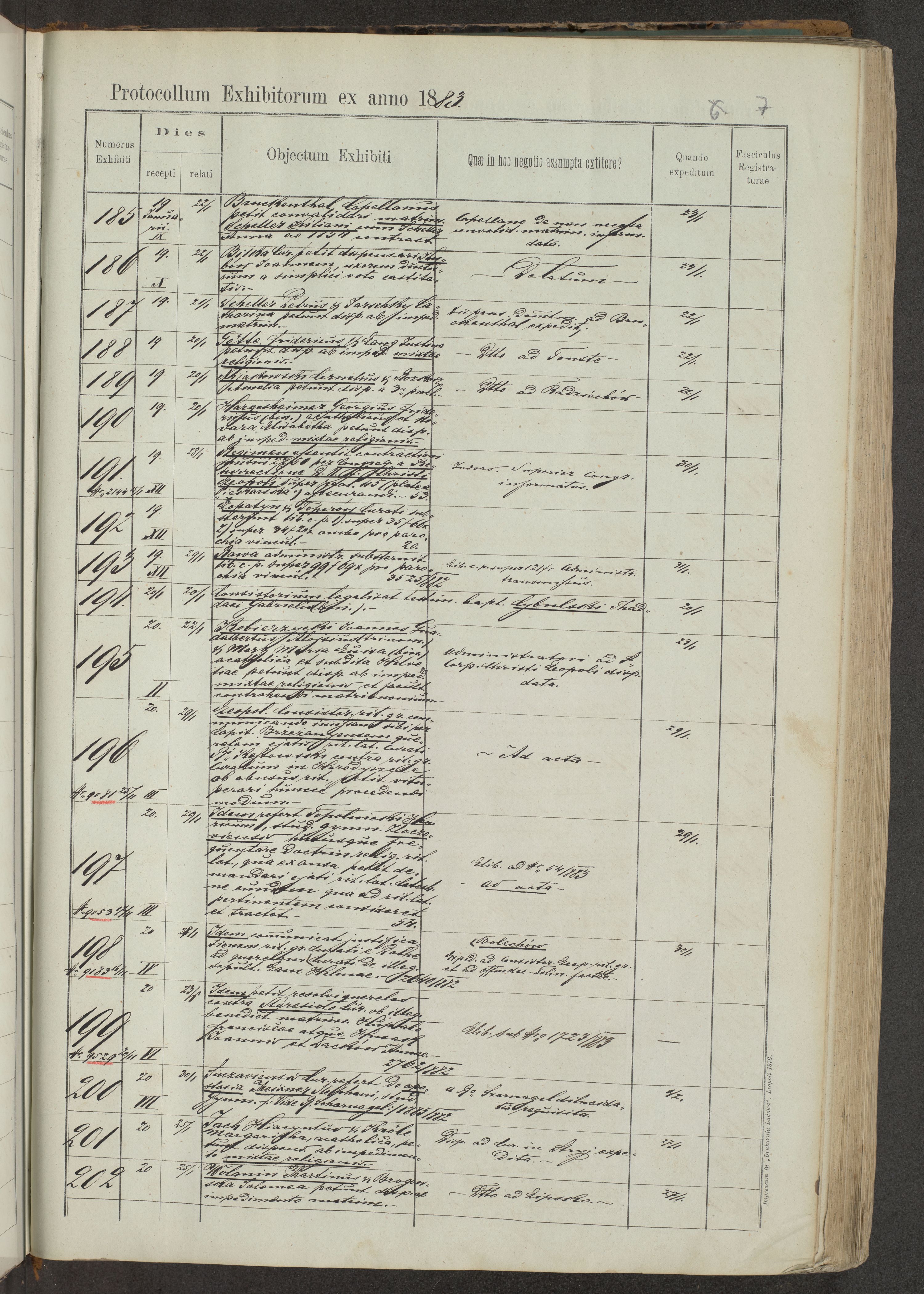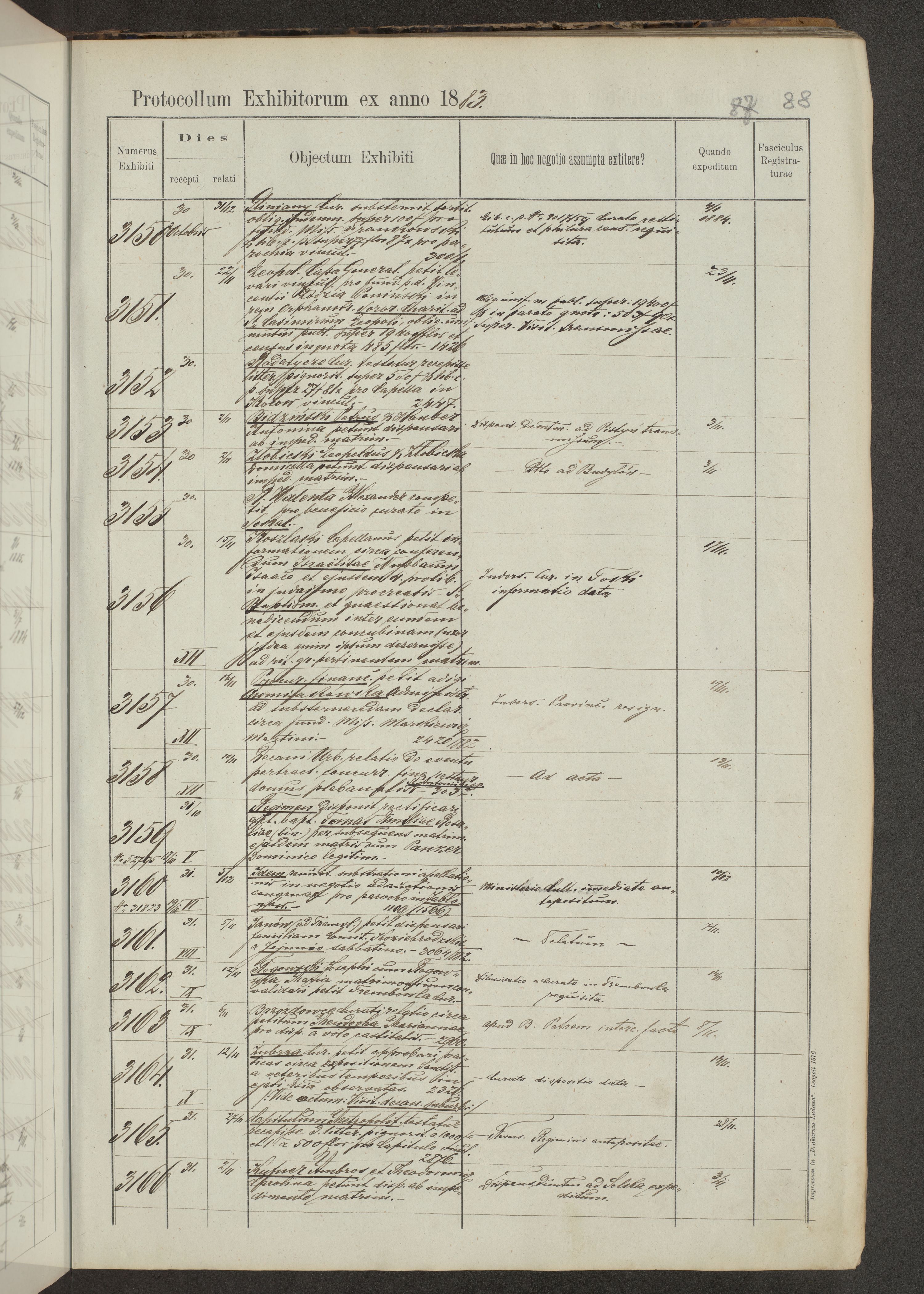 Protocollon exhibitorum in Ecclesiasticis ex anno 1883-1884