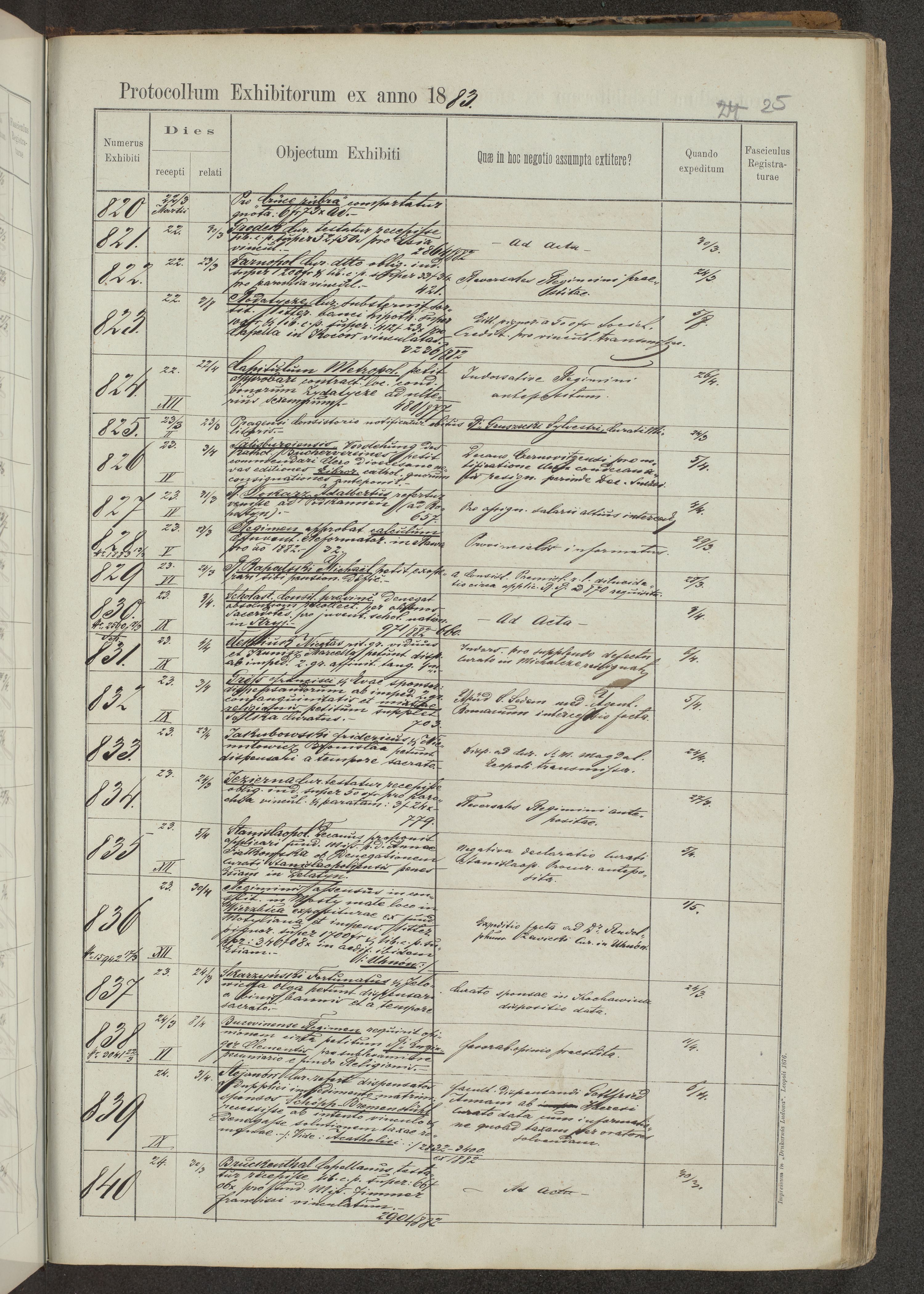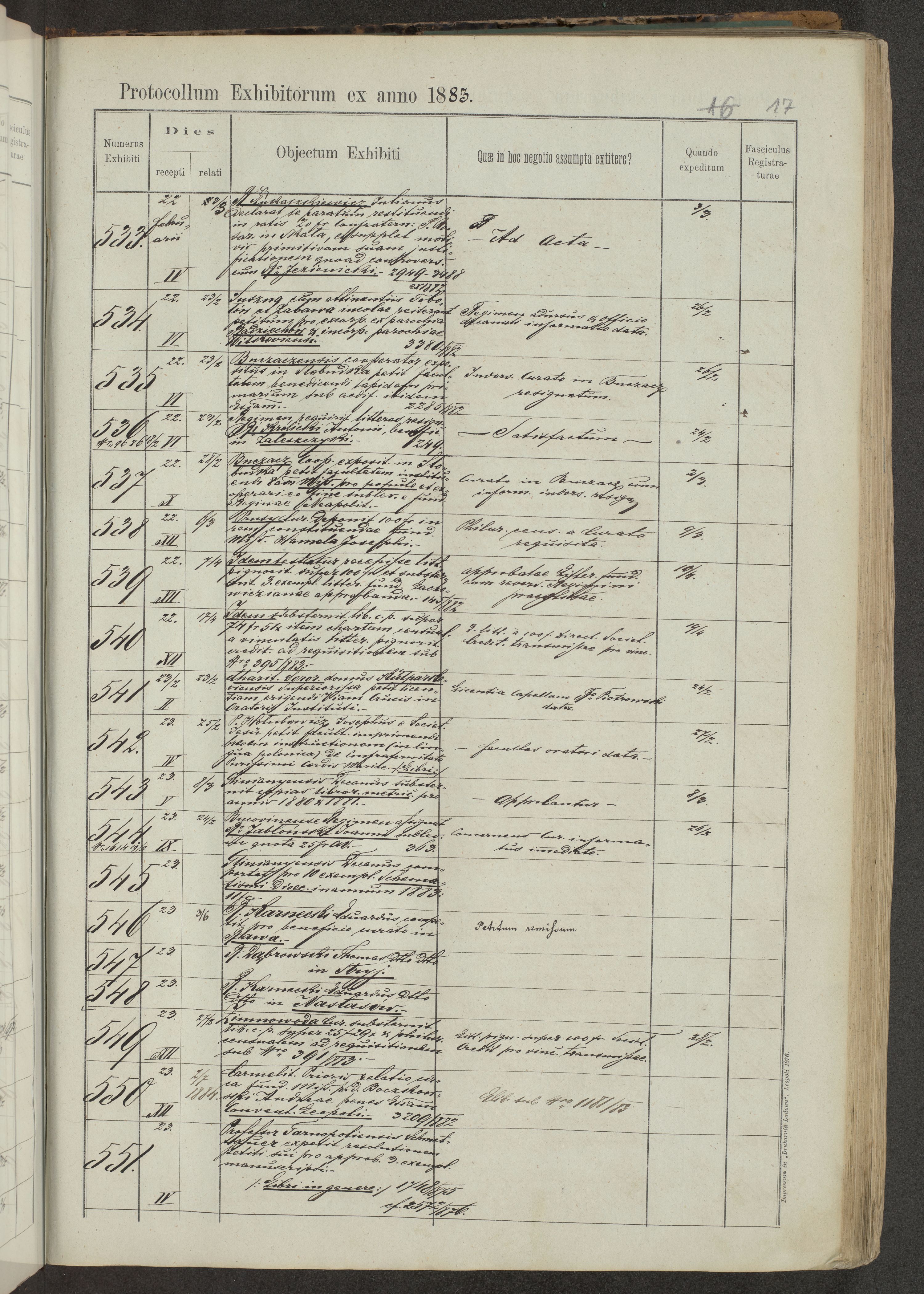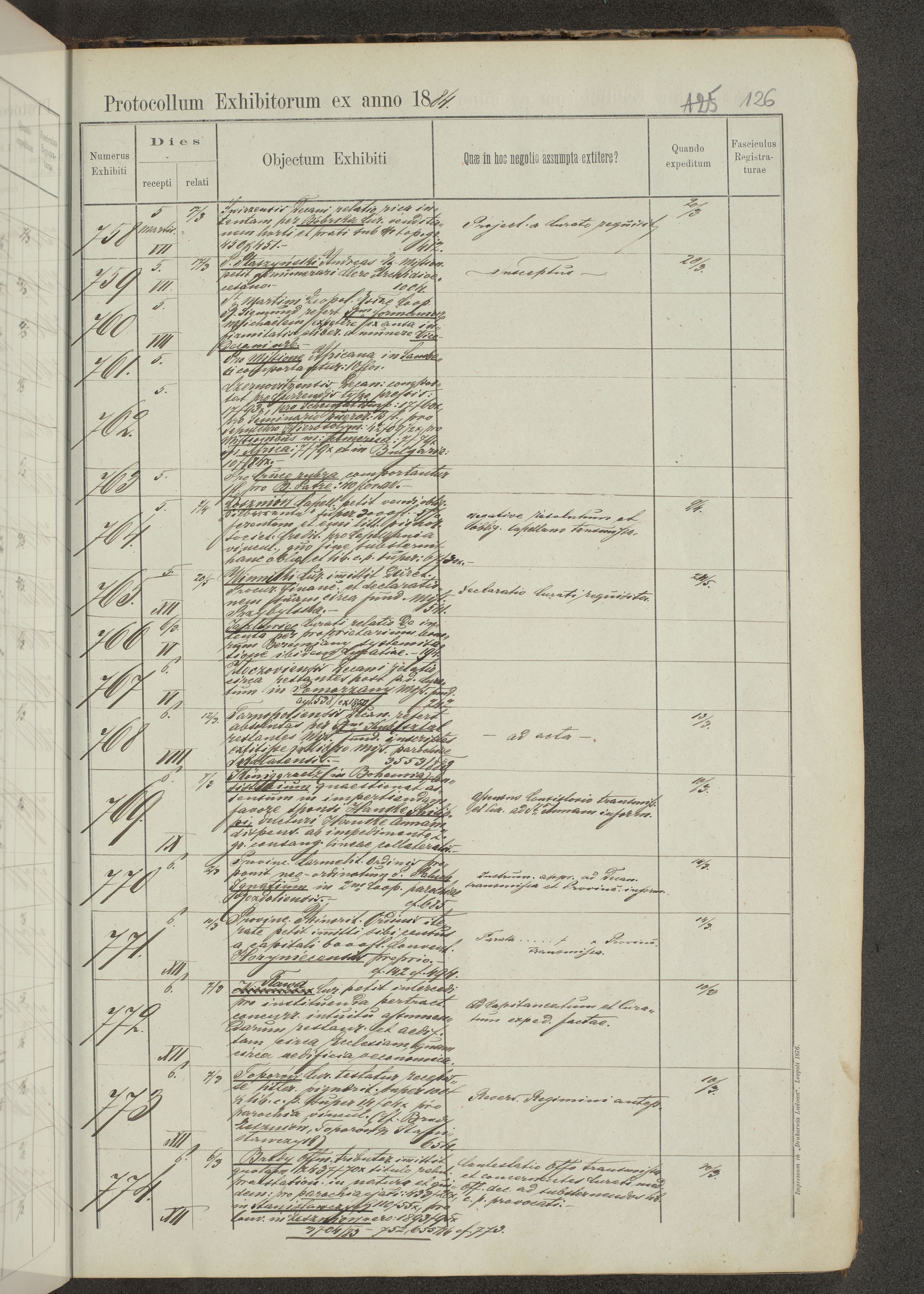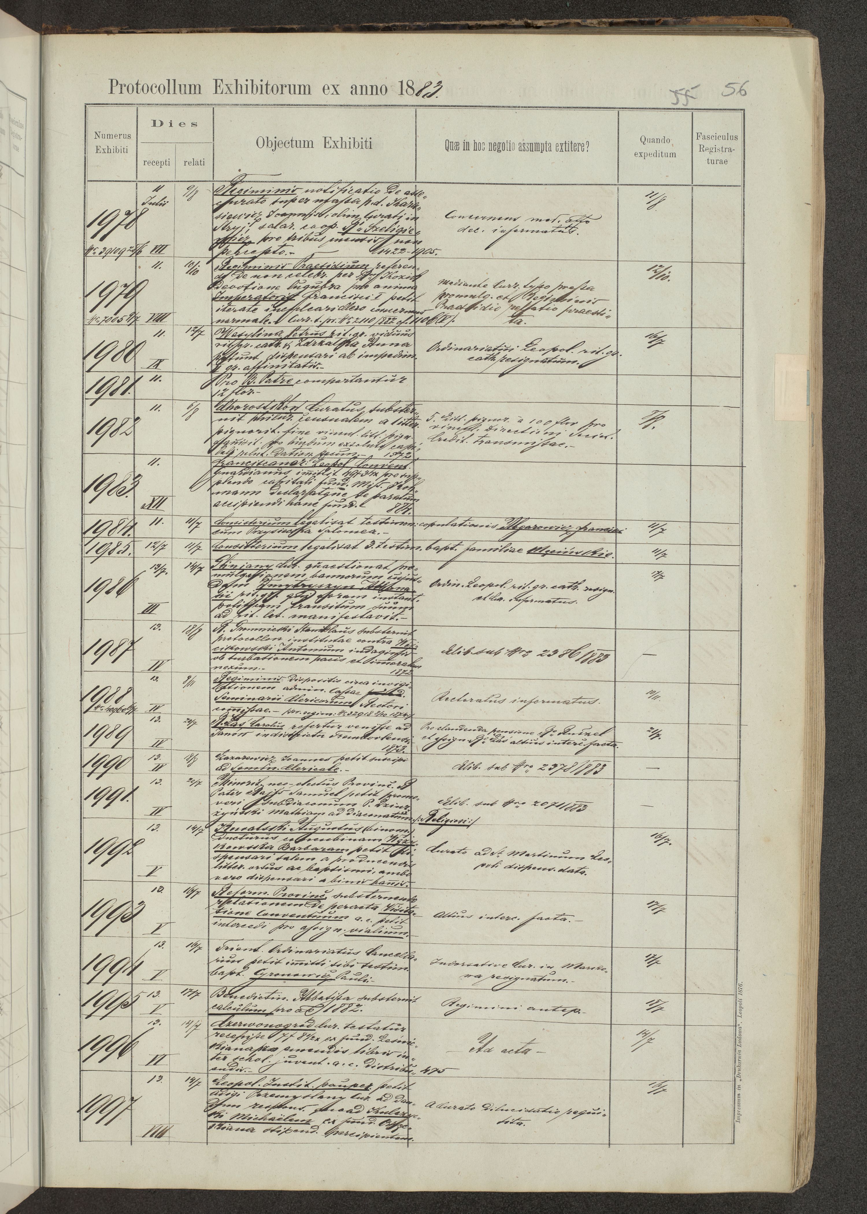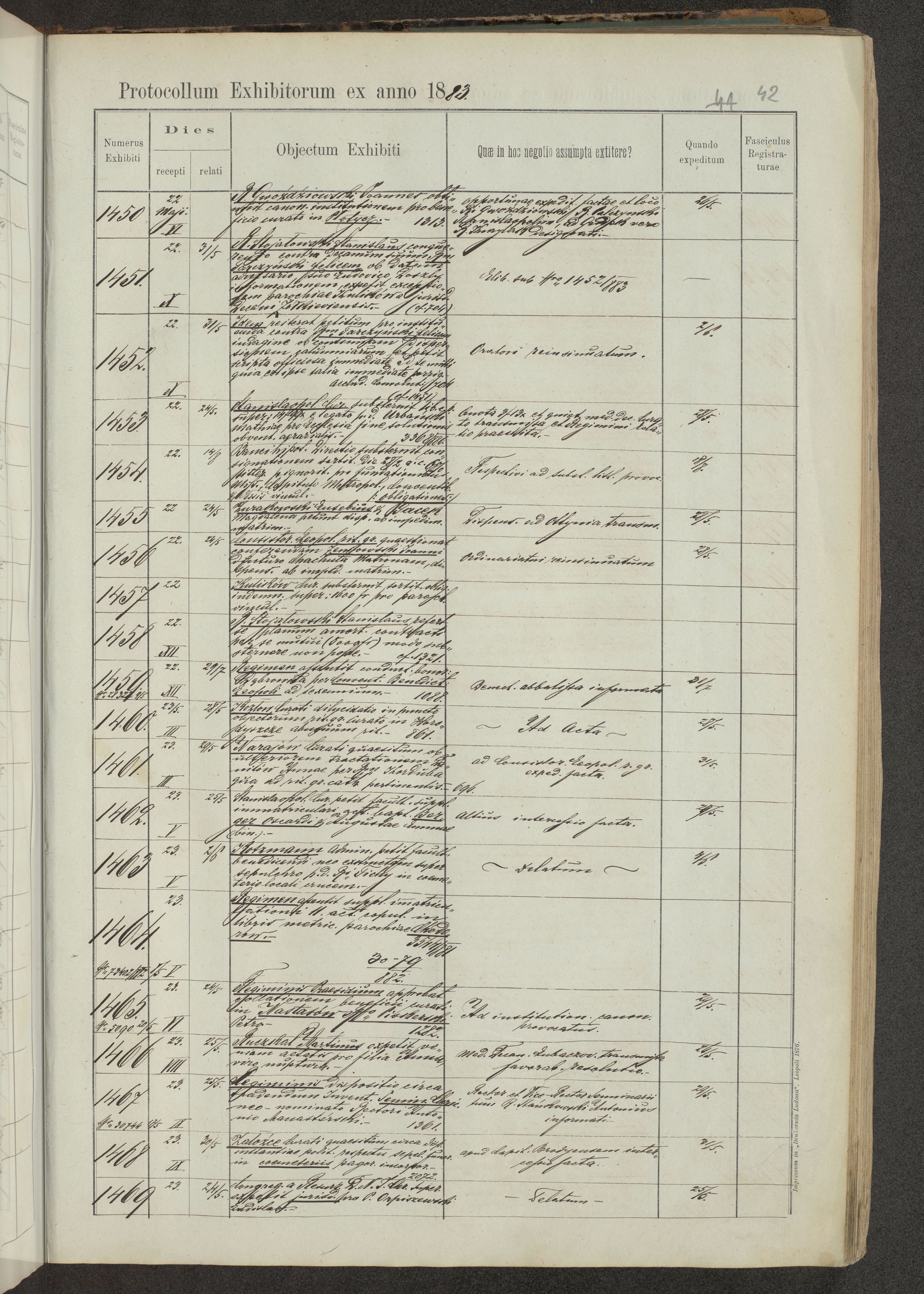 Protocollon exhibitorum in Ecclesiasticis ex anno 1883-1884