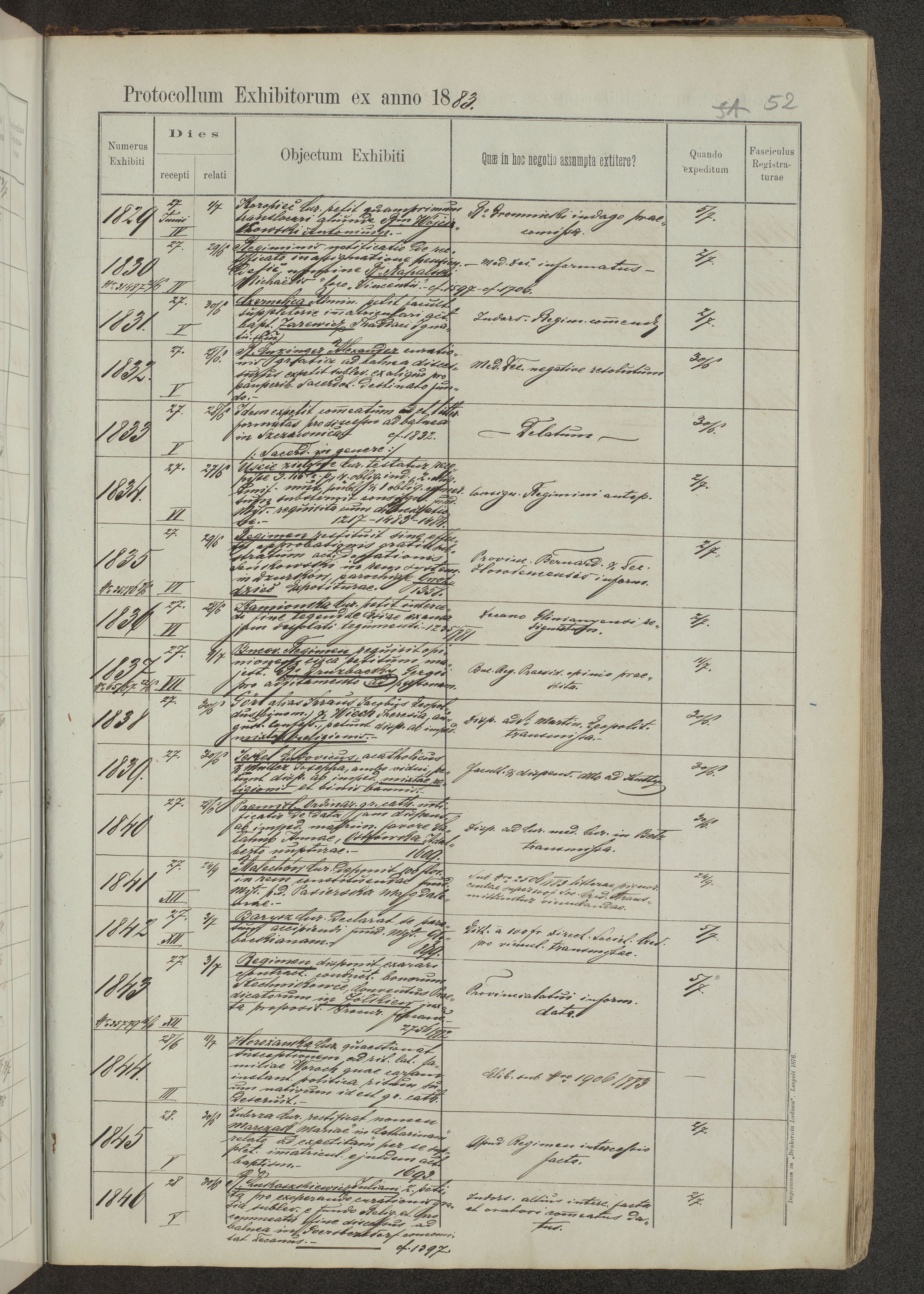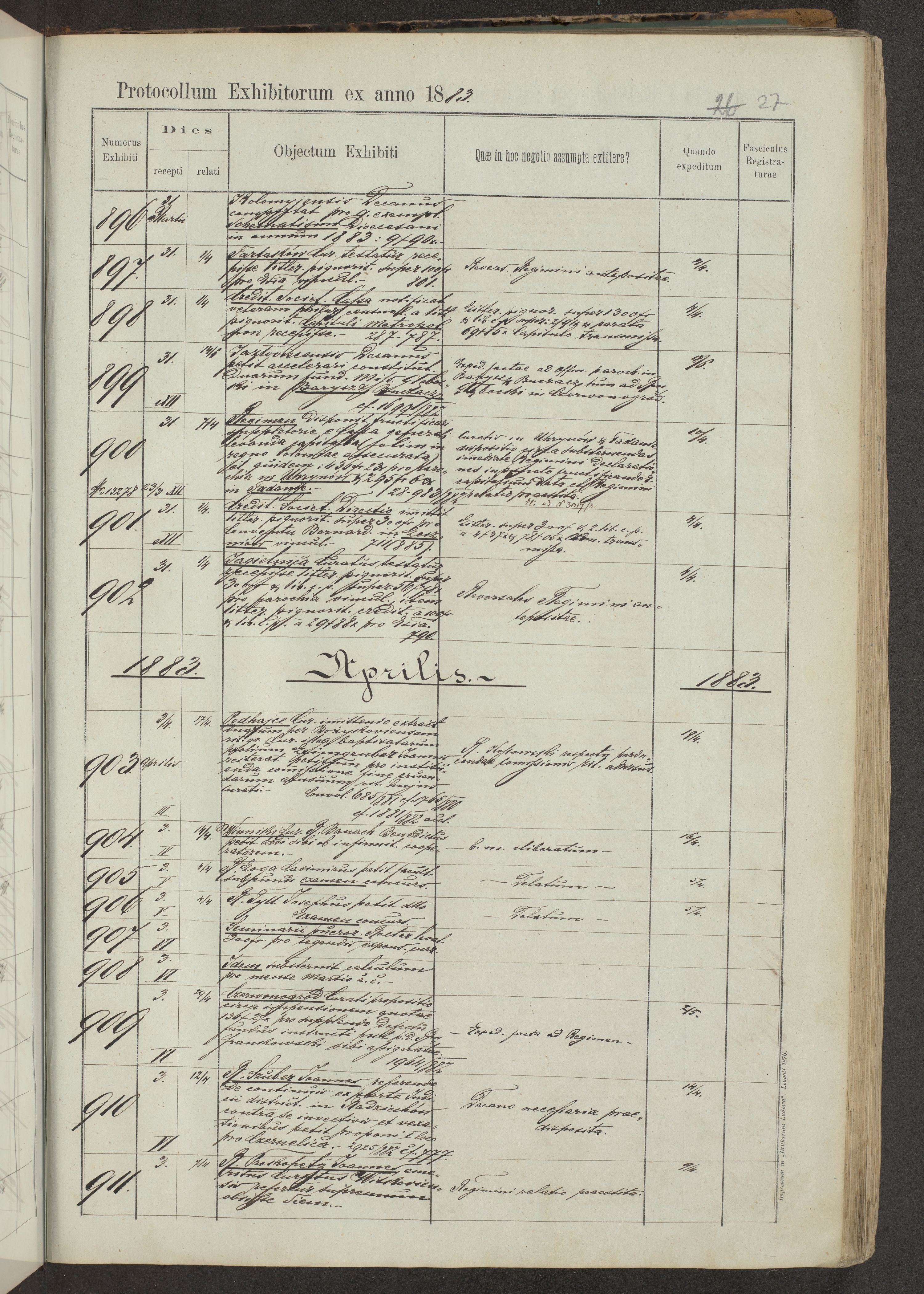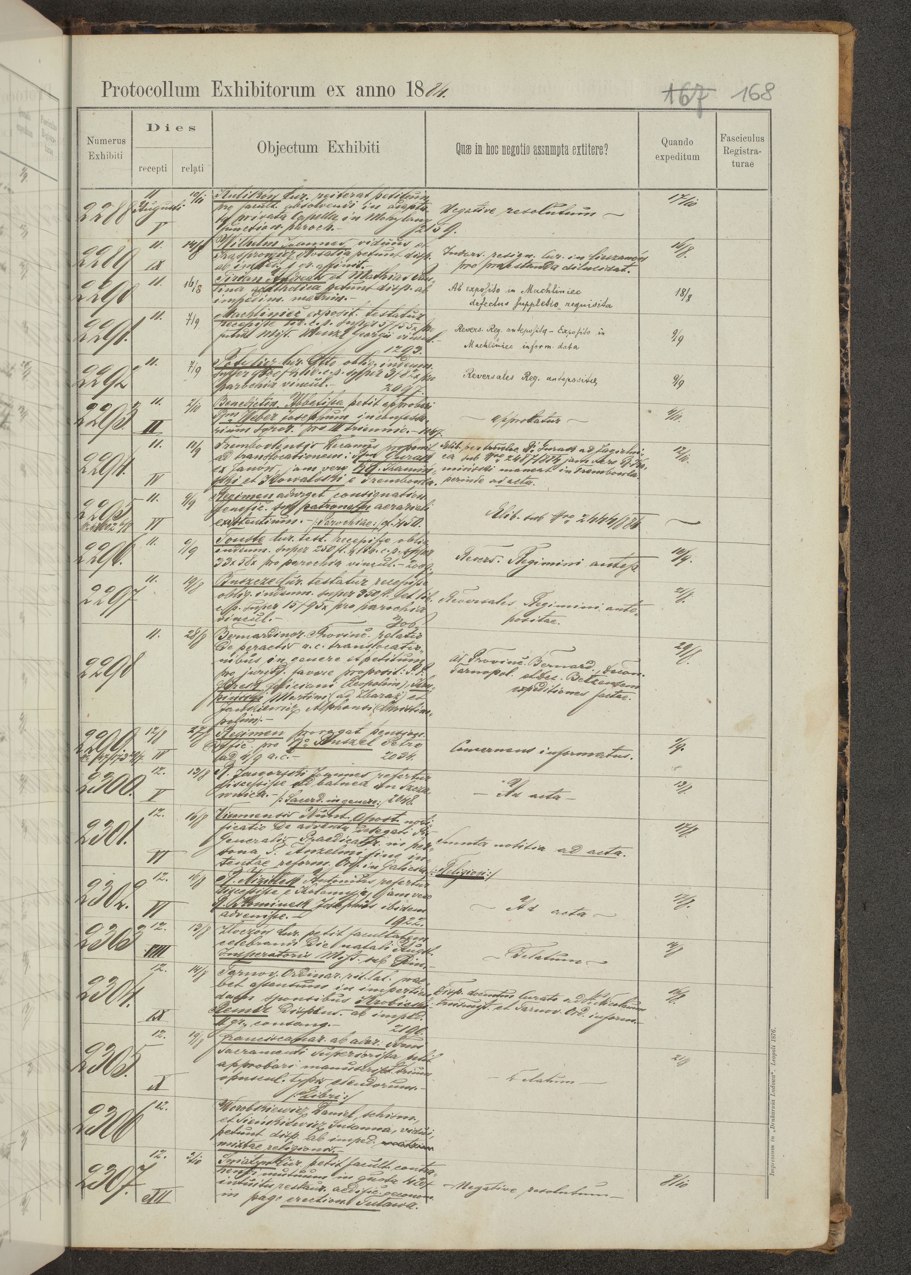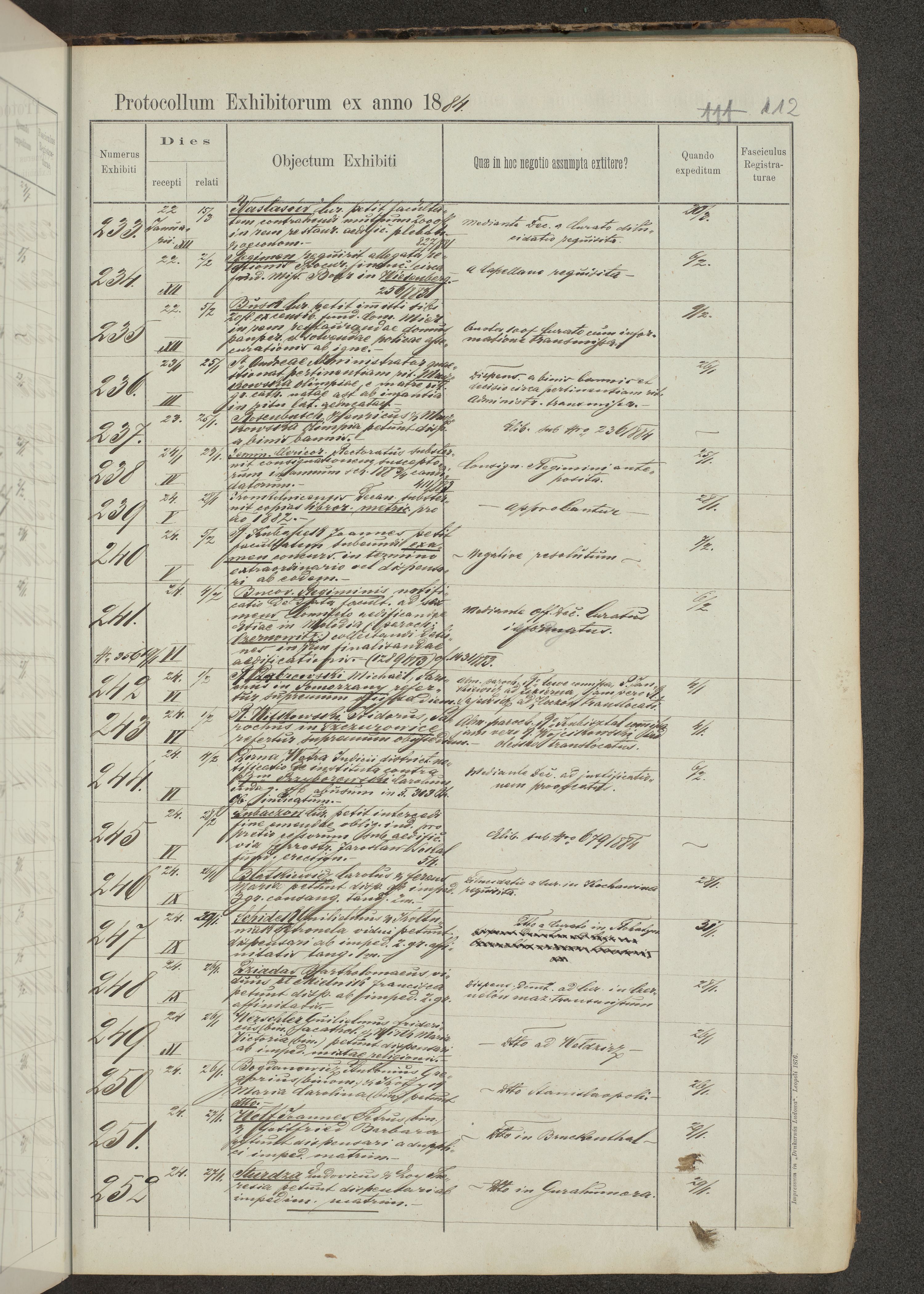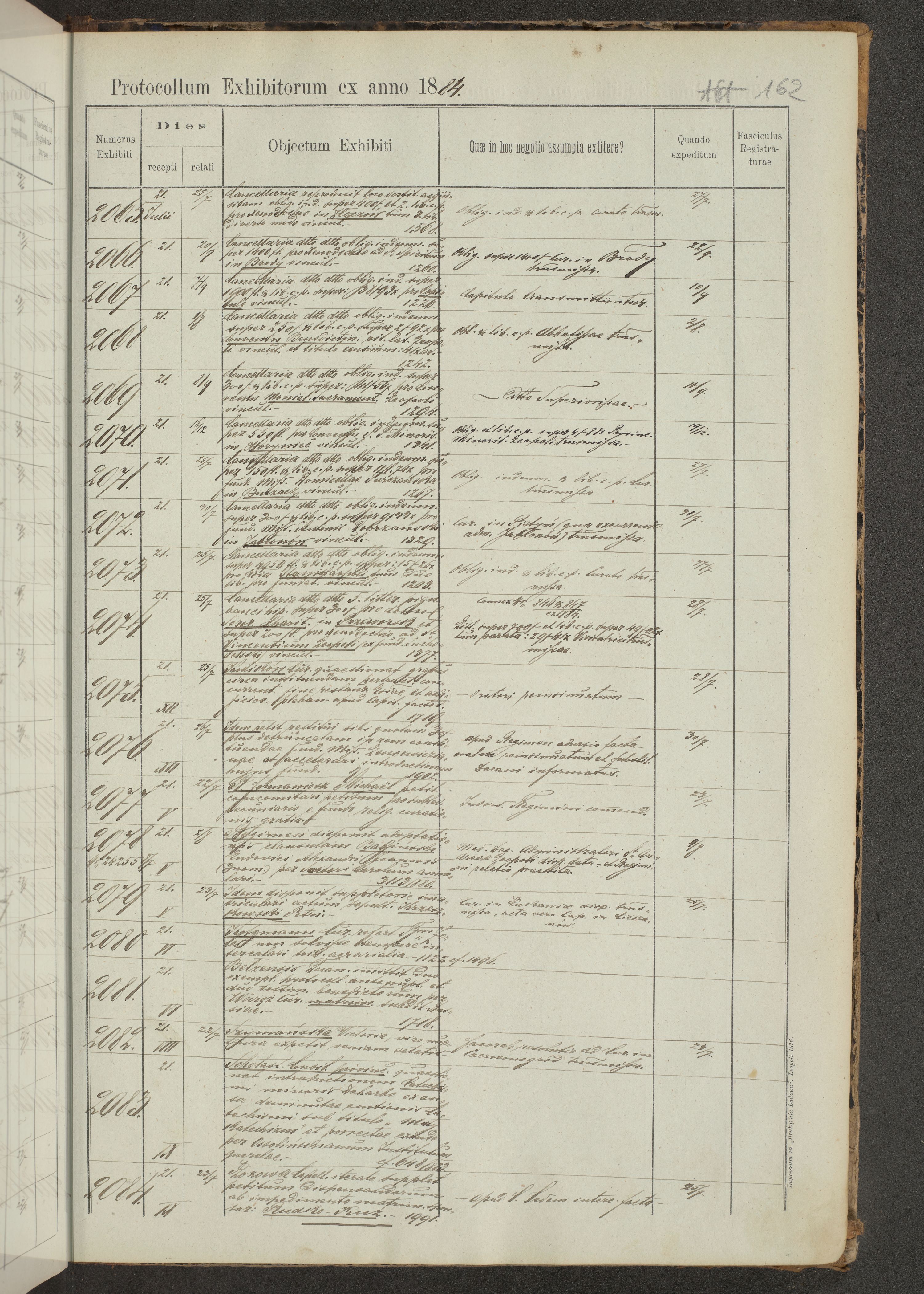 Protocollon exhibitorum in Ecclesiasticis ex anno 1883-1884