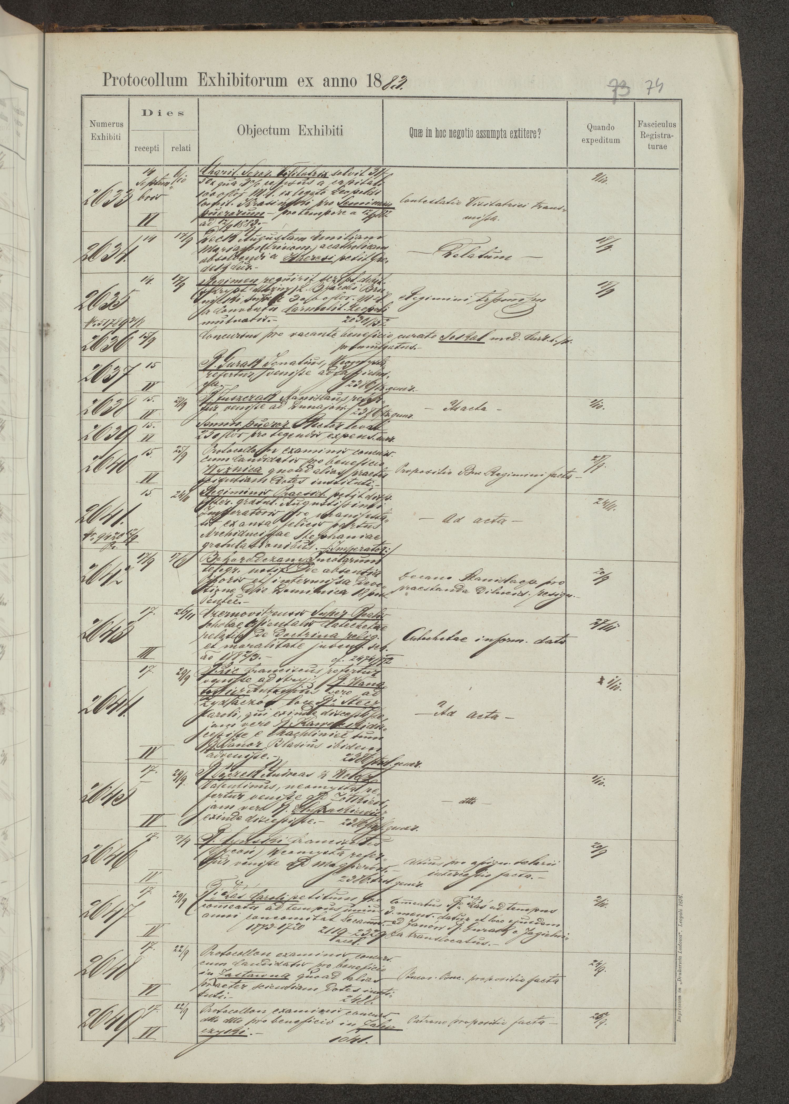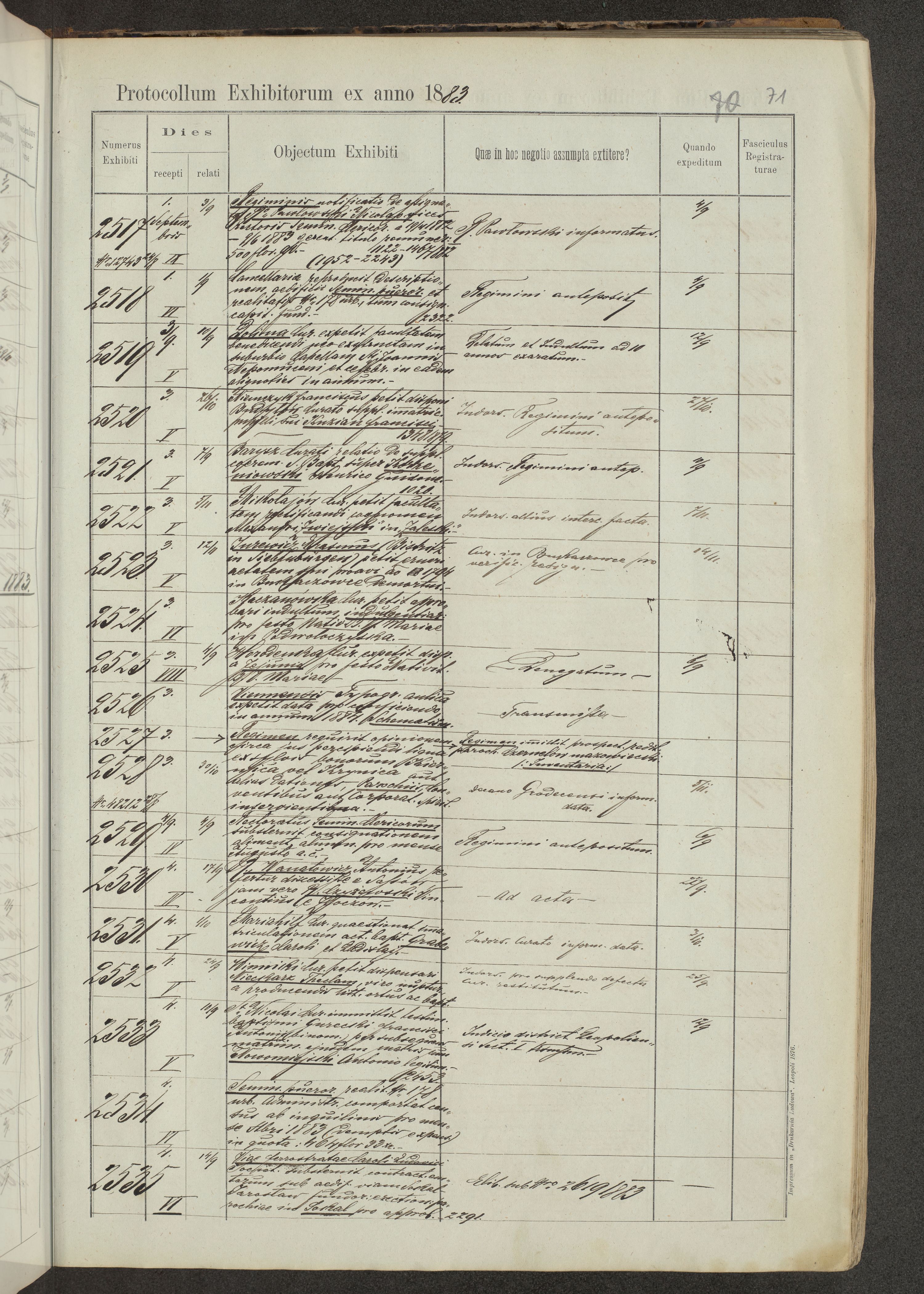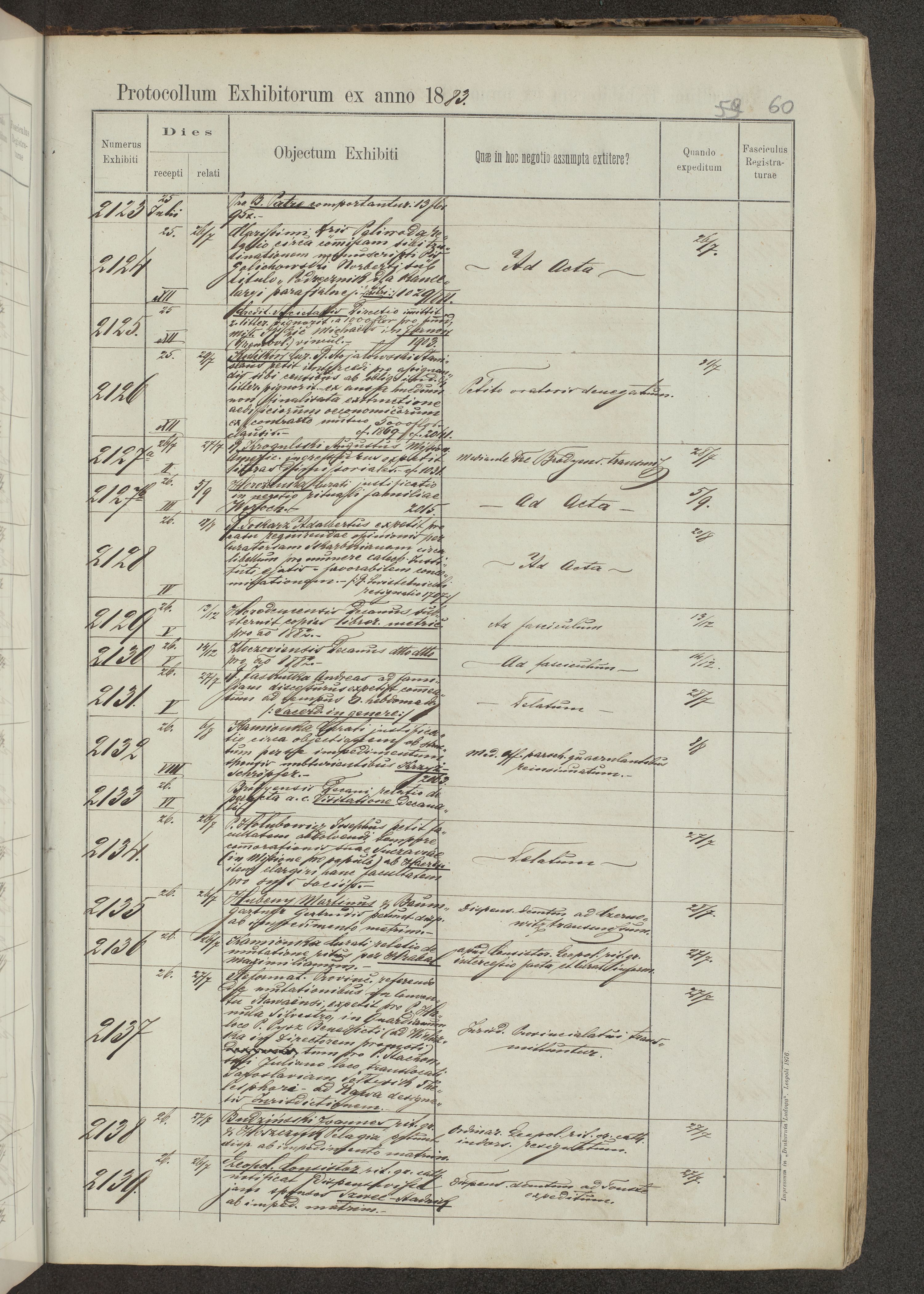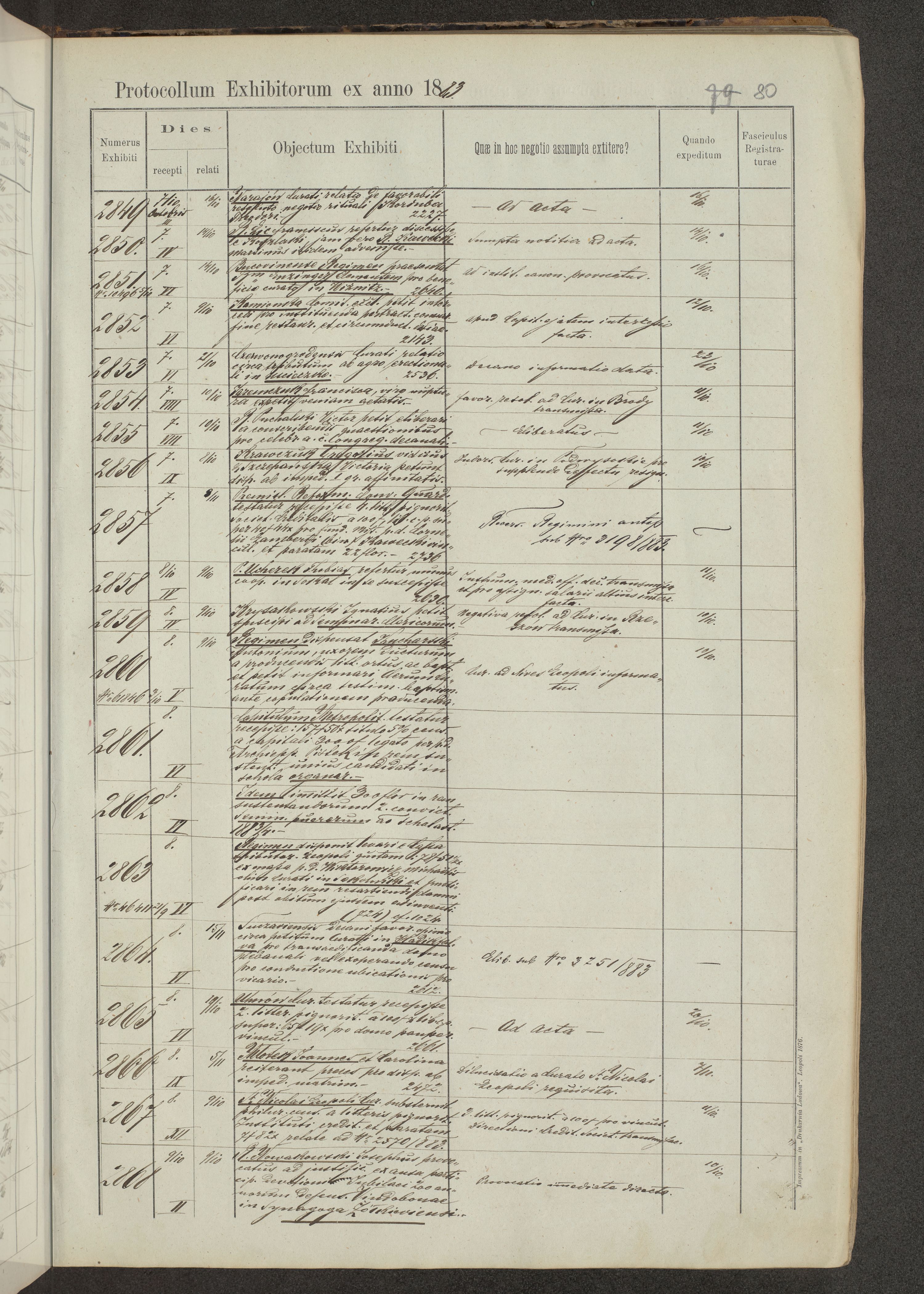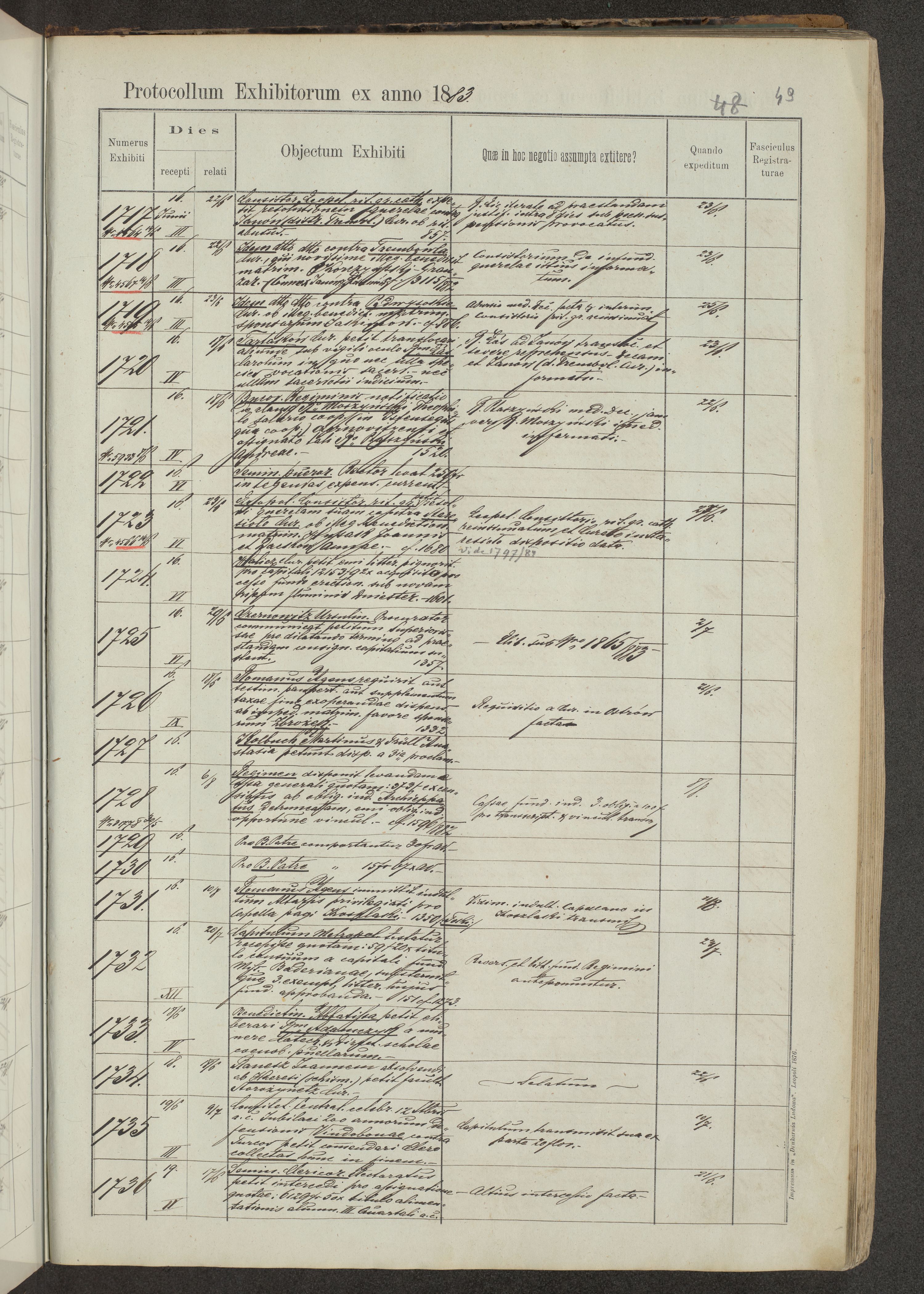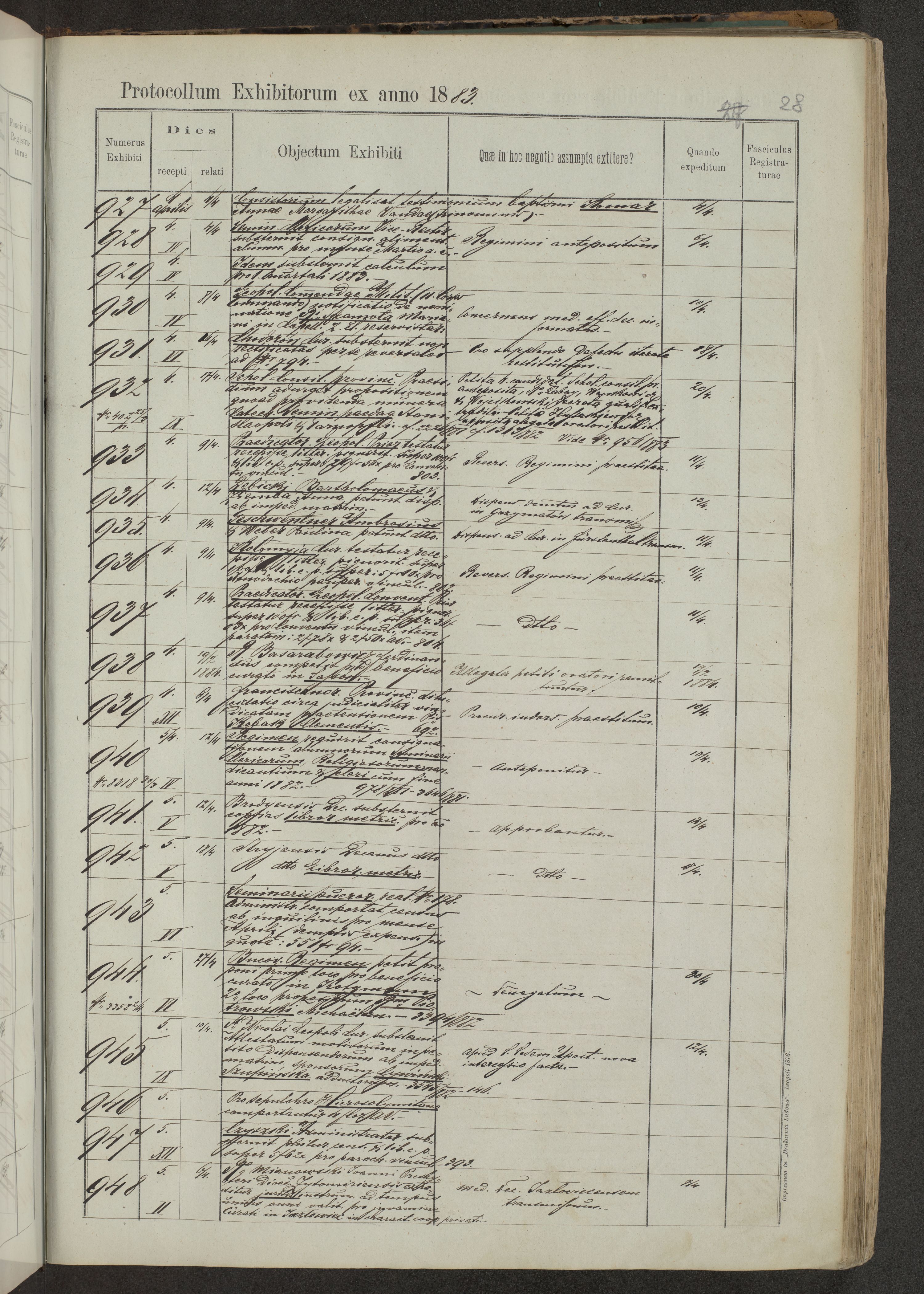 Protocollon exhibitorum in Ecclesiasticis ex anno 1883-1884