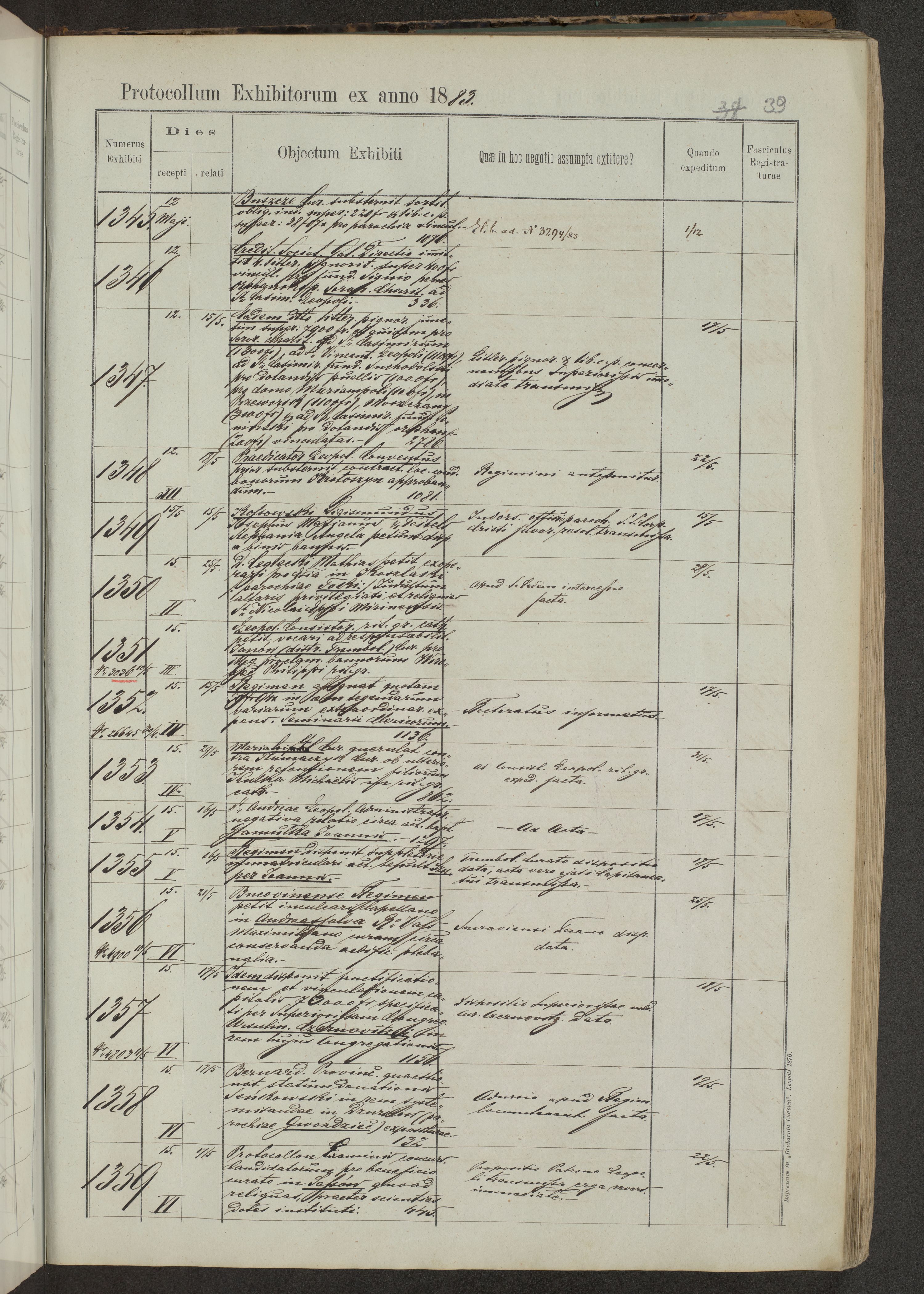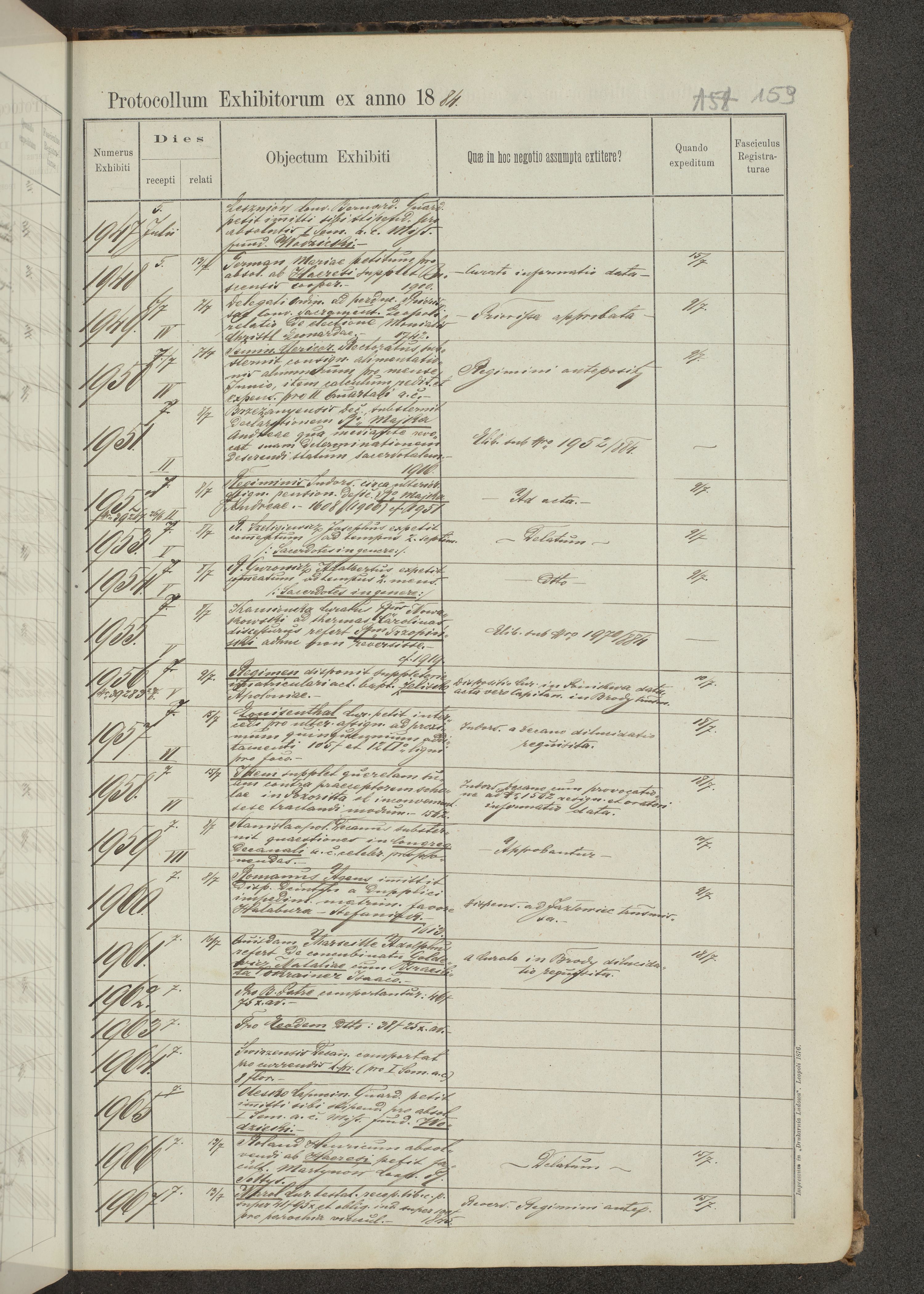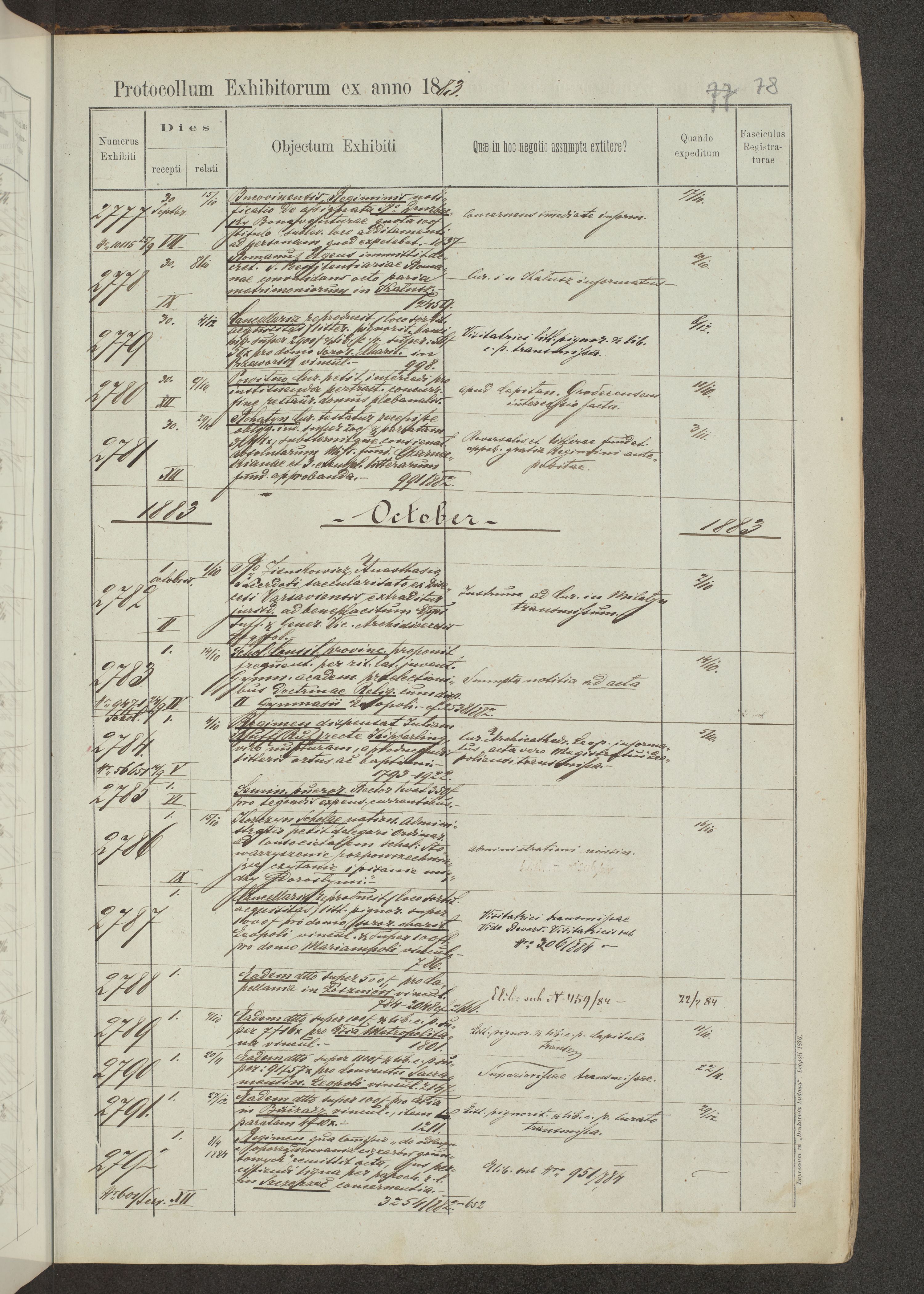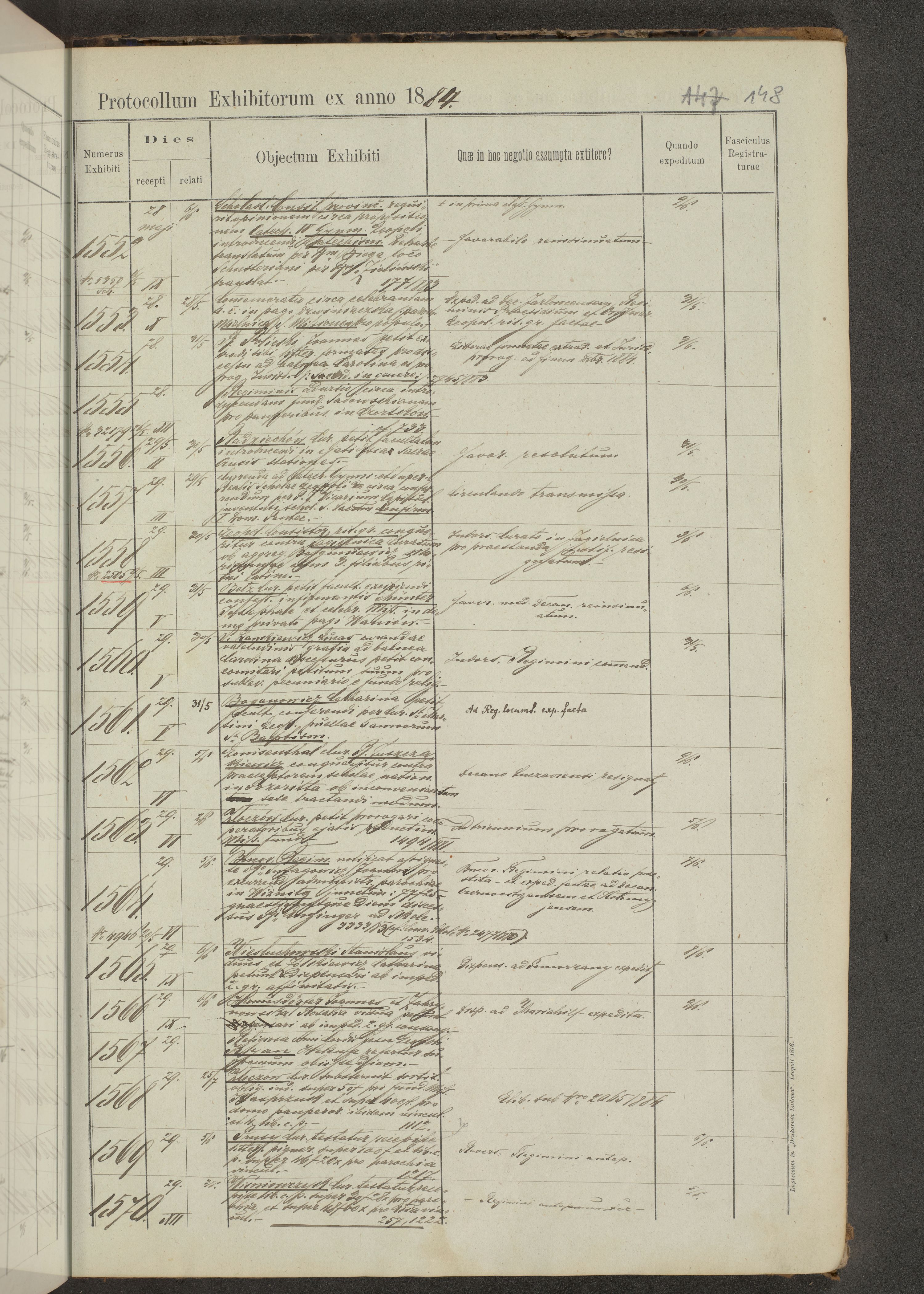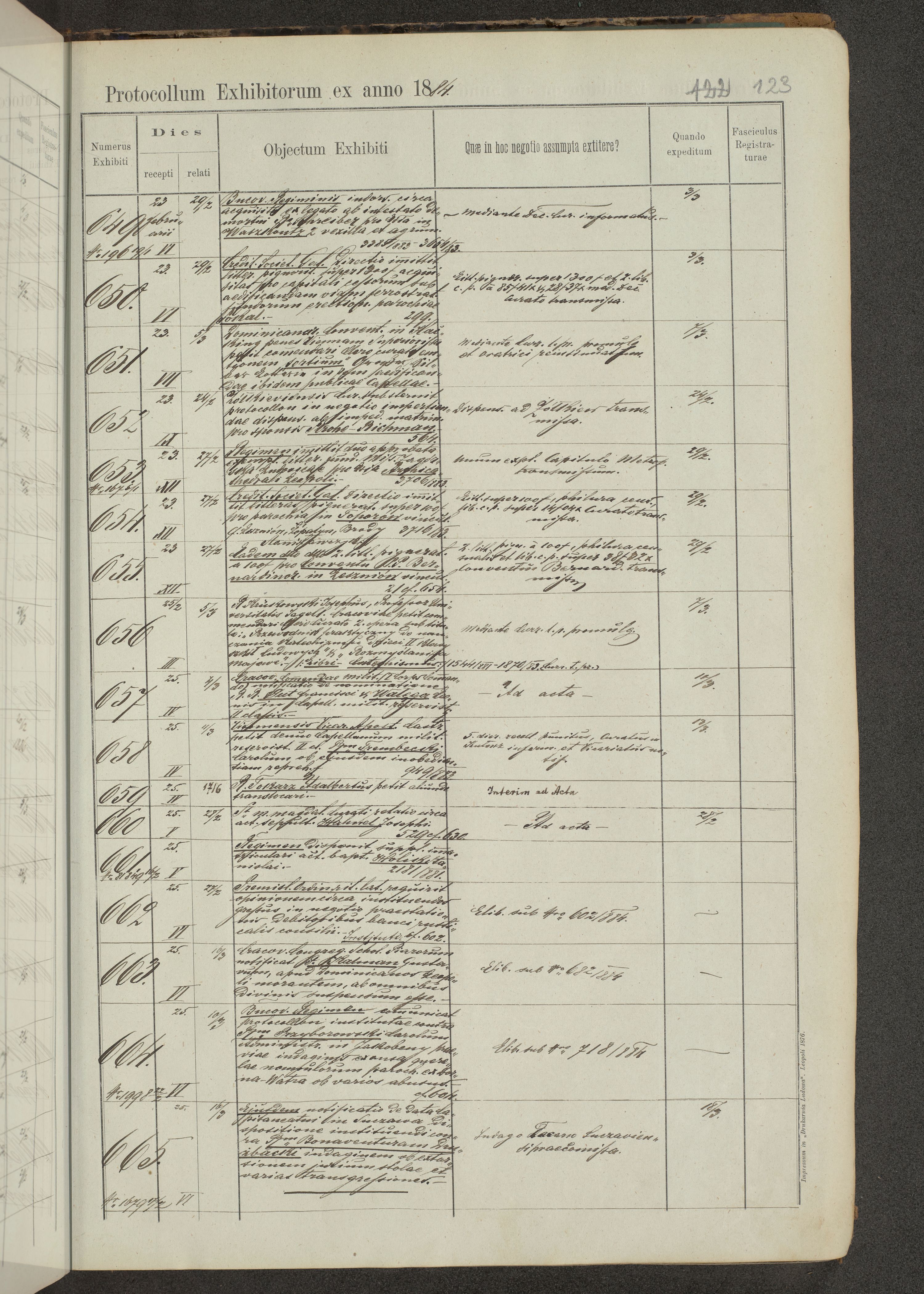Protocollon exhibitorum in Ecclesiasticis ex anno 1883-1884