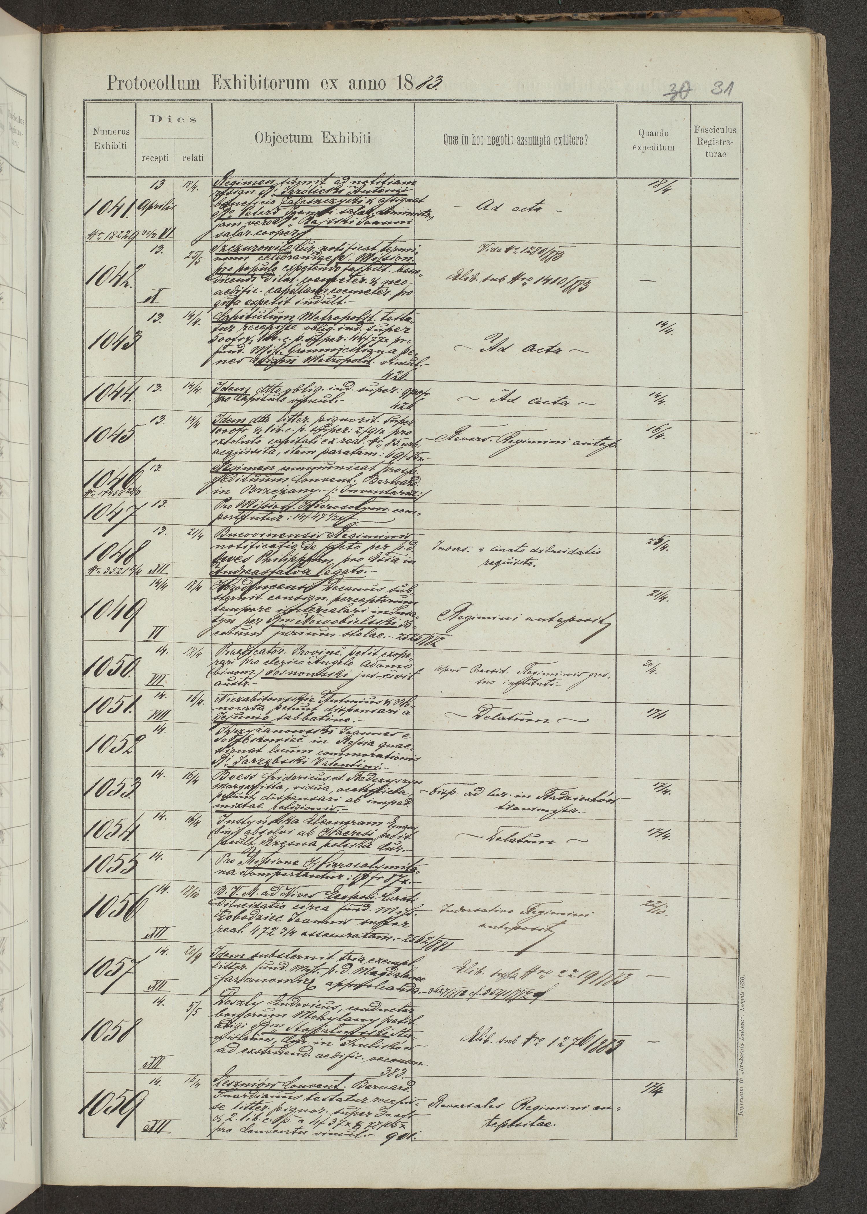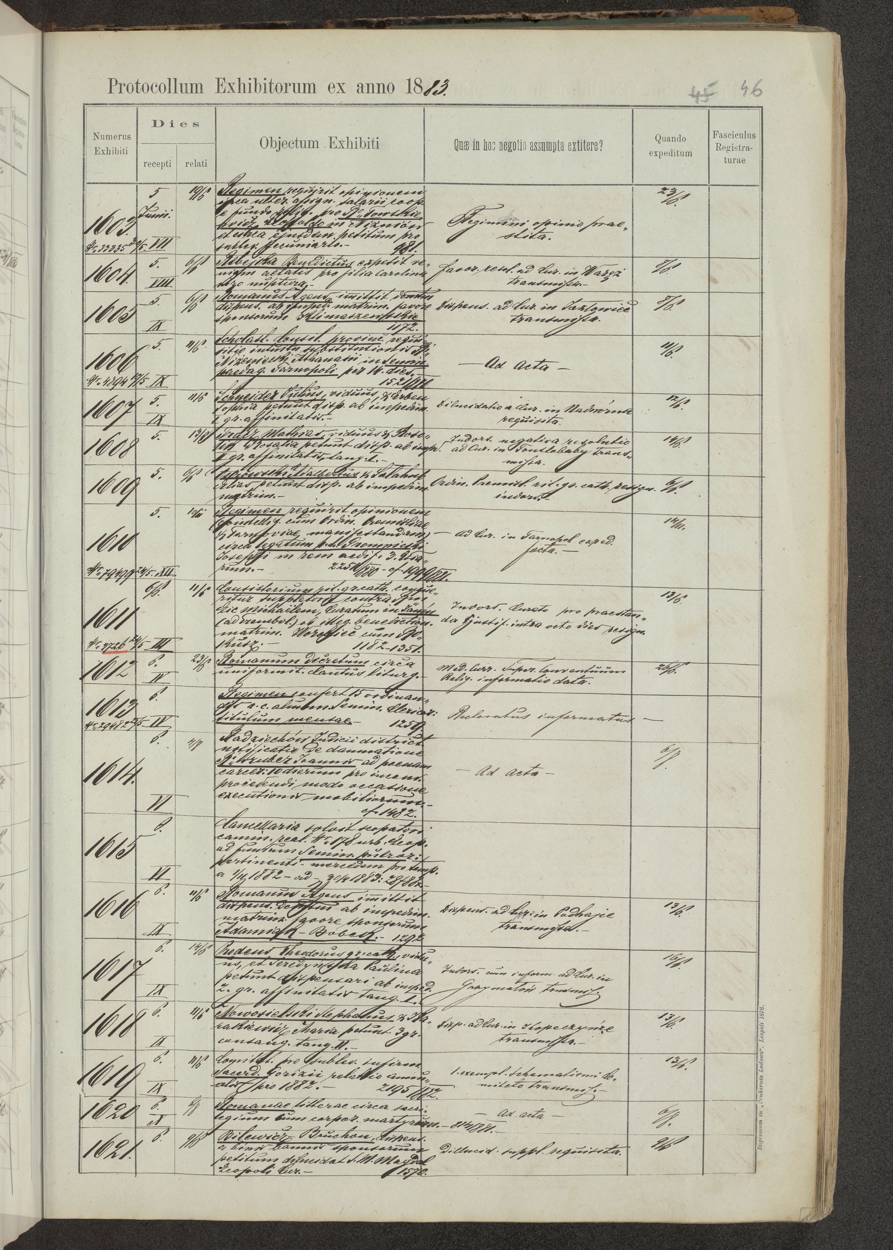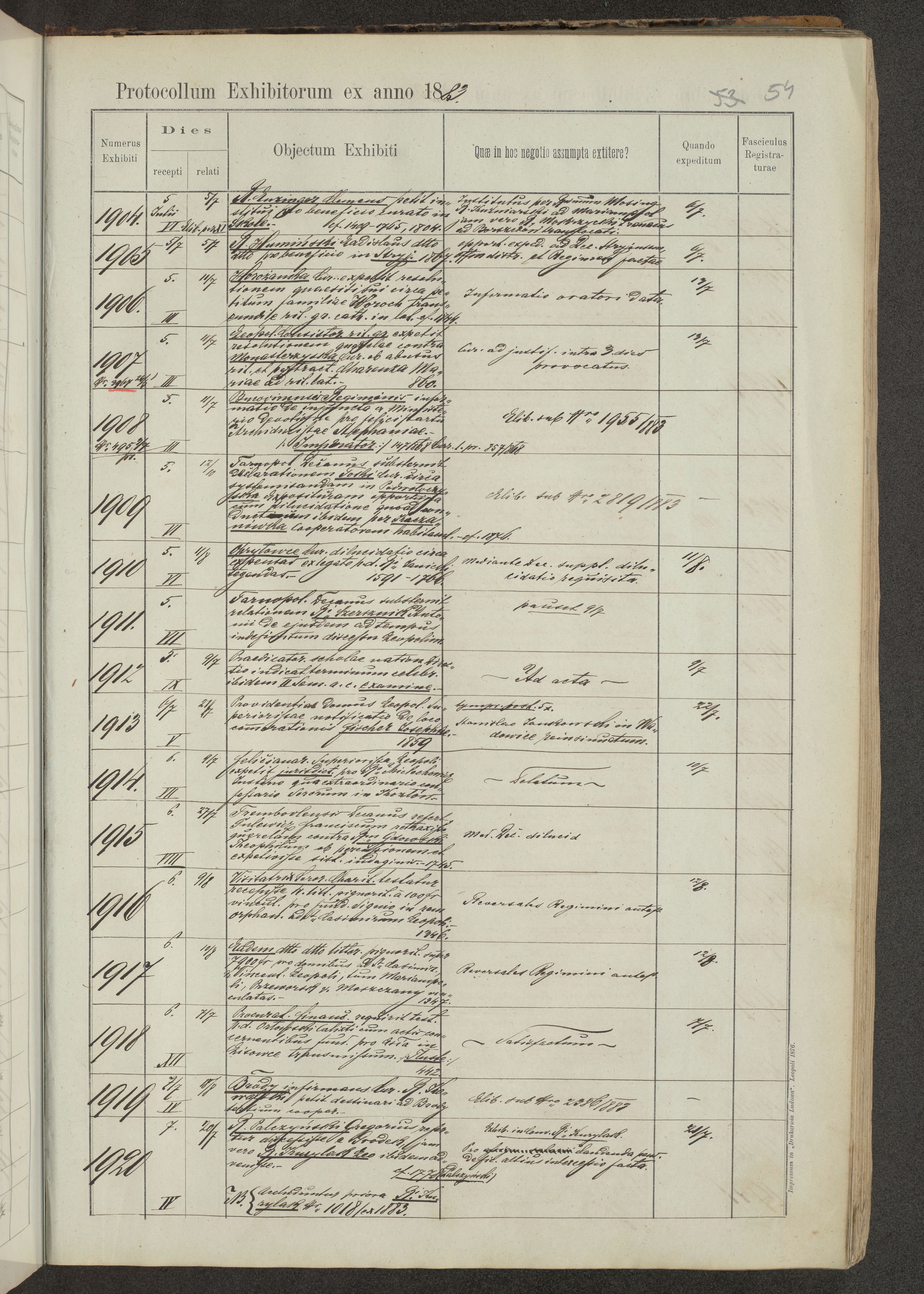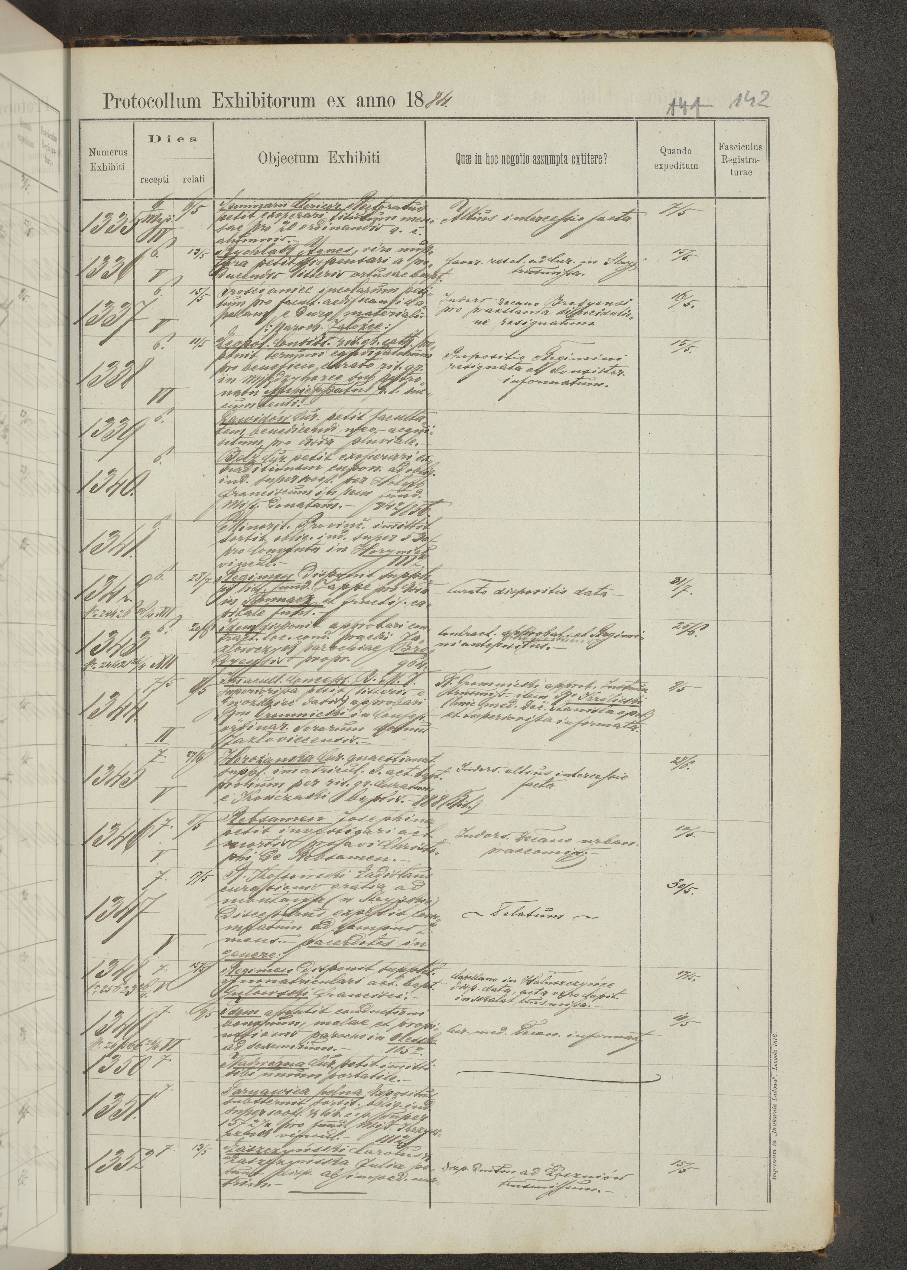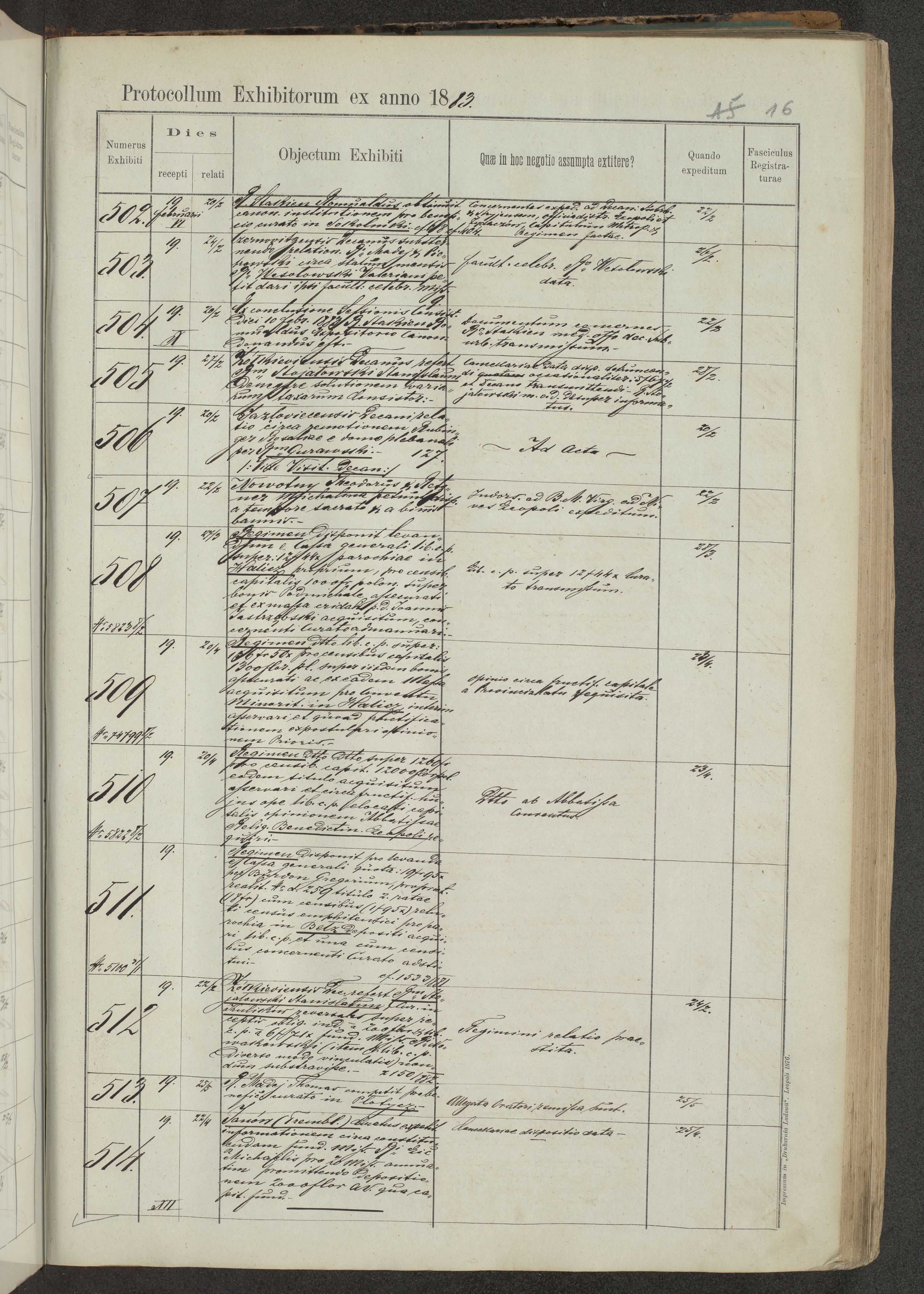 Protocollon exhibitorum in Ecclesiasticis ex anno 1883-1884