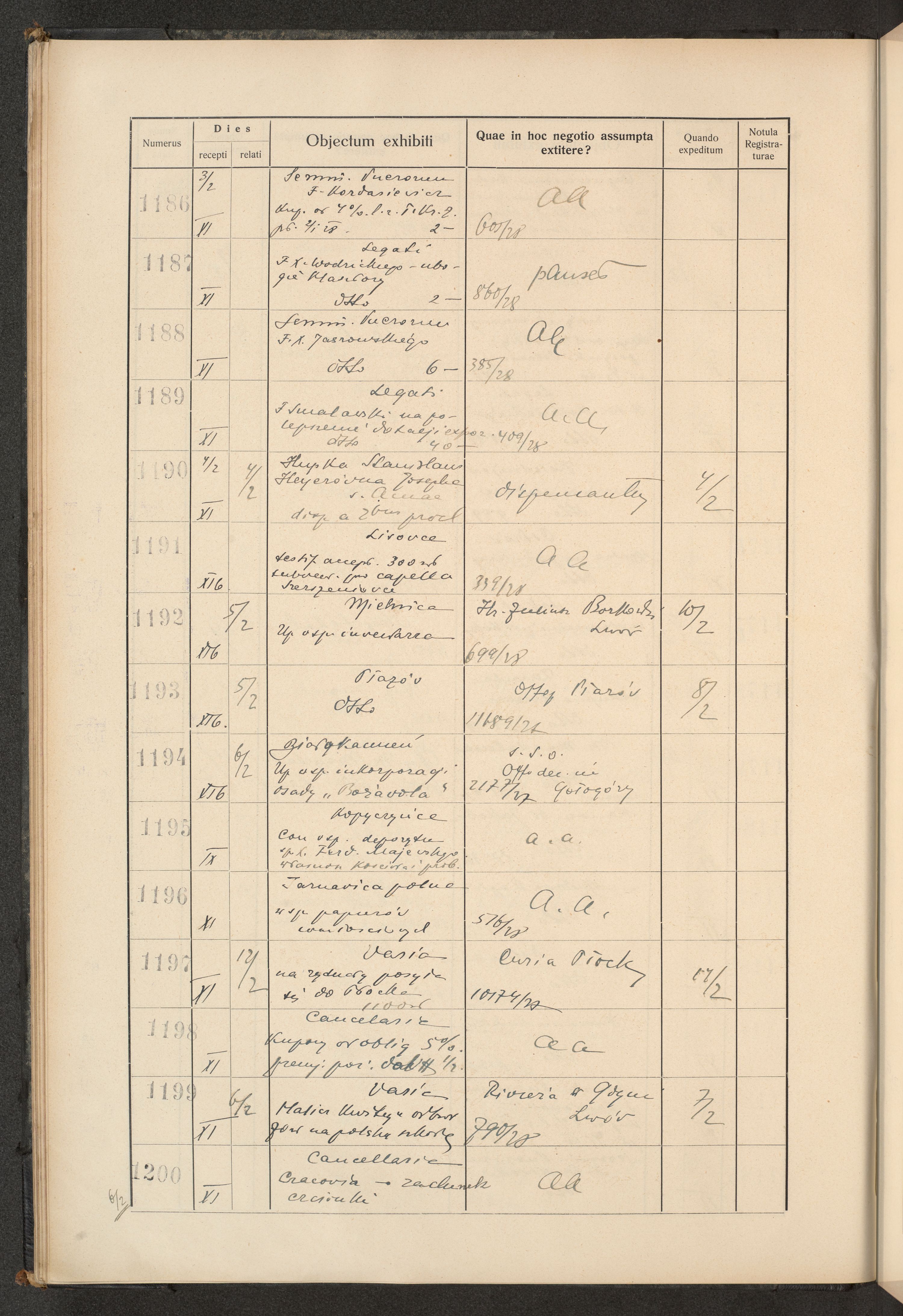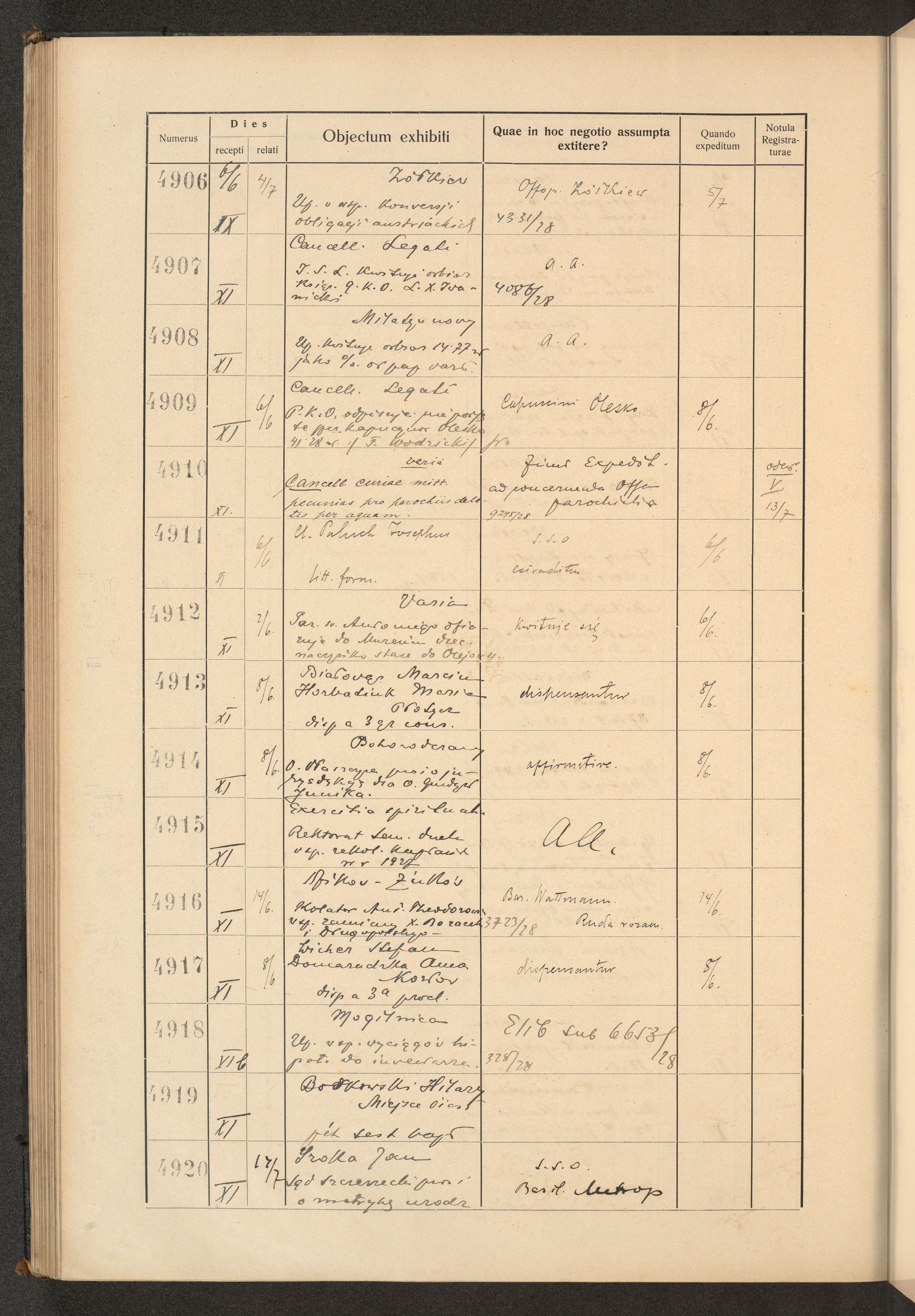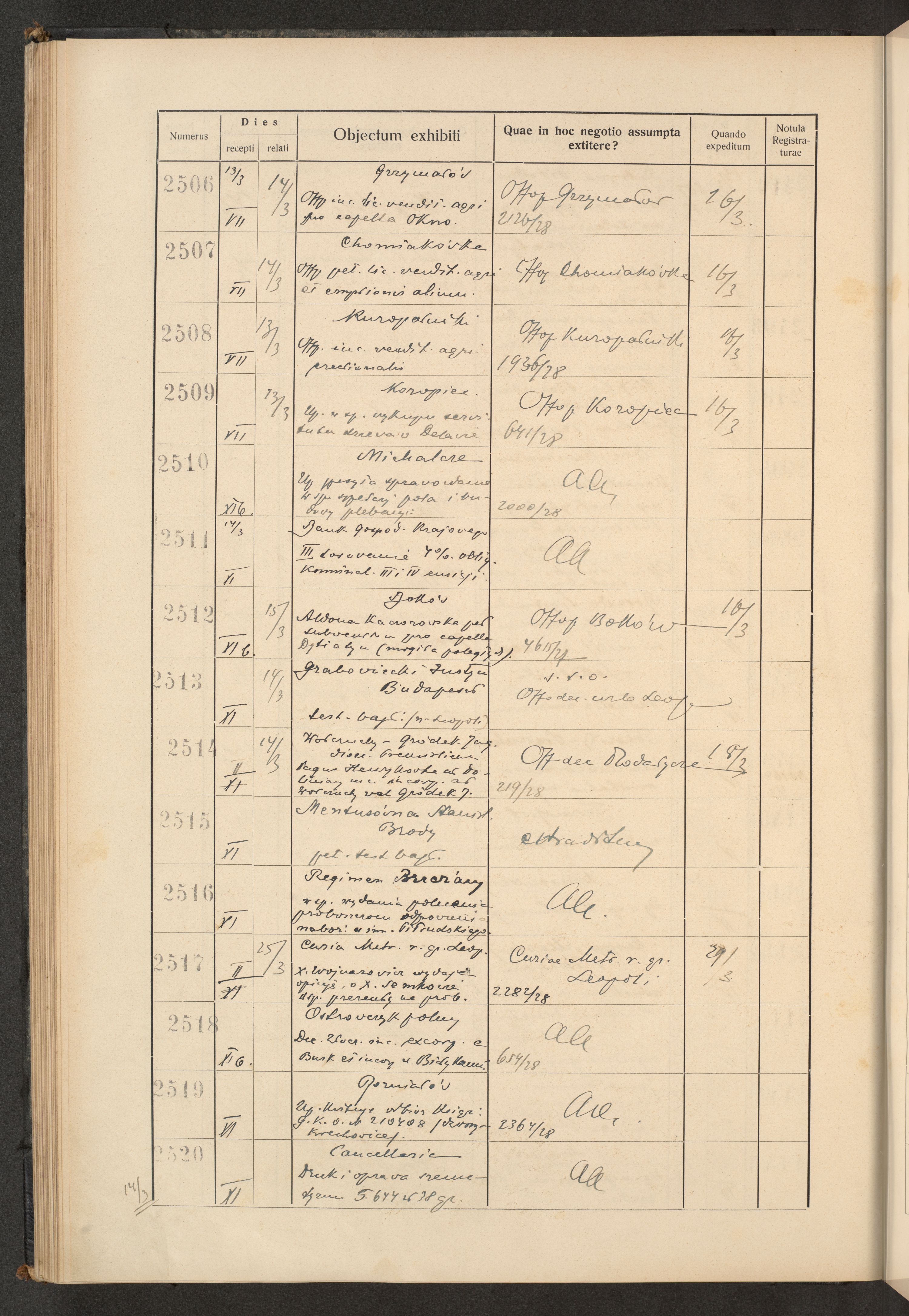 Protocollum Consistorii lat. Leop. 1928