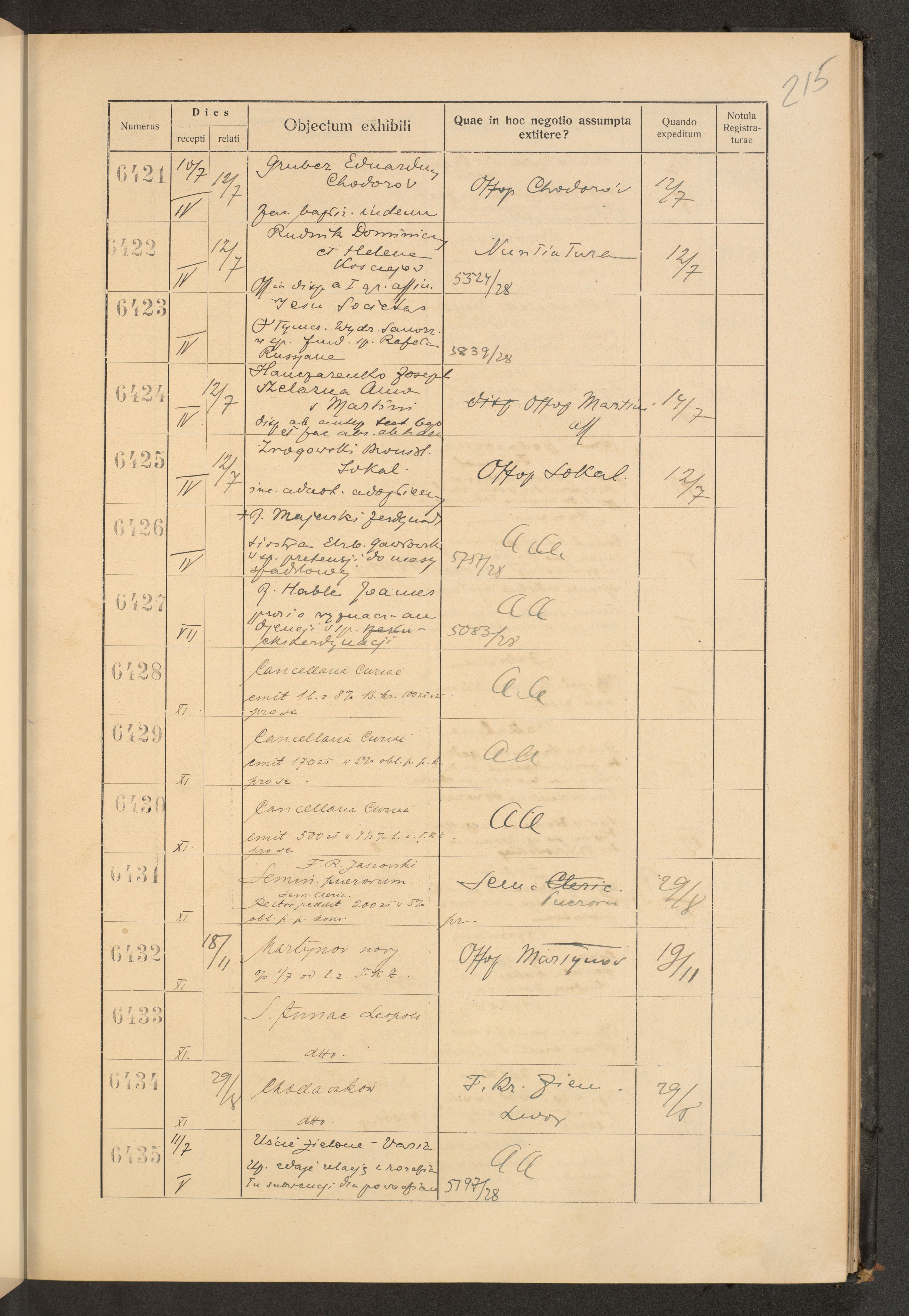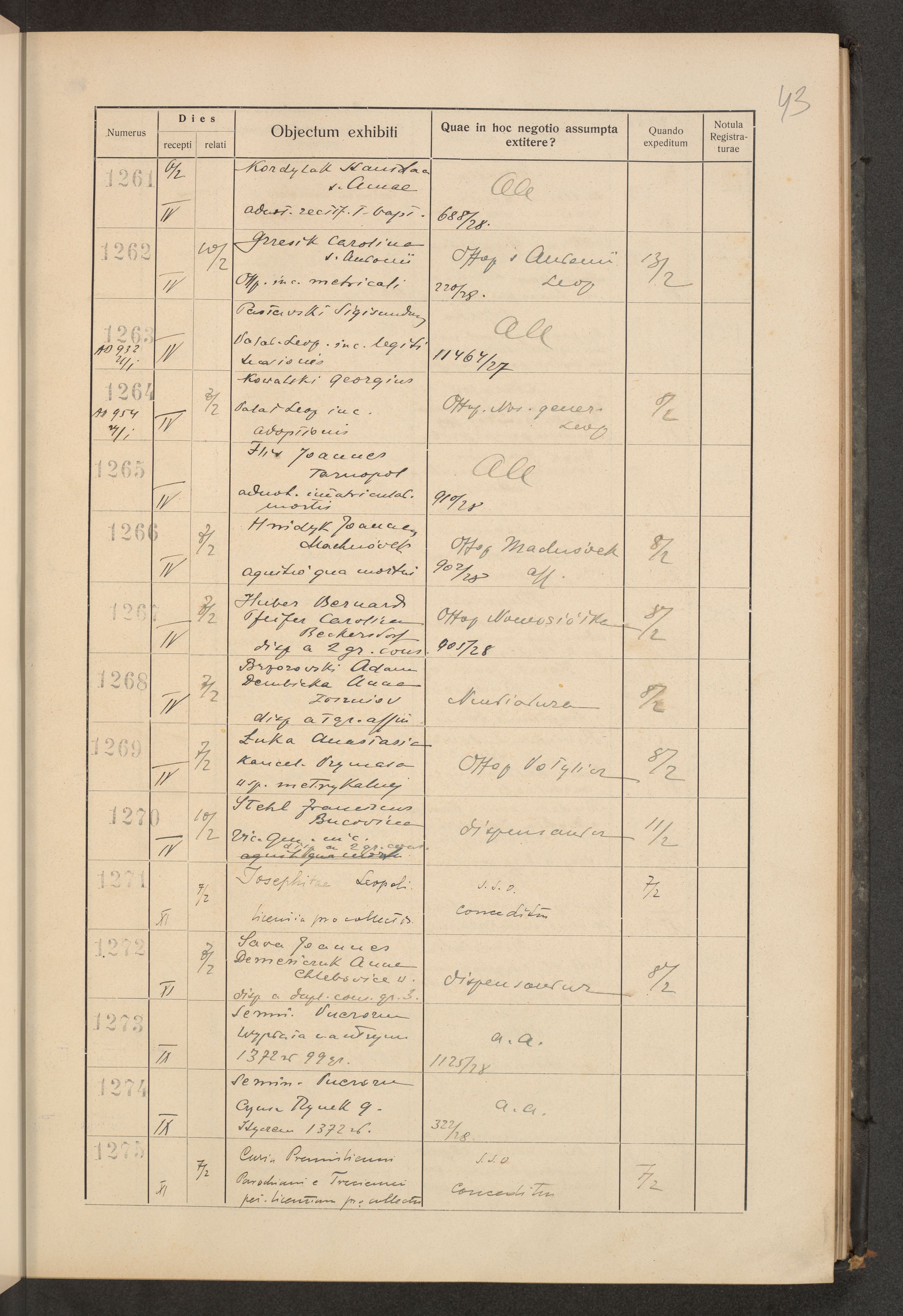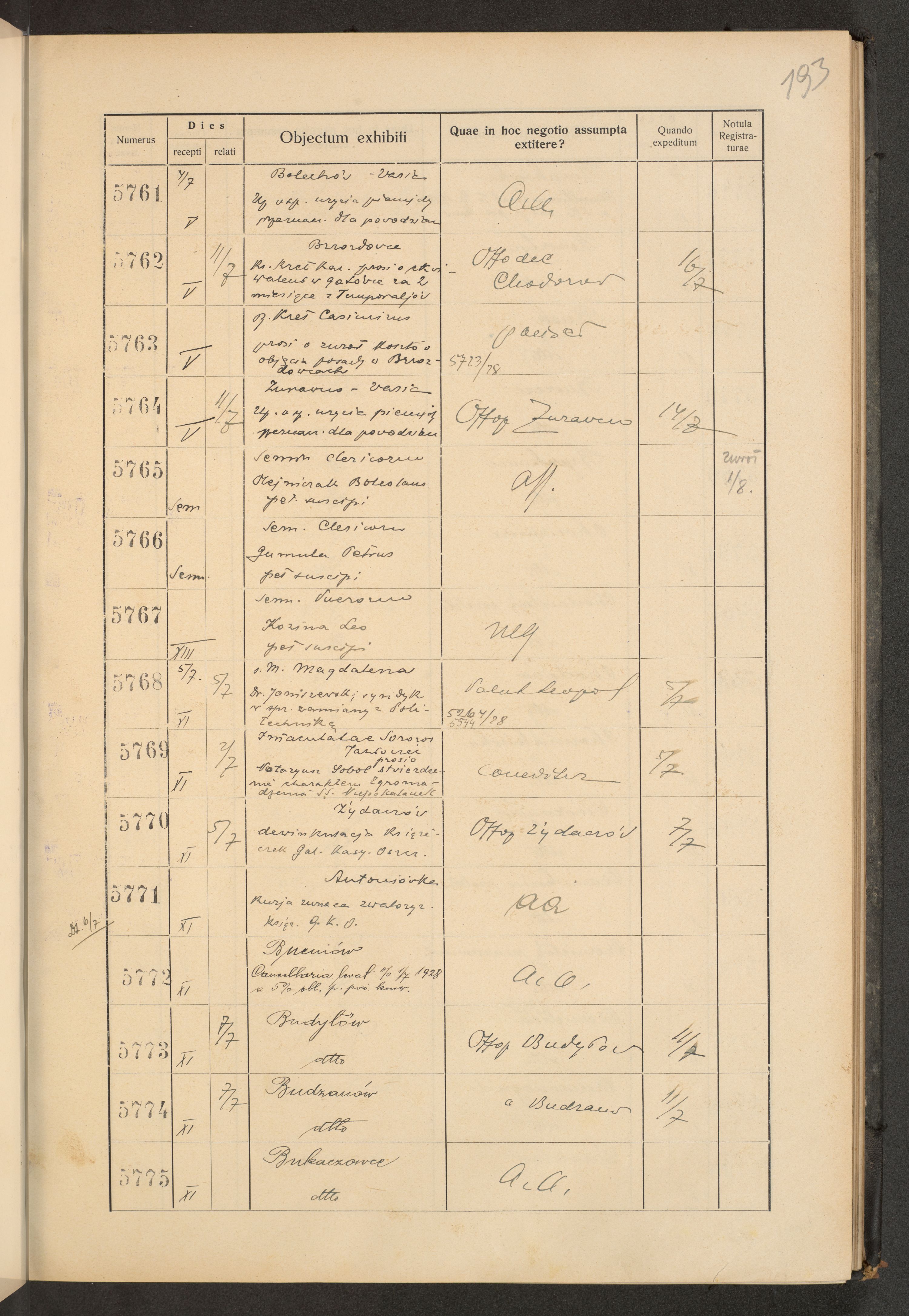Protocollum Consistorii lat. Leop. 1928