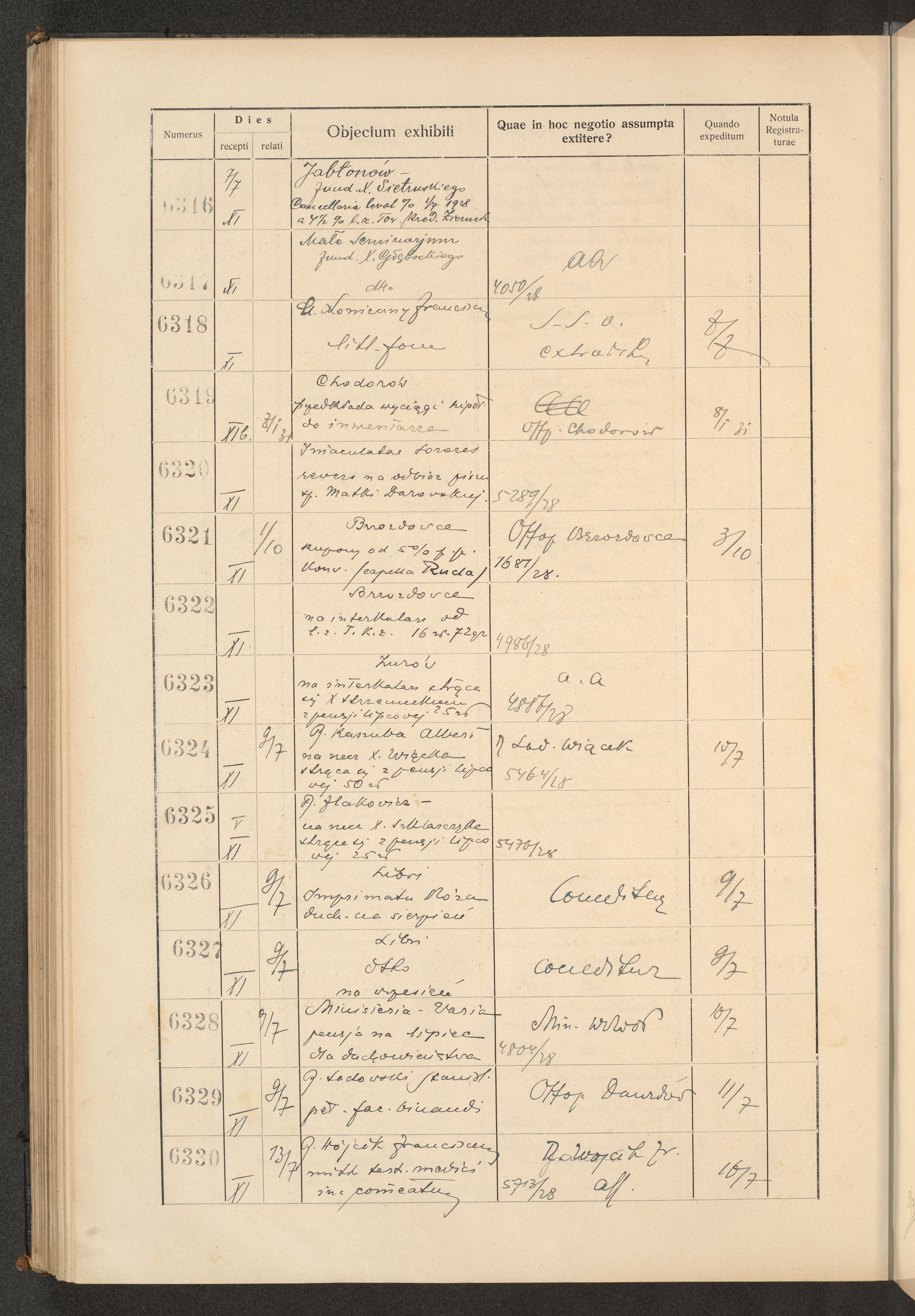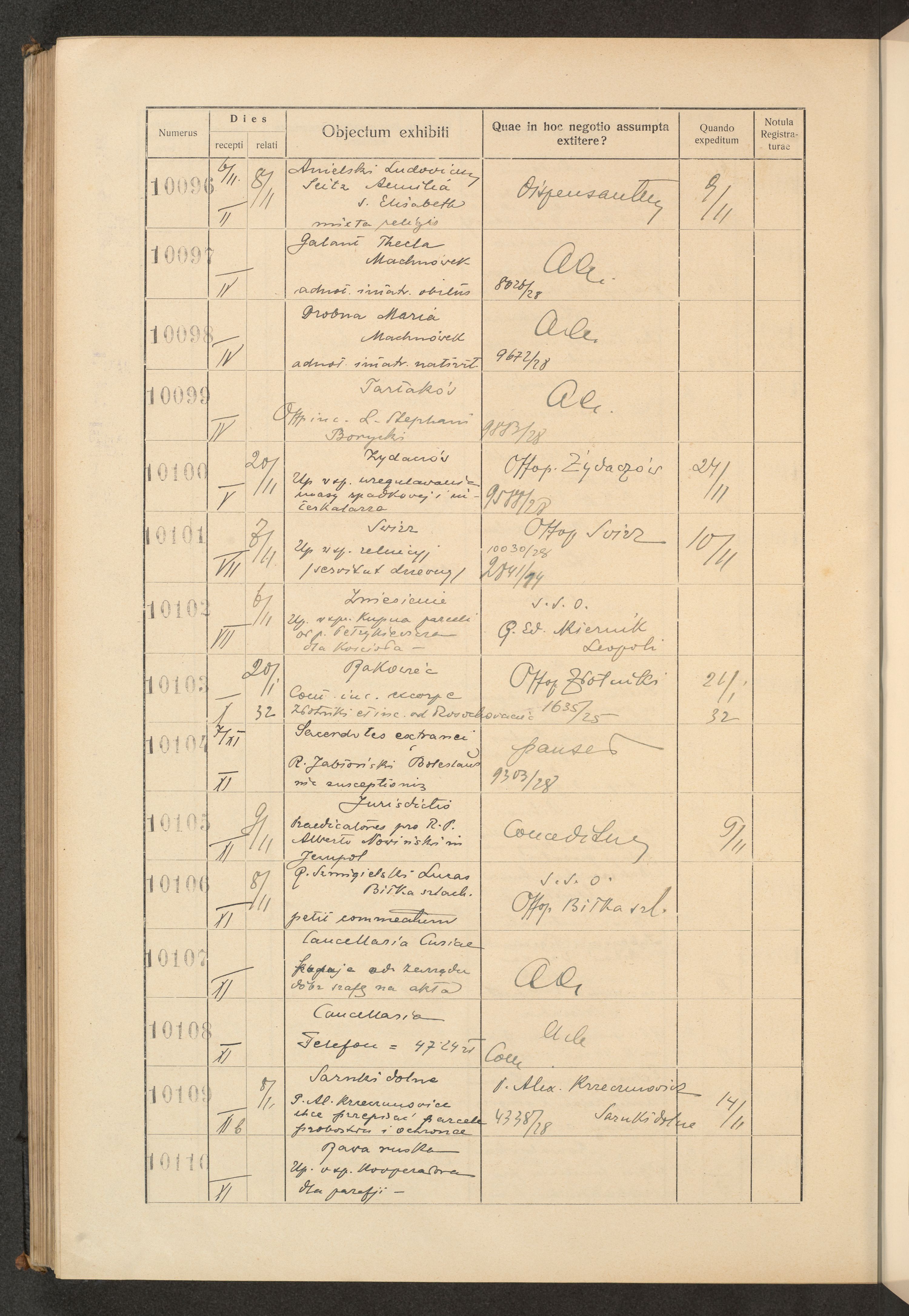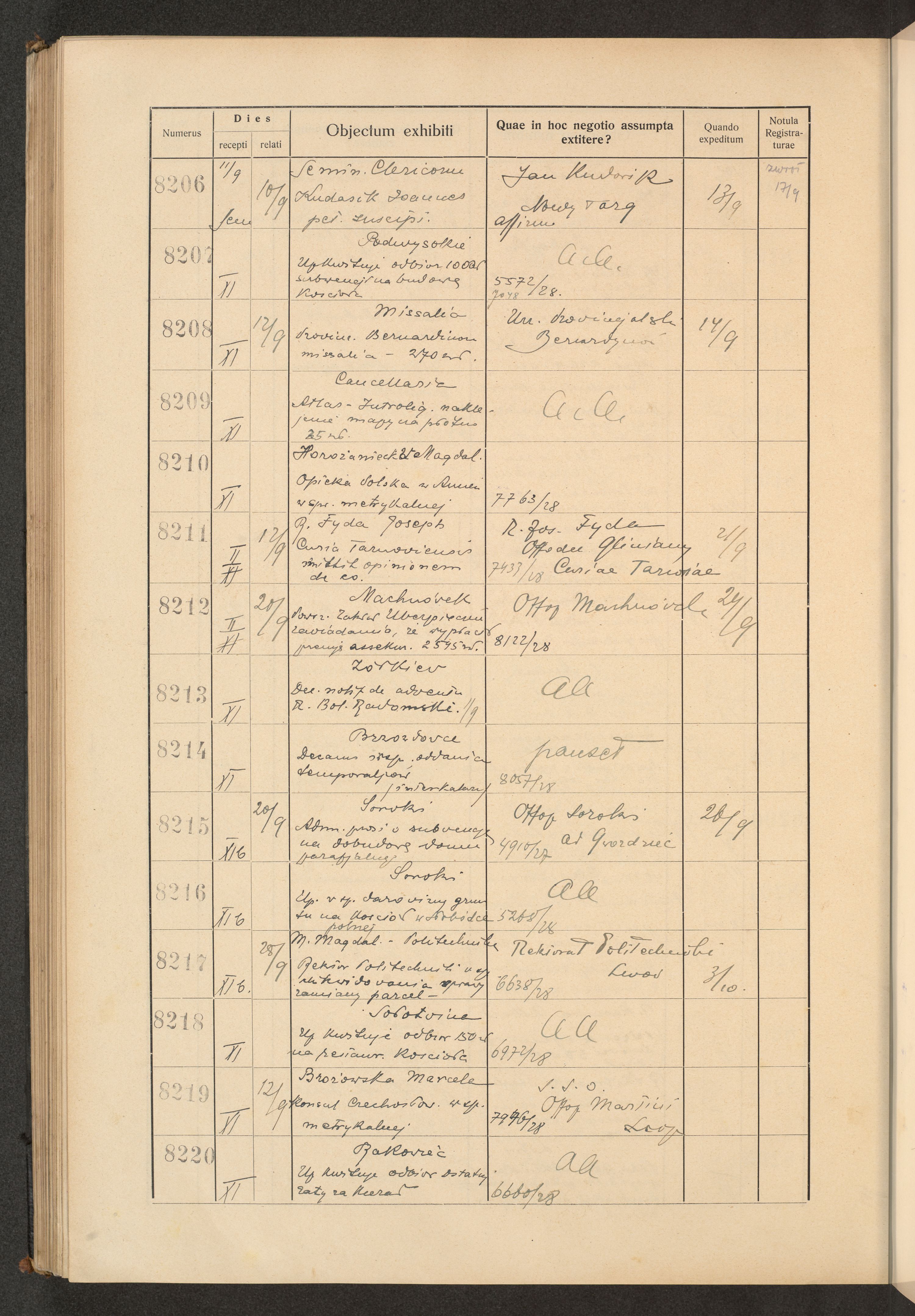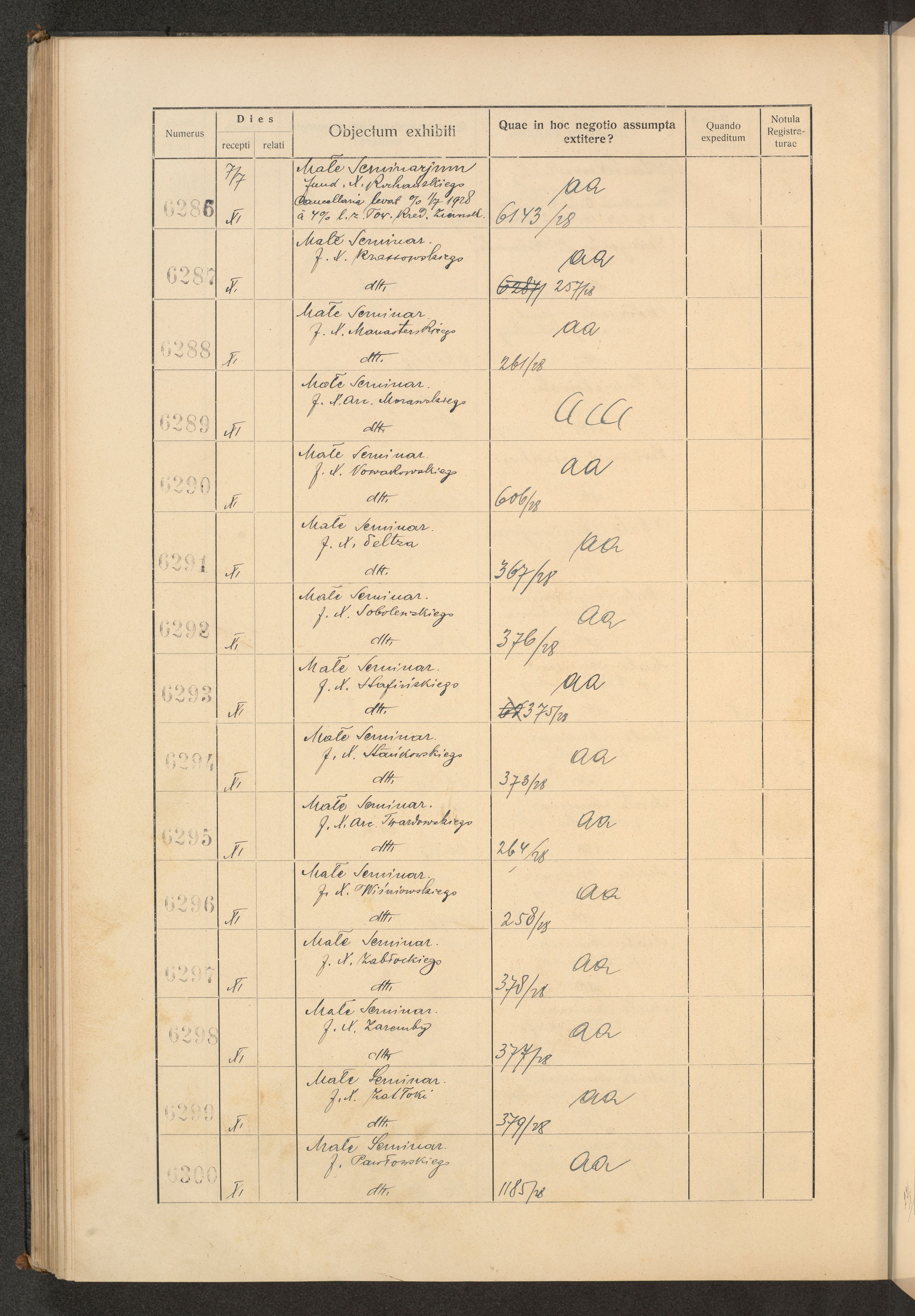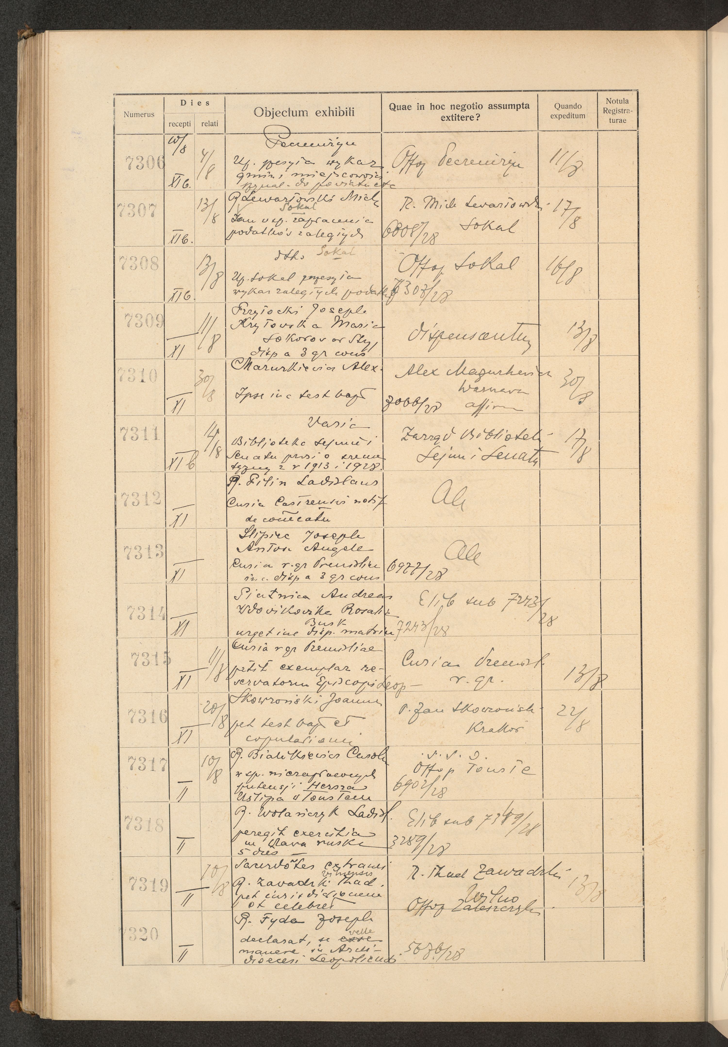 Księga protokołu podawczego konsystorza metropolitalnego obrządku łacińskiego we Lwowie za rok 1928.