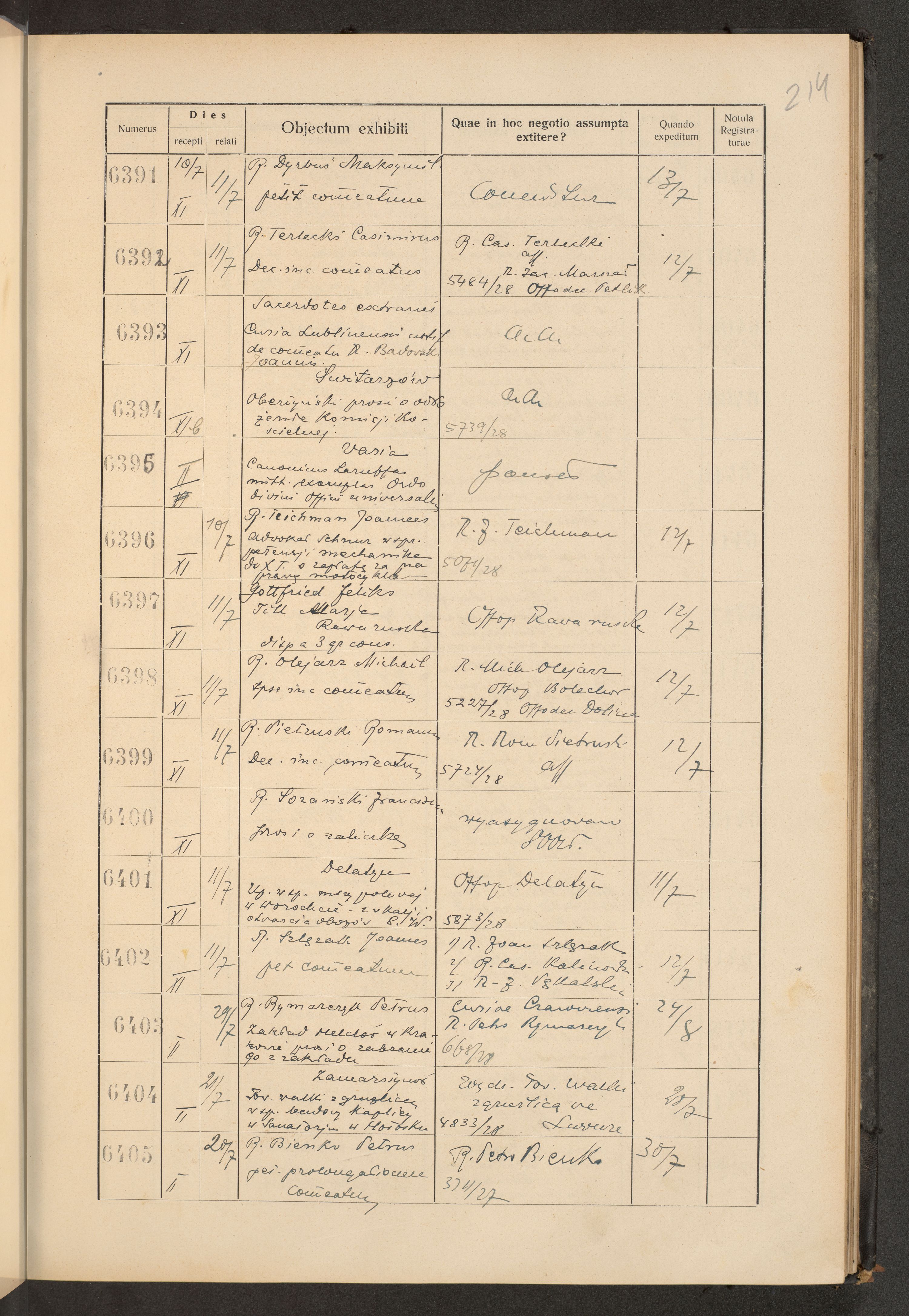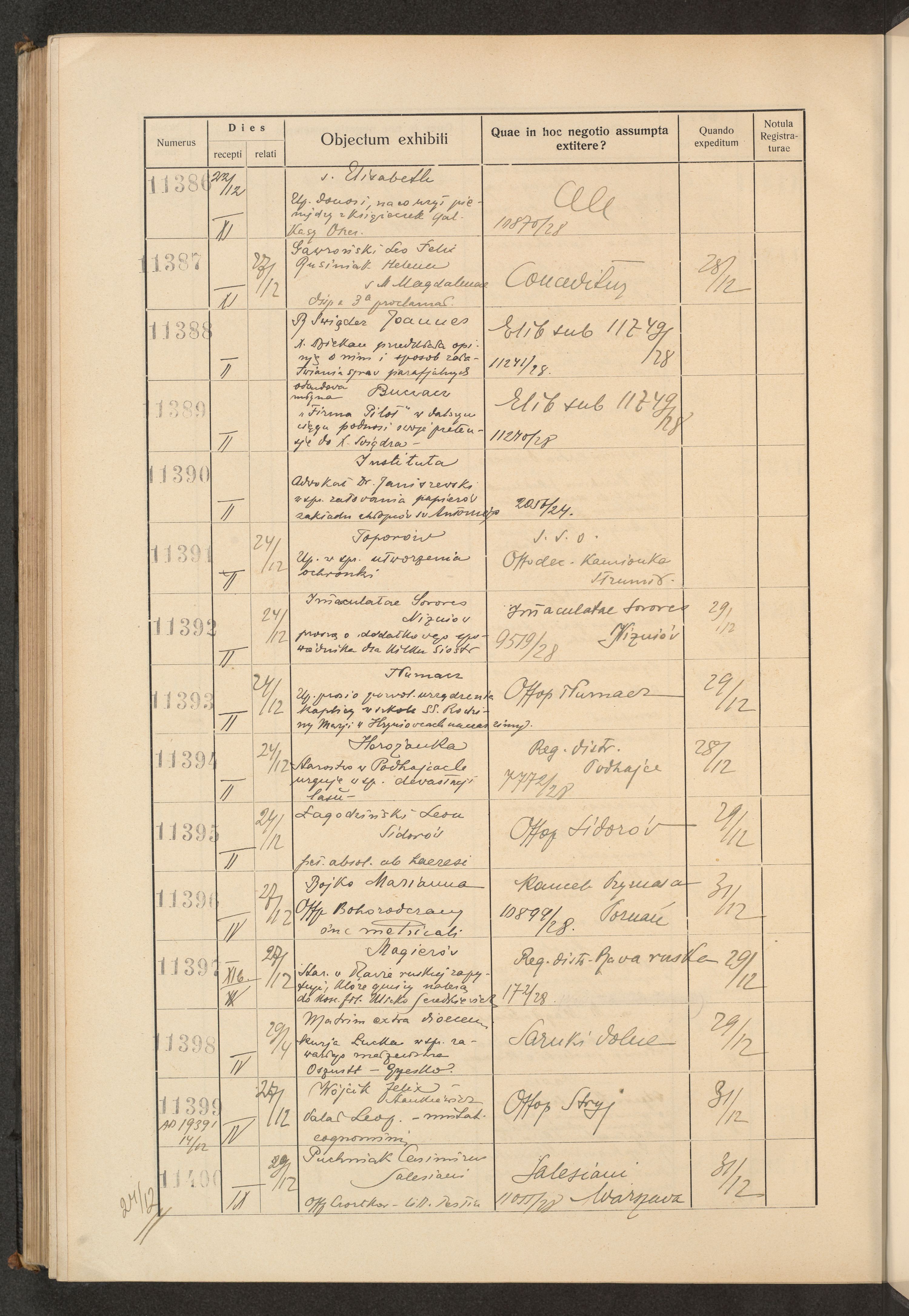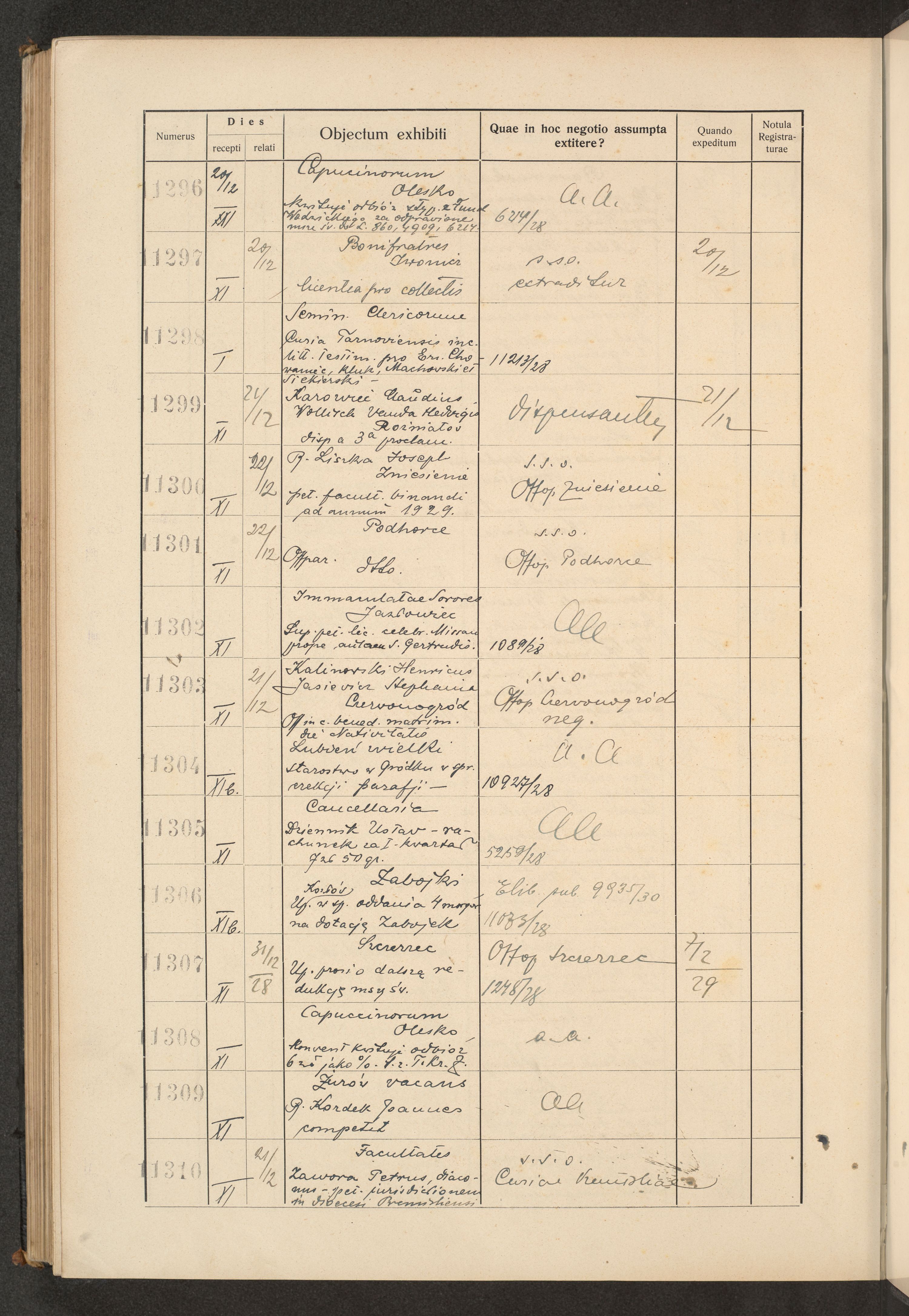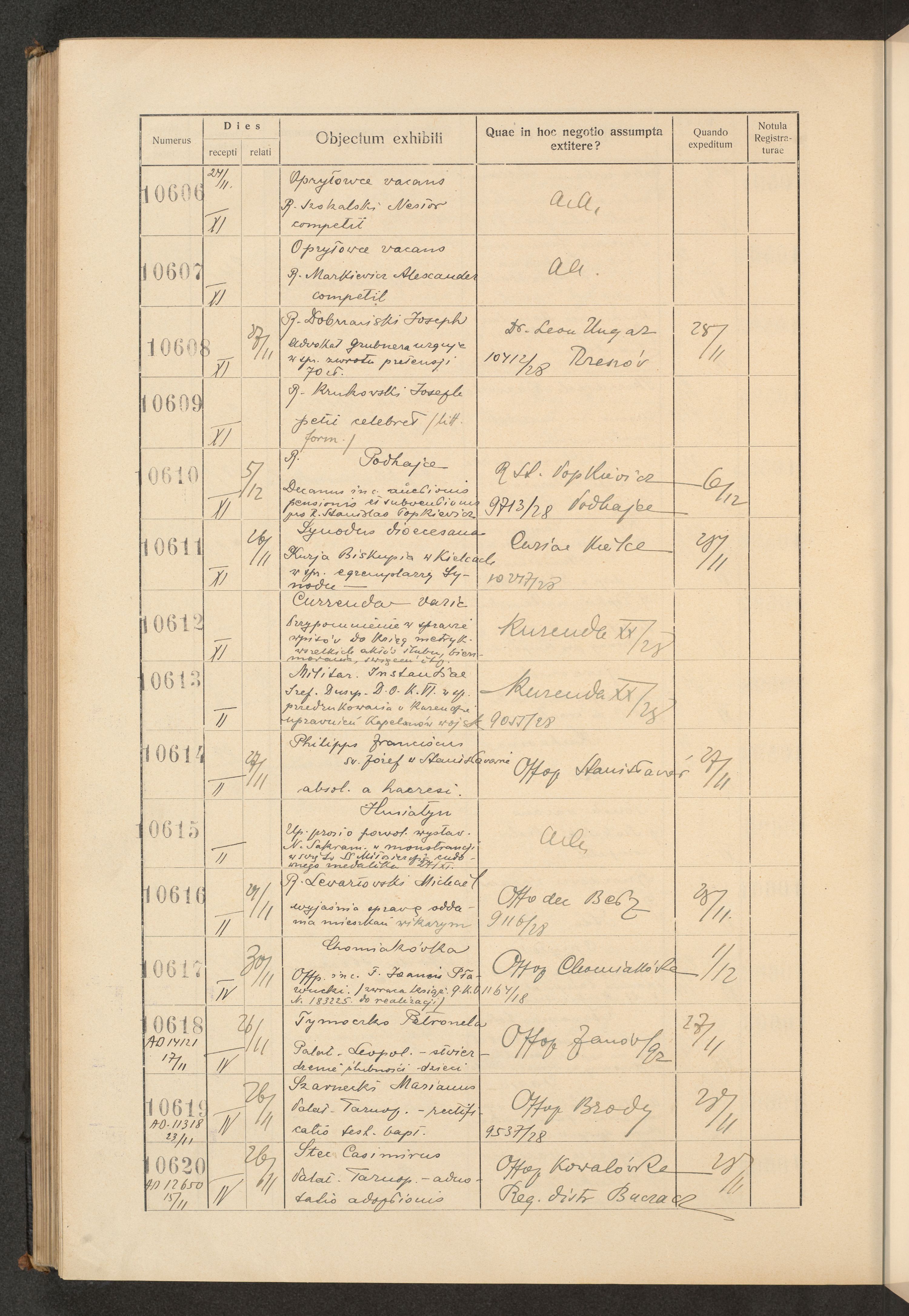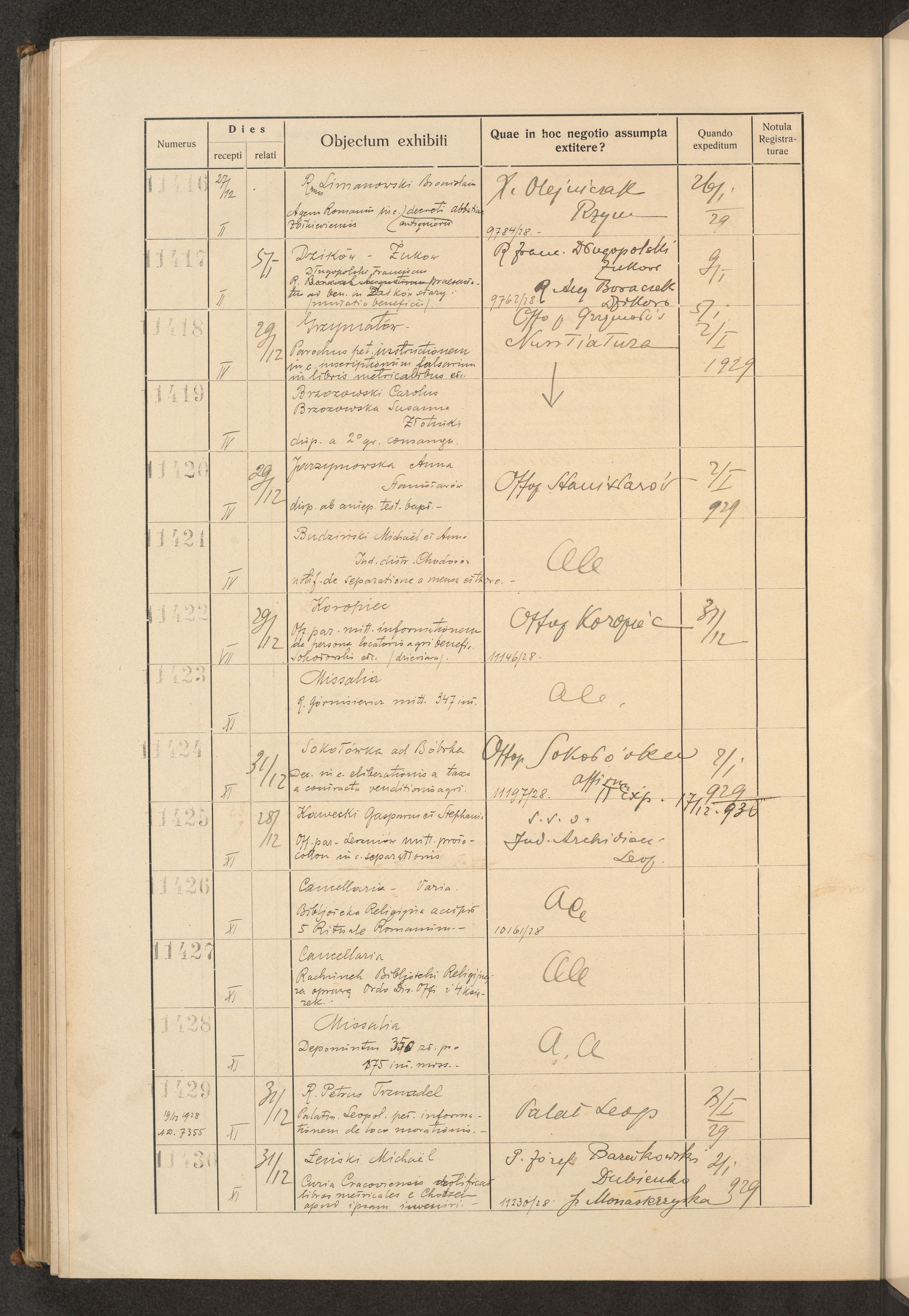 Księga protokołu podawczego konsystorza metropolitalnego obrządku łacińskiego we Lwowie za rok 1928.
