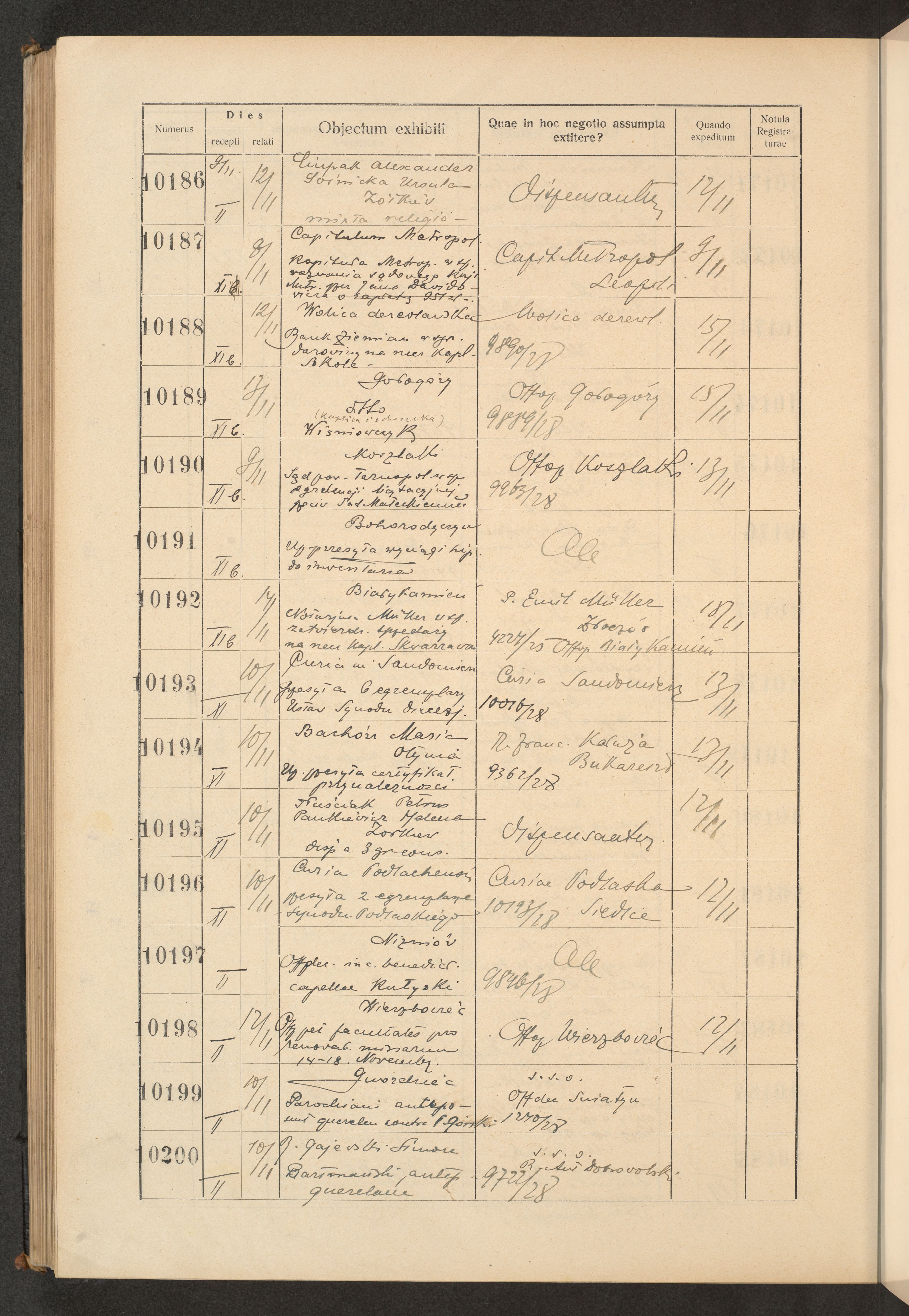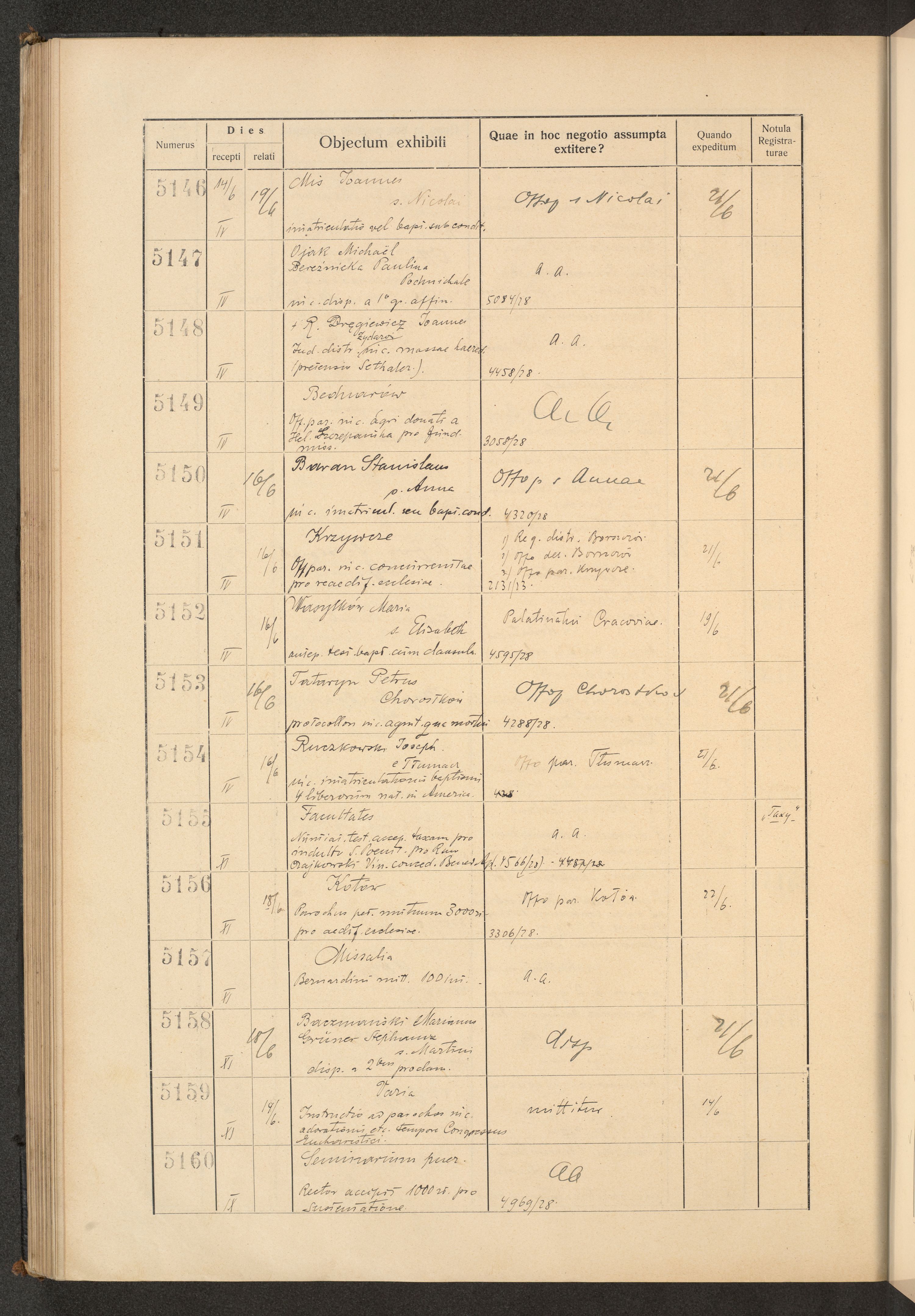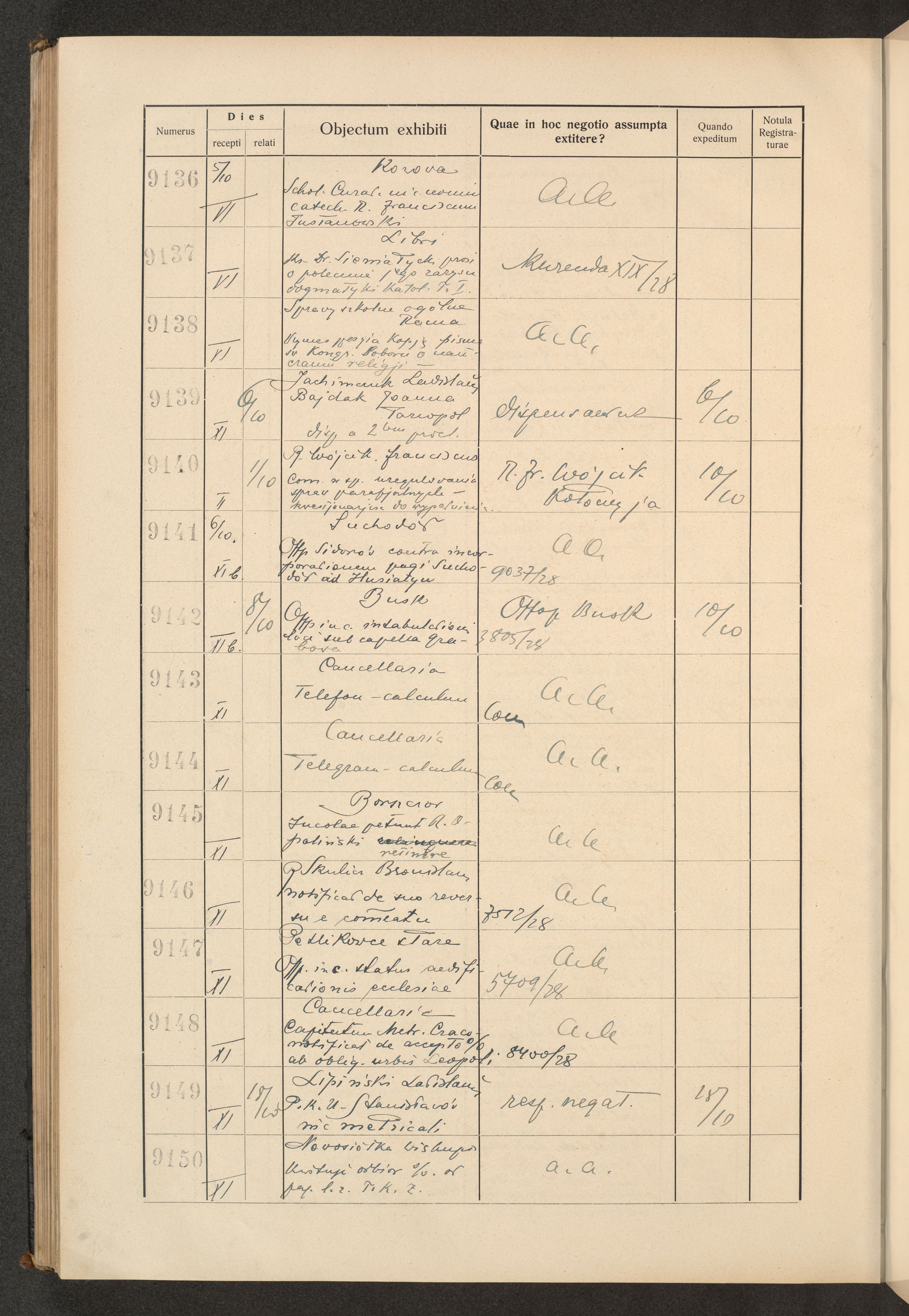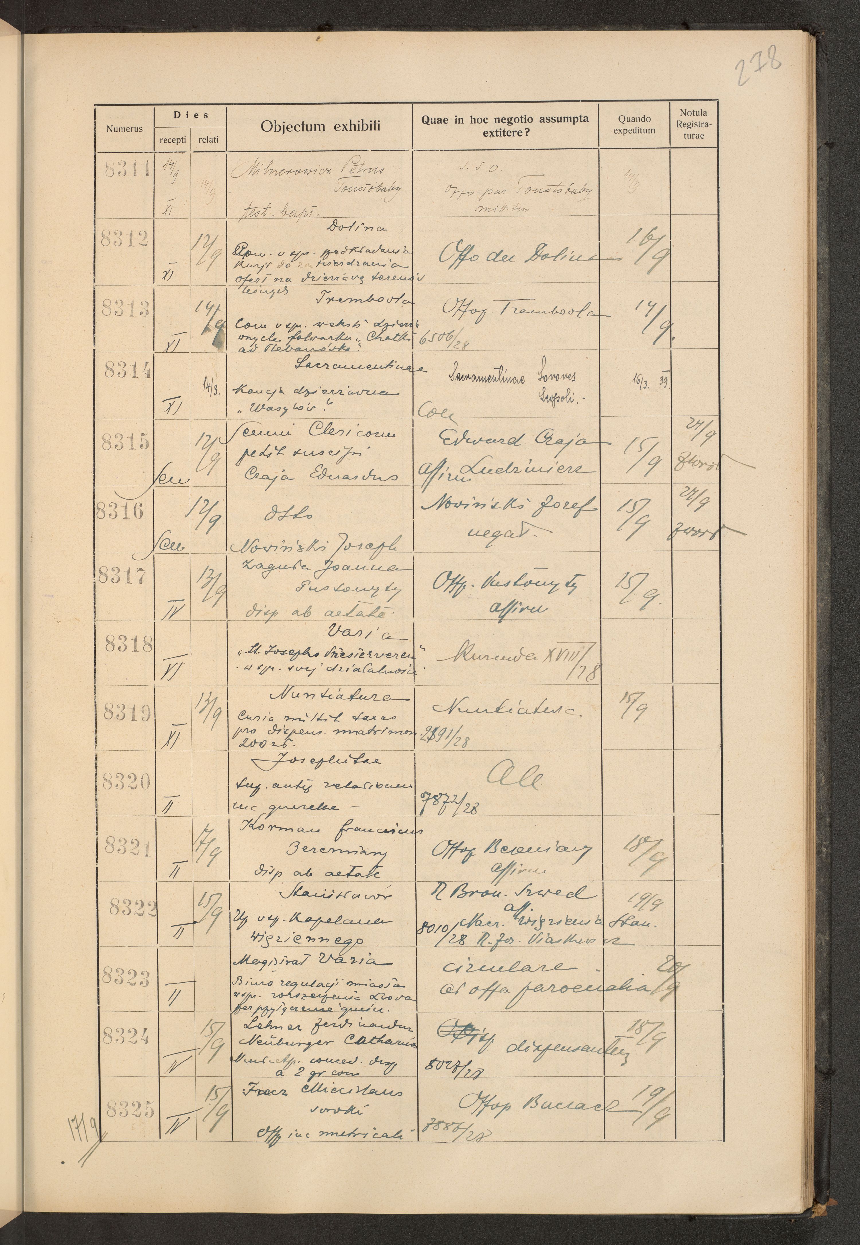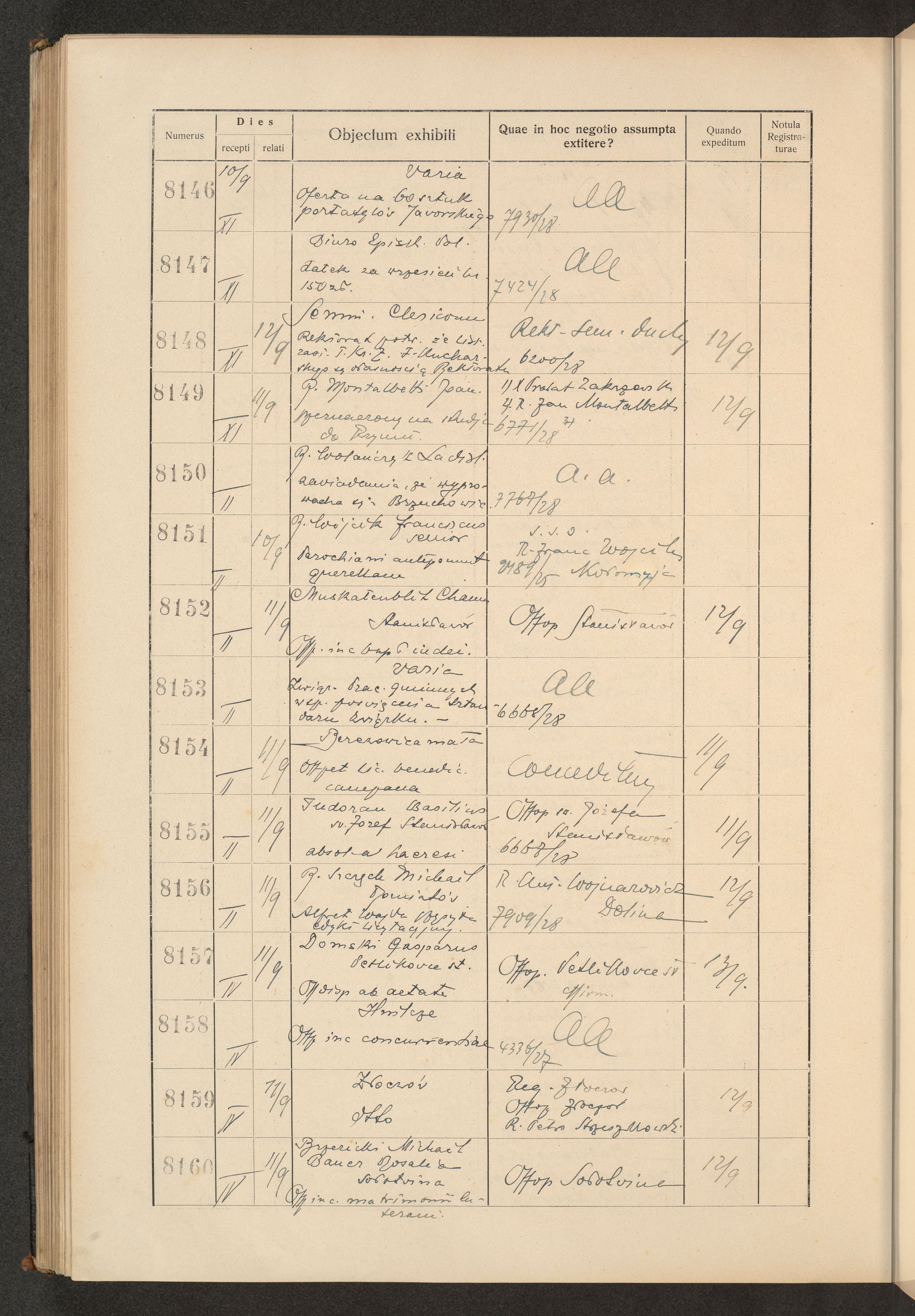 Księga protokołu podawczego konsystorza metropolitalnego obrządku łacińskiego we Lwowie za rok 1928.