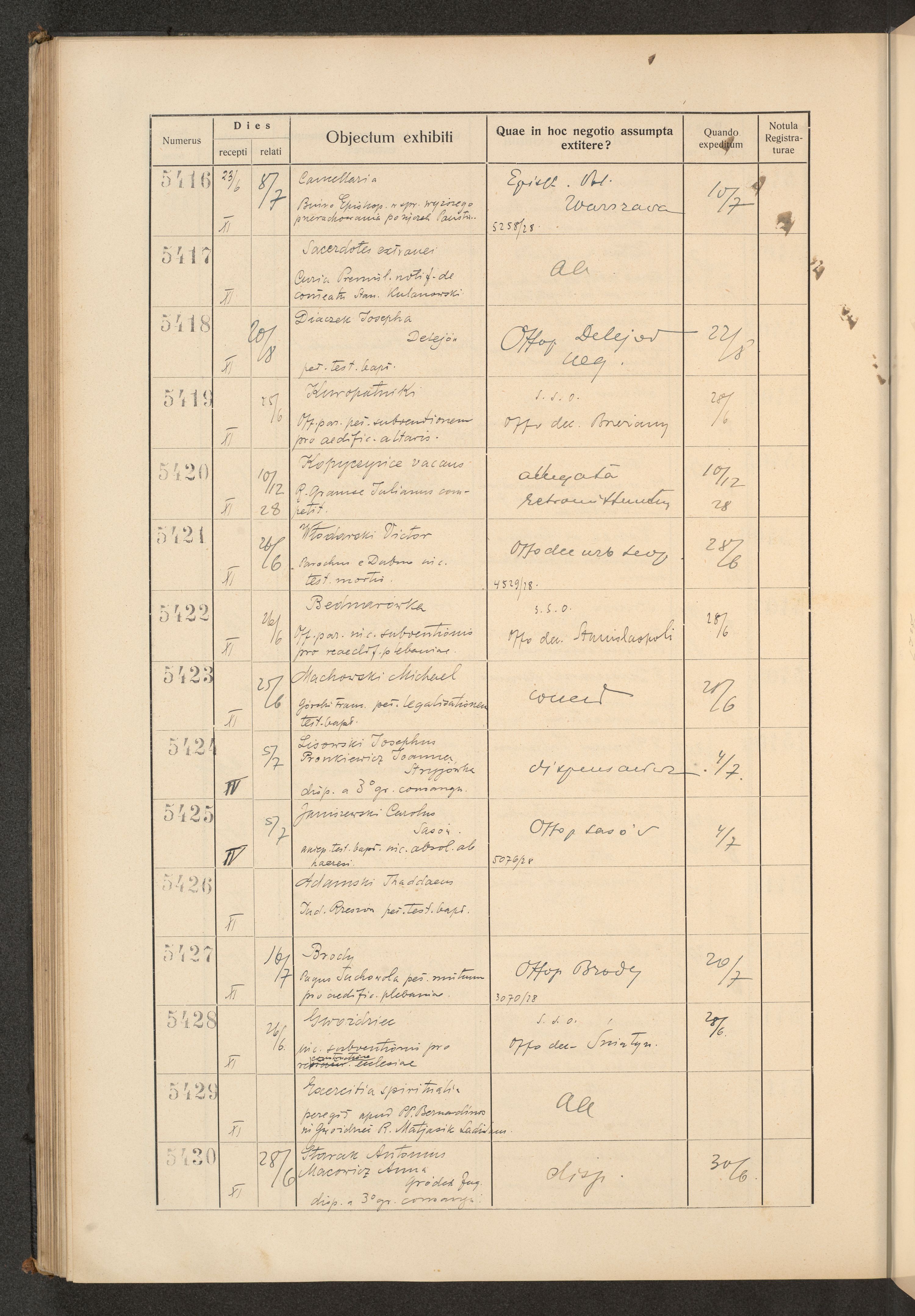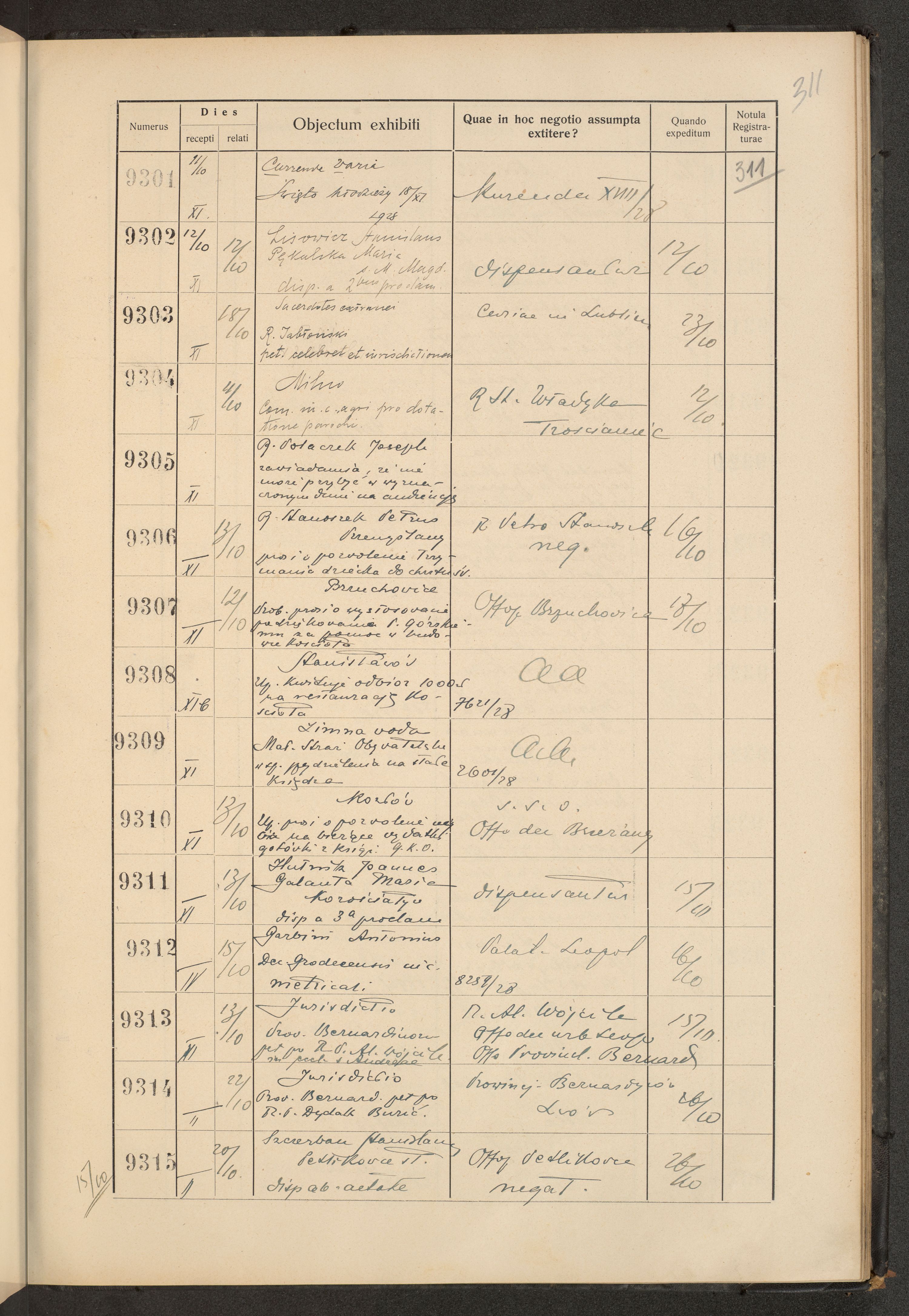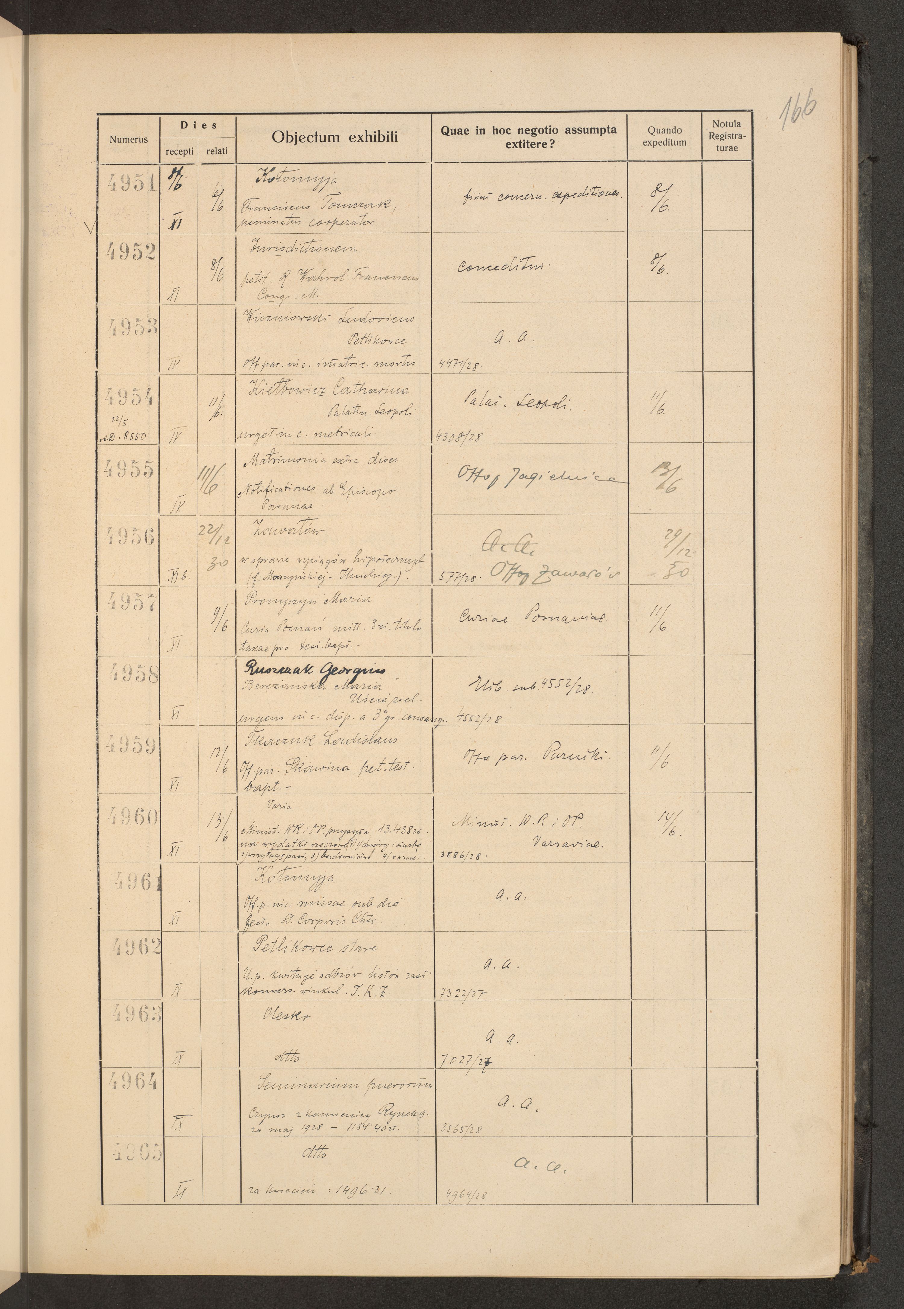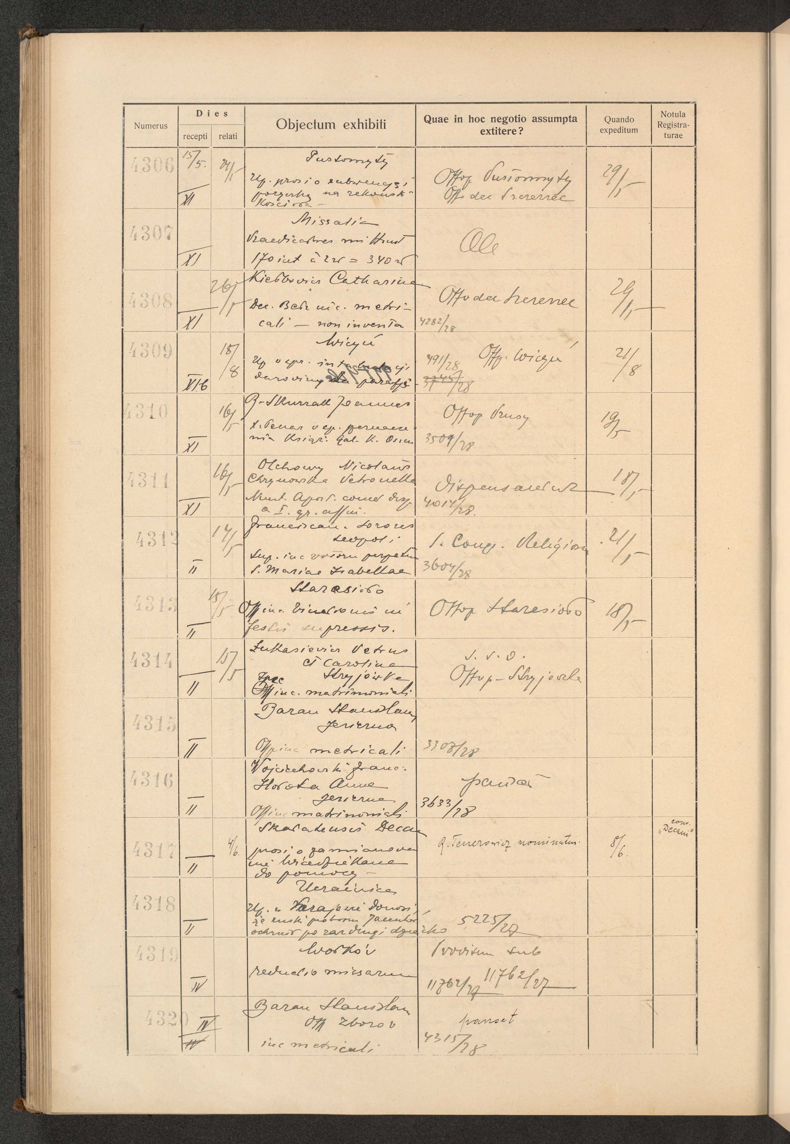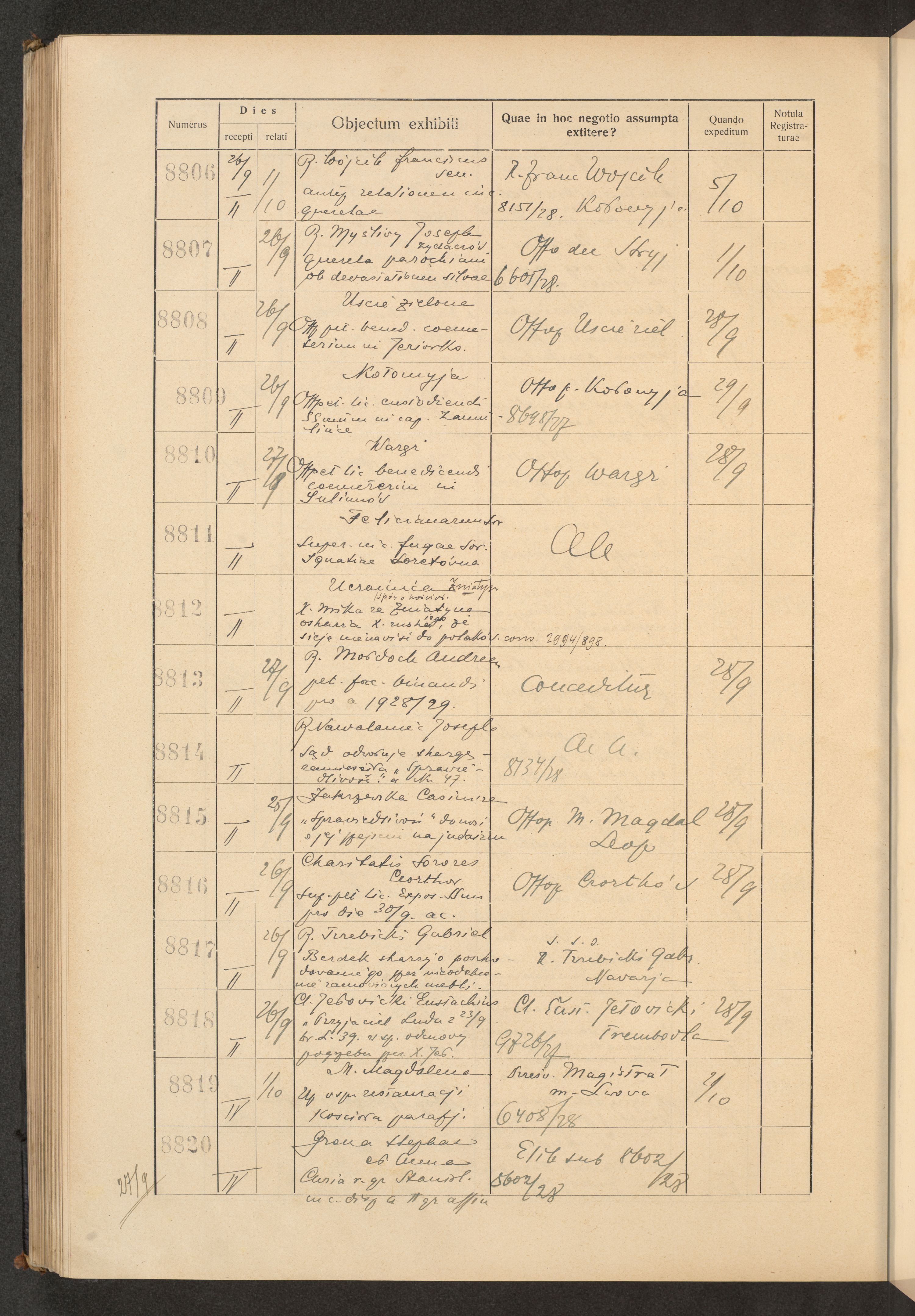 Księga protokołu podawczego konsystorza metropolitalnego obrządku łacińskiego we Lwowie za rok 1928.