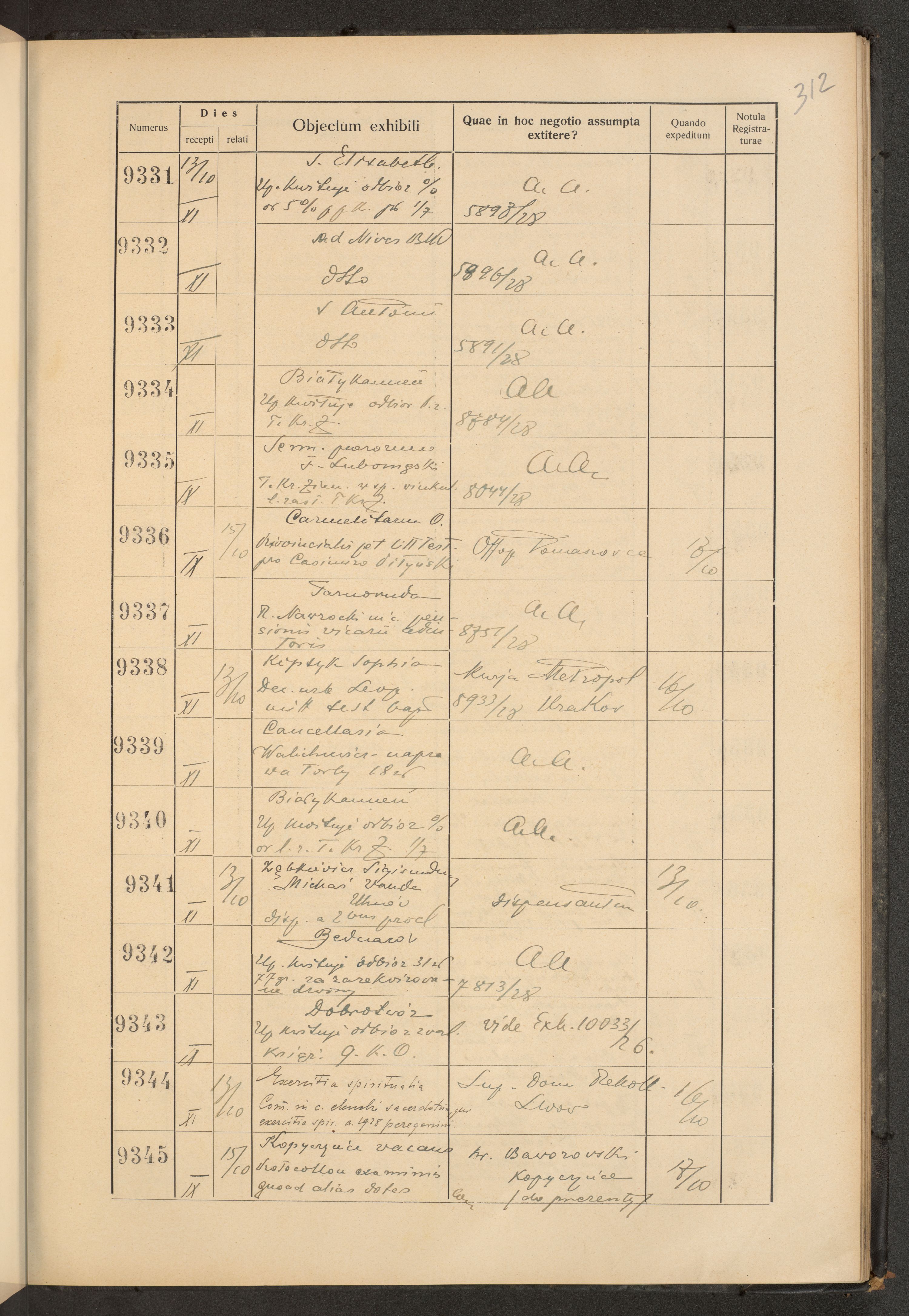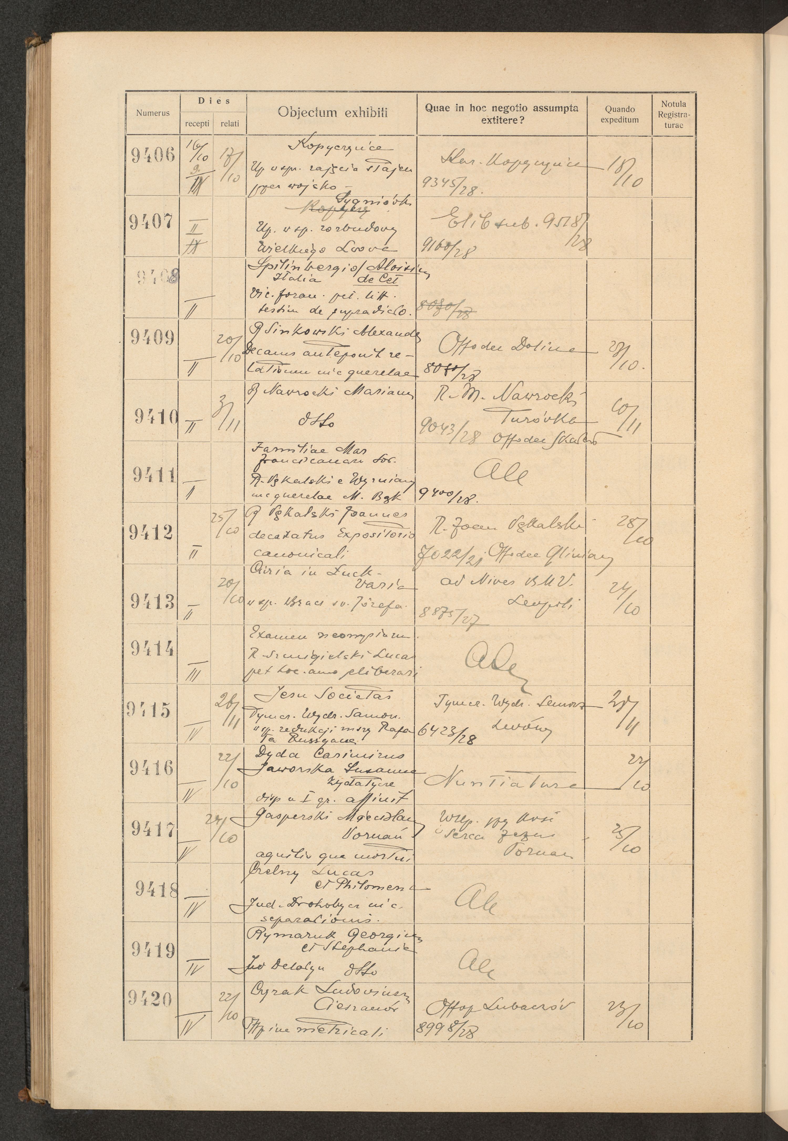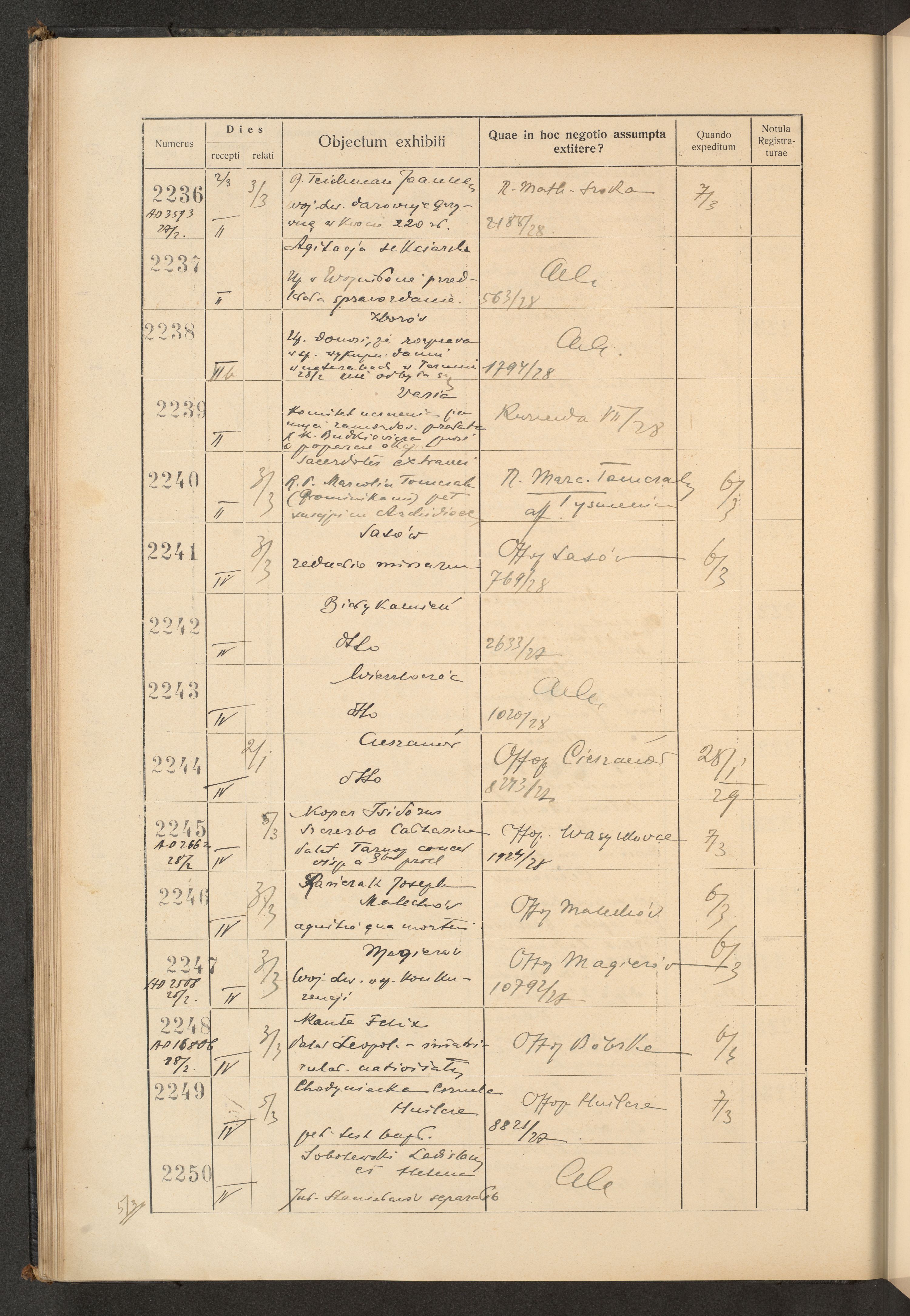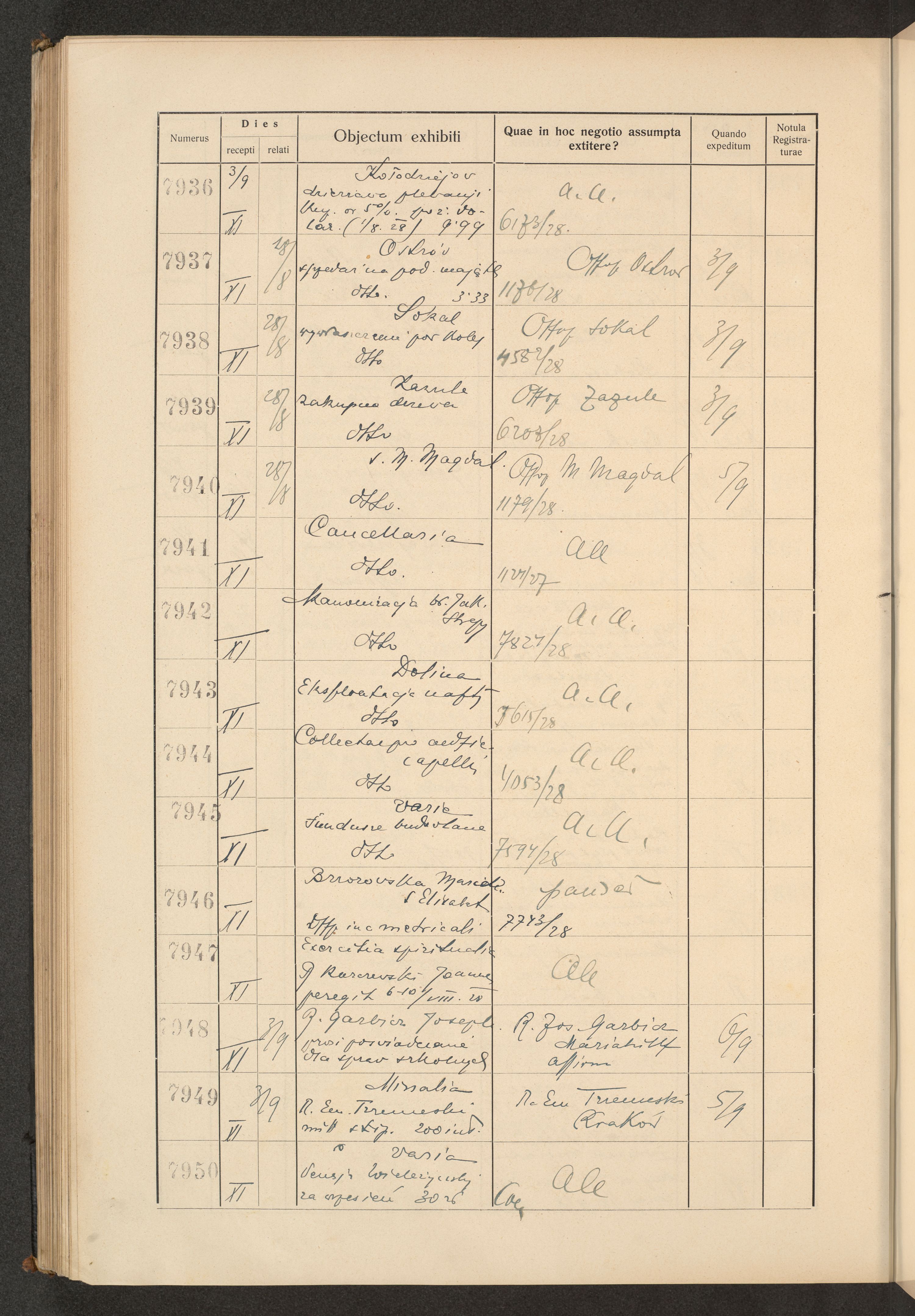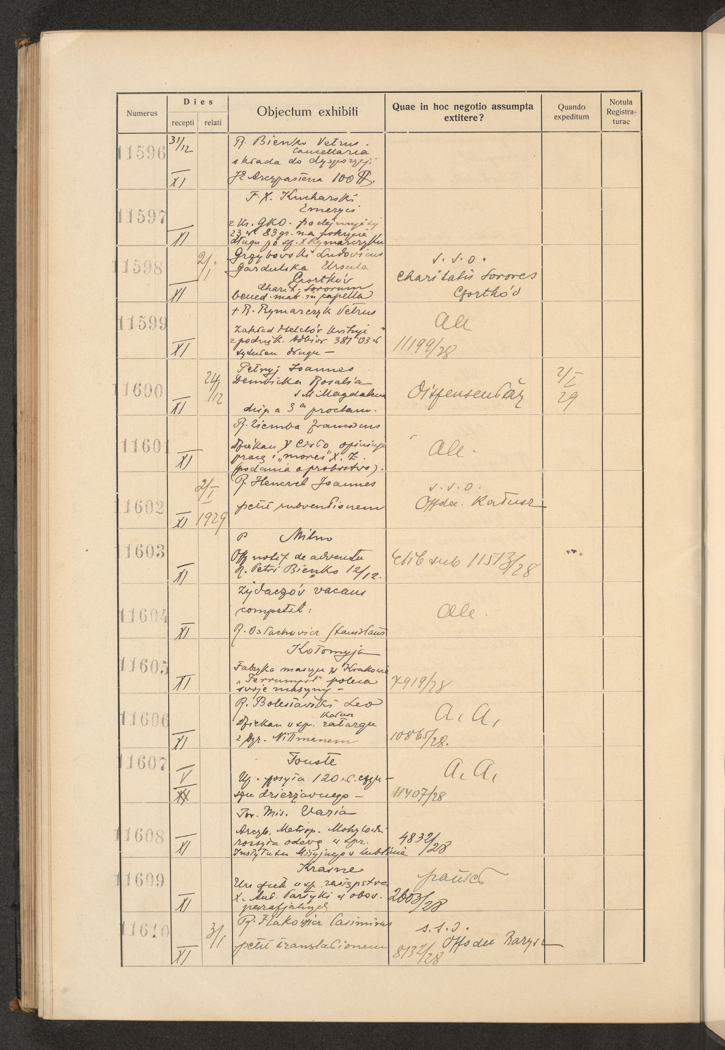 Księga protokołu podawczego konsystorza metropolitalnego obrządku łacińskiego we Lwowie za rok 1928.