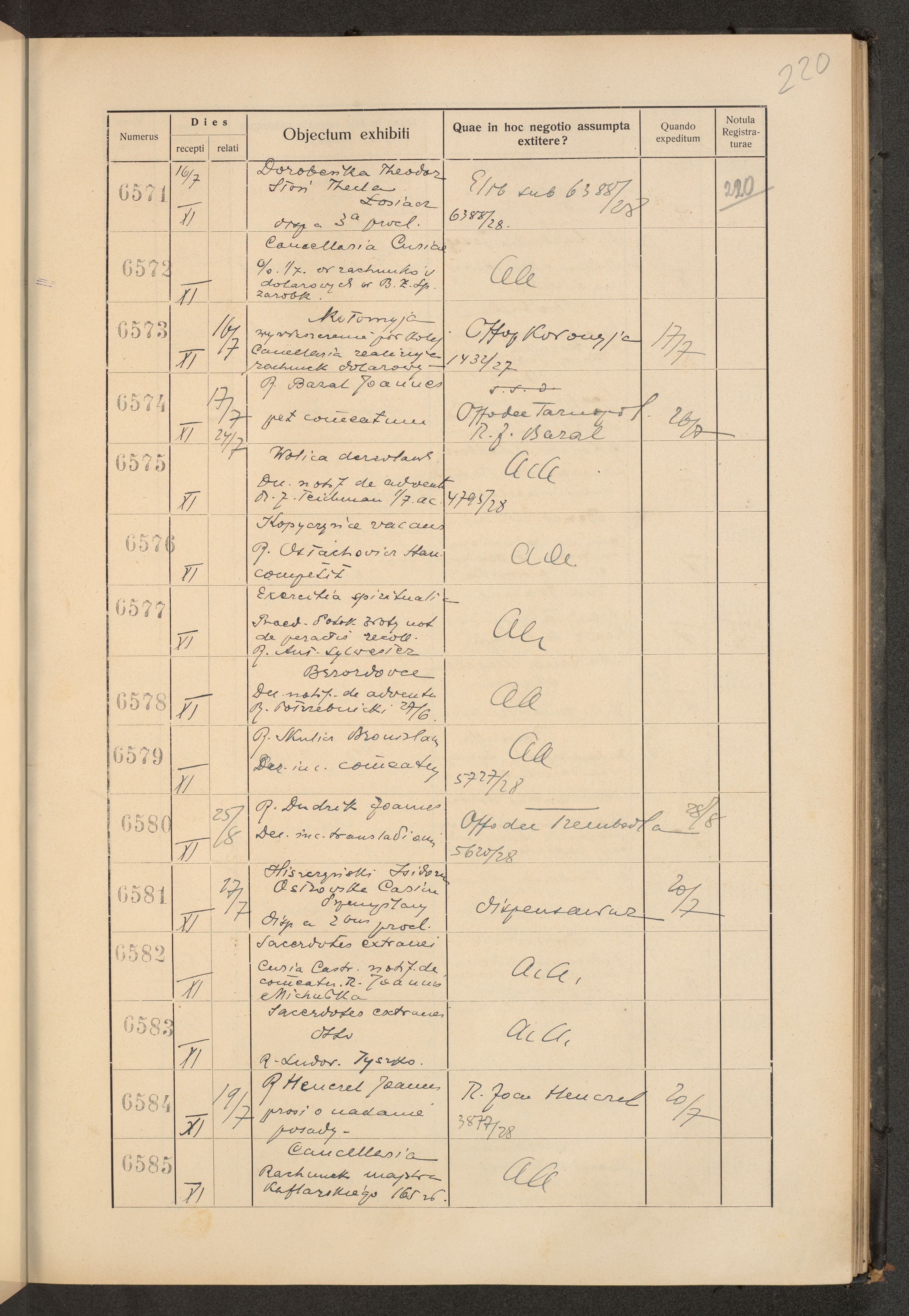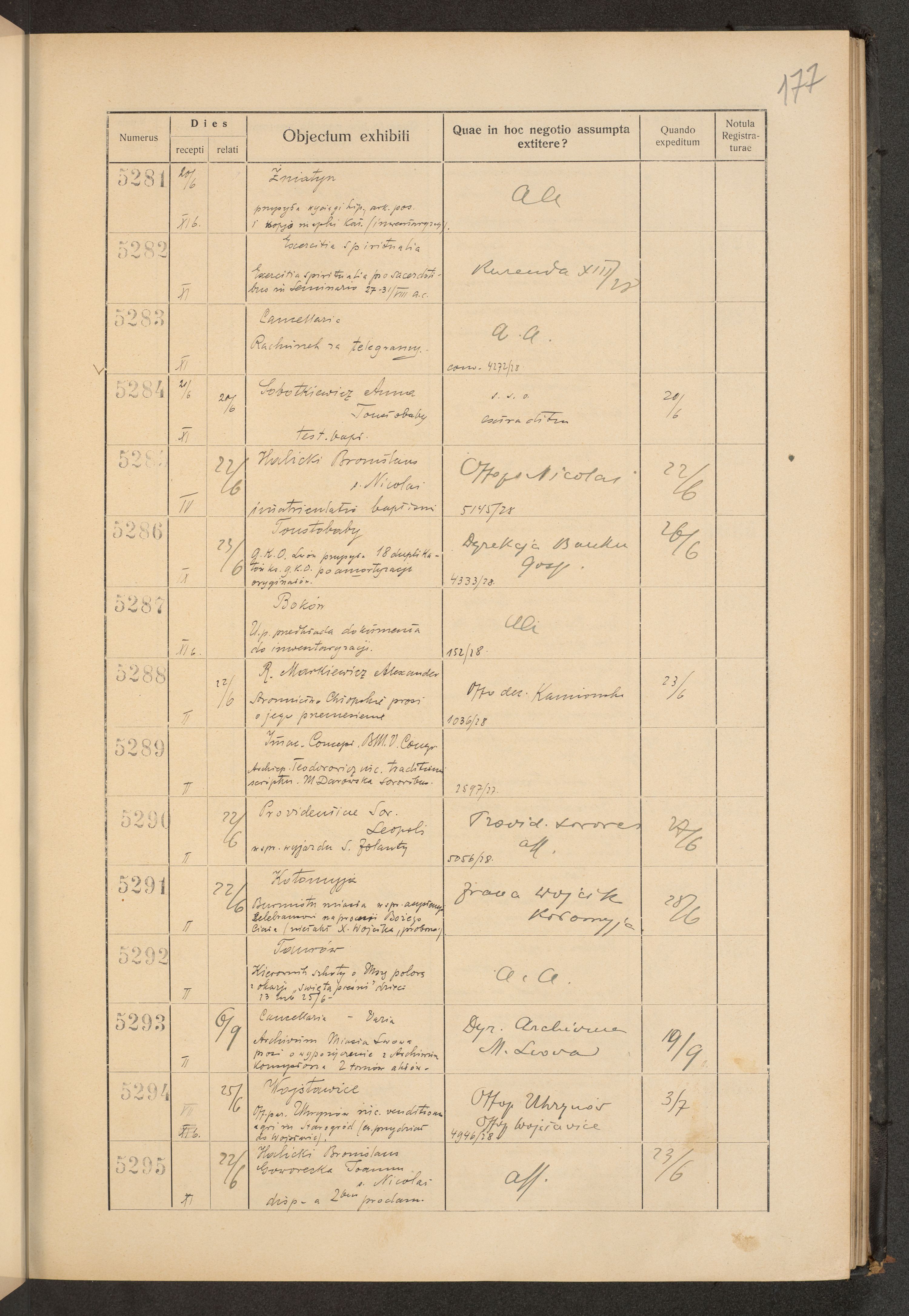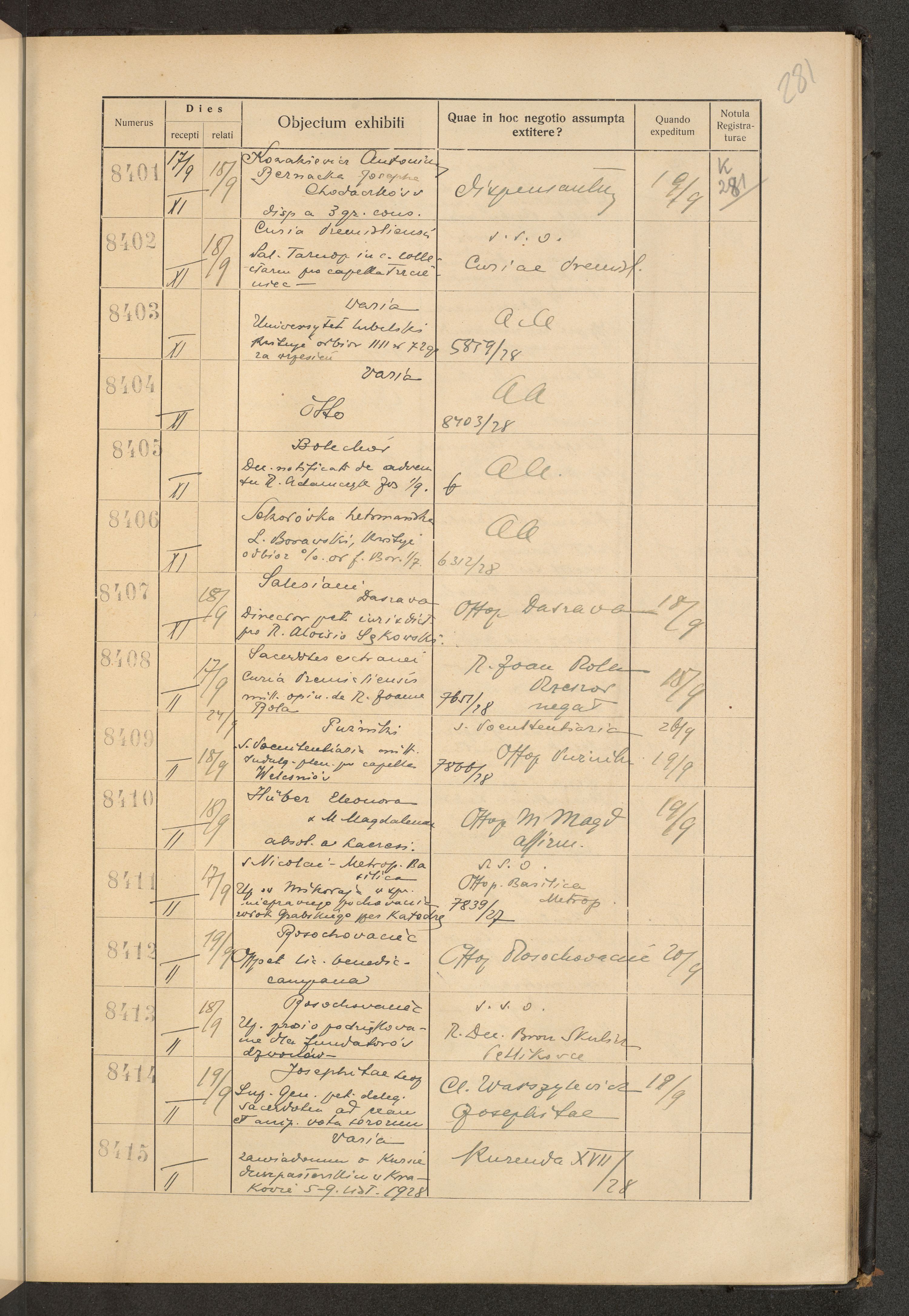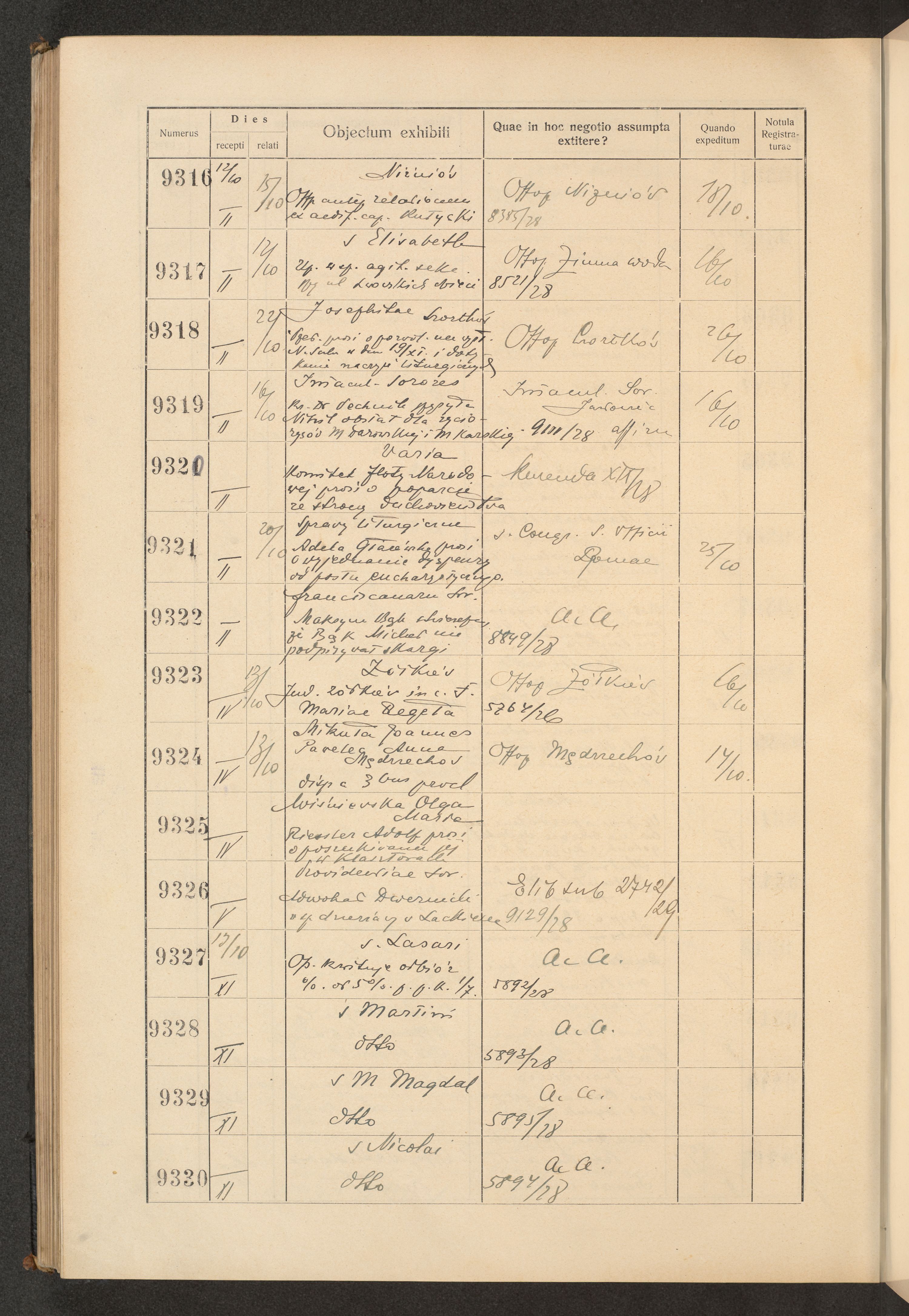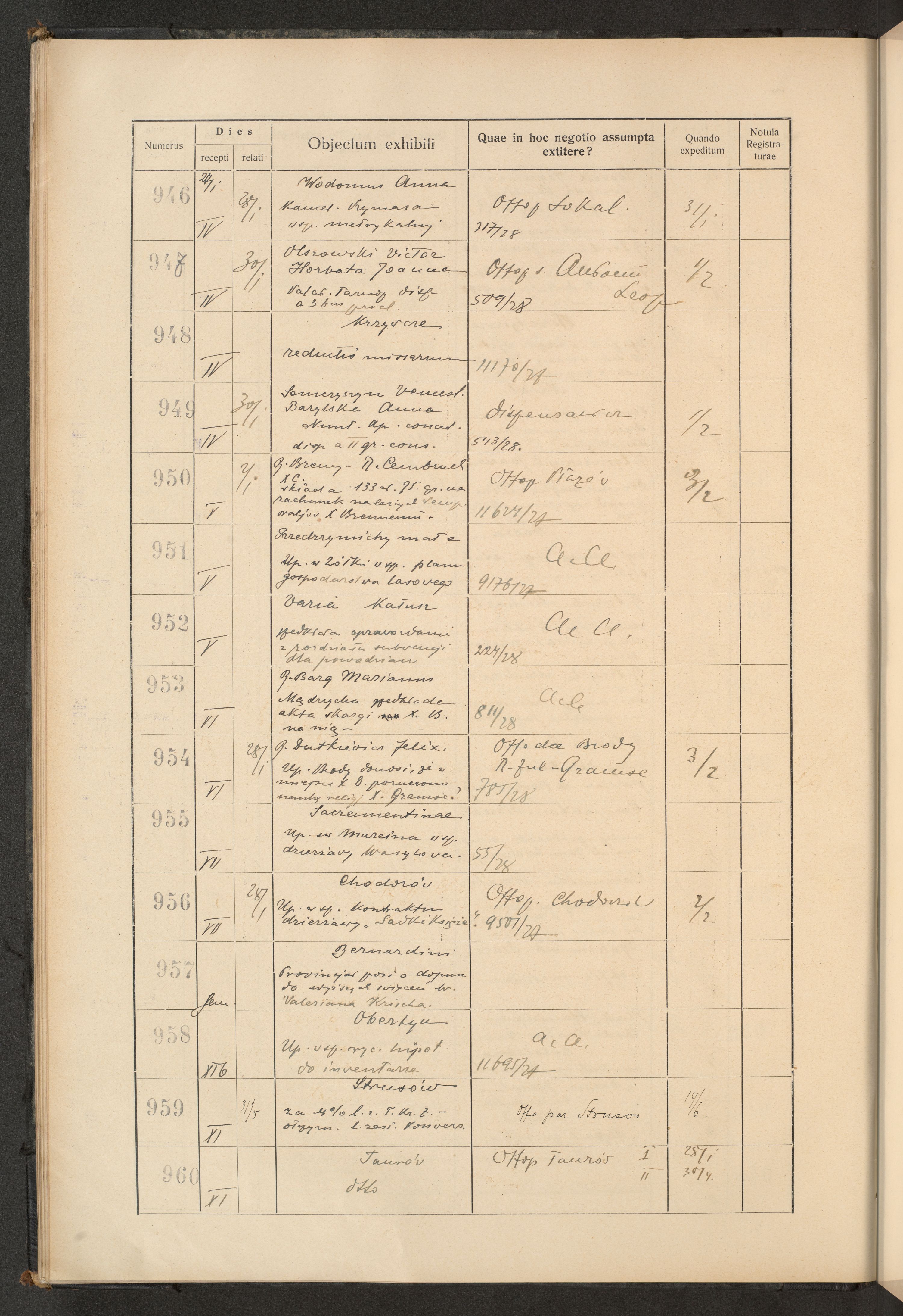 Księga protokołu podawczego konsystorza metropolitalnego obrządku łacińskiego we Lwowie za rok 1928.