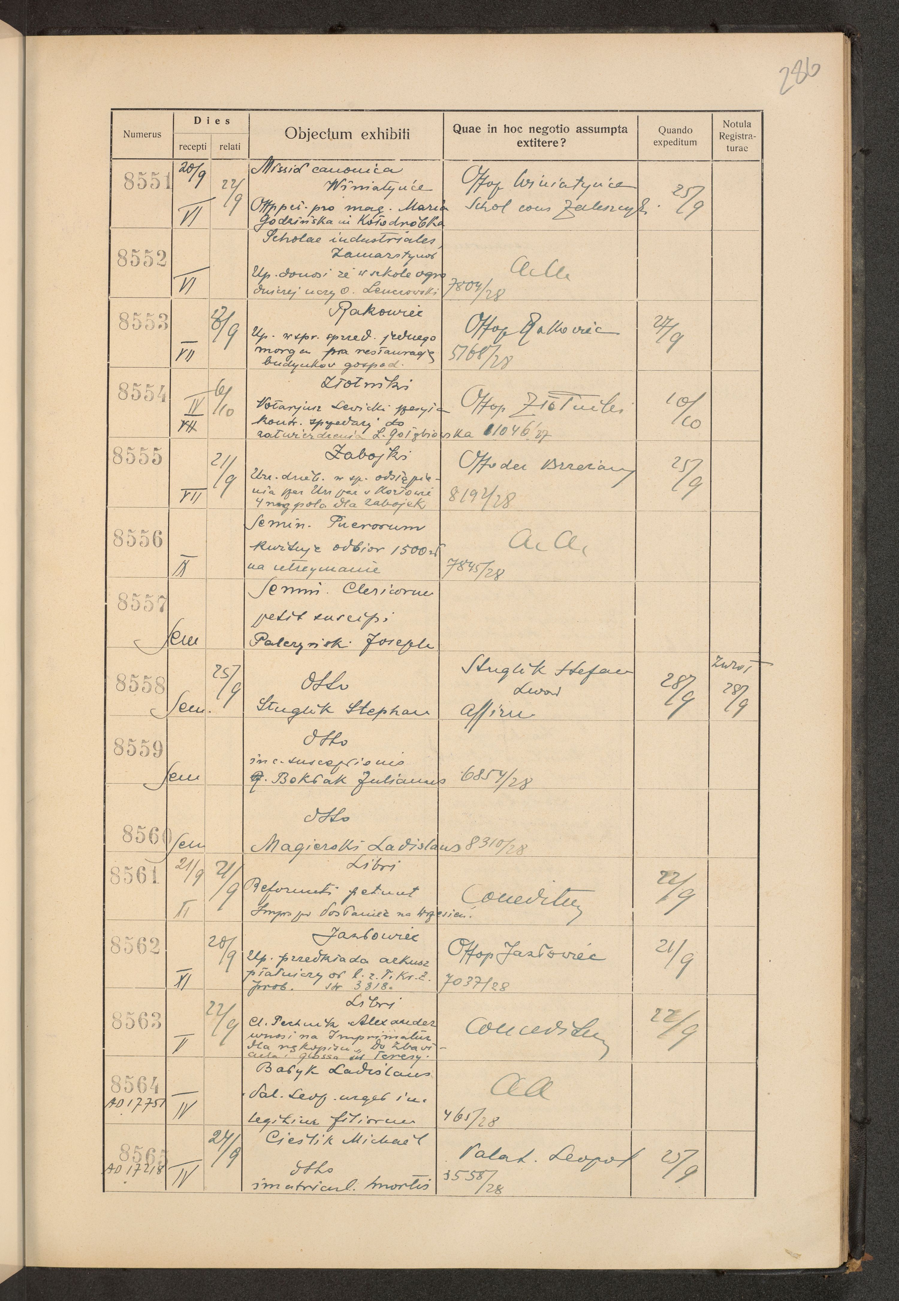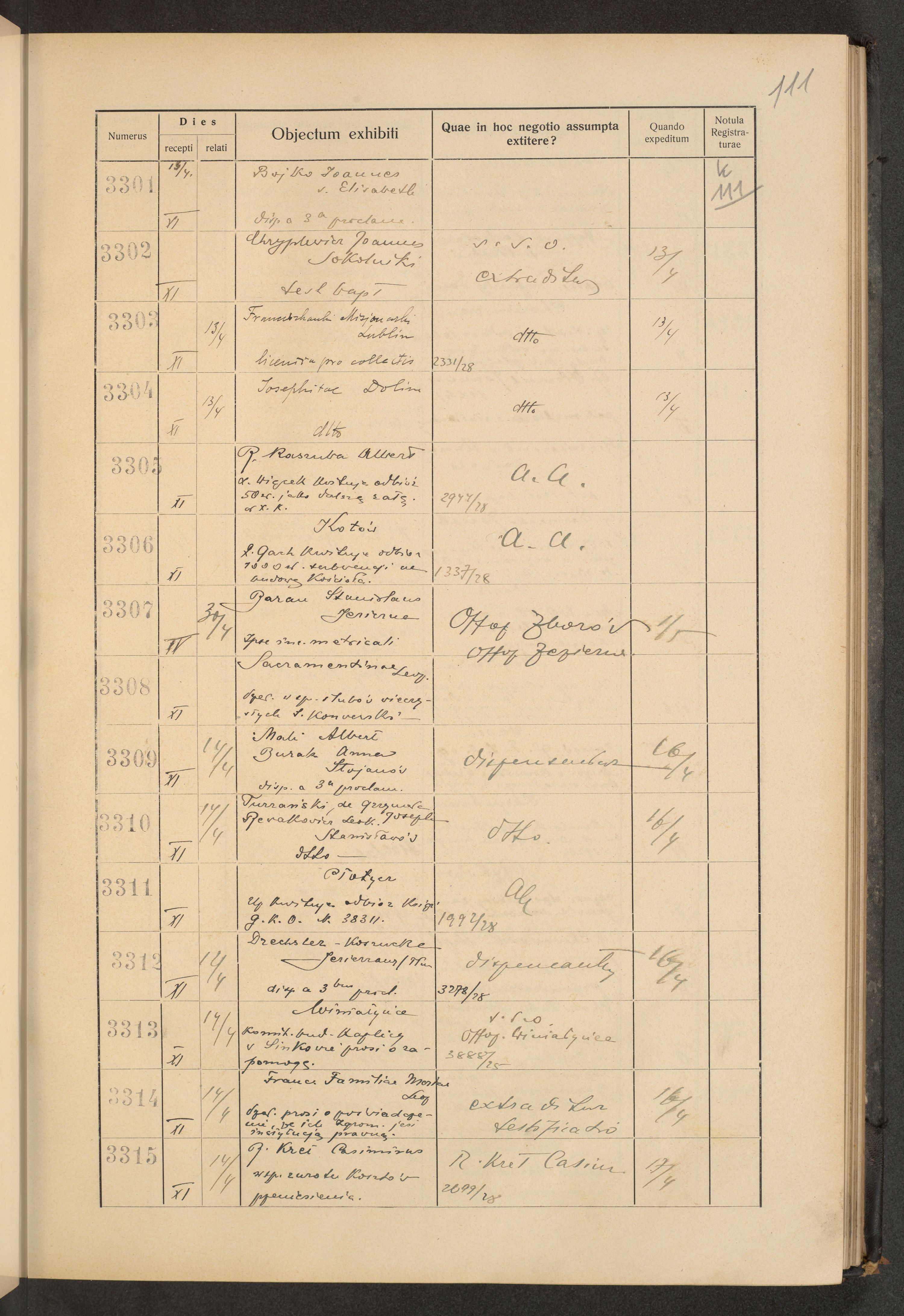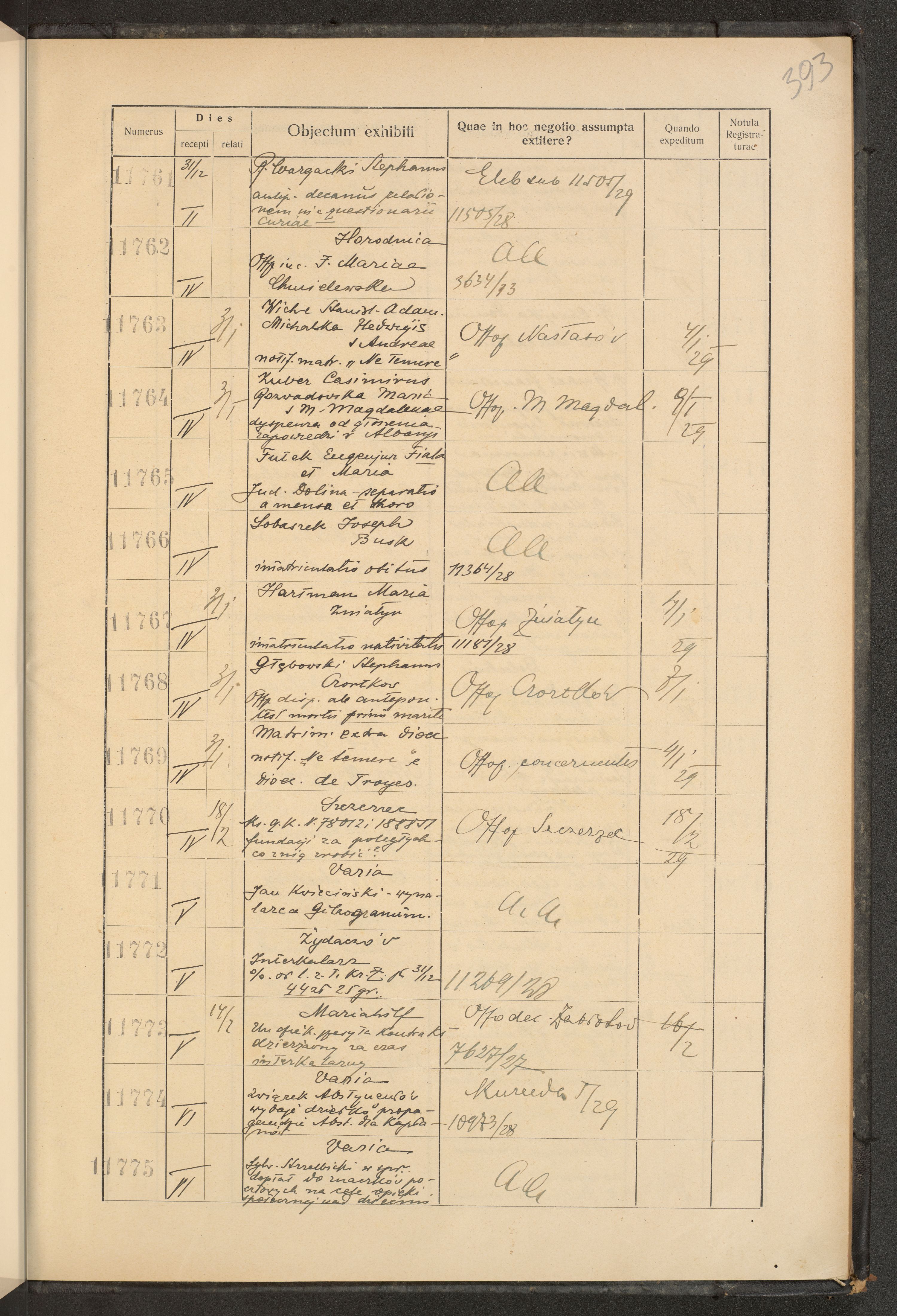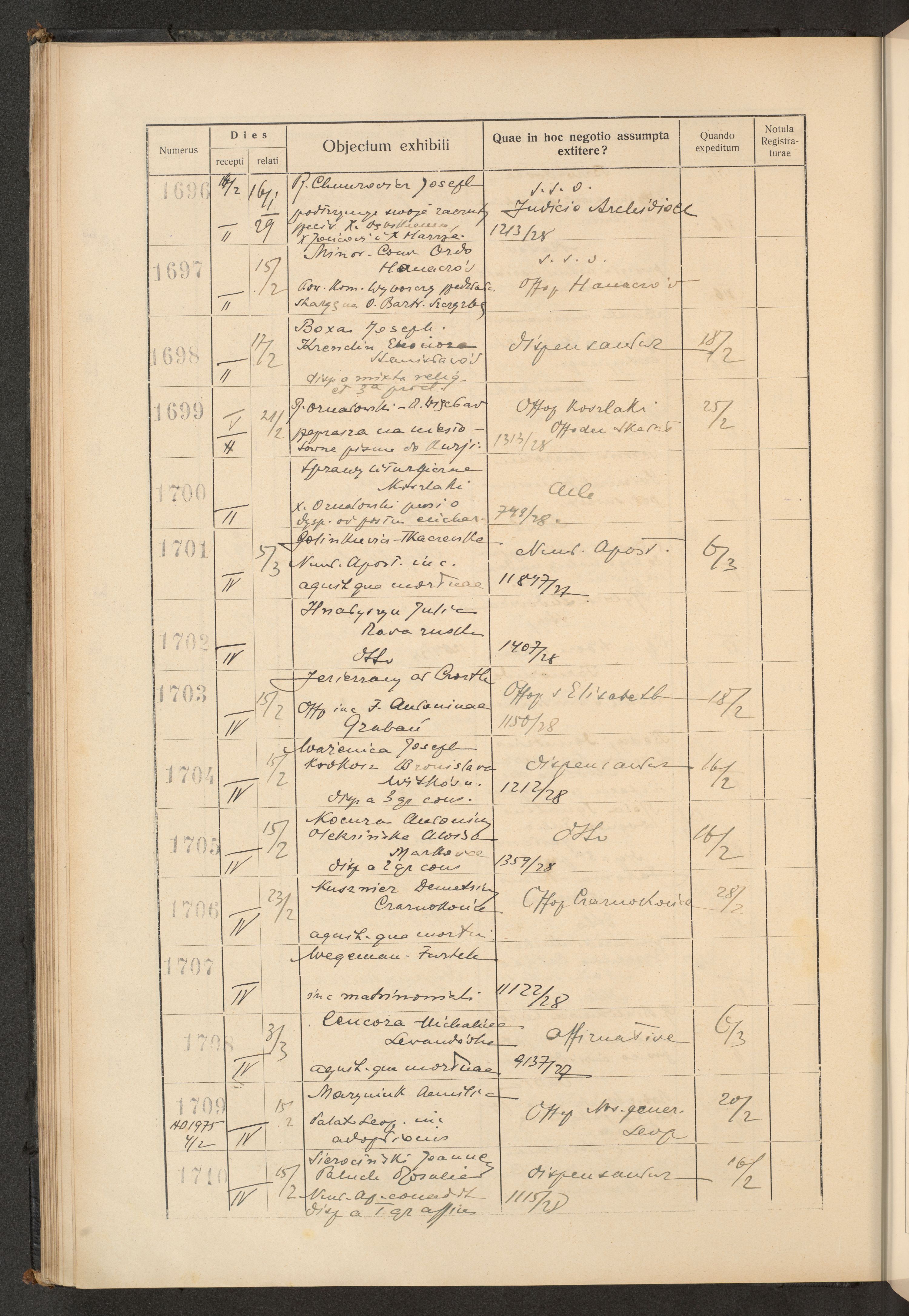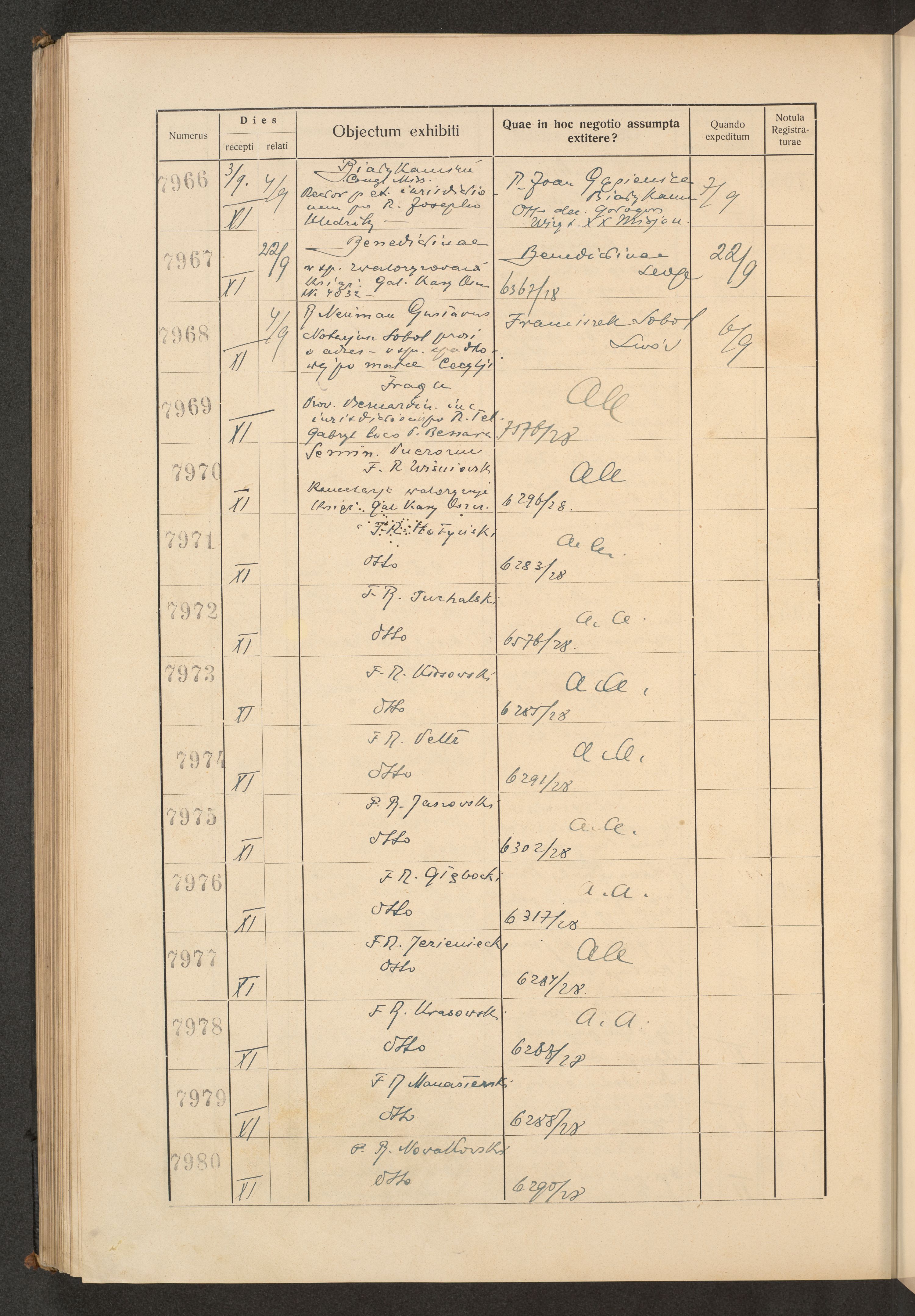 Księga protokołu podawczego konsystorza metropolitalnego obrządku łacińskiego we Lwowie za rok 1928.