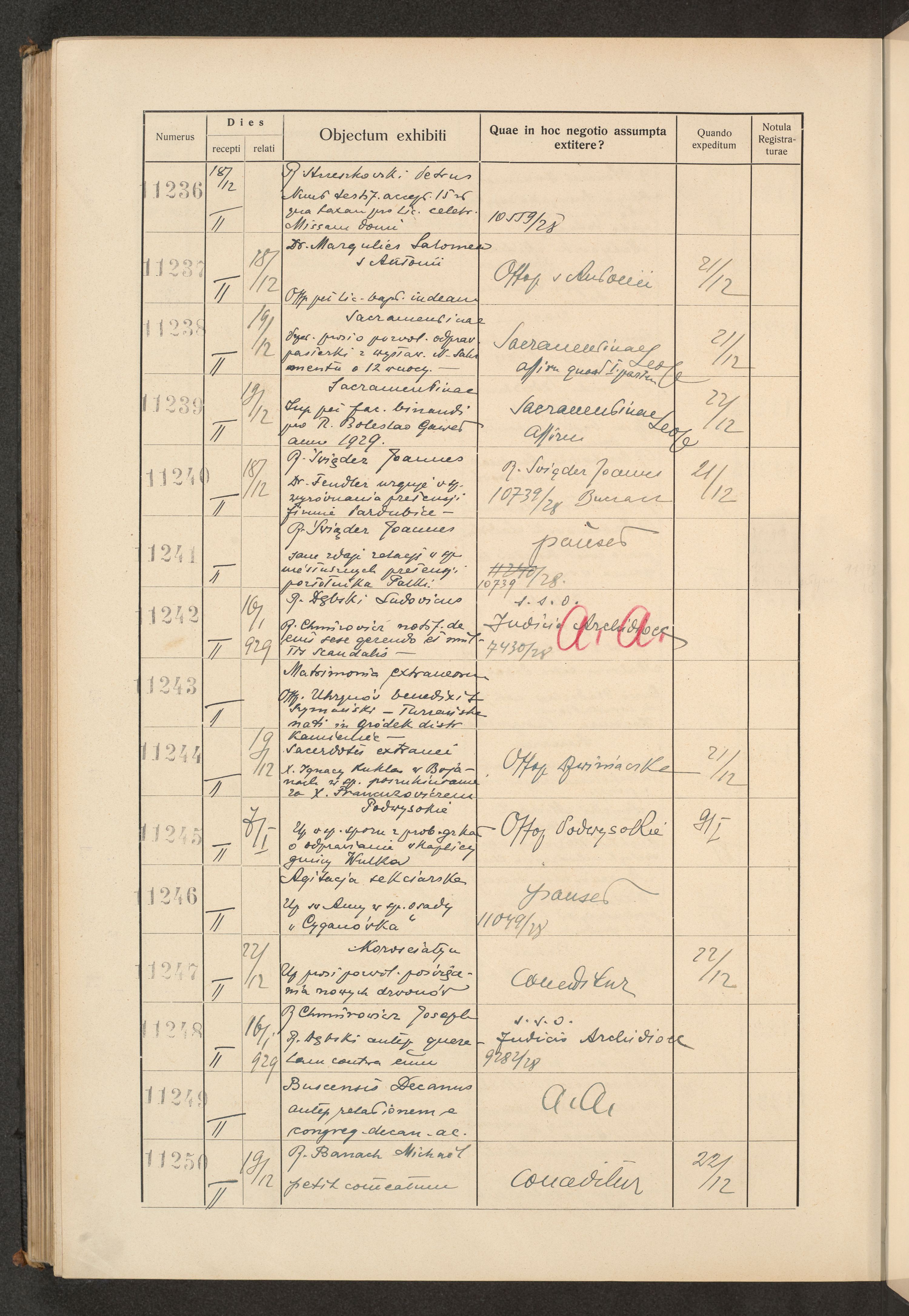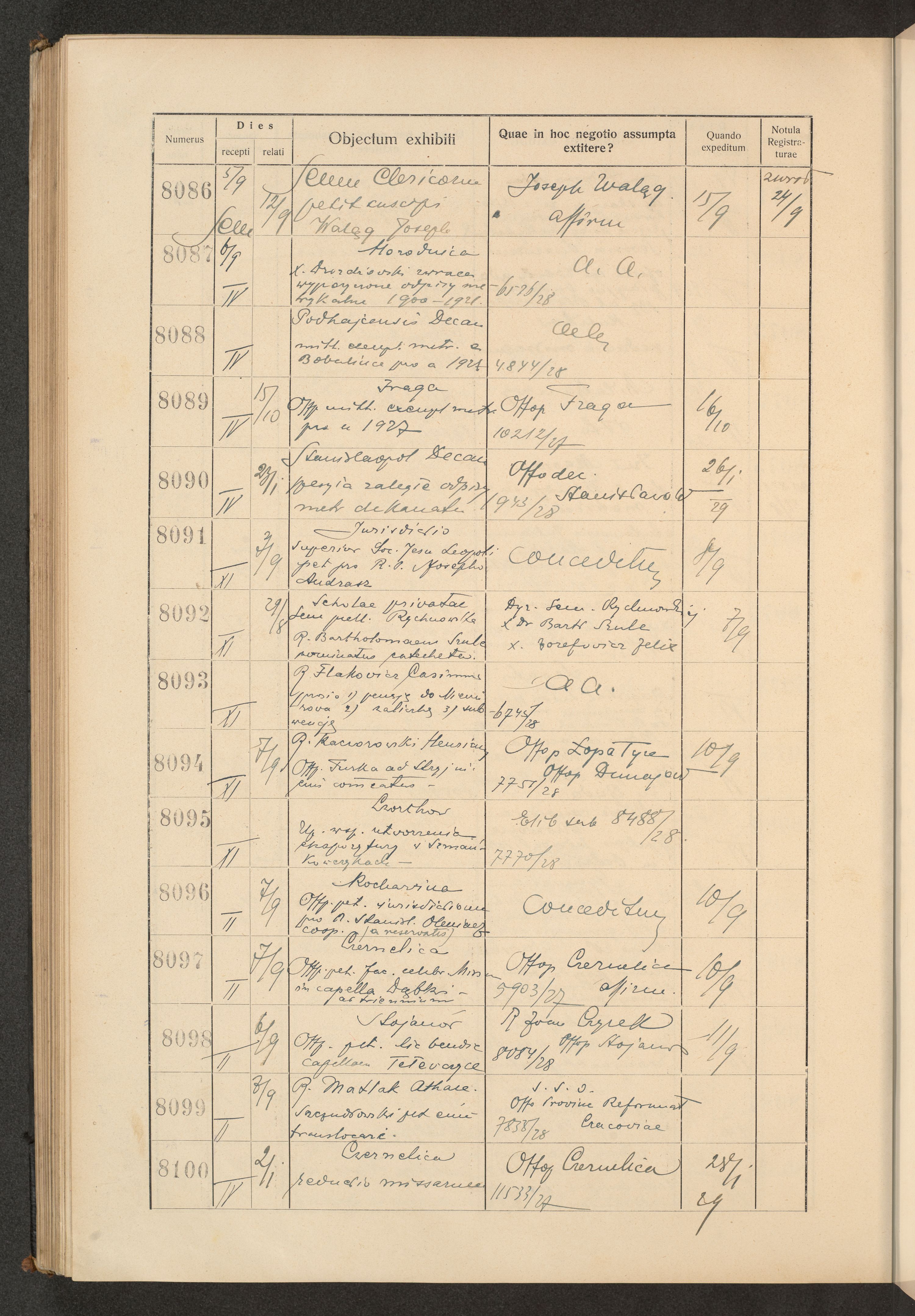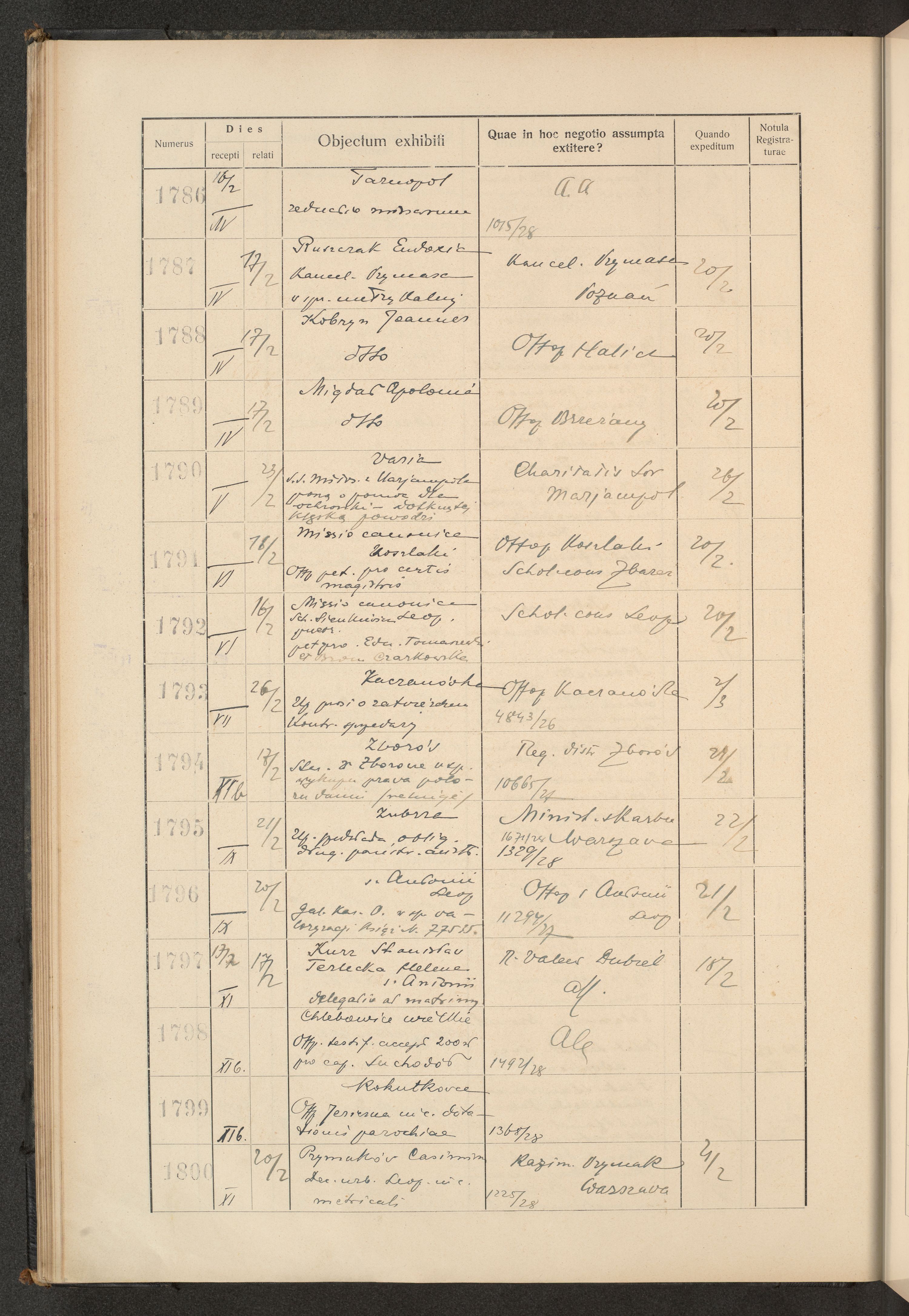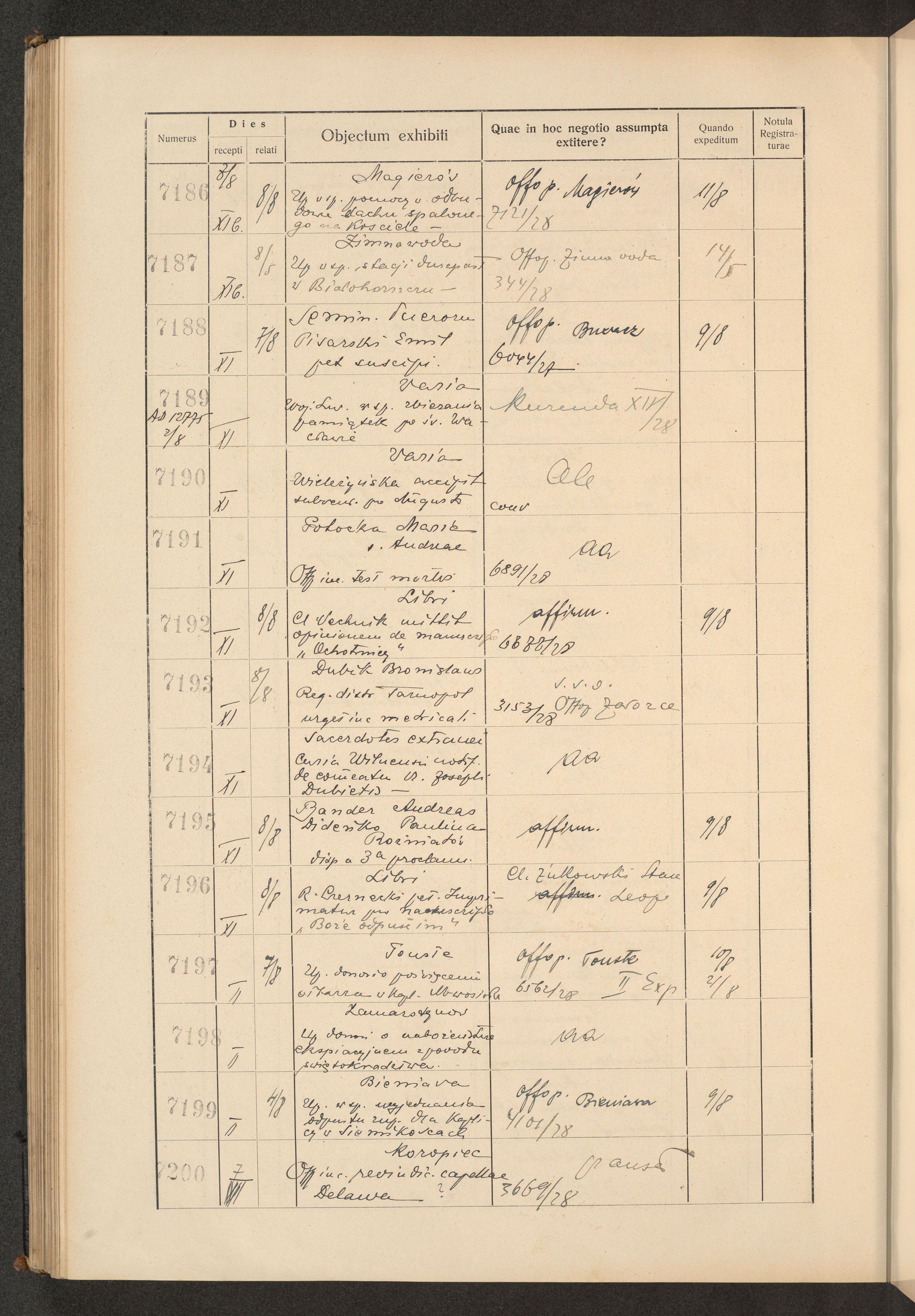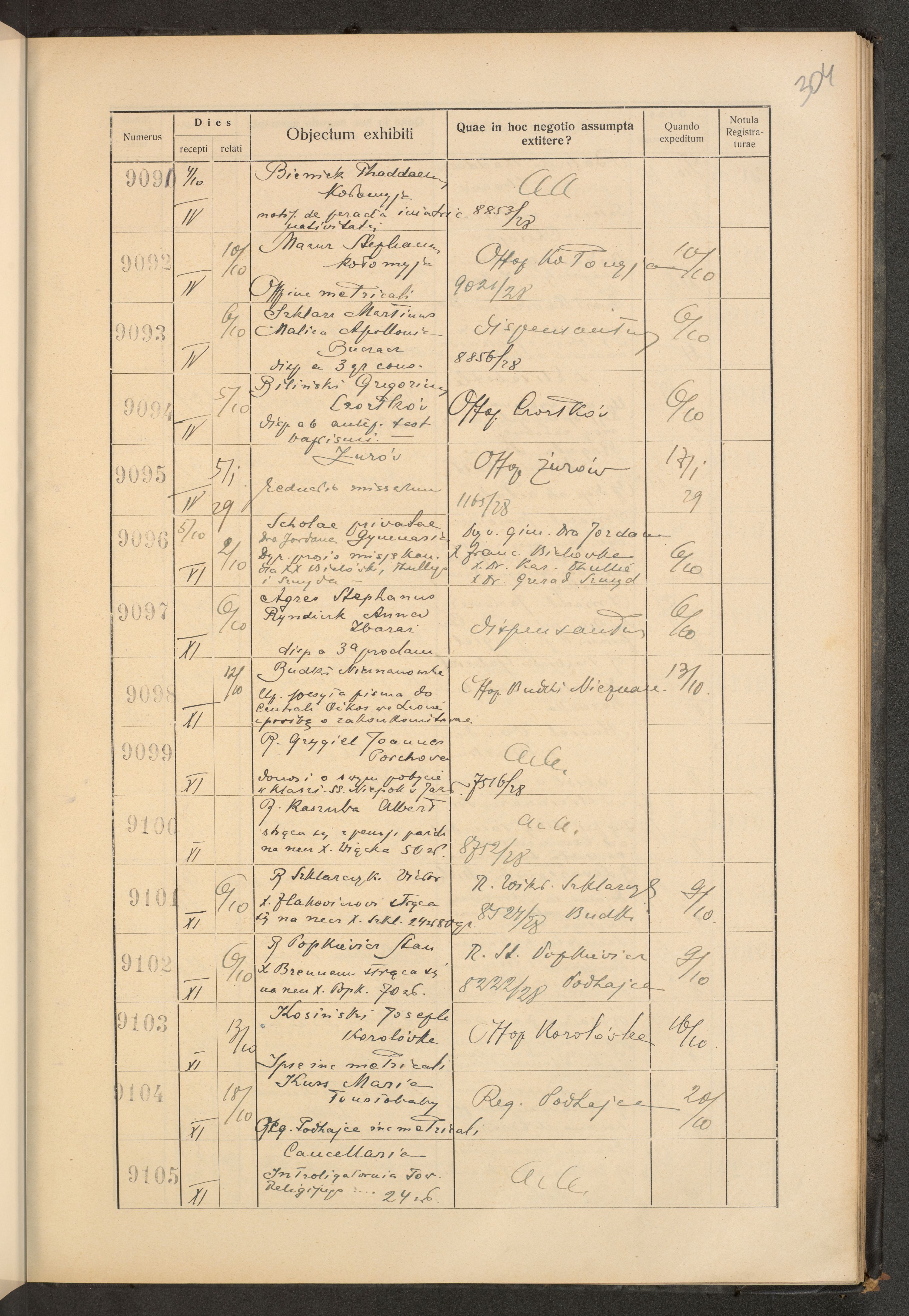 Księga protokołu podawczego konsystorza metropolitalnego obrządku łacińskiego we Lwowie za rok 1928.