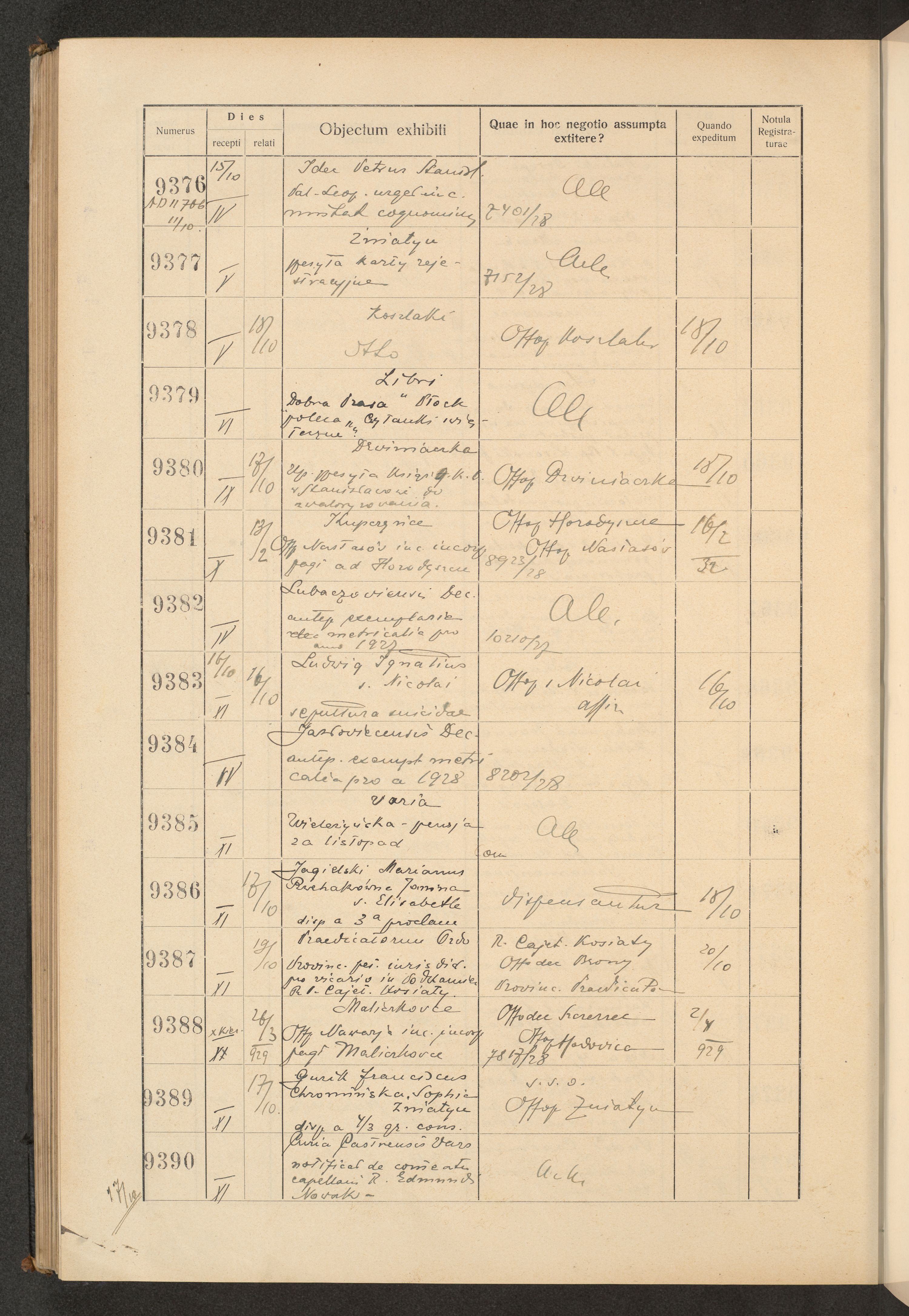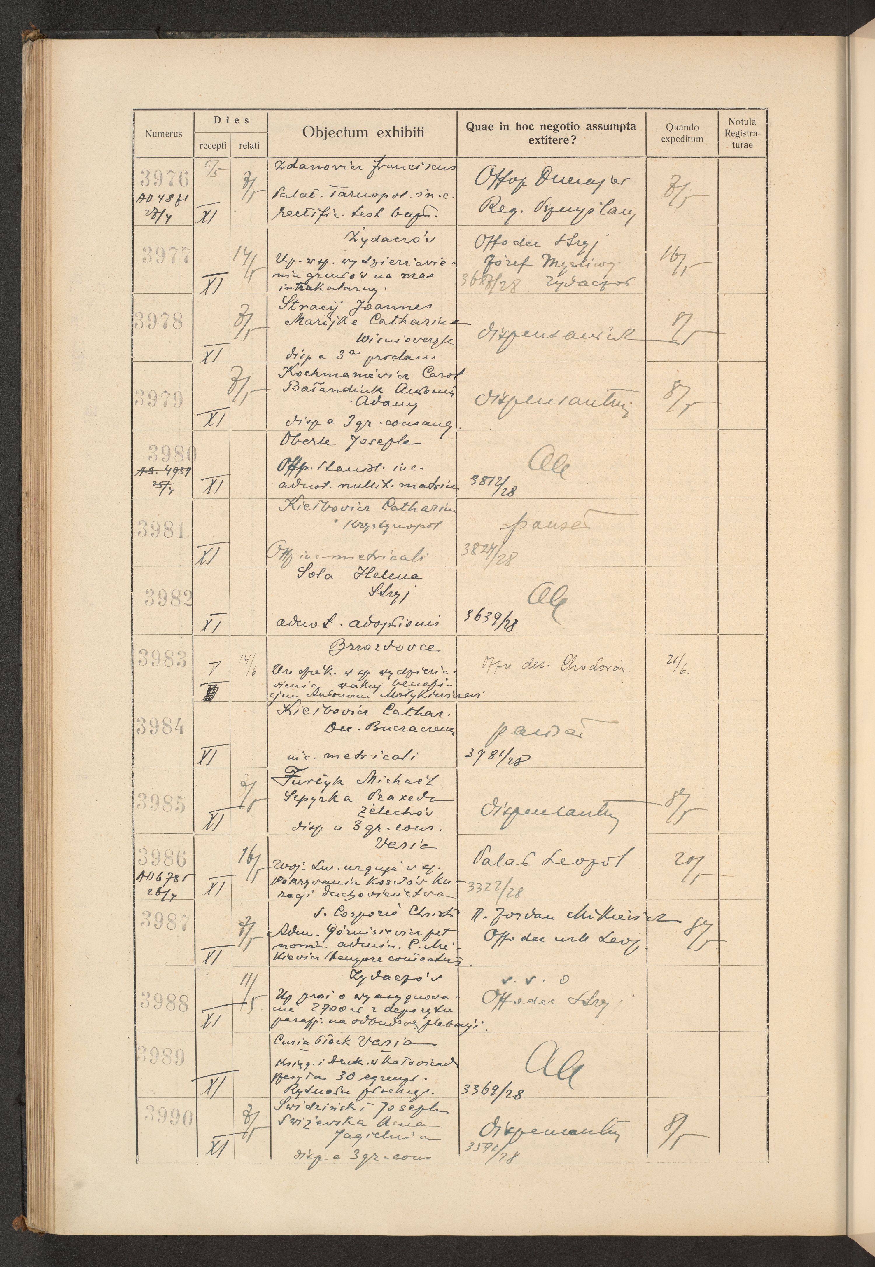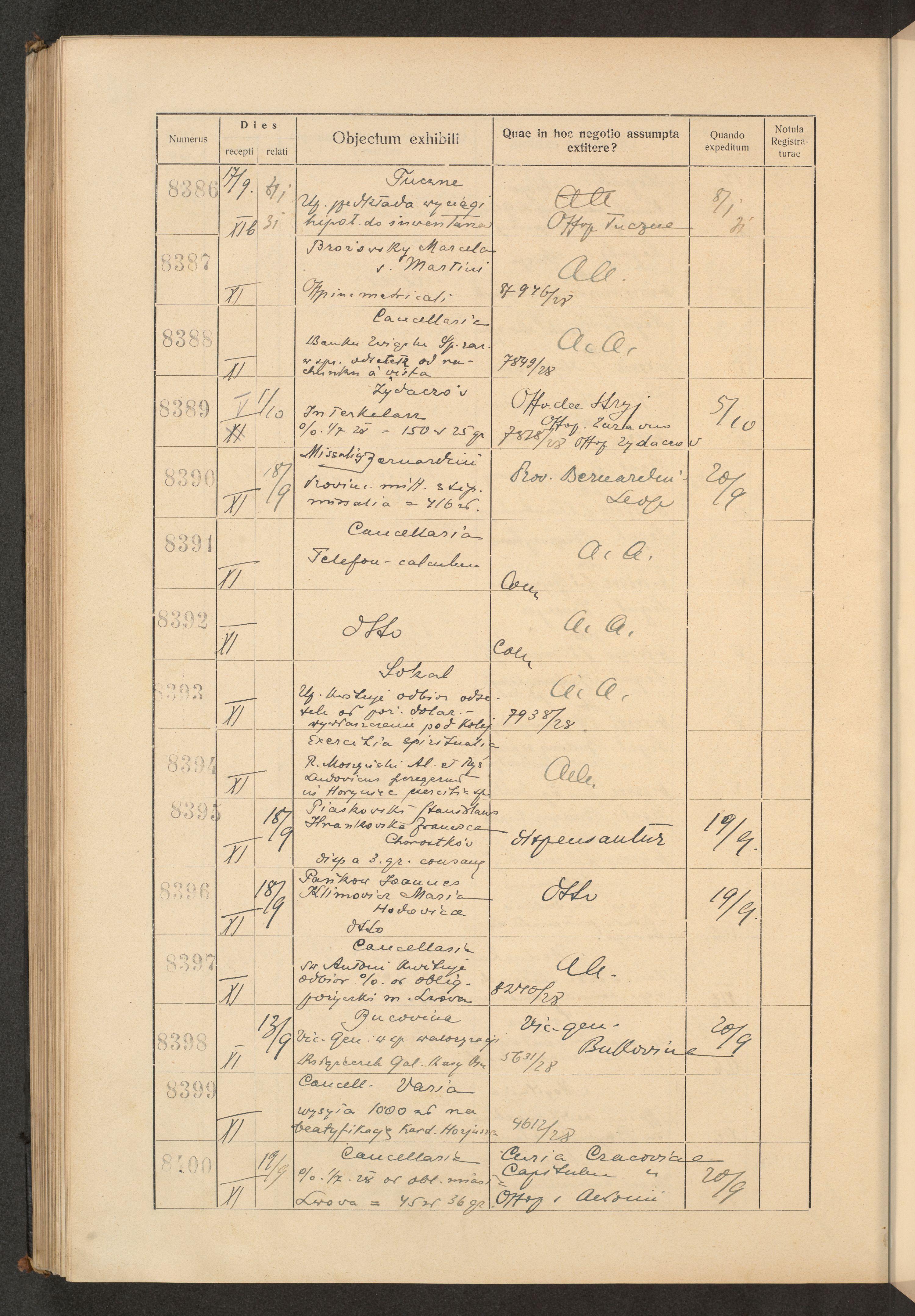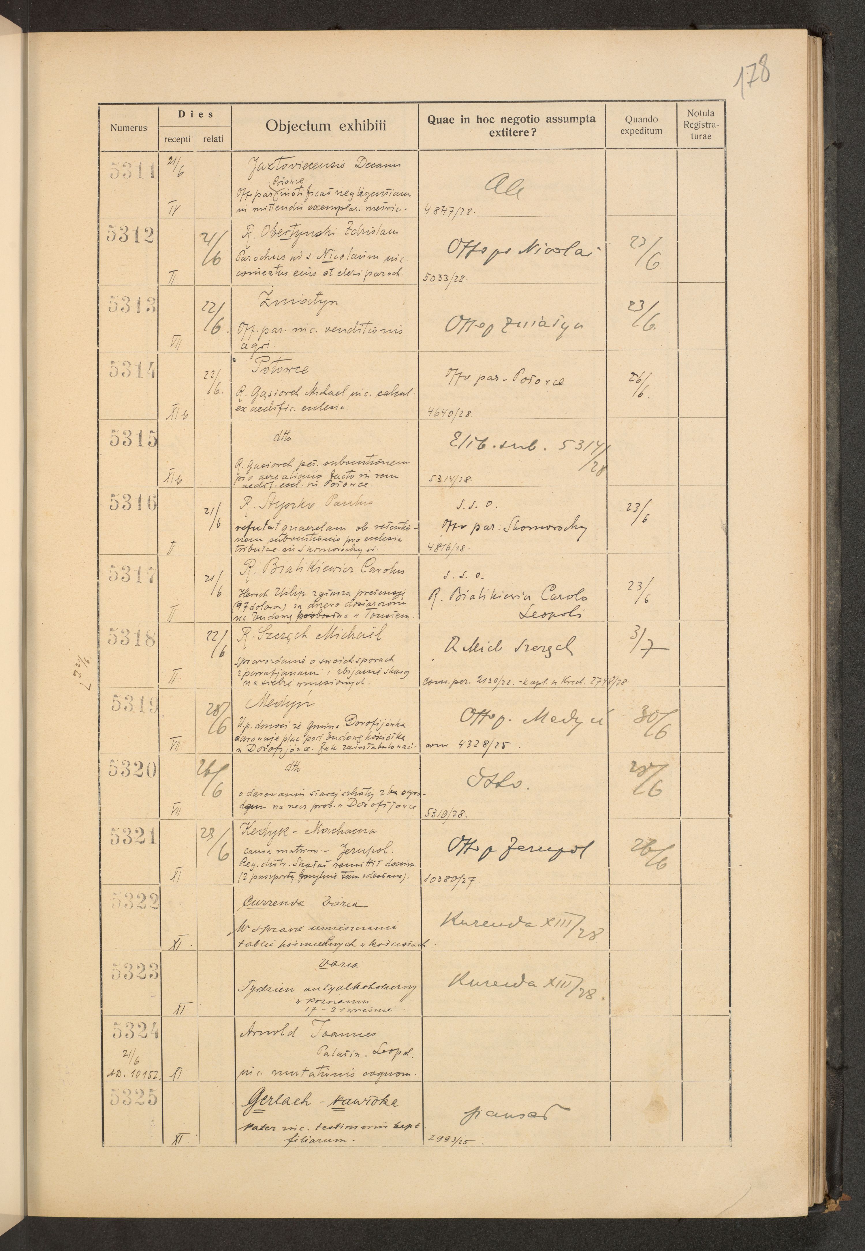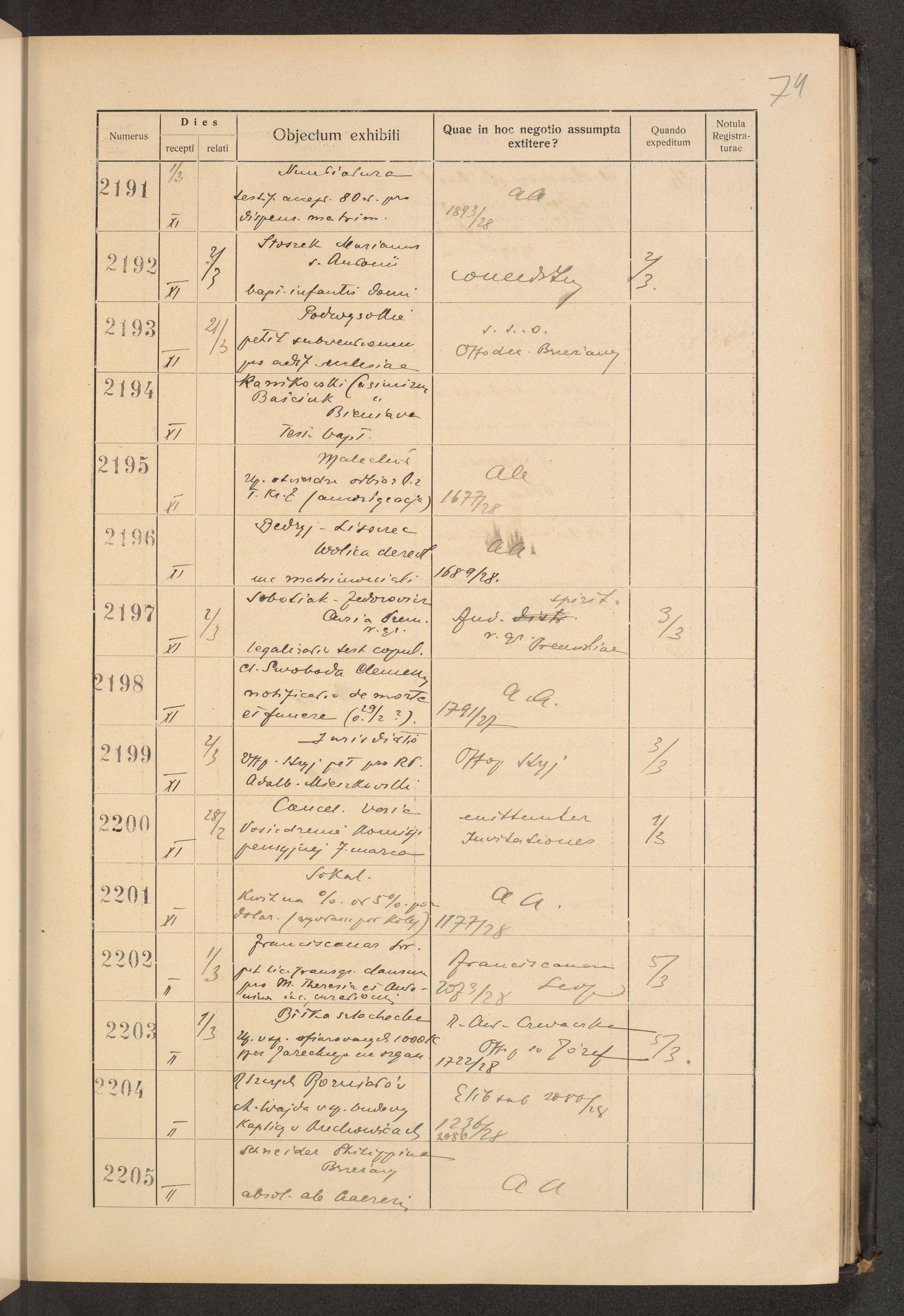 Księga protokołu podawczego konsystorza metropolitalnego obrządku łacińskiego we Lwowie za rok 1928.