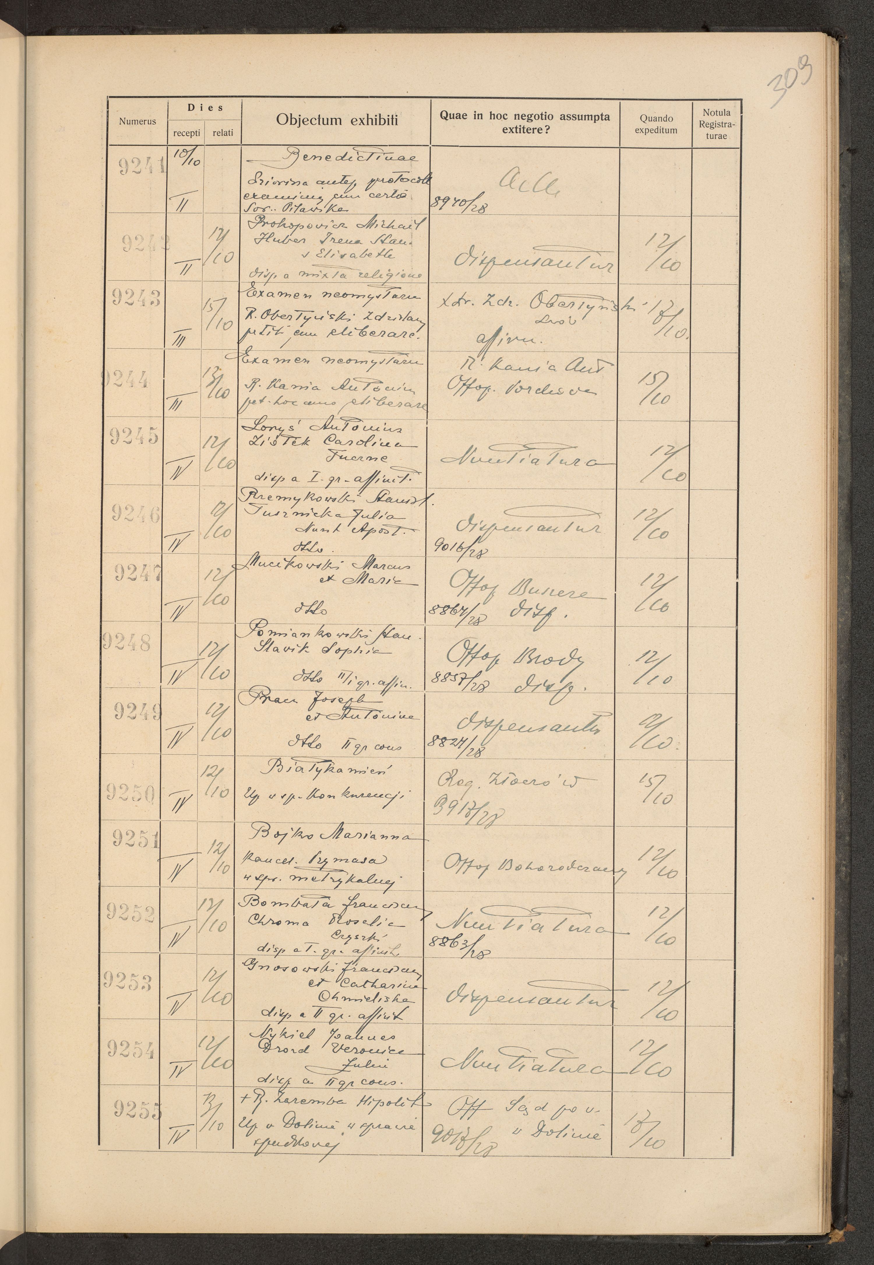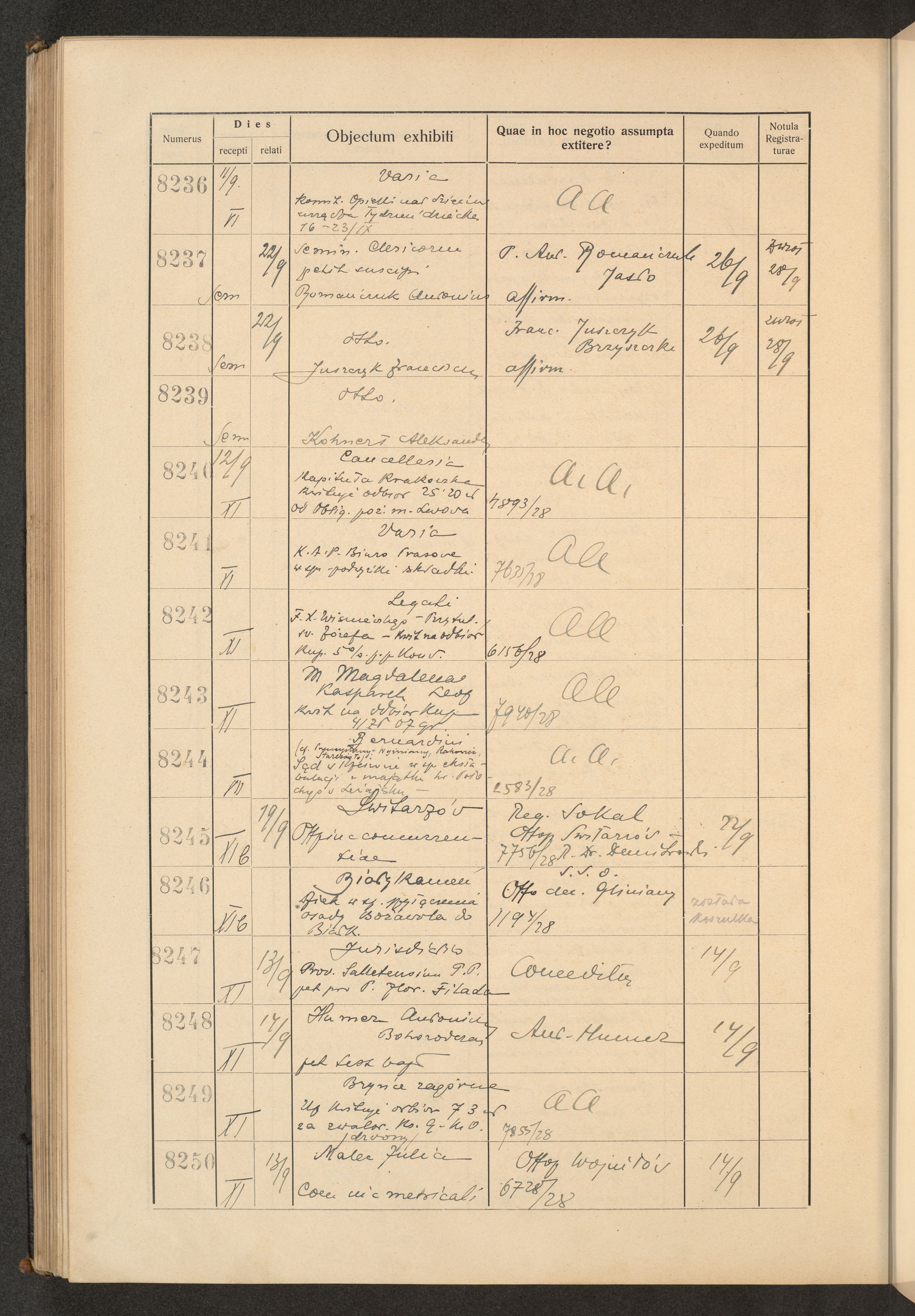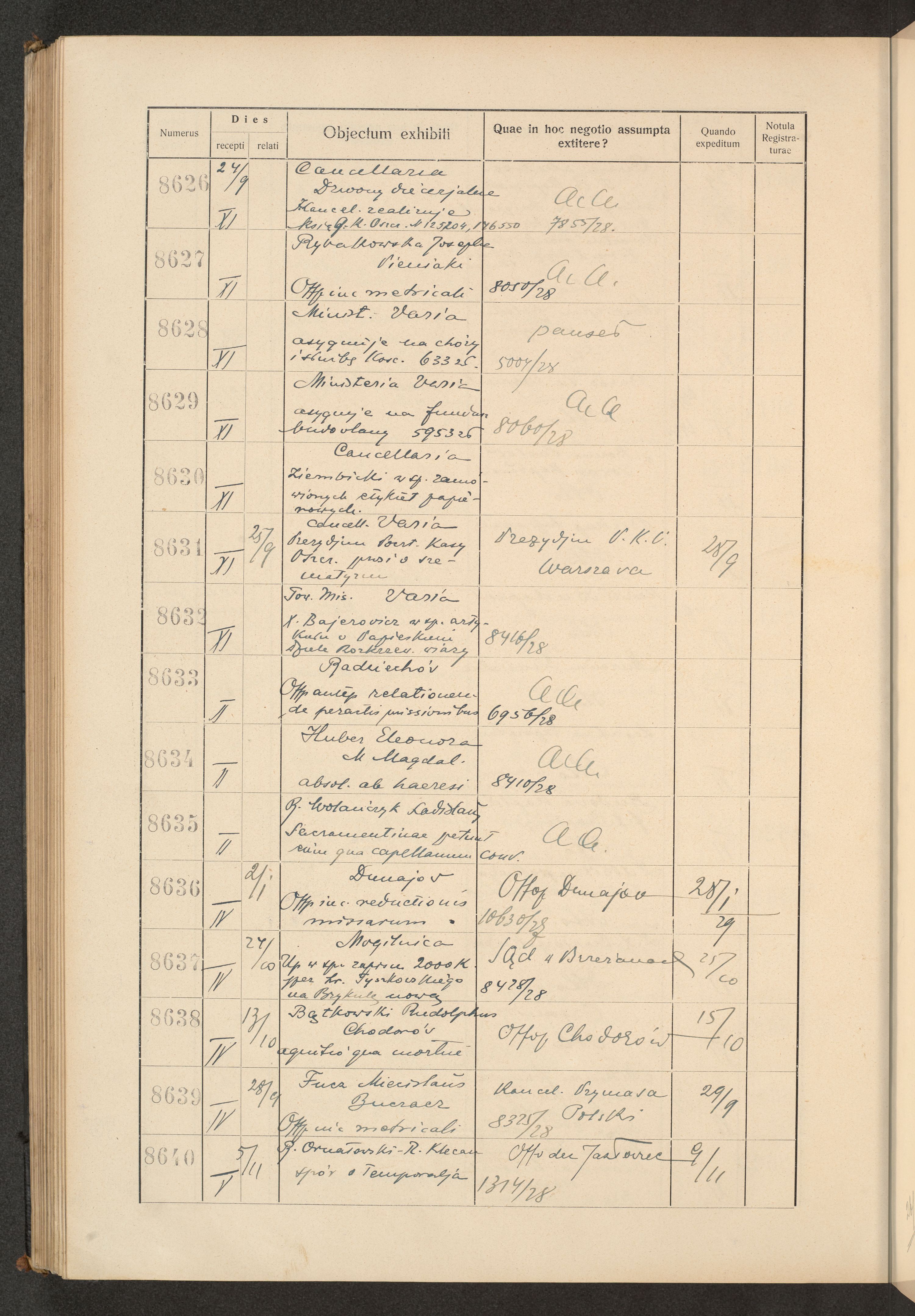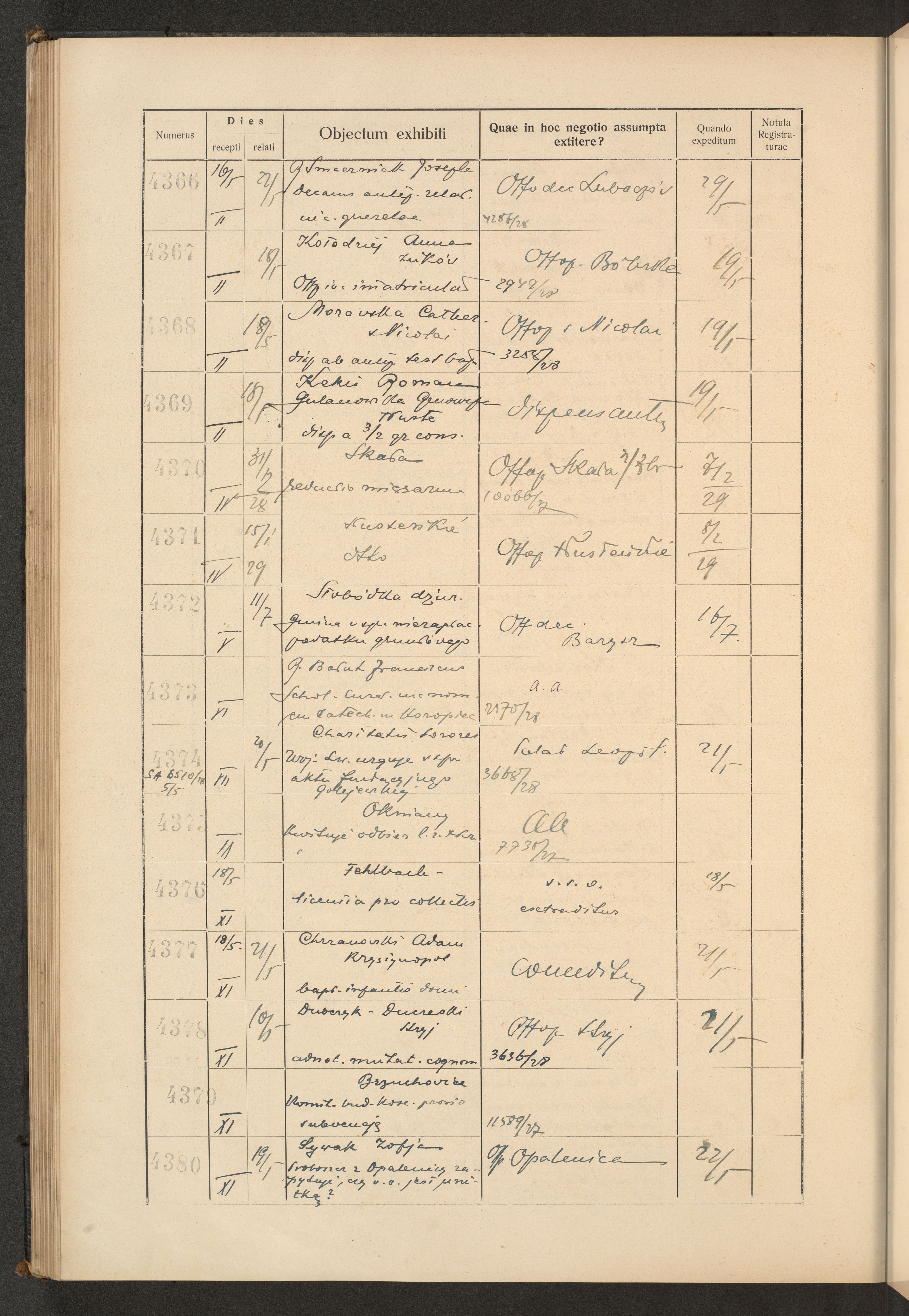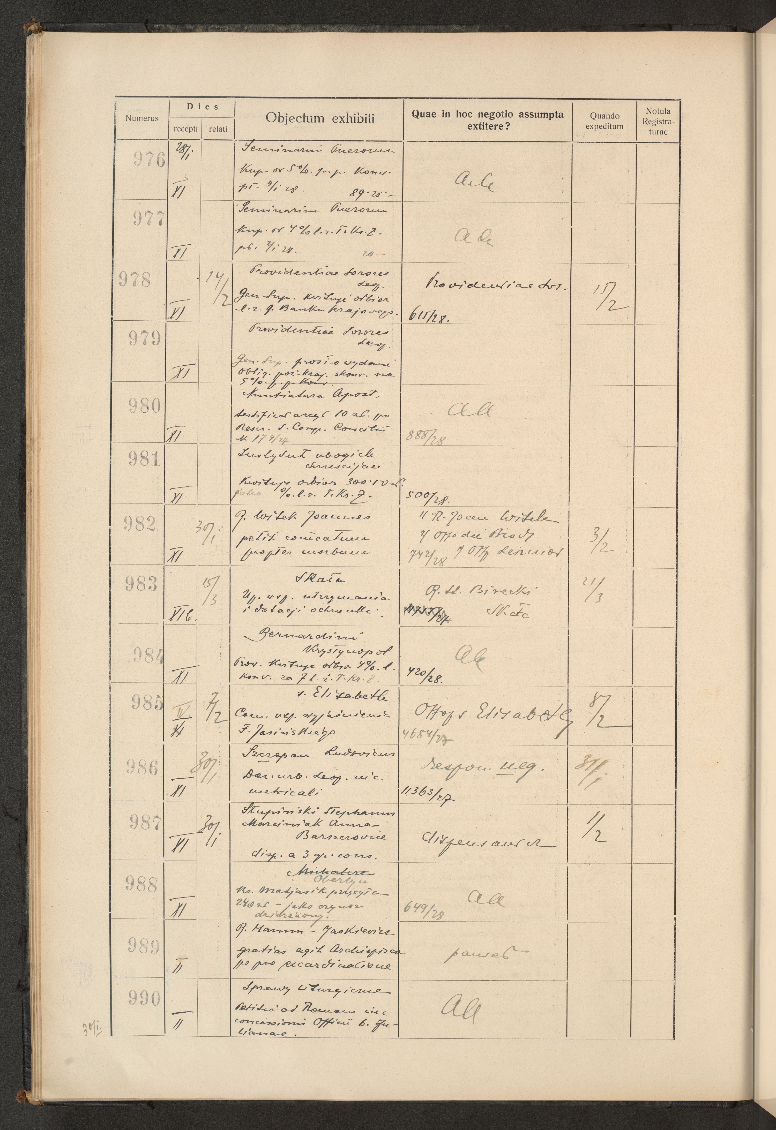 Księga protokołu podawczego konsystorza metropolitalnego obrządku łacińskiego we Lwowie za rok 1928.