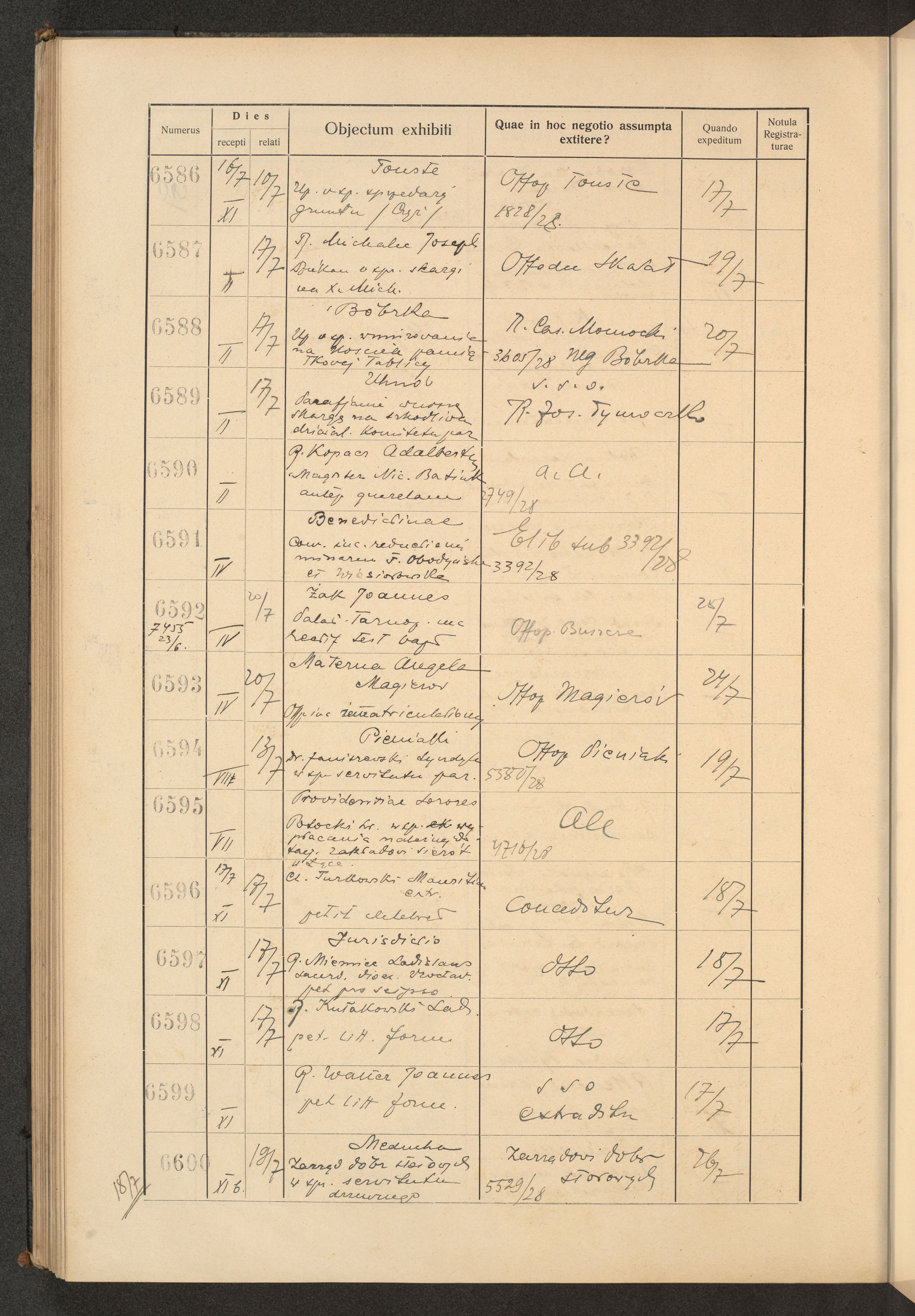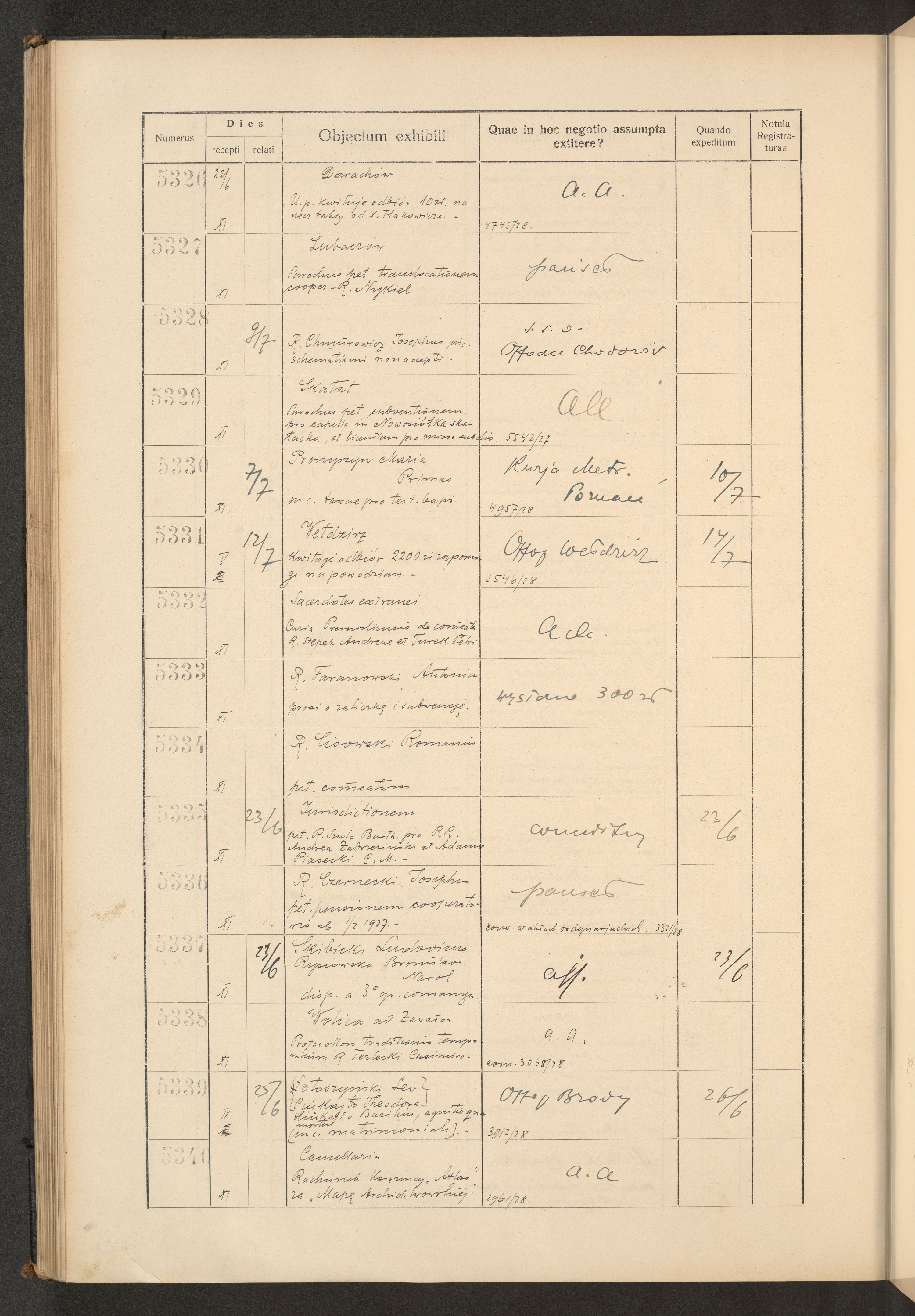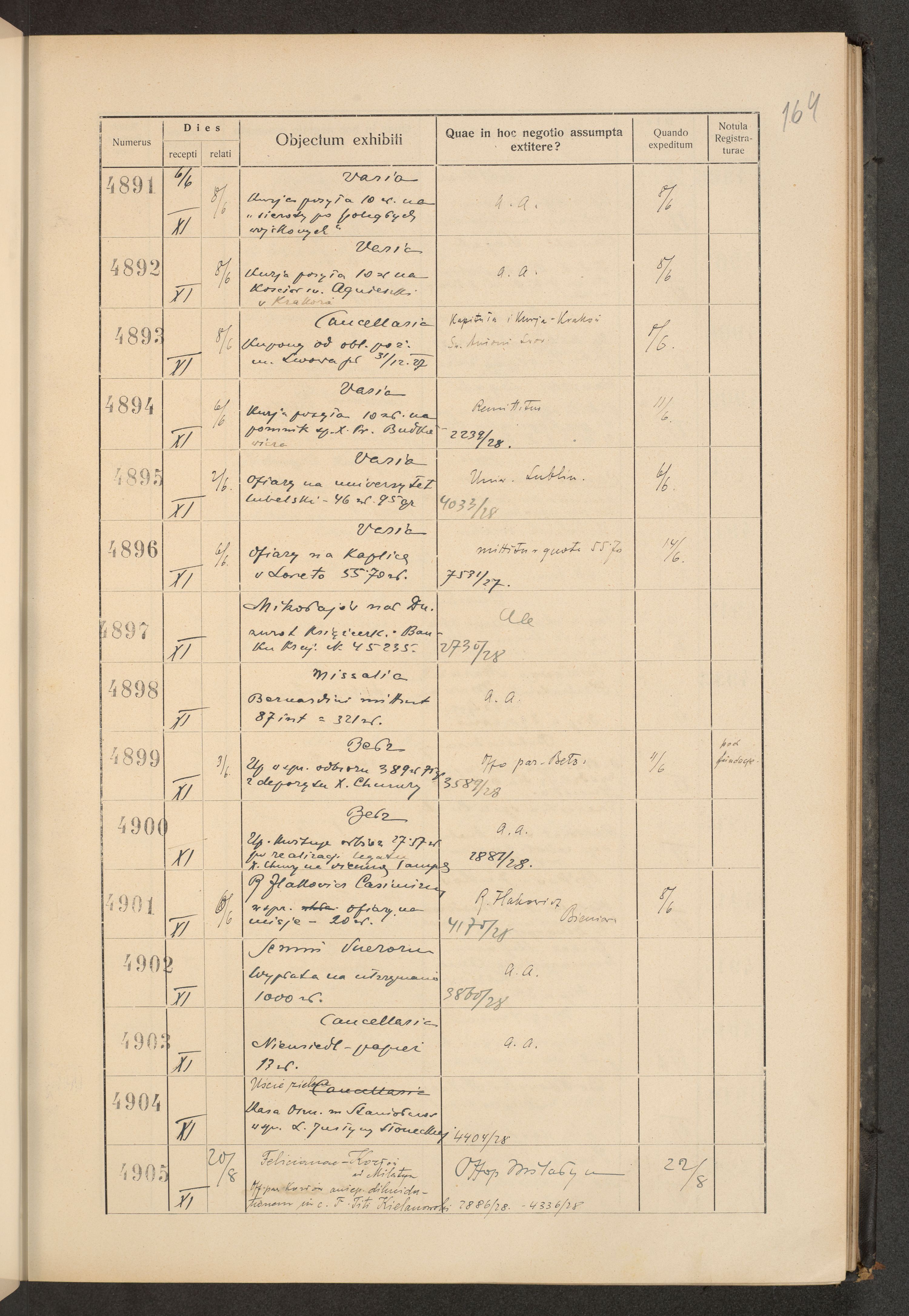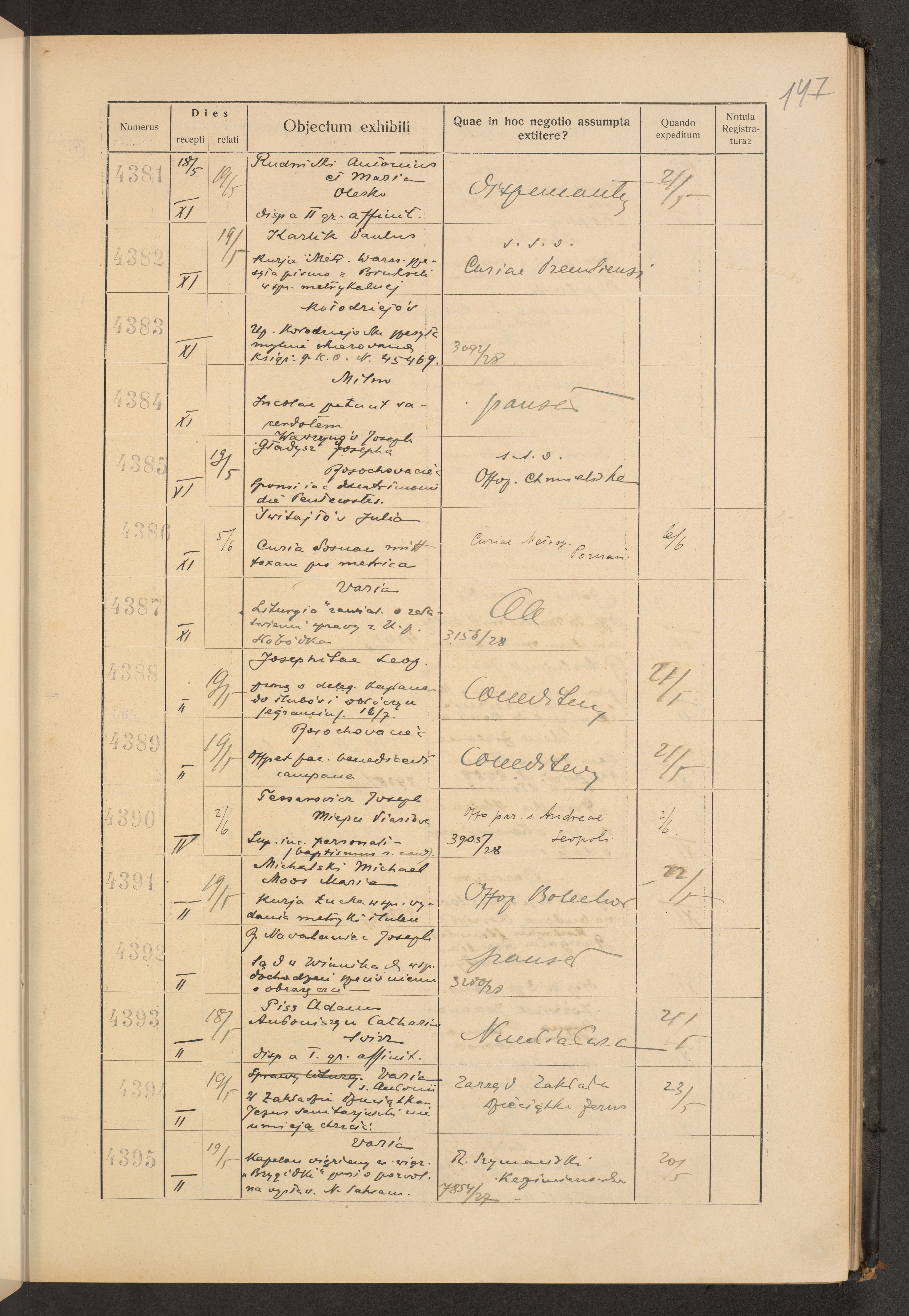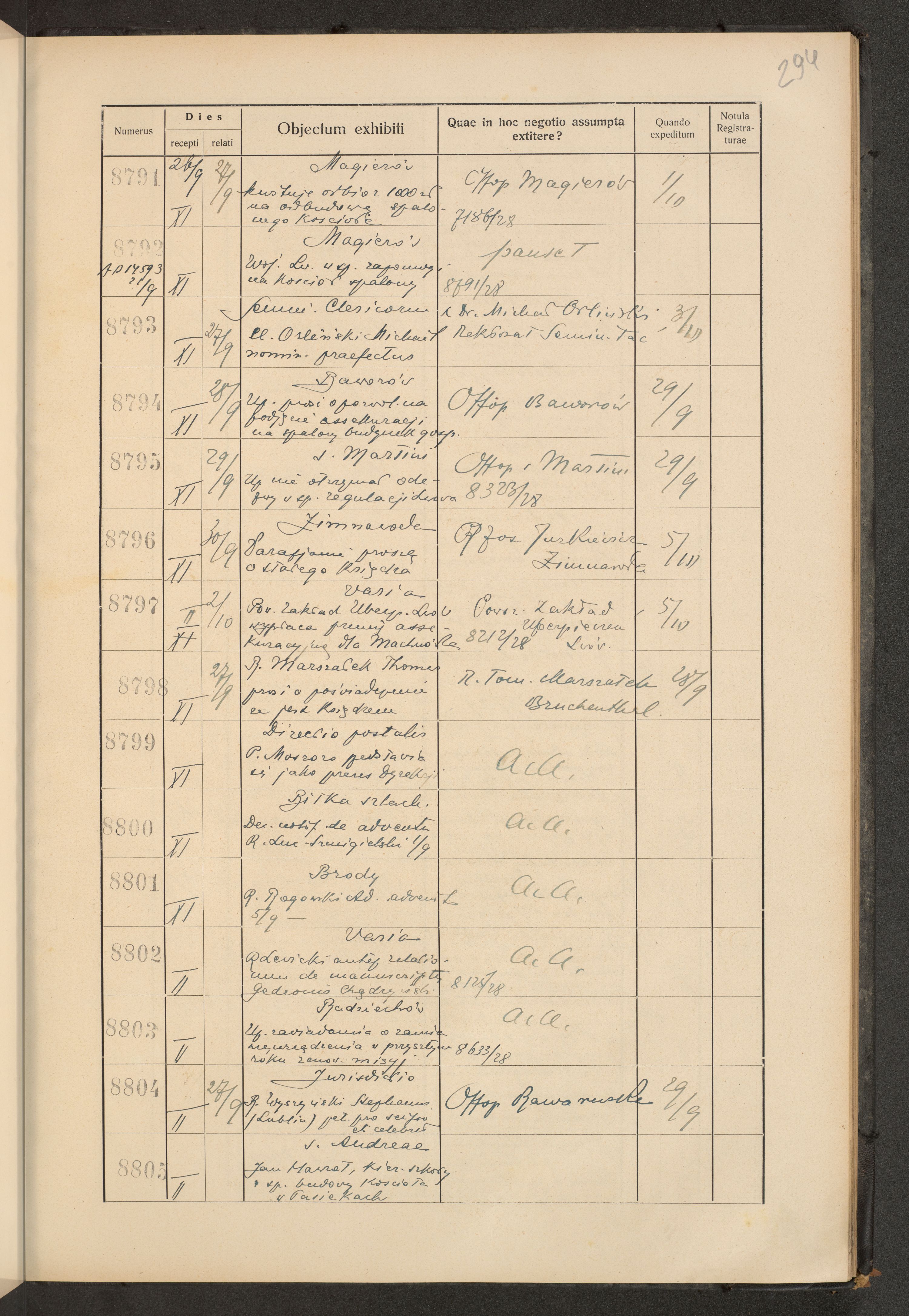 Księga protokołu podawczego konsystorza metropolitalnego obrządku łacińskiego we Lwowie za rok 1928.
