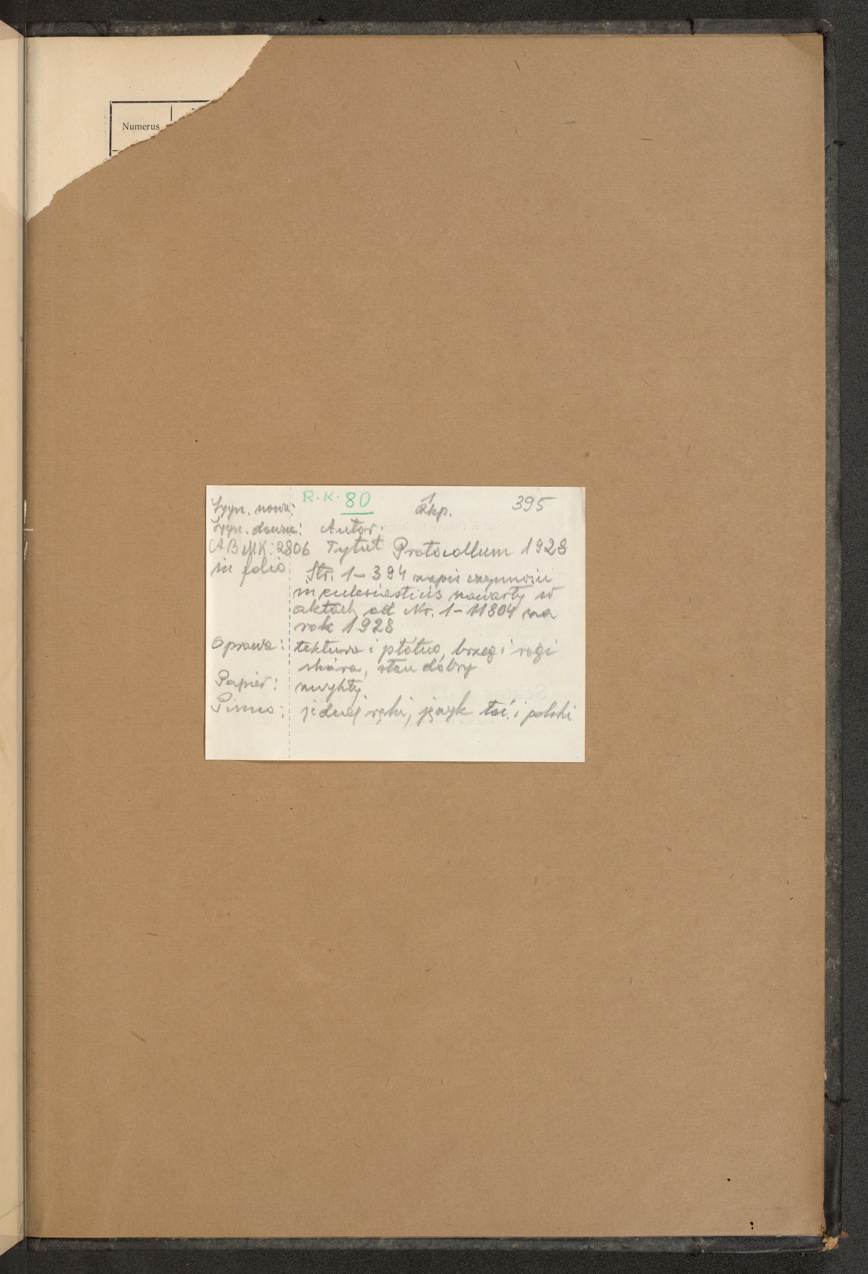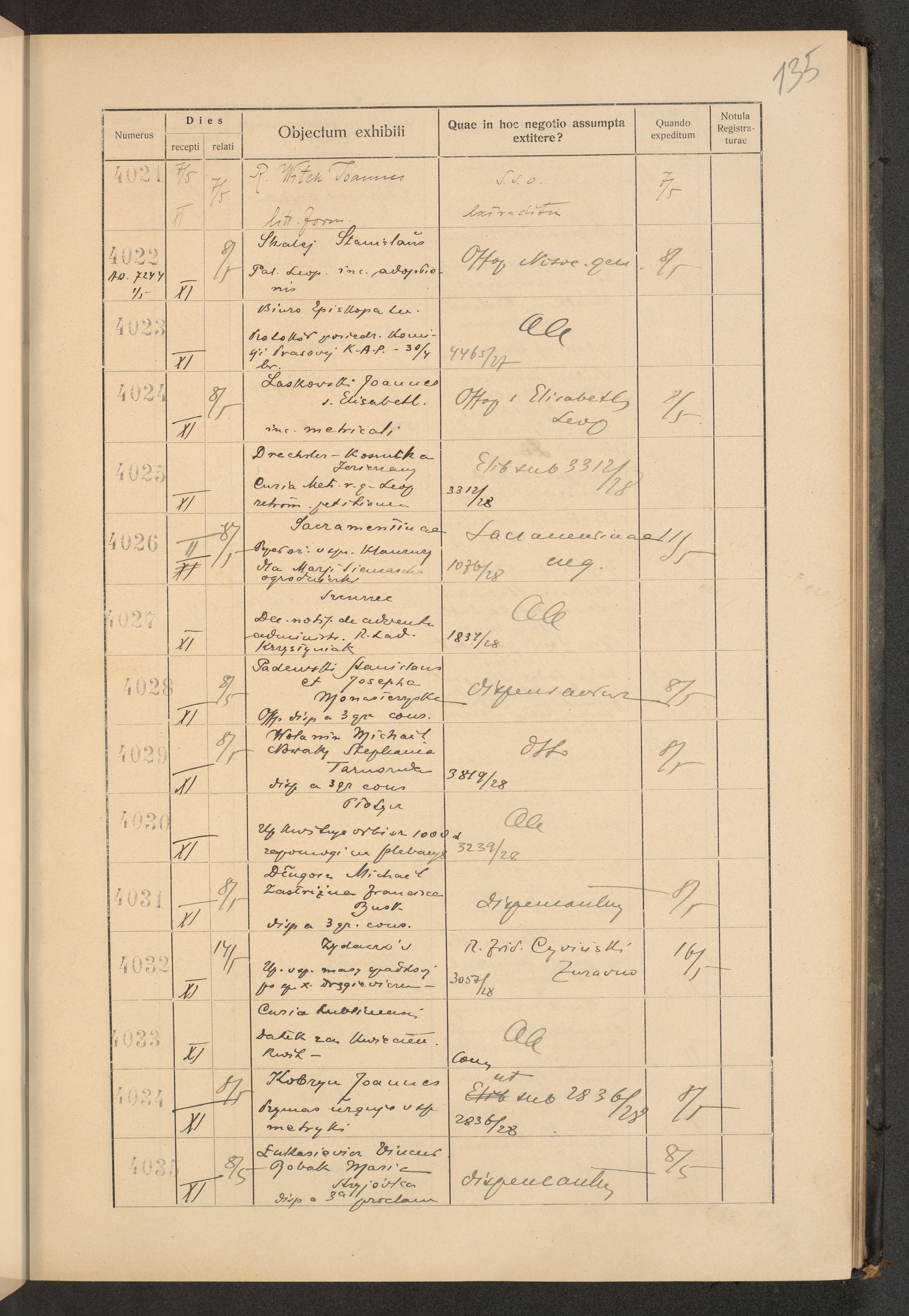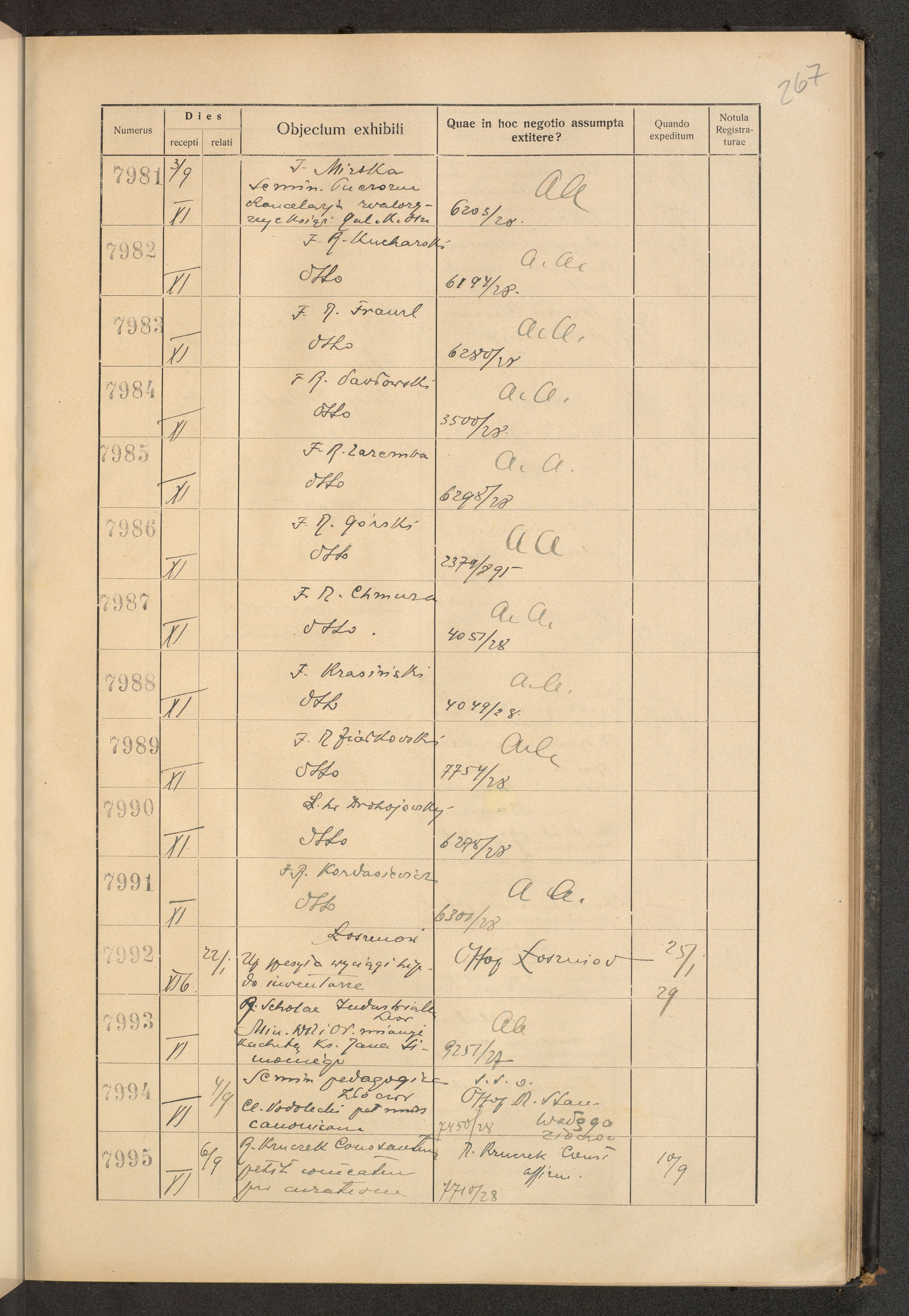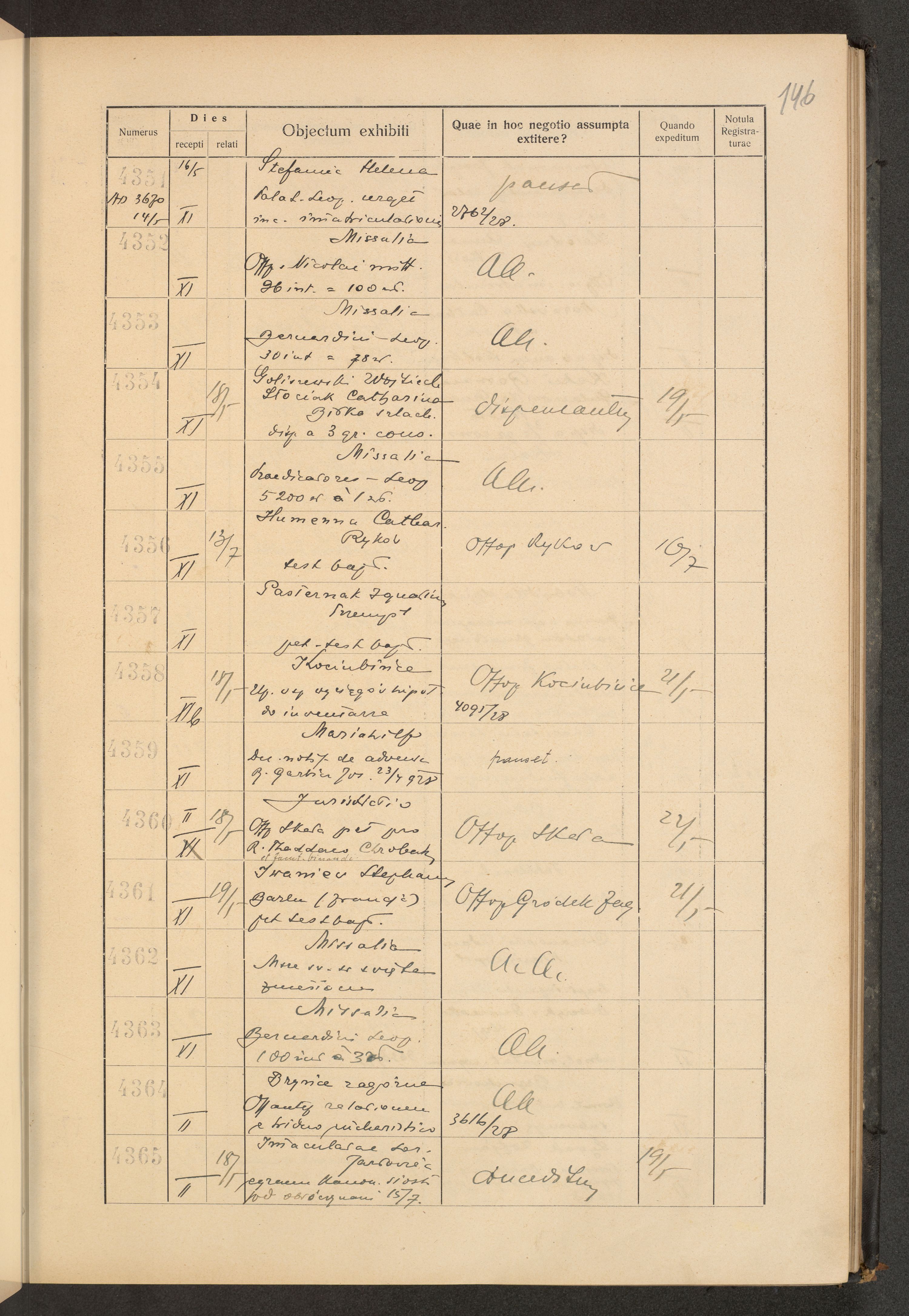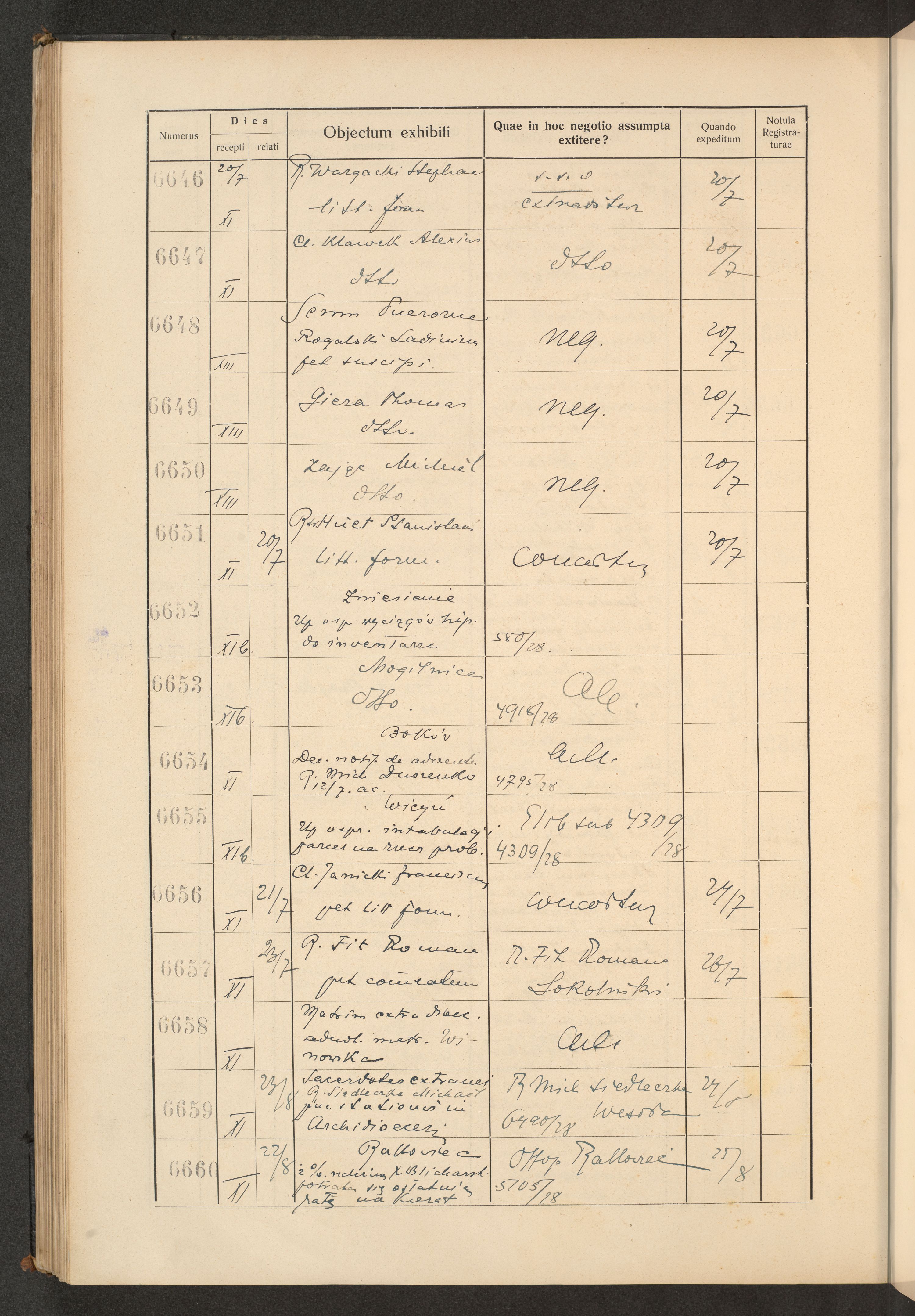 Księga protokołu podawczego konsystorza metropolitalnego obrządku łacińskiego we Lwowie za rok 1928.