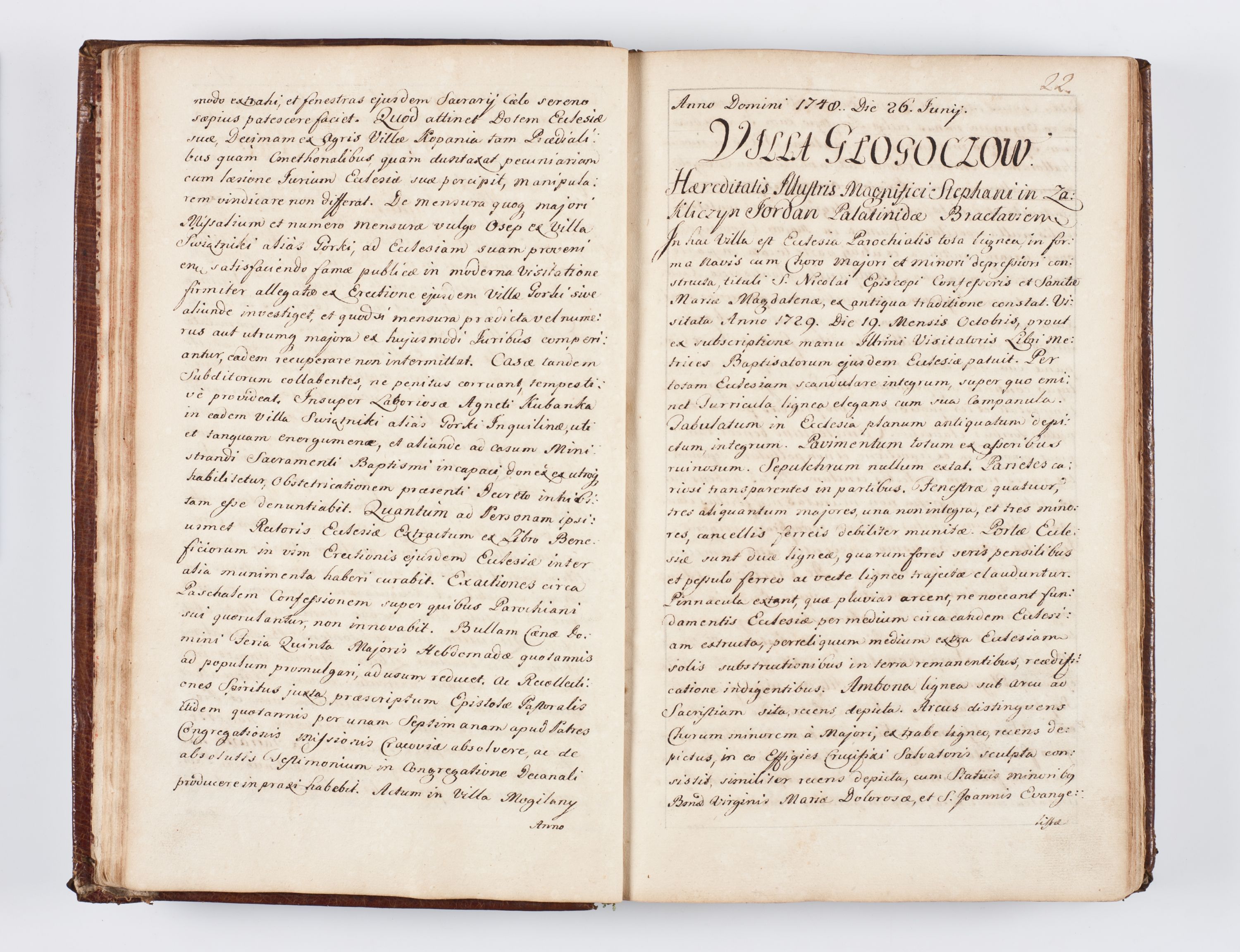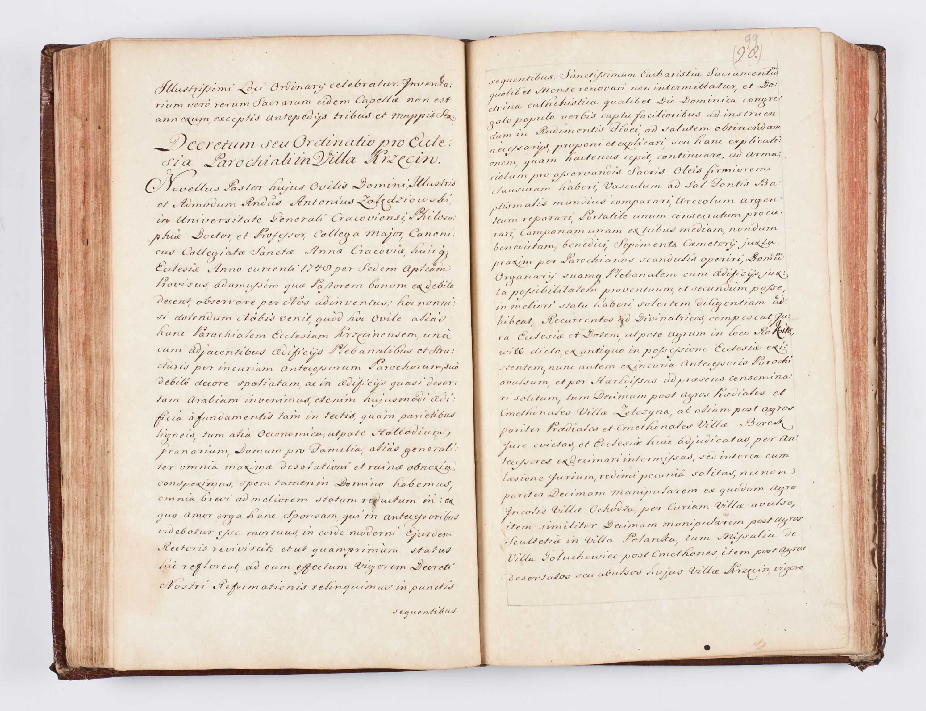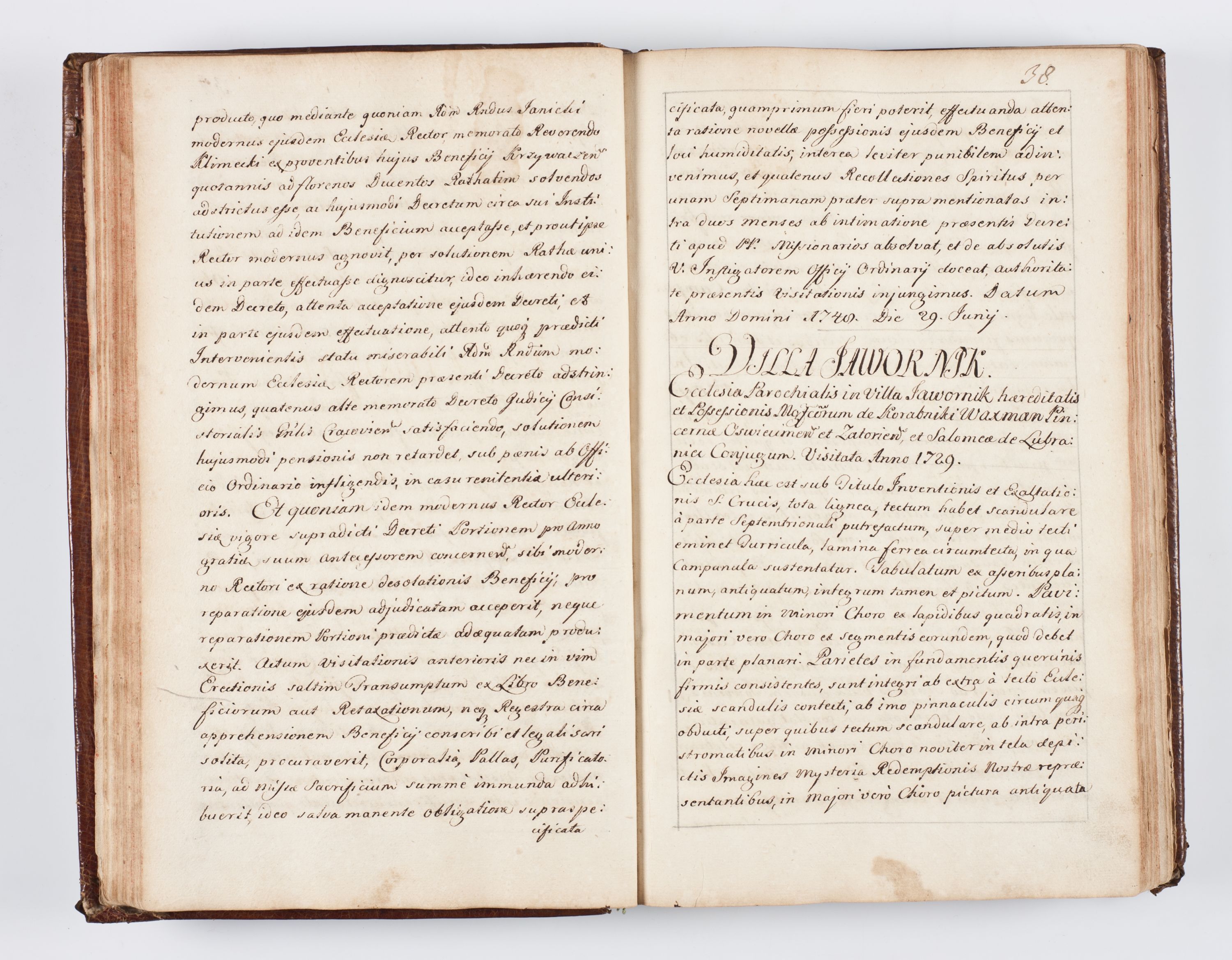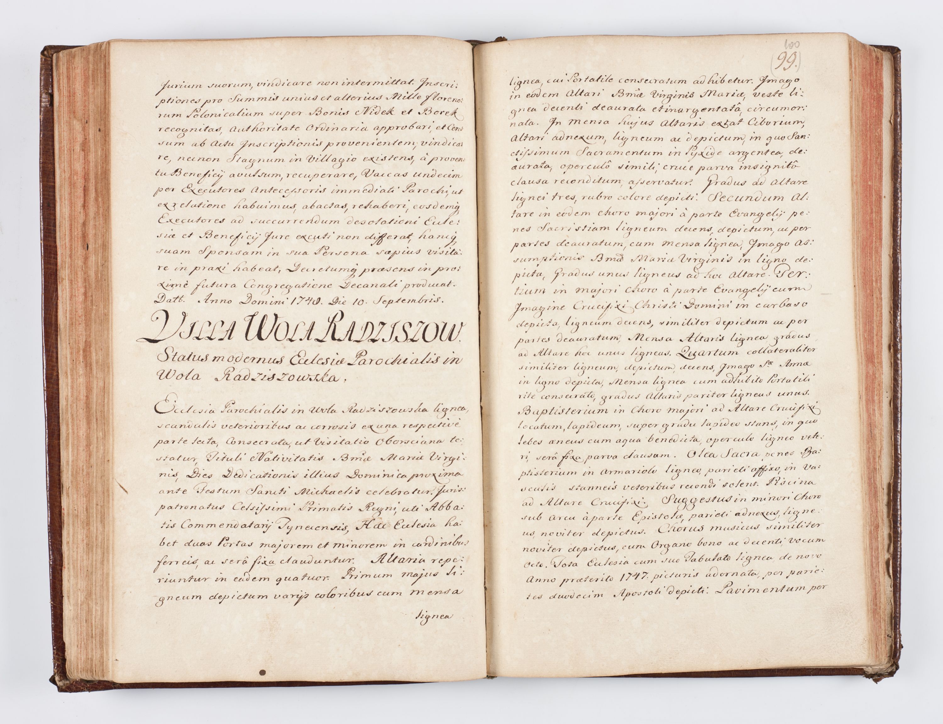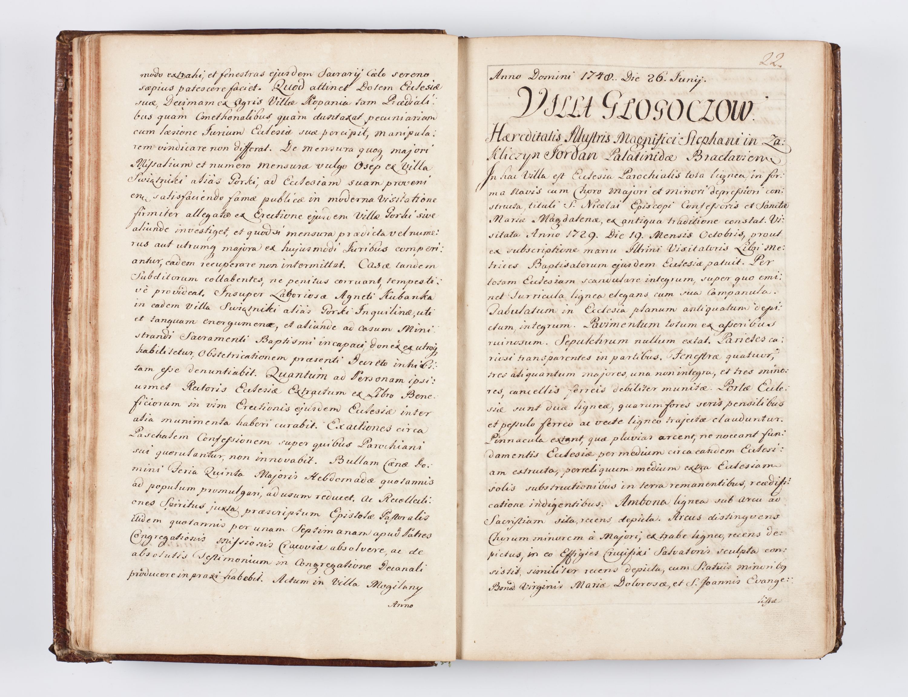 Visitatio ecclesiarum parachialium, praebendarum, capellarum, hospitalium atque confraternitatum, nec non beneficiorum in decanatu Scaviensi foraneo, dioecesis, archidiaconatus et officialatus Cracoviensis consistentiu, ex speciali mandato Cel. Principis R.D. Andreae Stanislai Kostka in Załuskie Załuski, episcopi Cracoviensis canonicum, parochialis s. Nicolai ad Cracowiam praepositum, delegatum extraordinarium visitatorem a.D. 1748