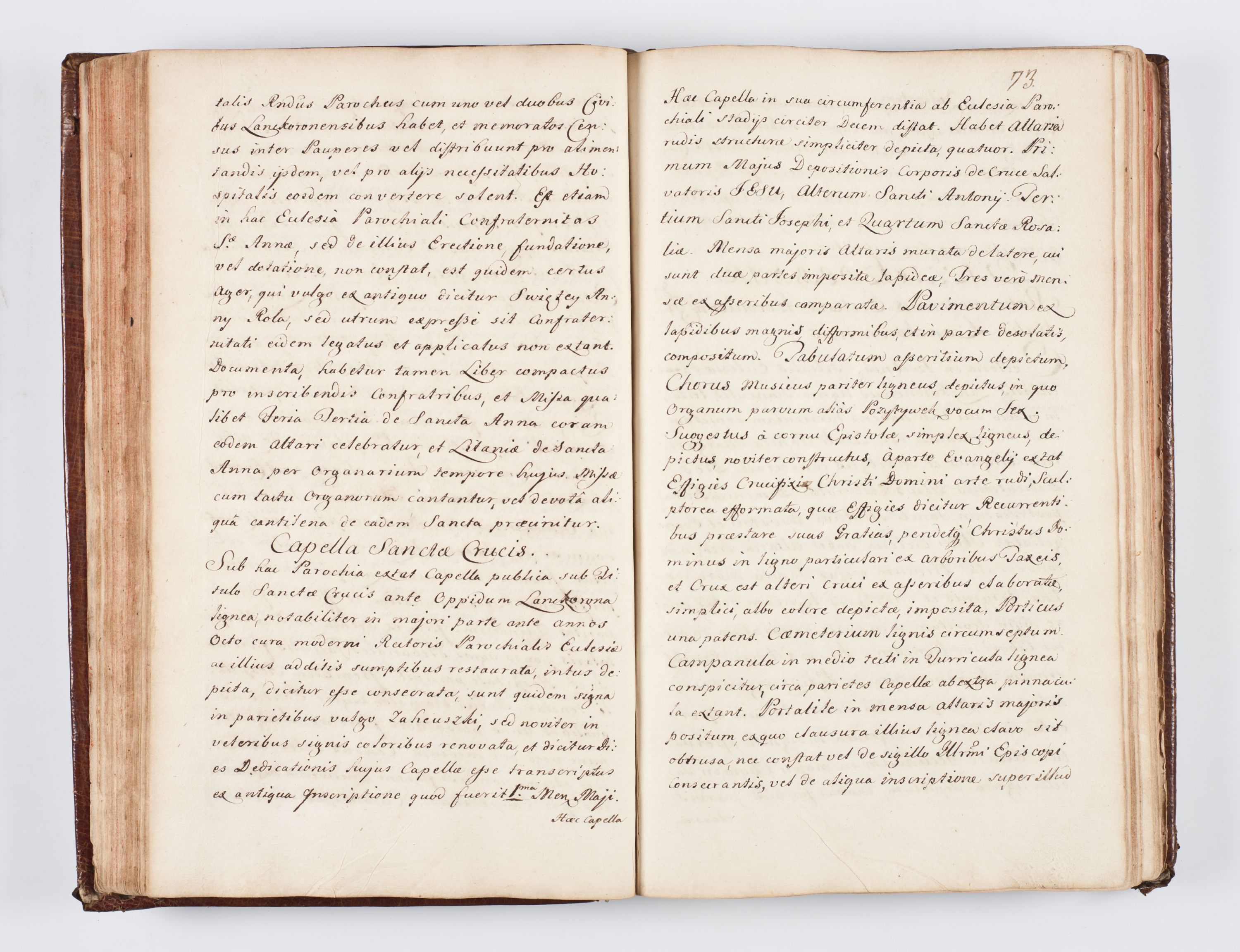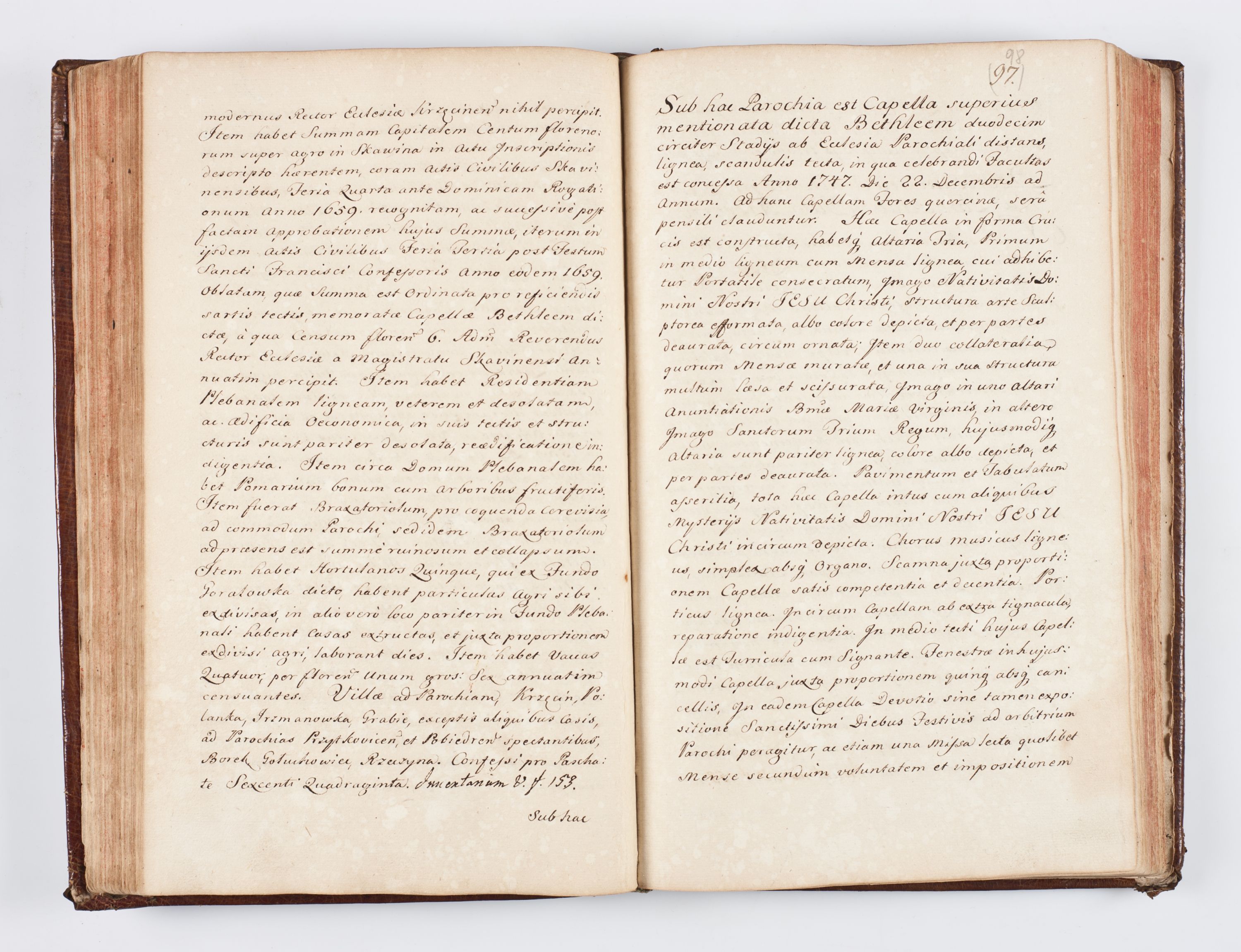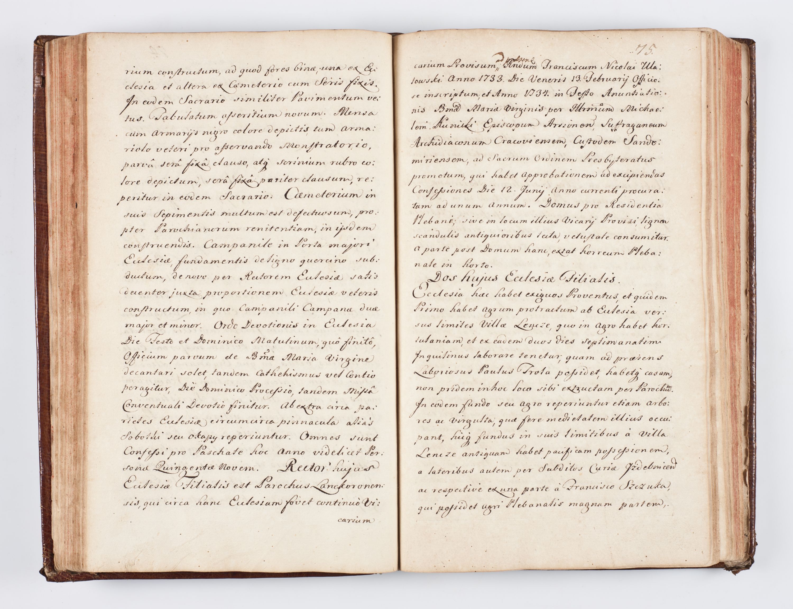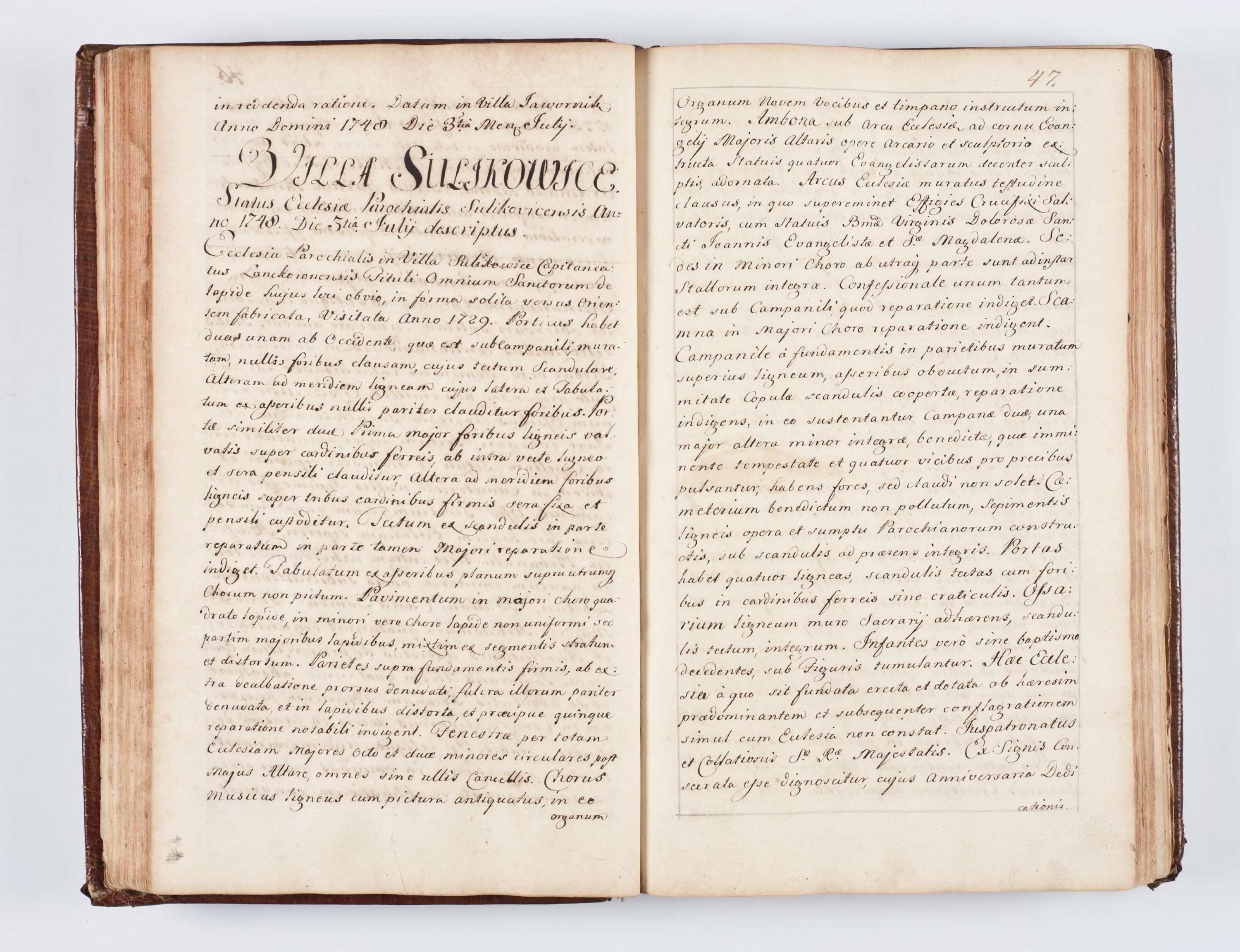 Visitatio ecclesiarum parachialium, praebendarum, capellarum, hospitalium atque confraternitatum, nec non beneficiorum in decanatu Scaviensi foraneo, dioecesis, archidiaconatus et officialatus Cracoviensis consistentiu, ex speciali mandato Cel. Principis R.D. Andreae Stanislai Kostka in Załuskie Załuski, episcopi Cracoviensis canonicum, parochialis s. Nicolai ad Cracowiam praepositum, delegatum extraordinarium visitatorem a.D. 1748