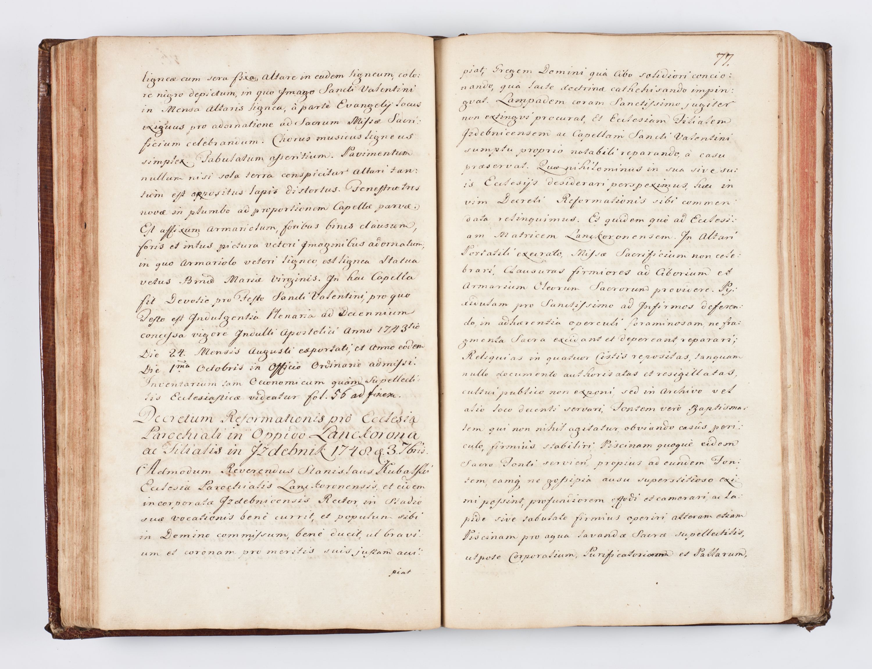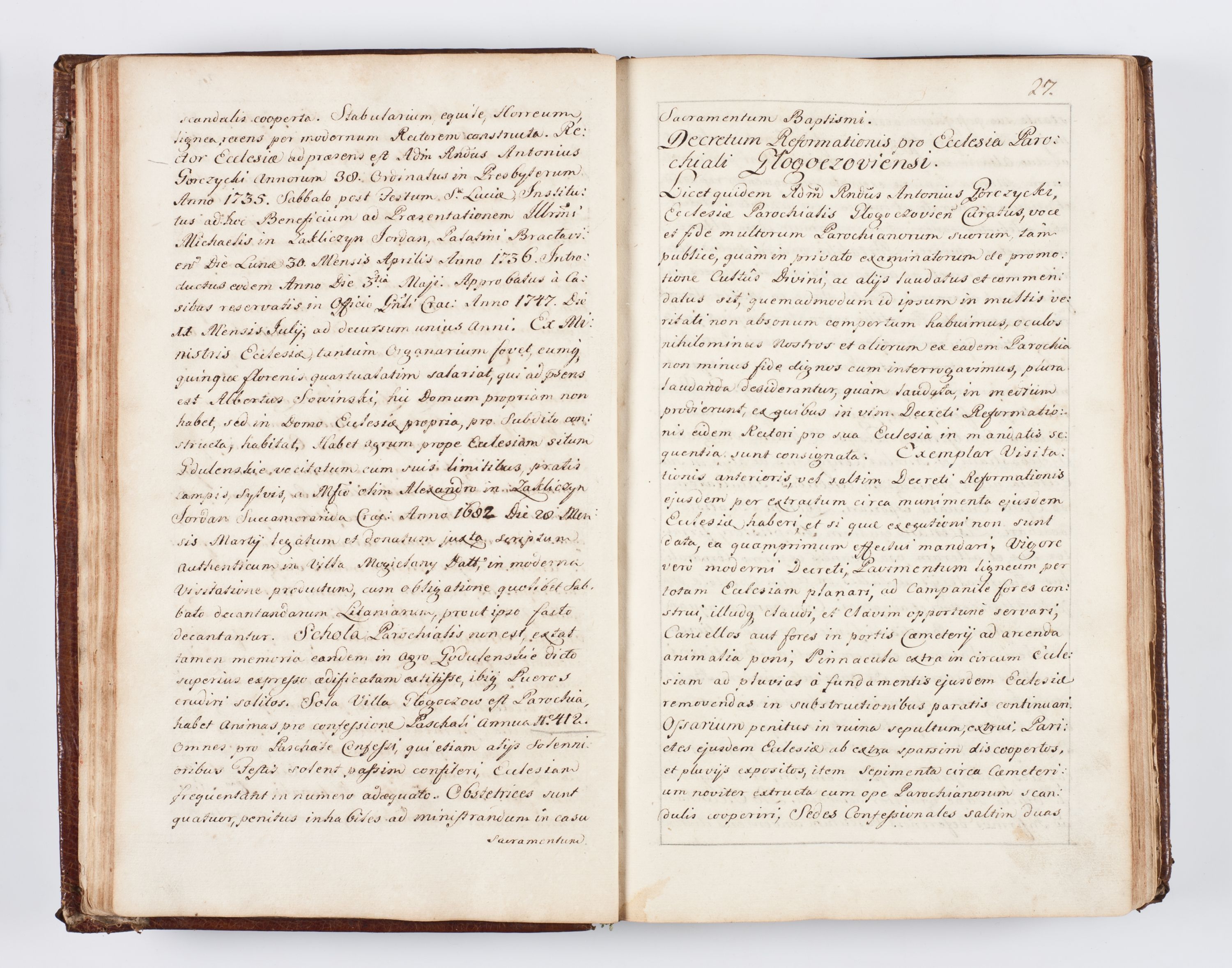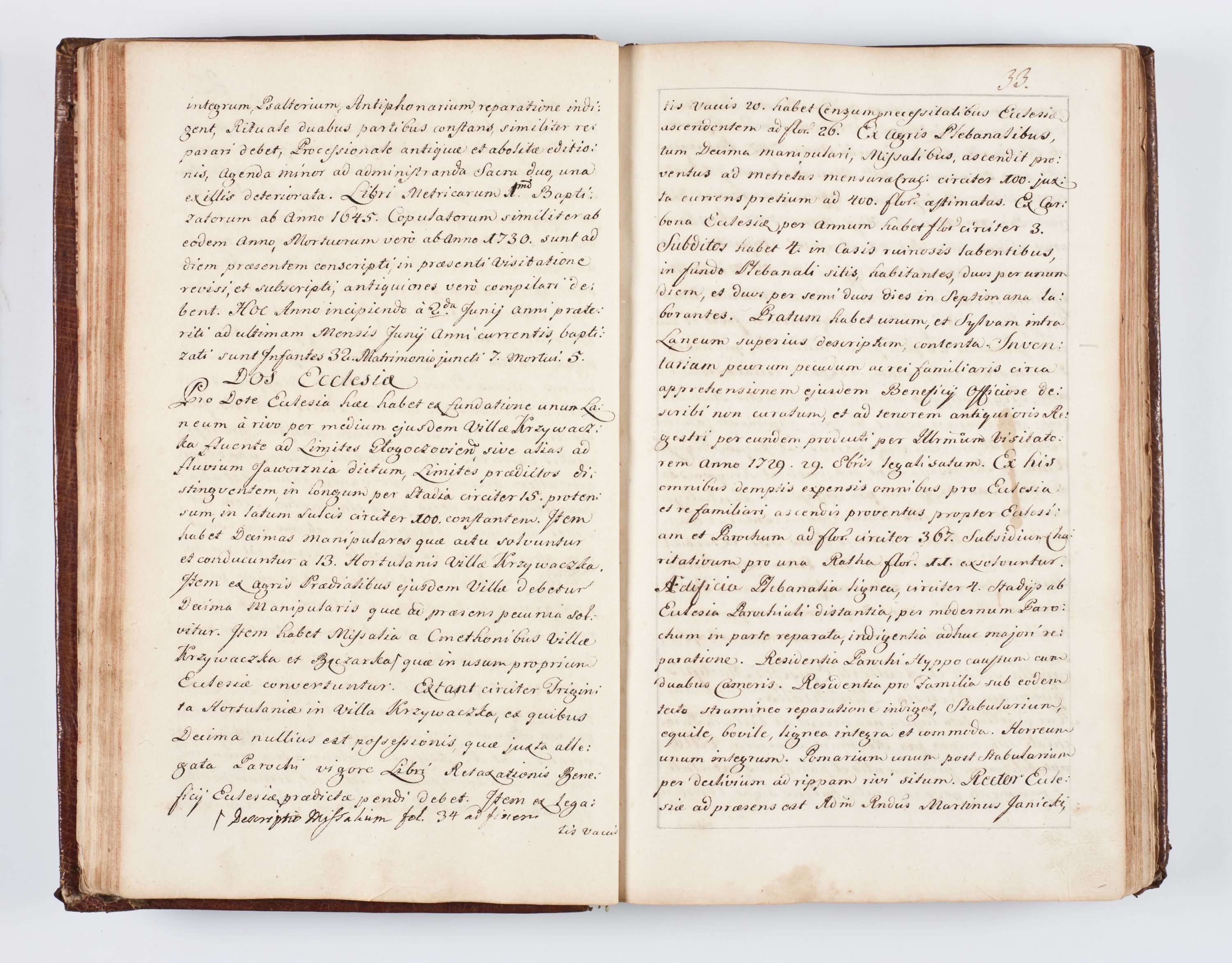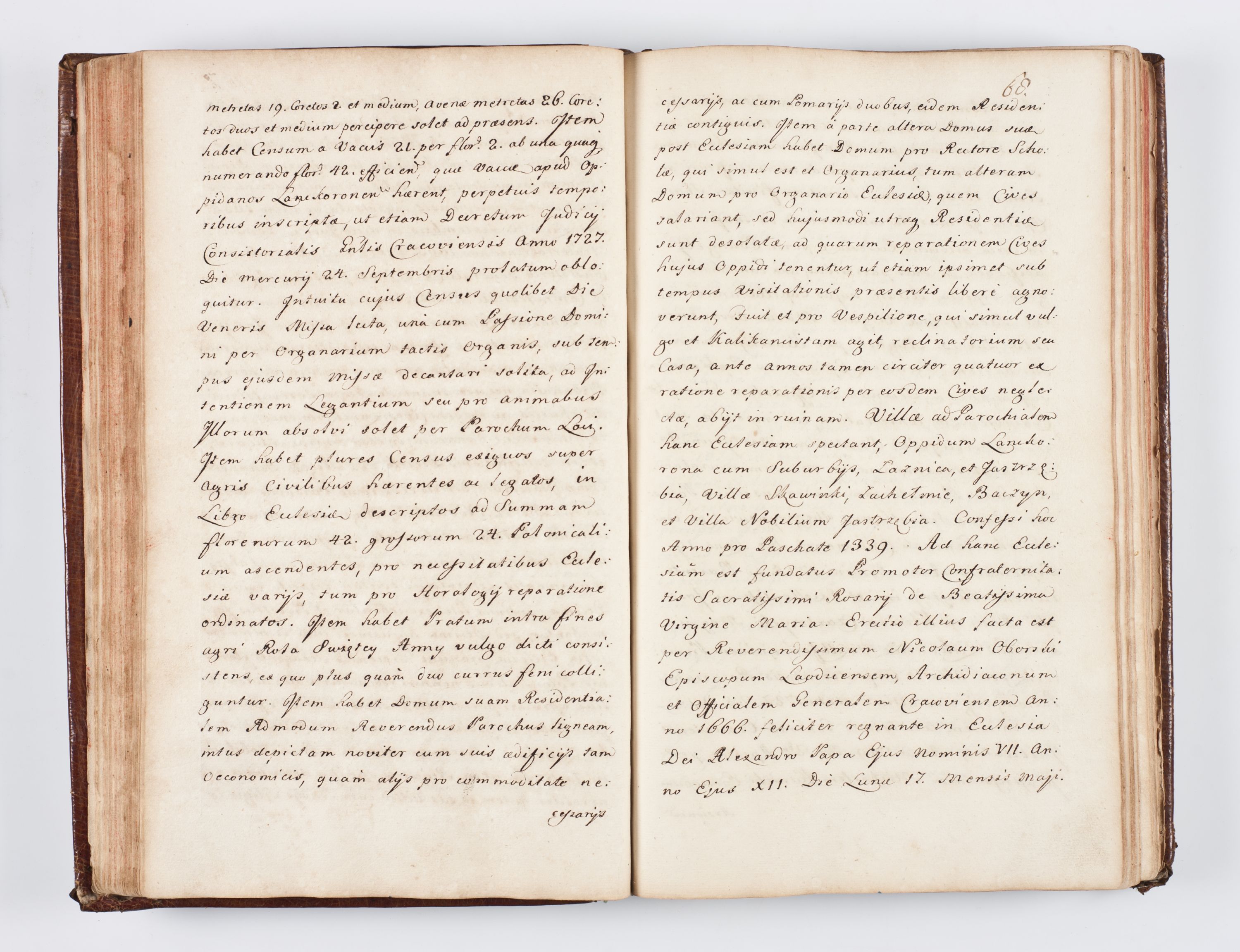 Visitatio ecclesiarum parachialium, praebendarum, capellarum, hospitalium atque confraternitatum, nec non beneficiorum in decanatu Scaviensi foraneo, dioecesis, archidiaconatus et officialatus Cracoviensis consistentiu, ex speciali mandato Cel. Principis R.D. Andreae Stanislai Kostka in Załuskie Załuski, episcopi Cracoviensis canonicum, parochialis s. Nicolai ad Cracowiam praepositum, delegatum extraordinarium visitatorem a.D. 1748