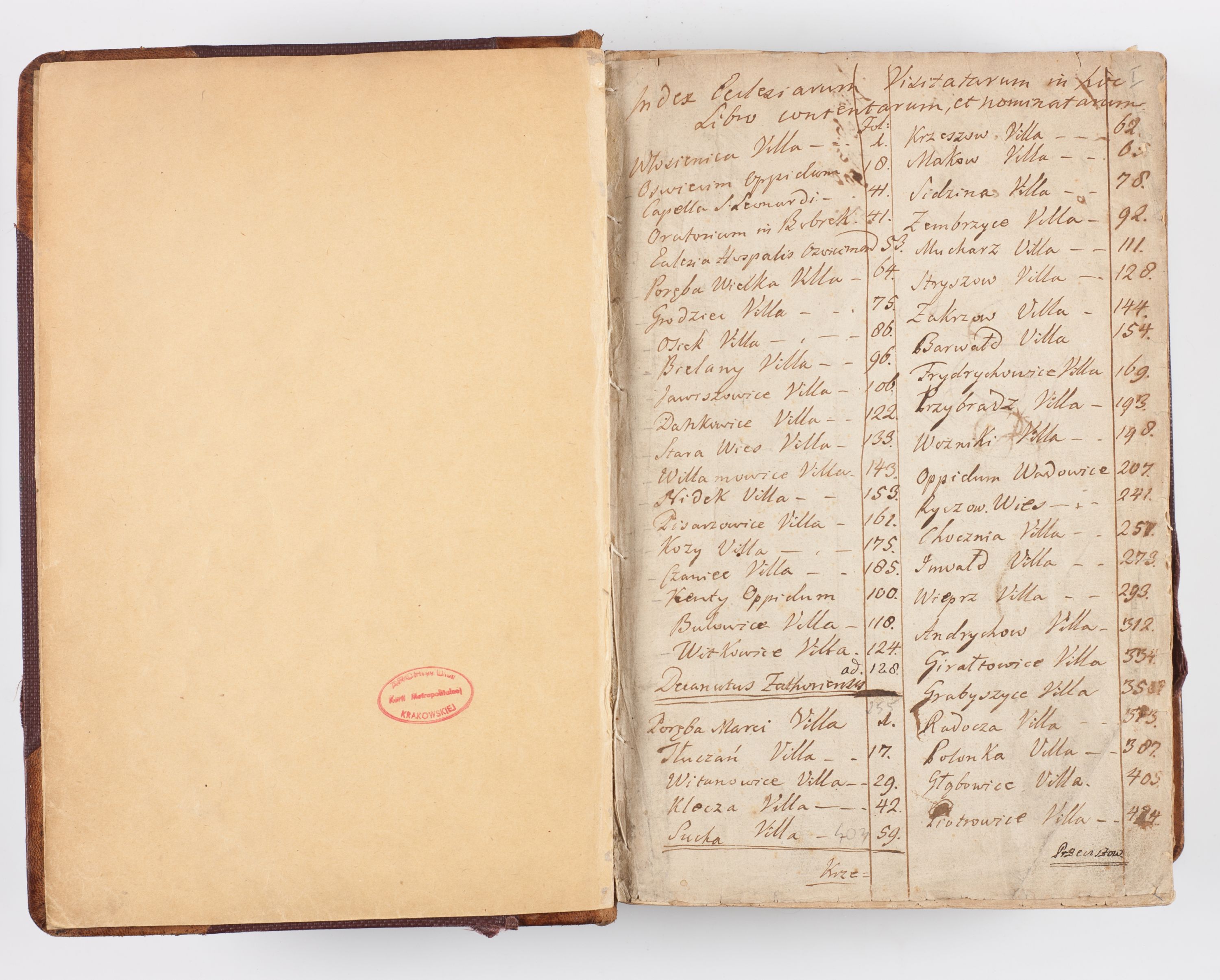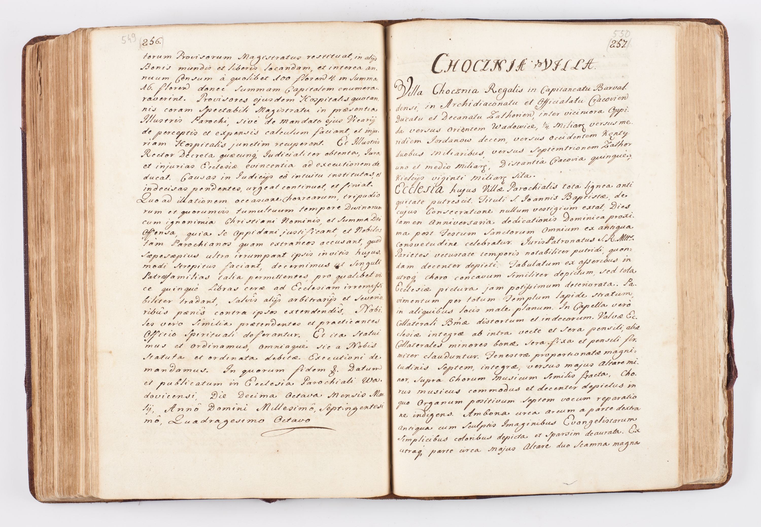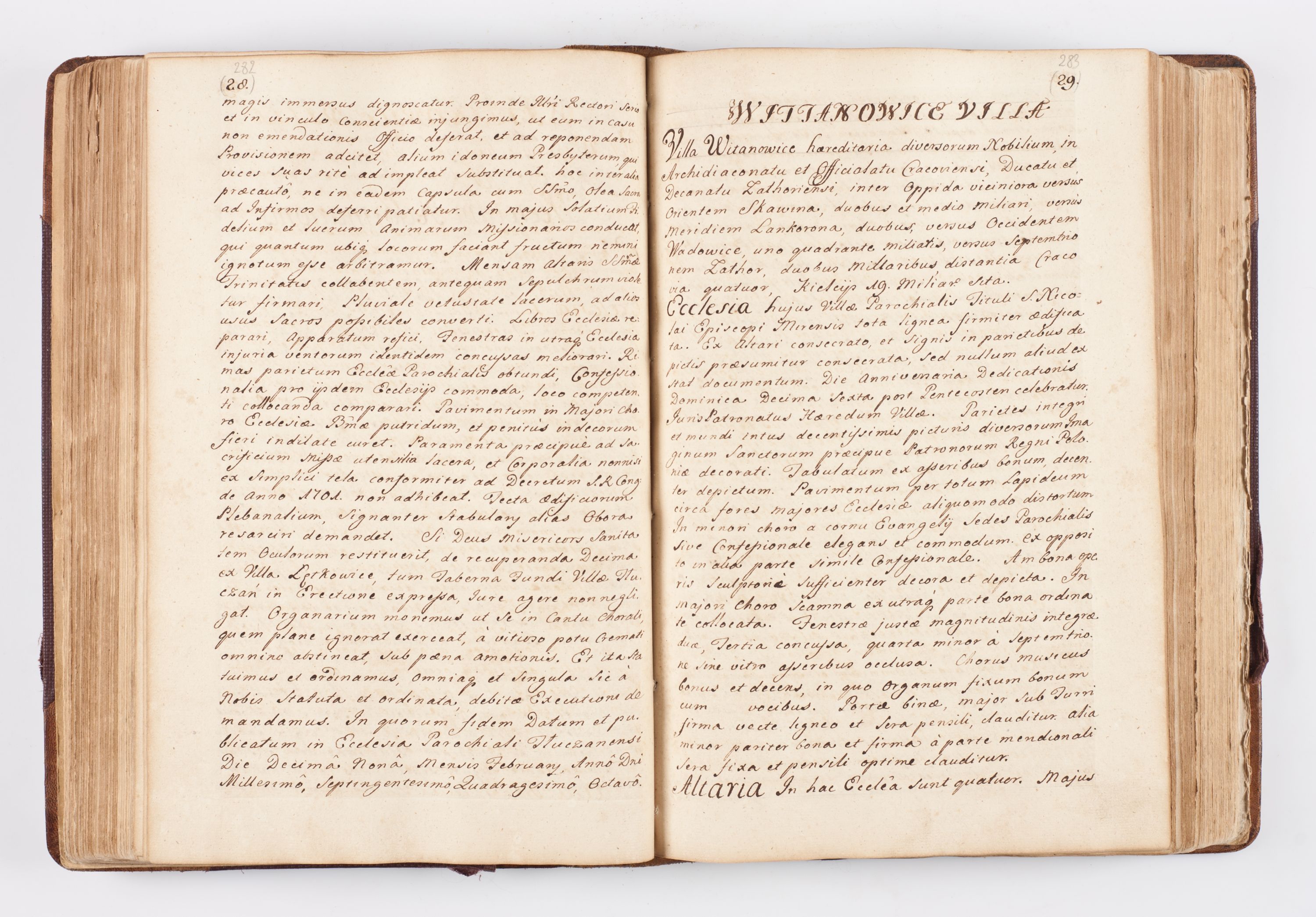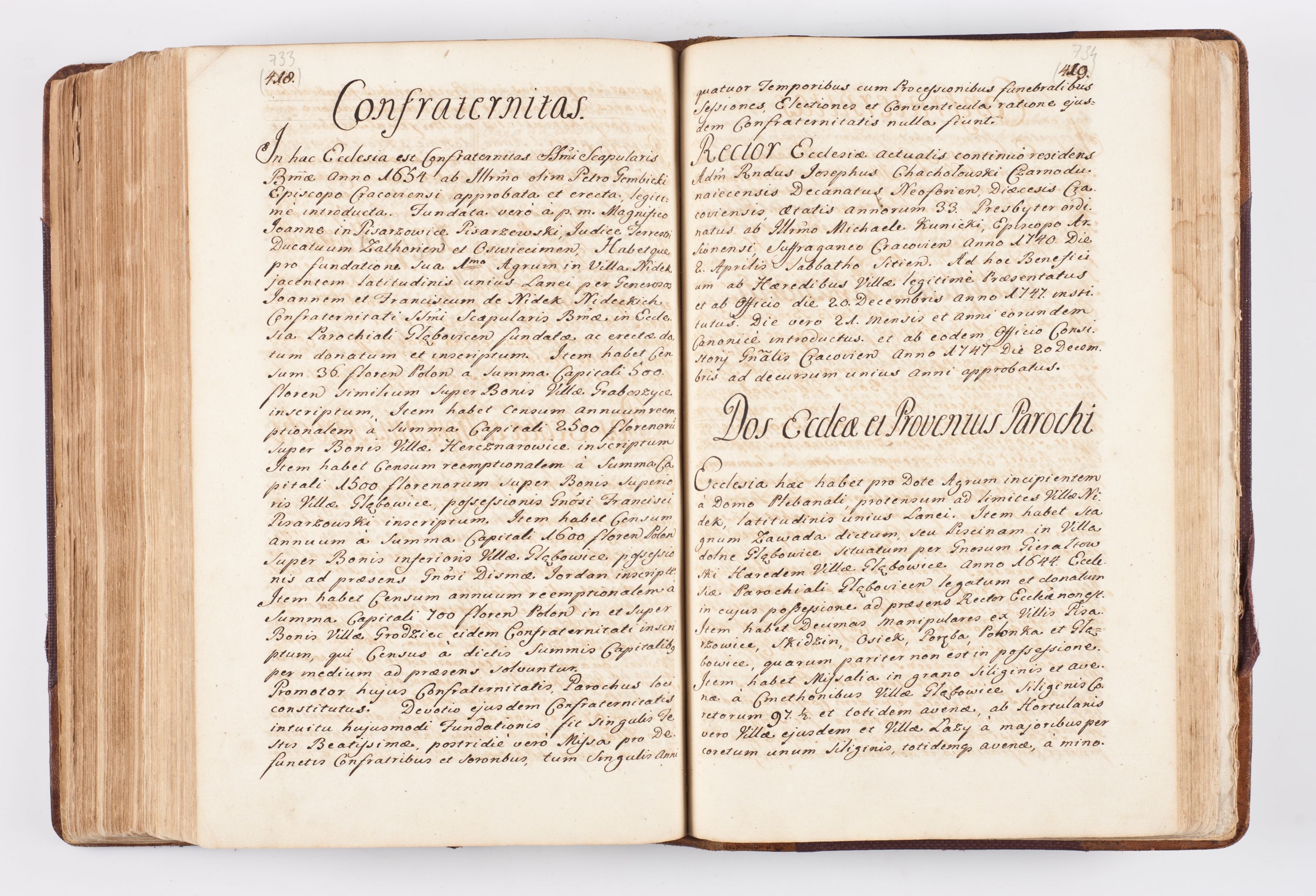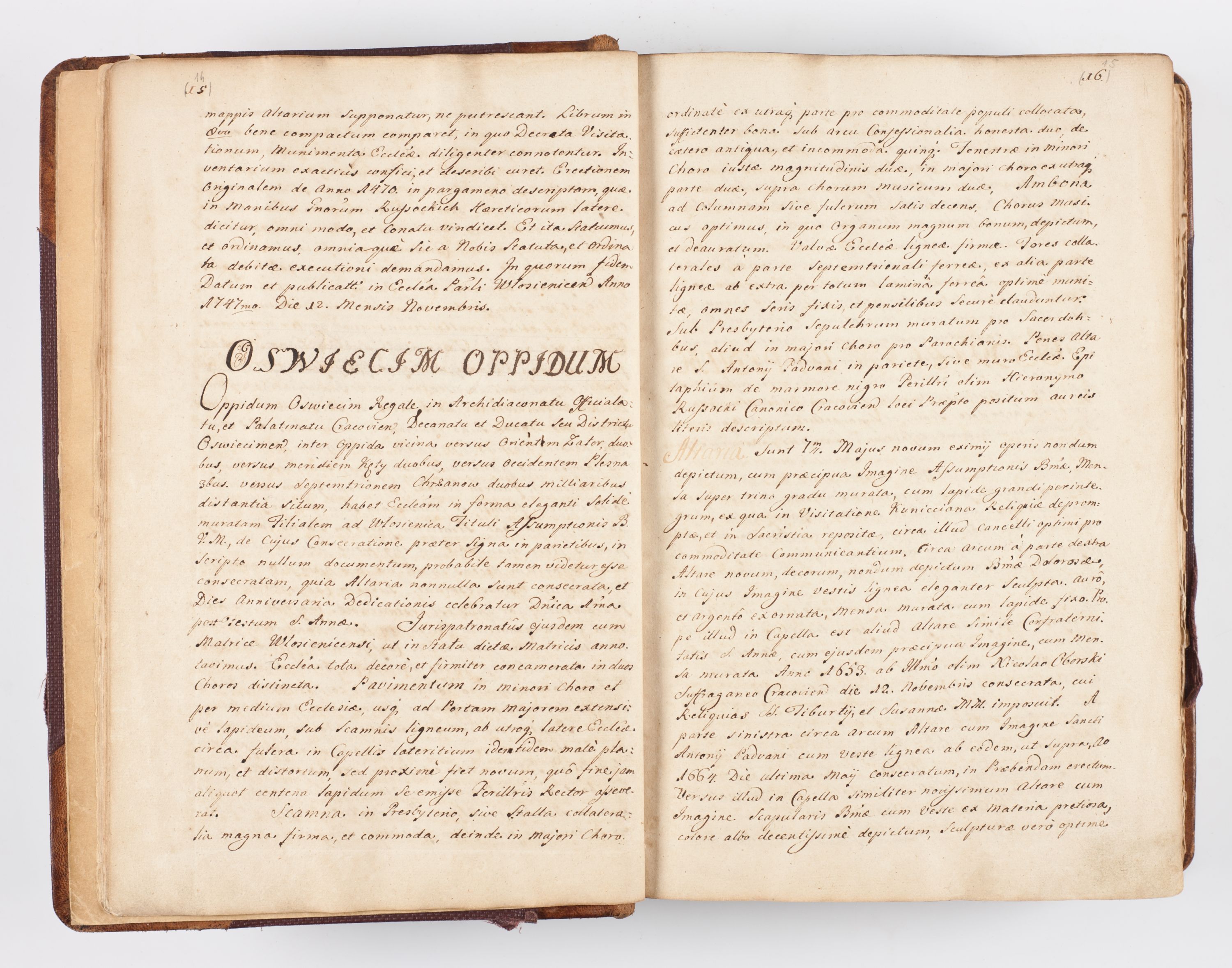 Visitatio ecclesiarum parochialium, praebendarum, capellarum, hospitalium atque confraternitatum, nec non beneficiorum in decanatibus Oswiecimensis et Zathoriensis, archidiaconatus et officialatus Cracoviensis existentium per R.D. Franciscum Lanckoroński, canonicum cathedralem Cracoviensem, visitatorem delegatum a.D. 1747 et 1748 expedita