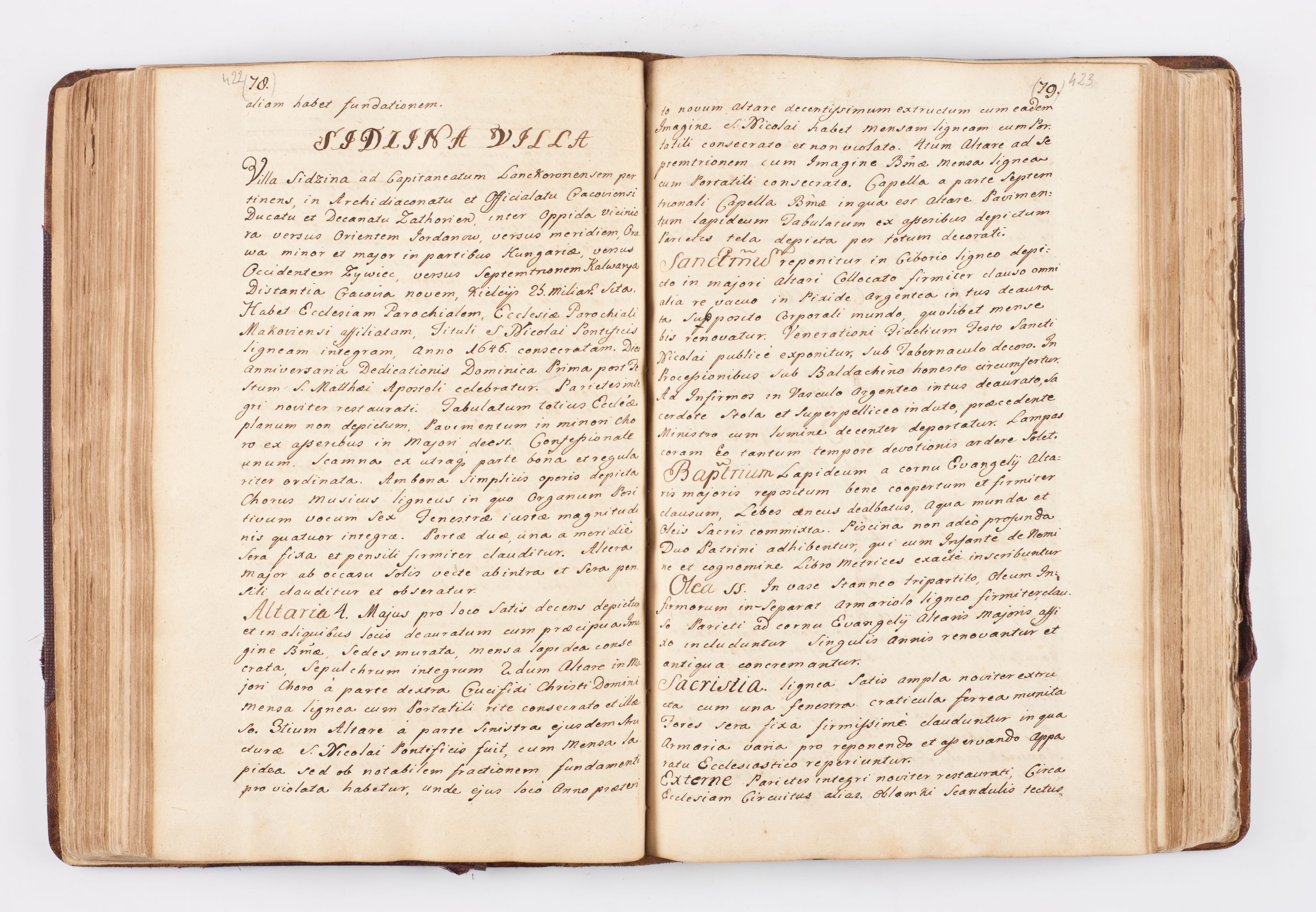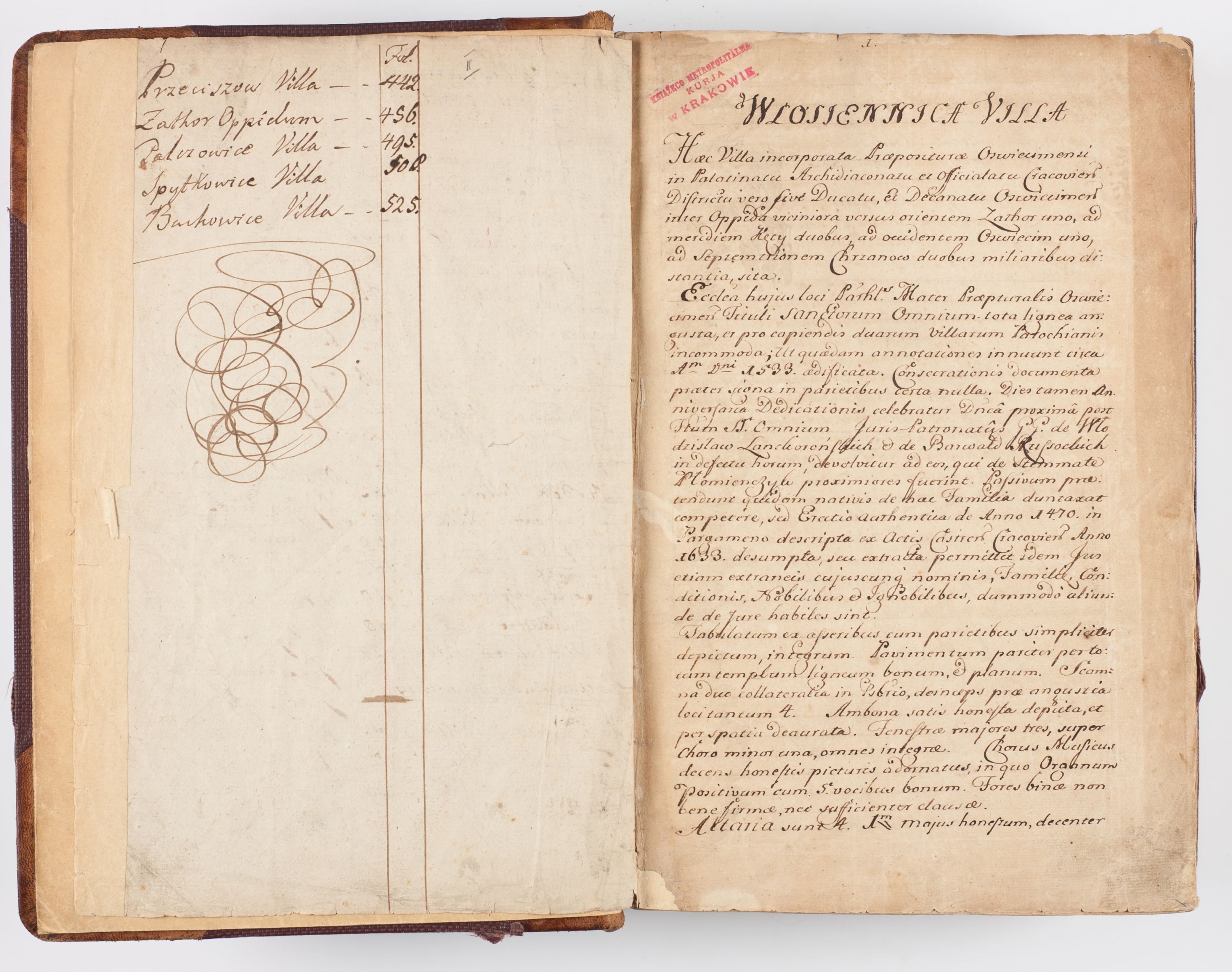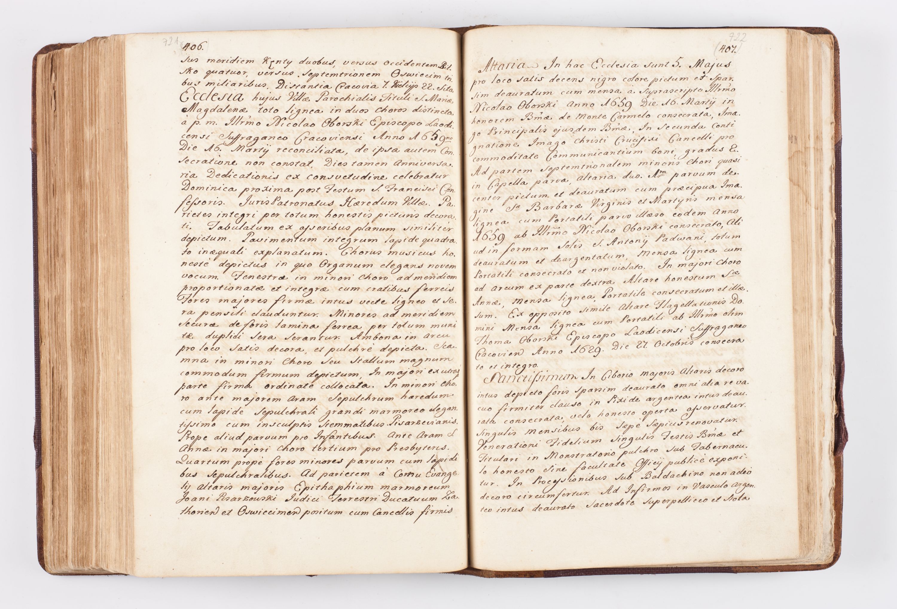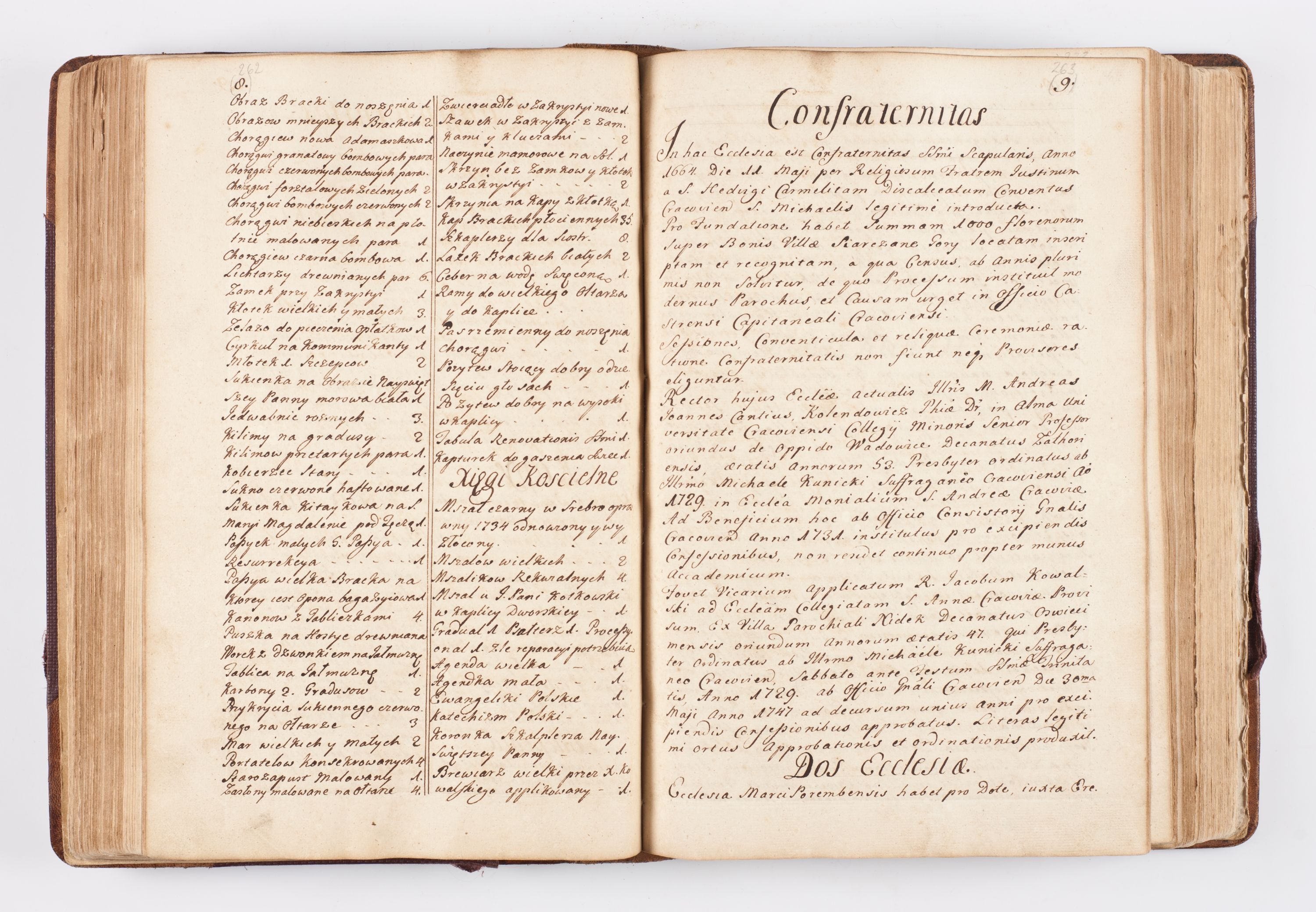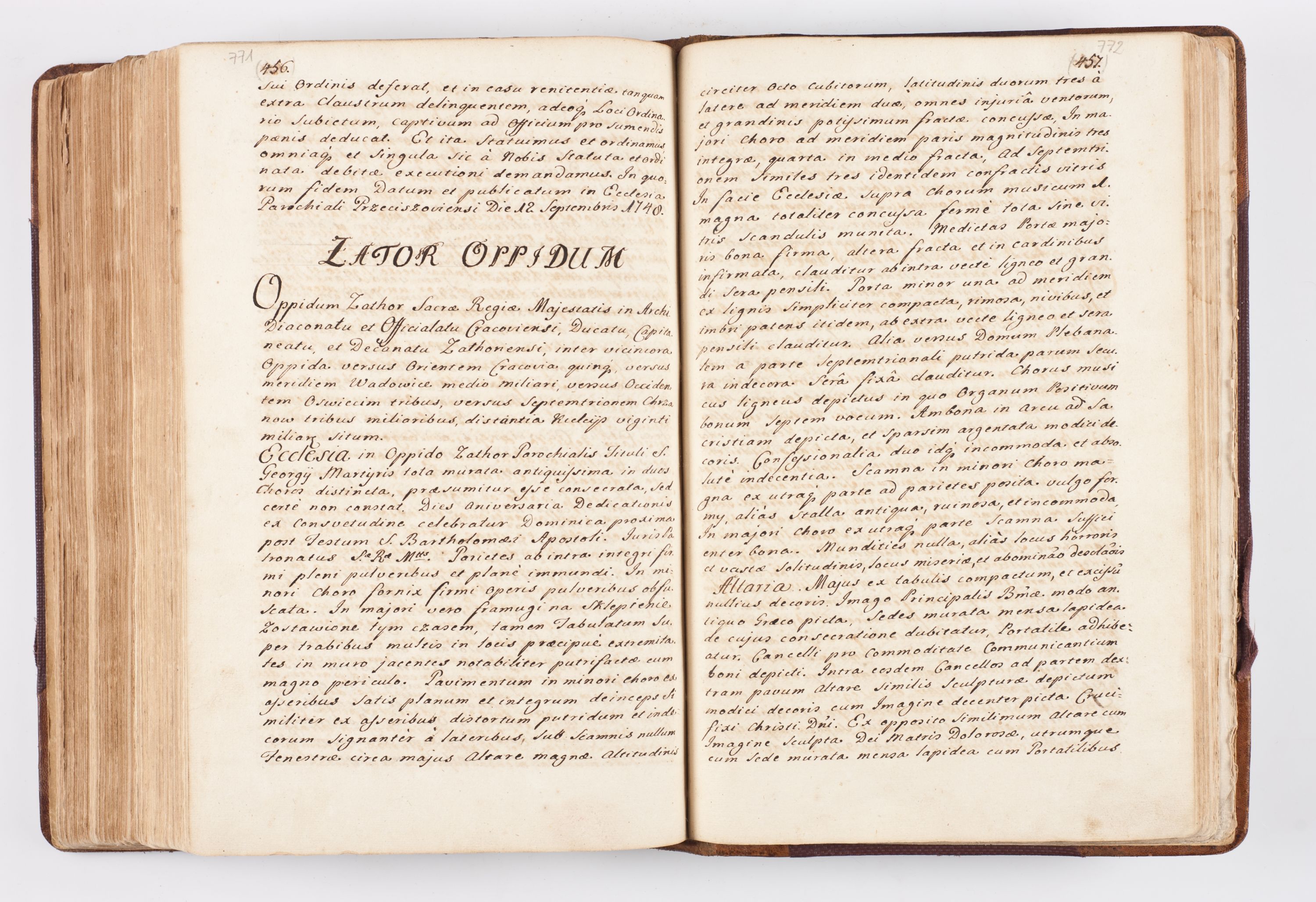 Visitatio ecclesiarum parochialium, praebendarum, capellarum, hospitalium atque confraternitatum, nec non beneficiorum in decanatibus Oswiecimensis et Zathoriensis, archidiaconatus et officialatus Cracoviensis existentium per R.D. Franciscum Lanckoroński, canonicum cathedralem Cracoviensem, visitatorem delegatum a.D. 1747 et 1748 expedita