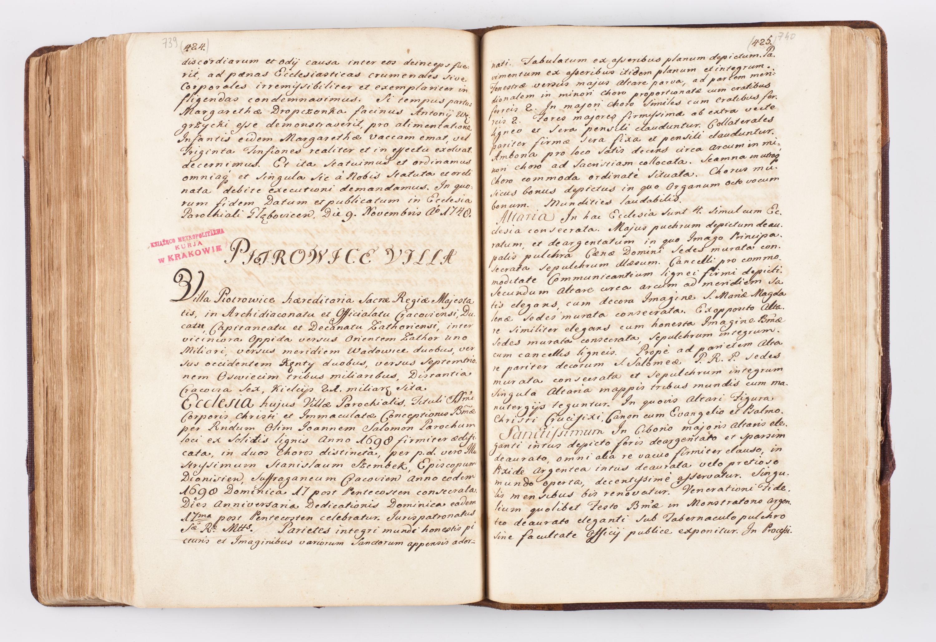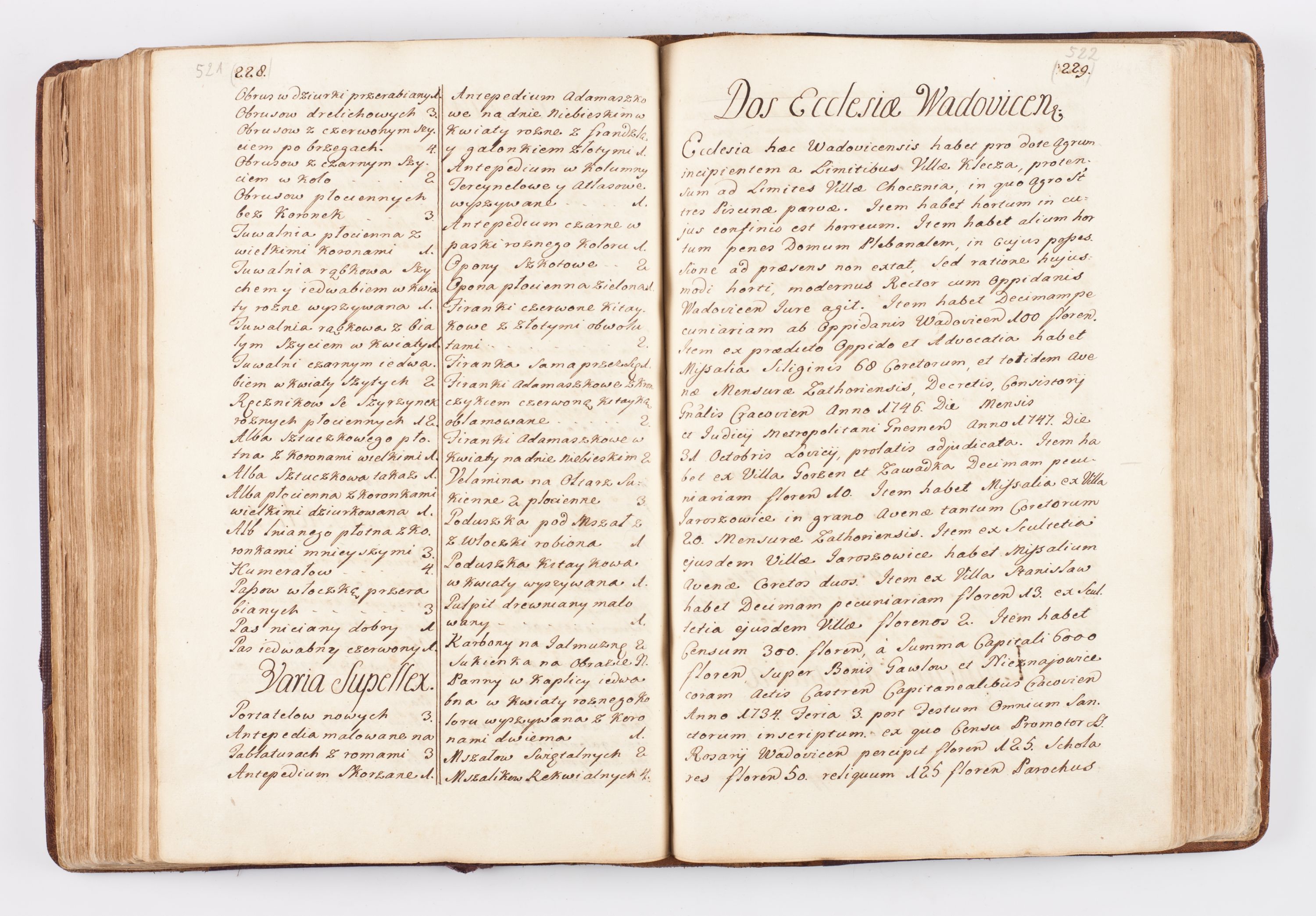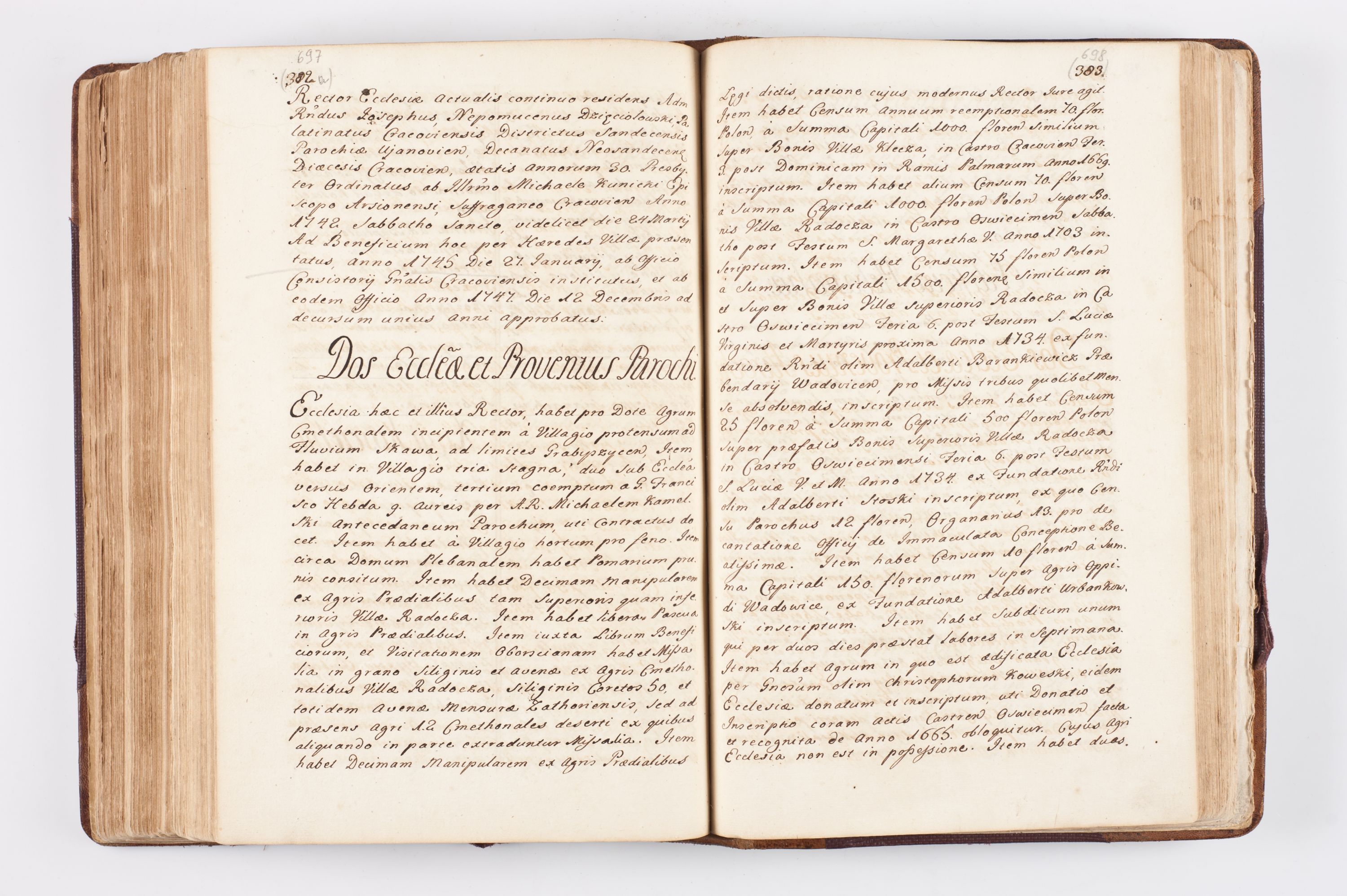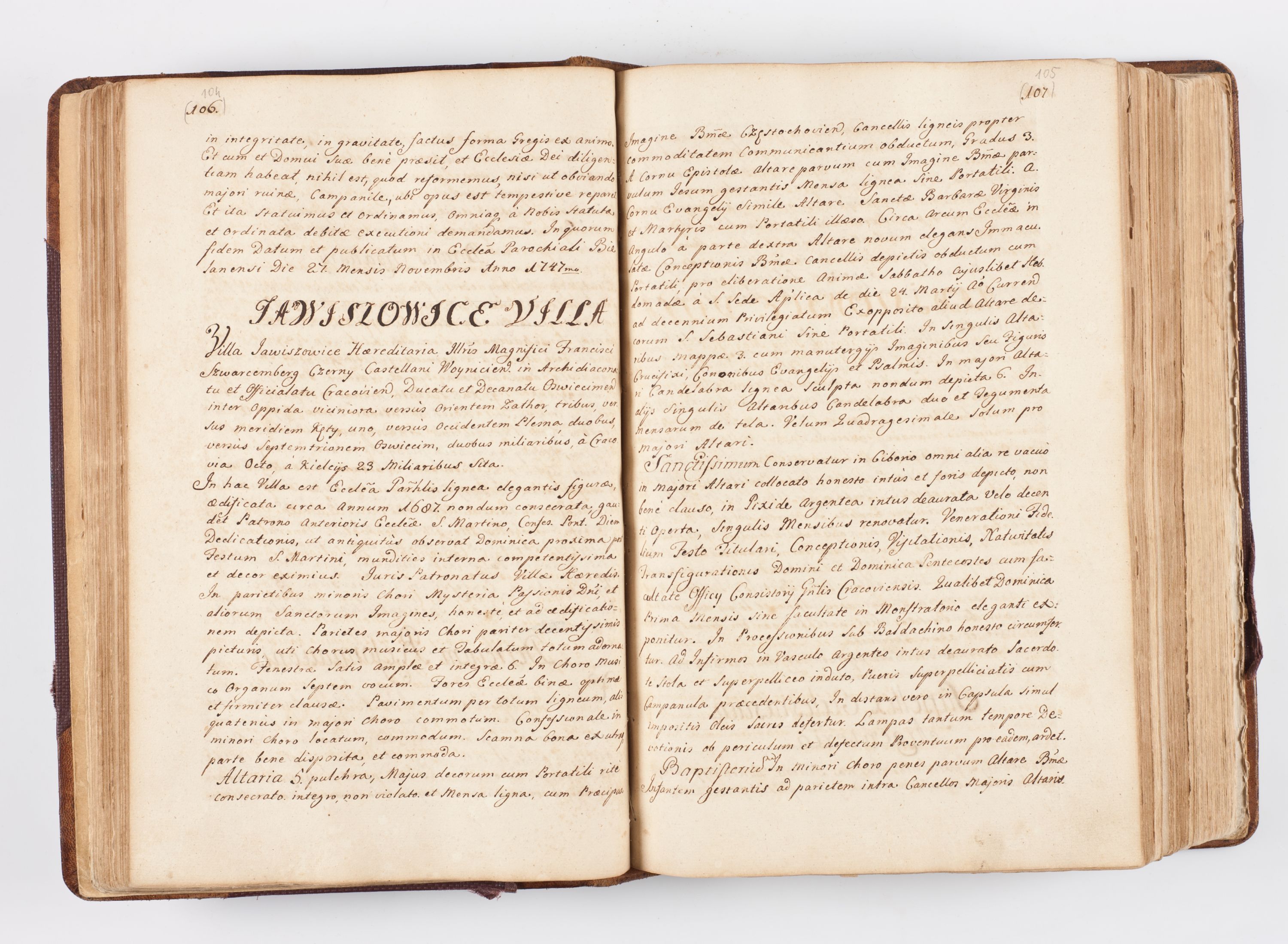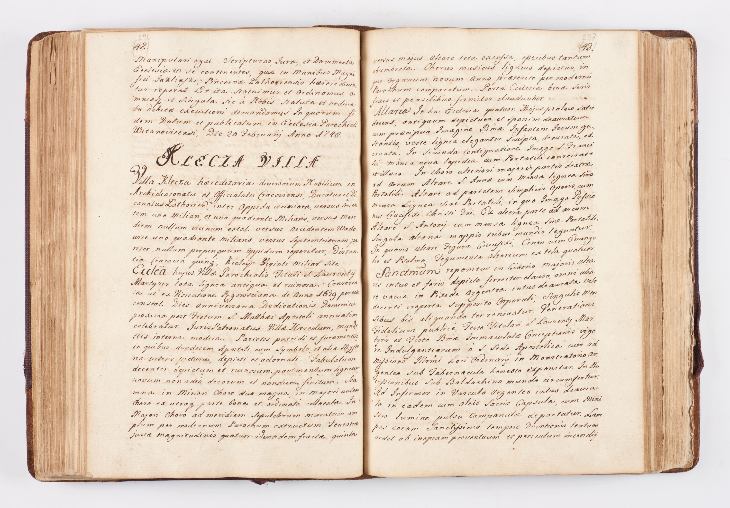 Visitatio ecclesiarum parochialium, praebendarum, capellarum, hospitalium atque confraternitatum, nec non beneficiorum in decanatibus Oswiecimensis et Zathoriensis, archidiaconatus et officialatus Cracoviensis existentium per R.D. Franciscum Lanckoroński, canonicum cathedralem Cracoviensem, visitatorem delegatum a.D. 1747 et 1748 expedita