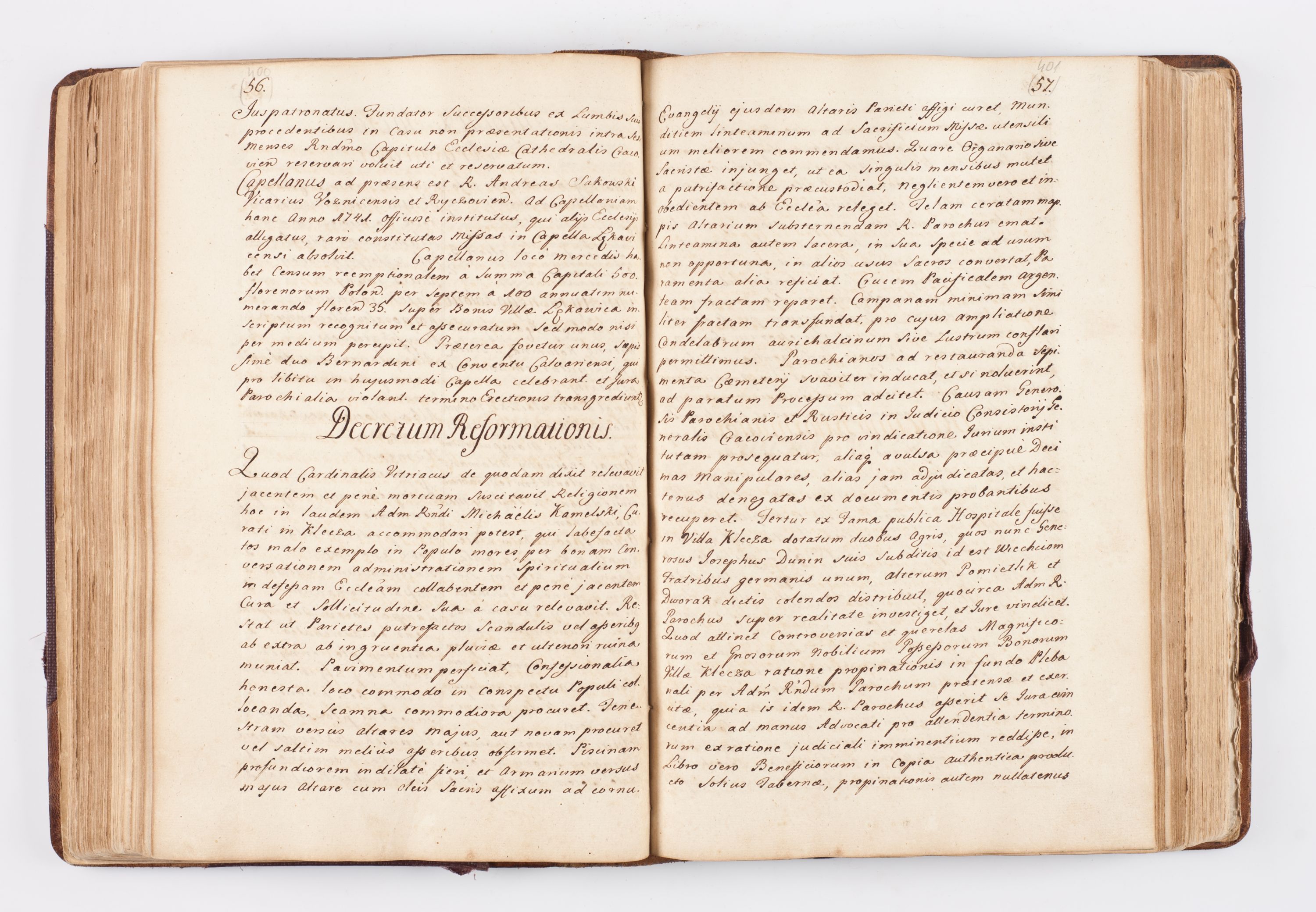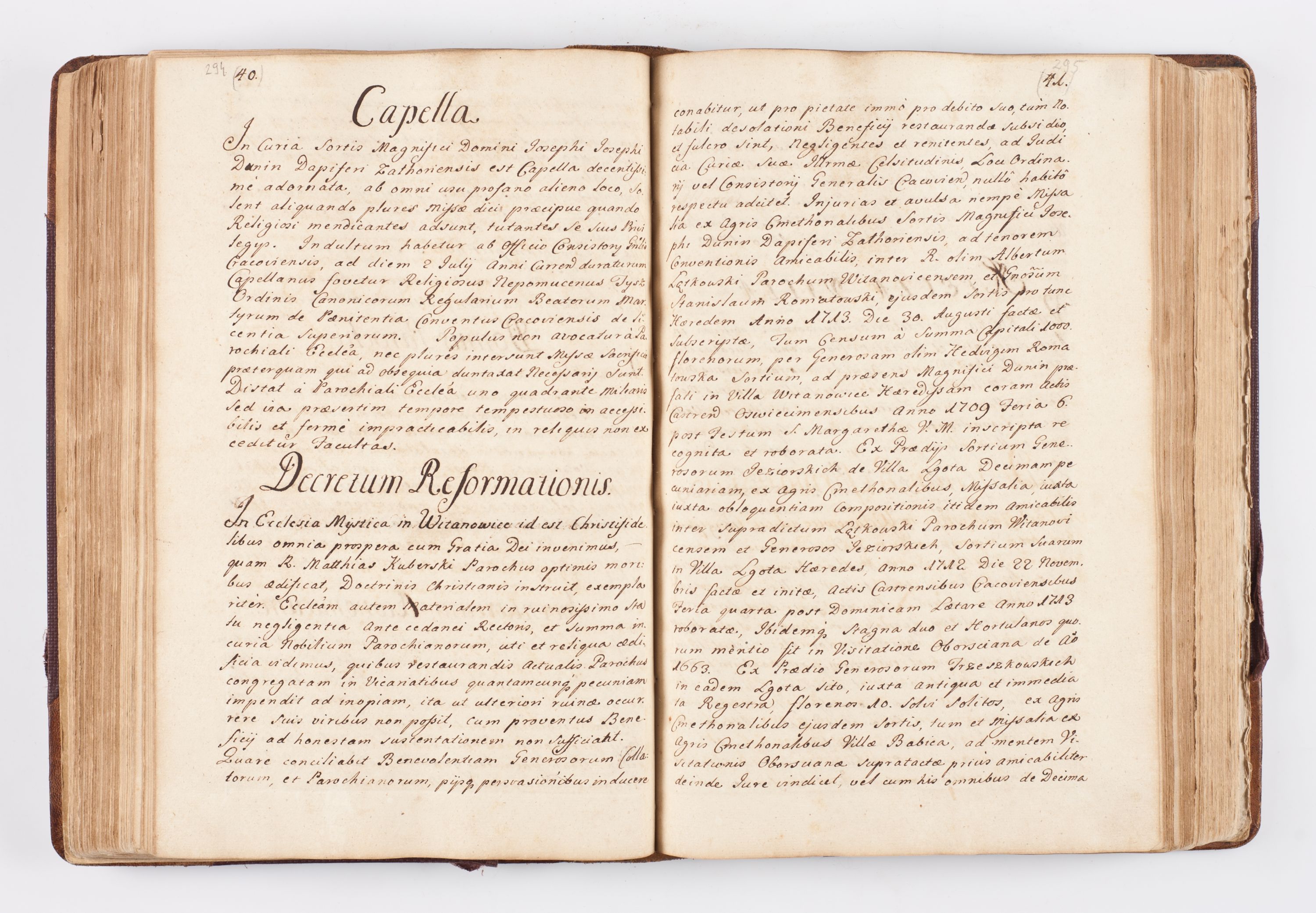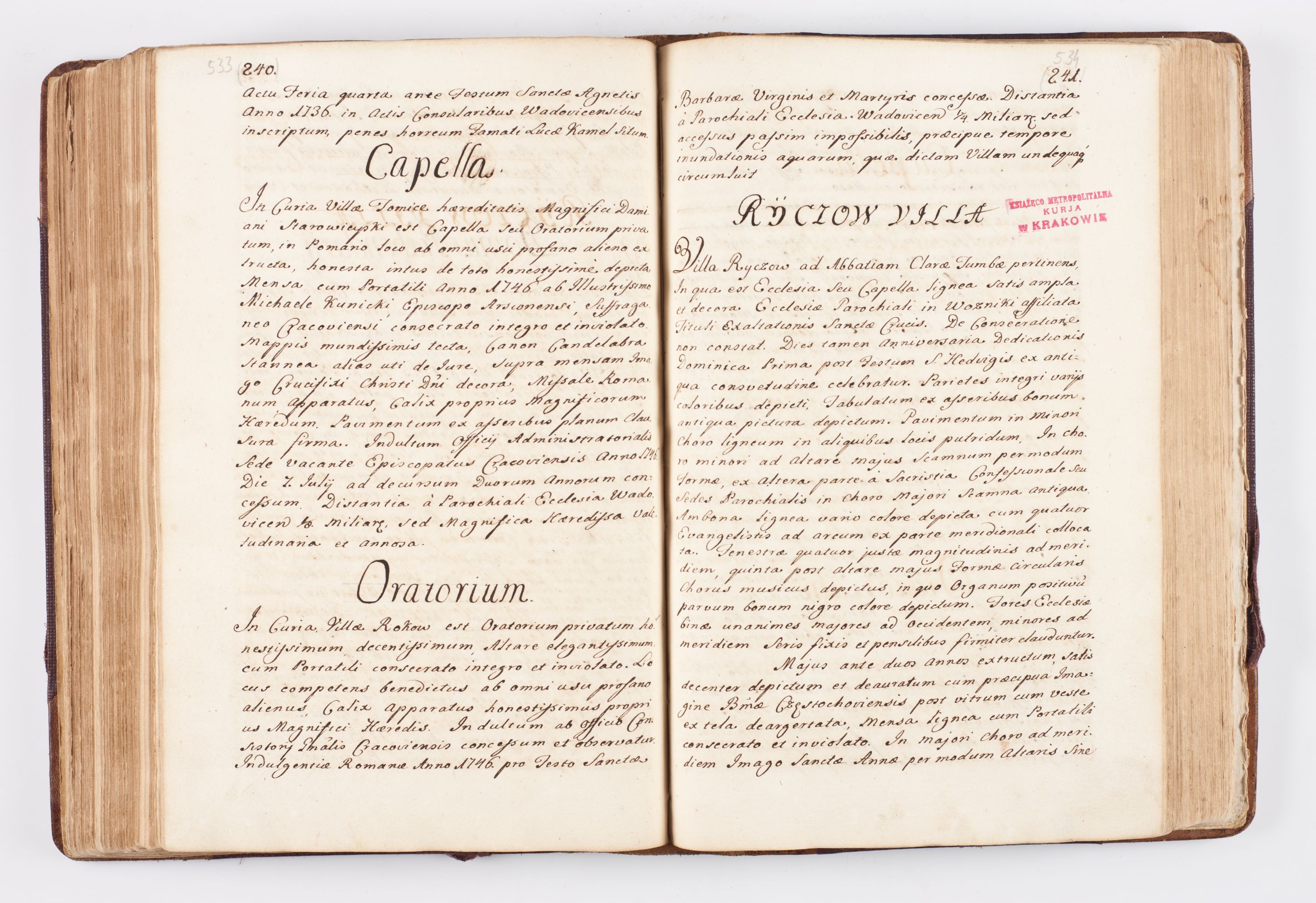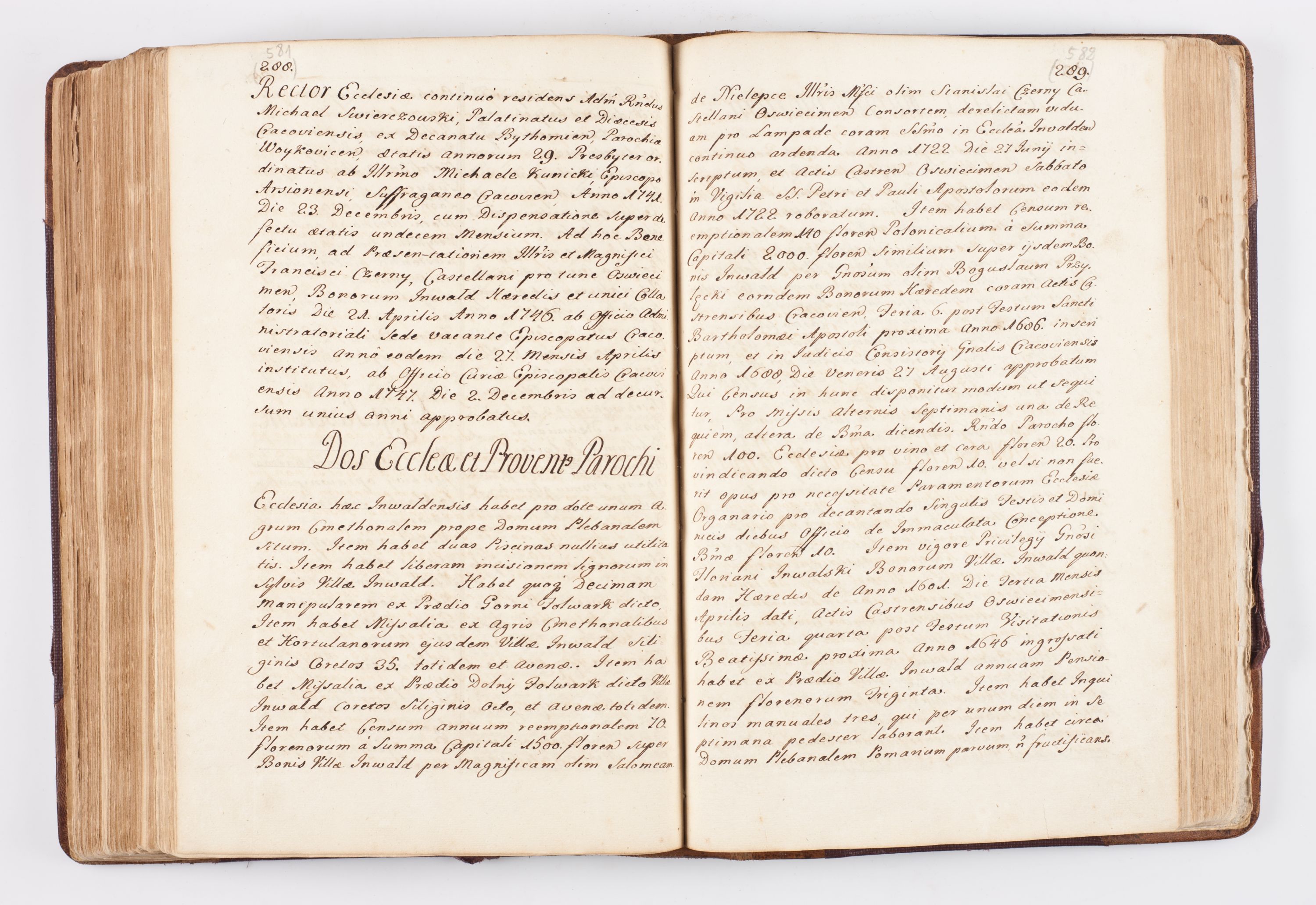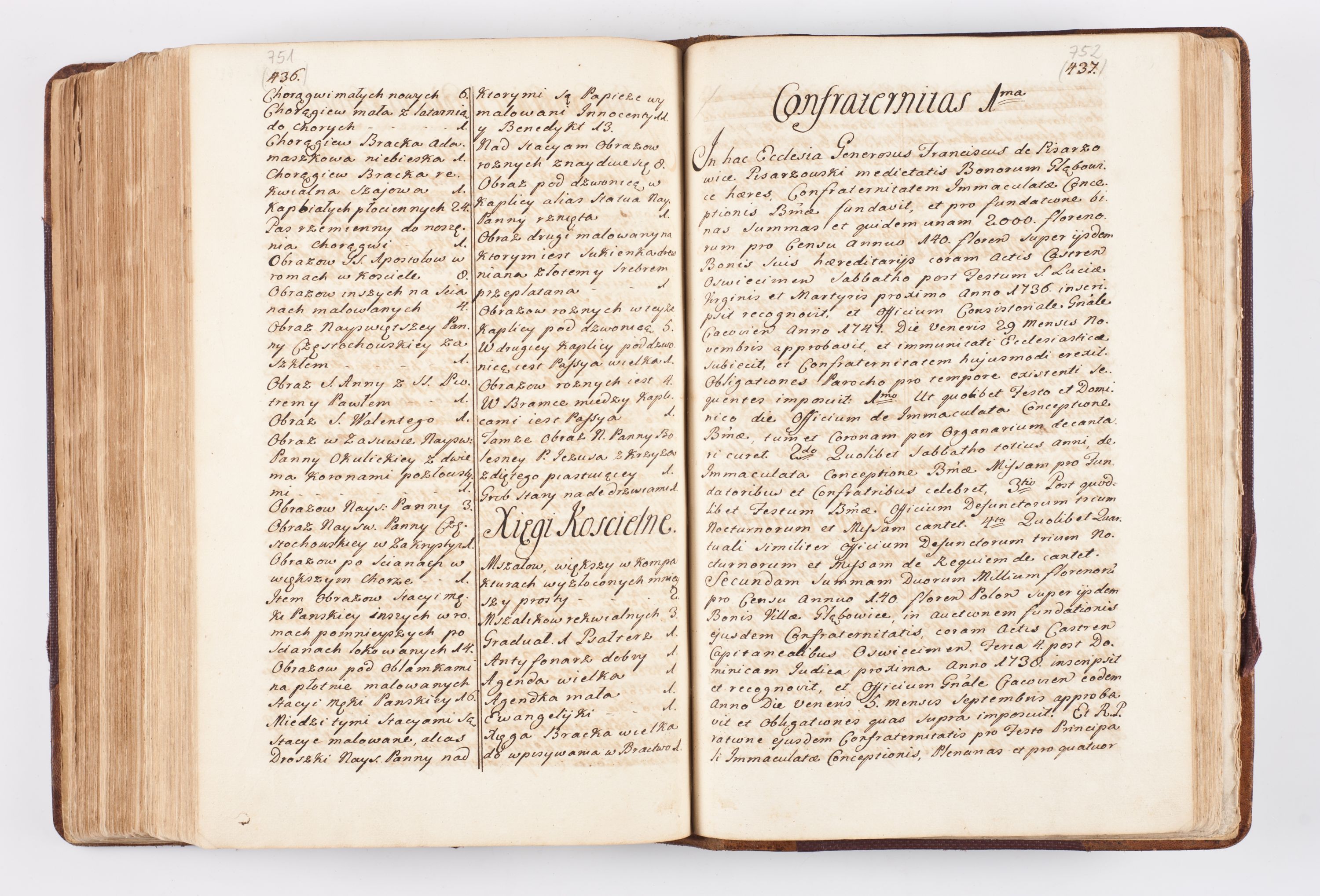 Visitatio ecclesiarum parochialium, praebendarum, capellarum, hospitalium atque confraternitatum, nec non beneficiorum in decanatibus Oswiecimensis et Zathoriensis, archidiaconatus et officialatus Cracoviensis existentium per R.D. Franciscum Lanckoroński, canonicum cathedralem Cracoviensem, visitatorem delegatum a.D. 1747 et 1748 expedita