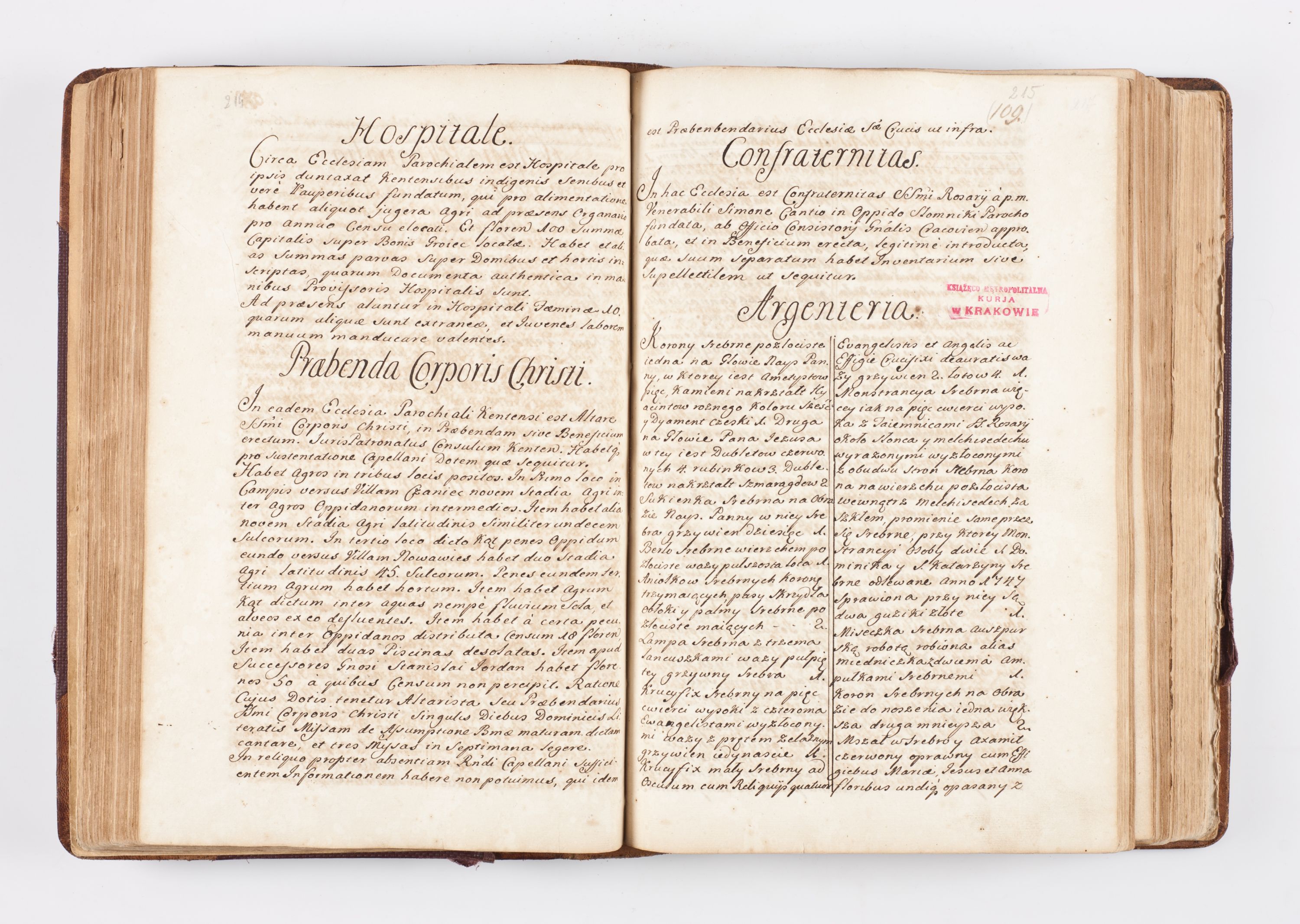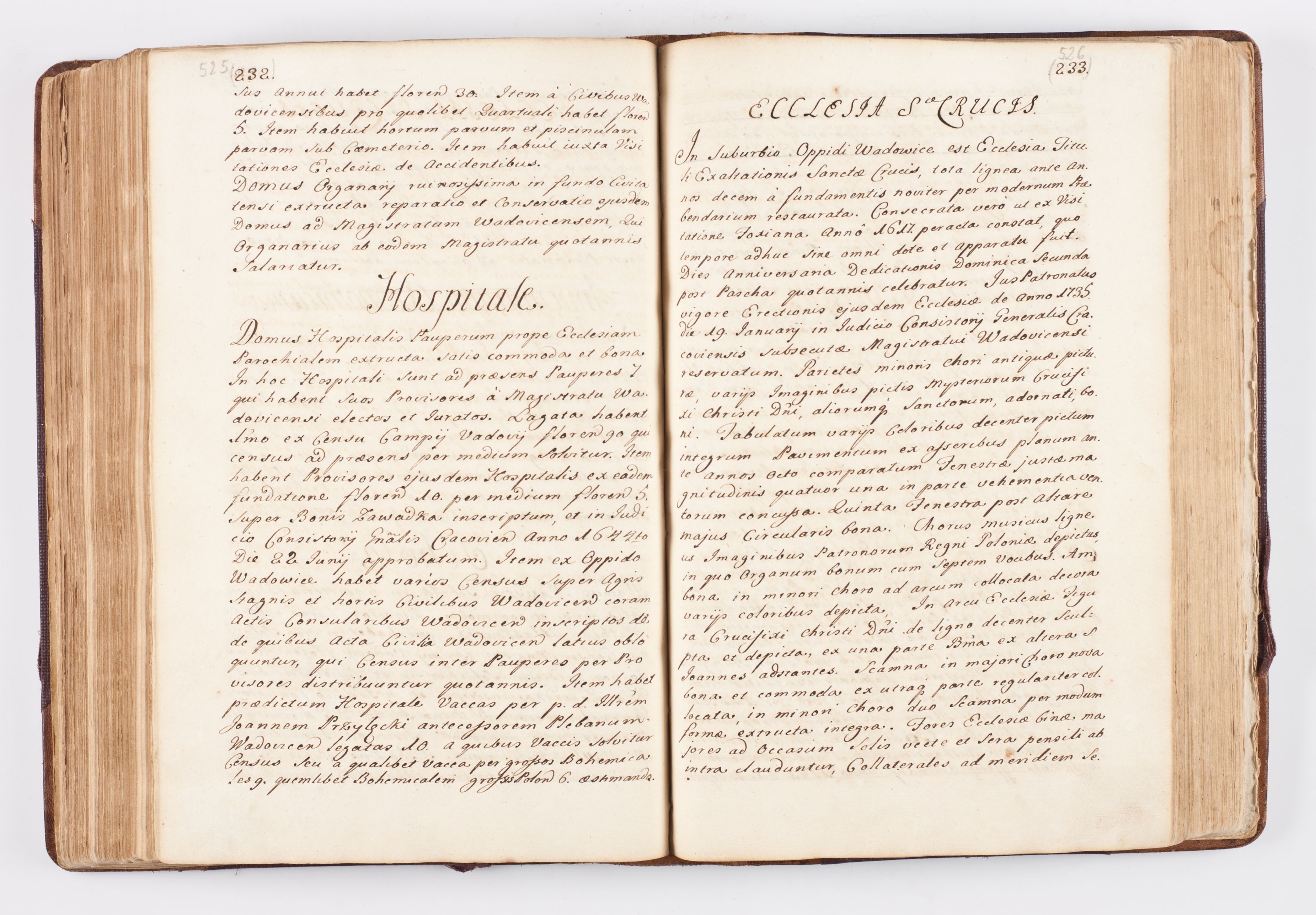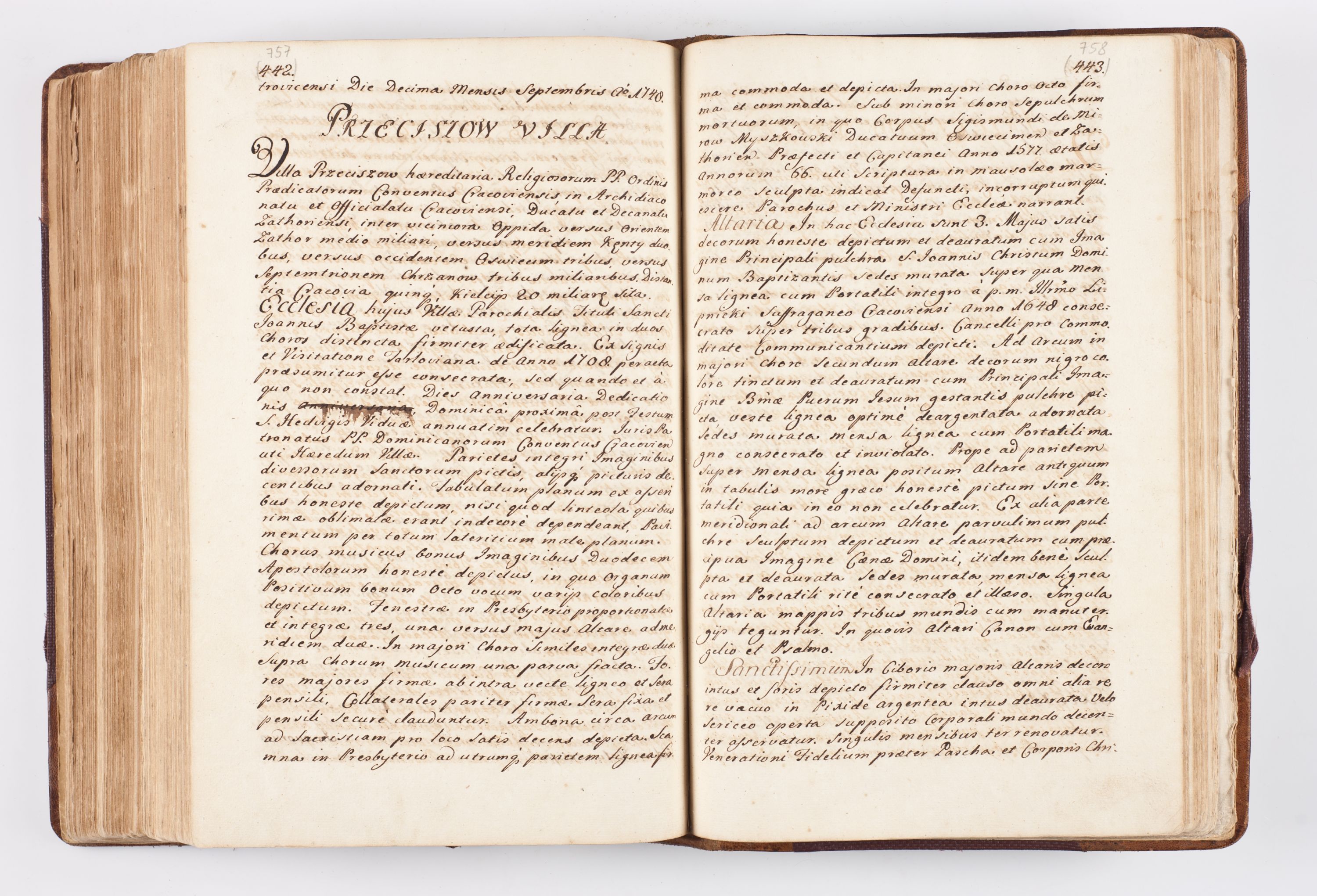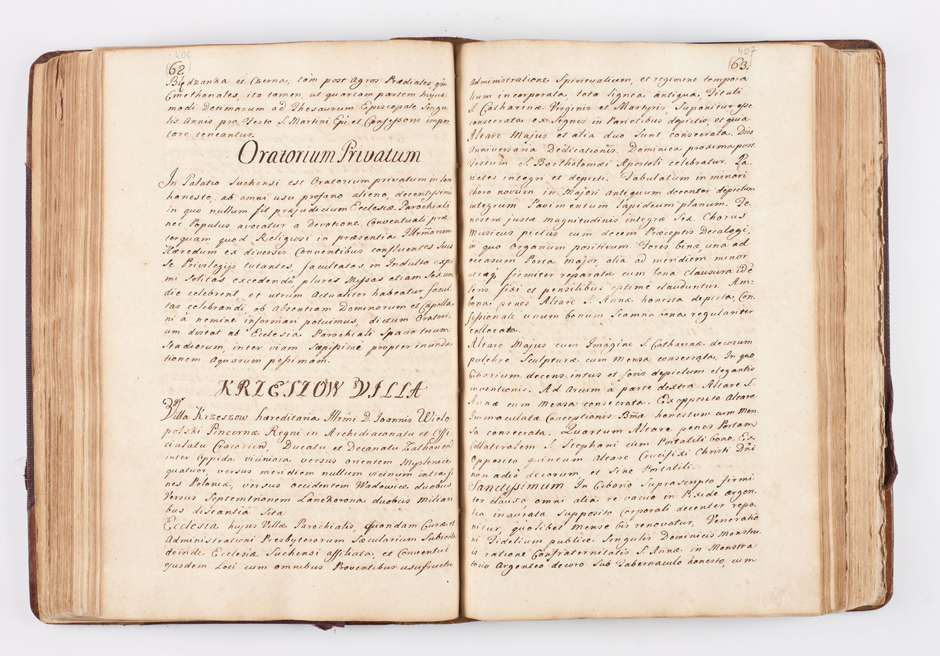 Visitatio ecclesiarum parochialium, praebendarum, capellarum, hospitalium atque confraternitatum, nec non beneficiorum in decanatibus Oswiecimensis et Zathoriensis, archidiaconatus et officialatus Cracoviensis existentium per R.D. Franciscum Lanckoroński, canonicum cathedralem Cracoviensem, visitatorem delegatum a.D. 1747 et 1748 expedita