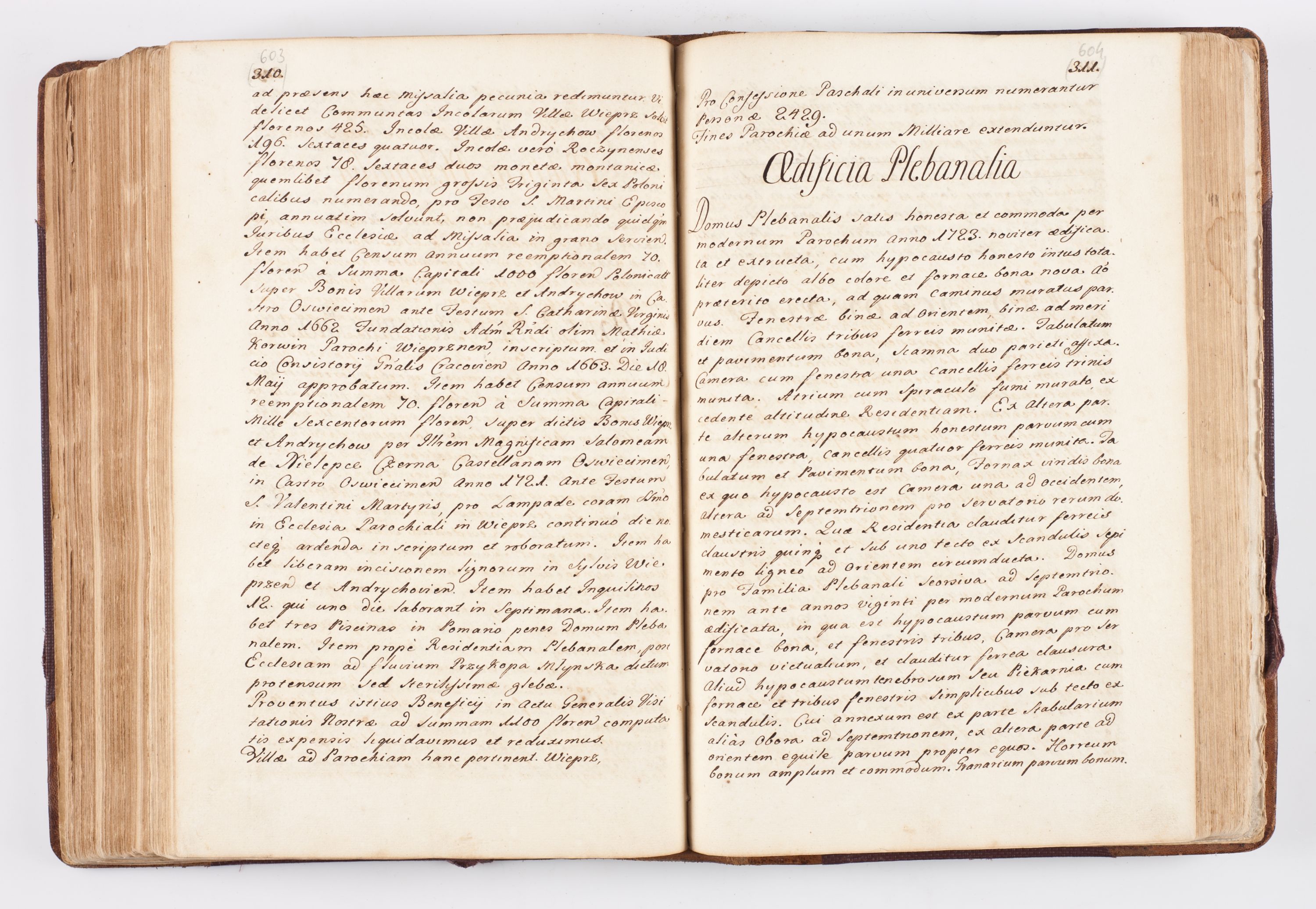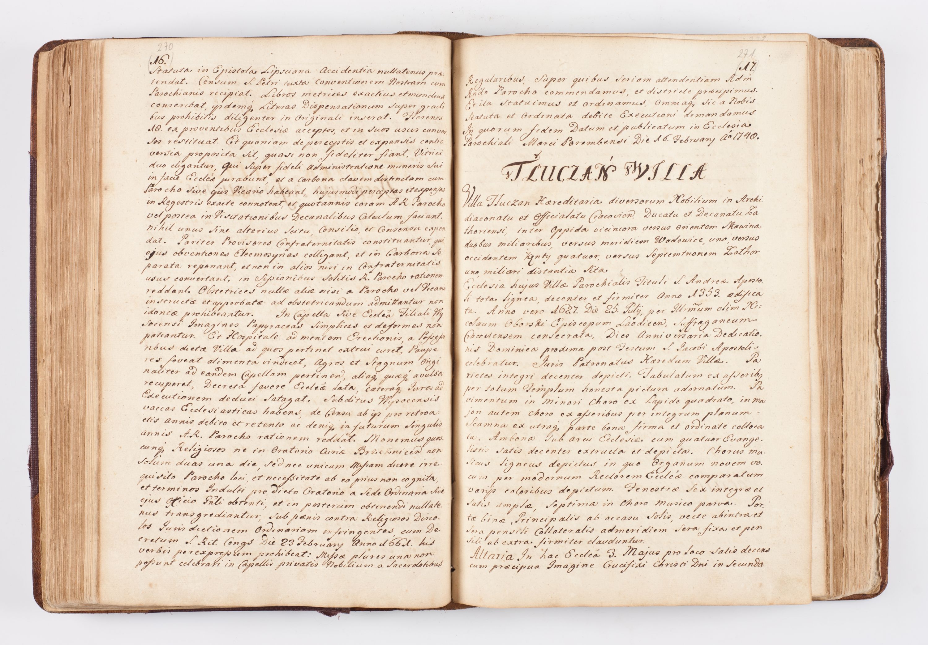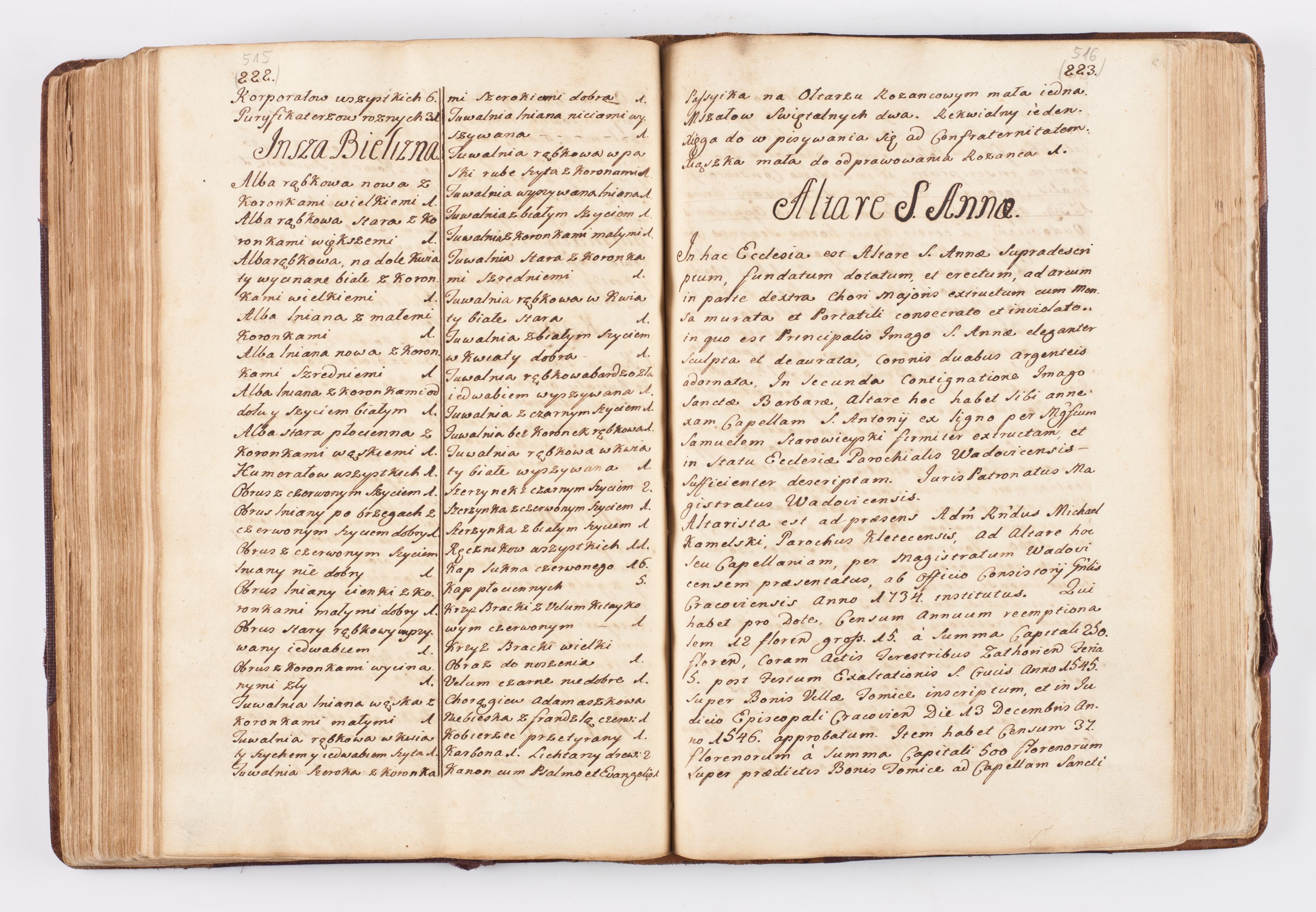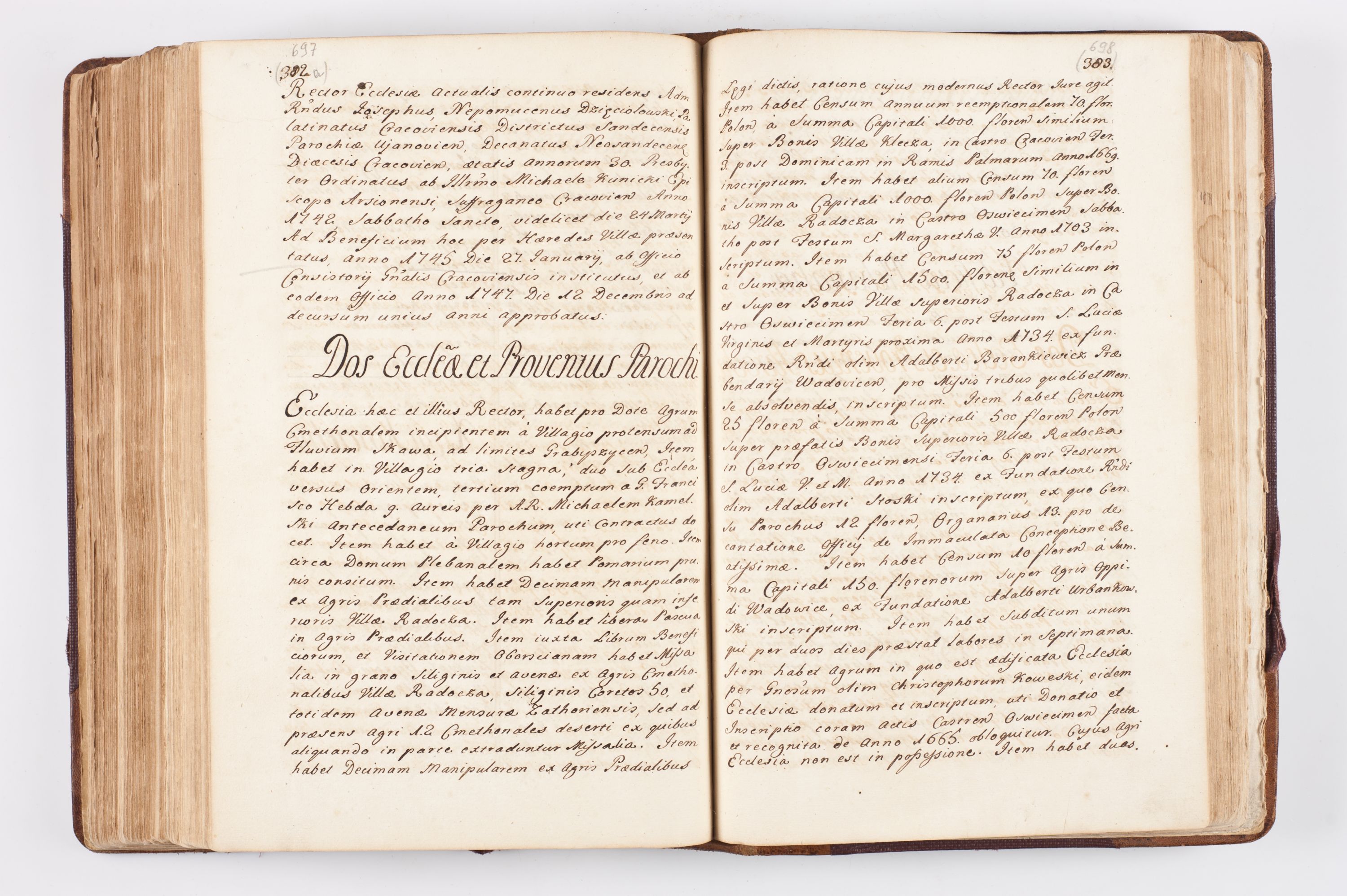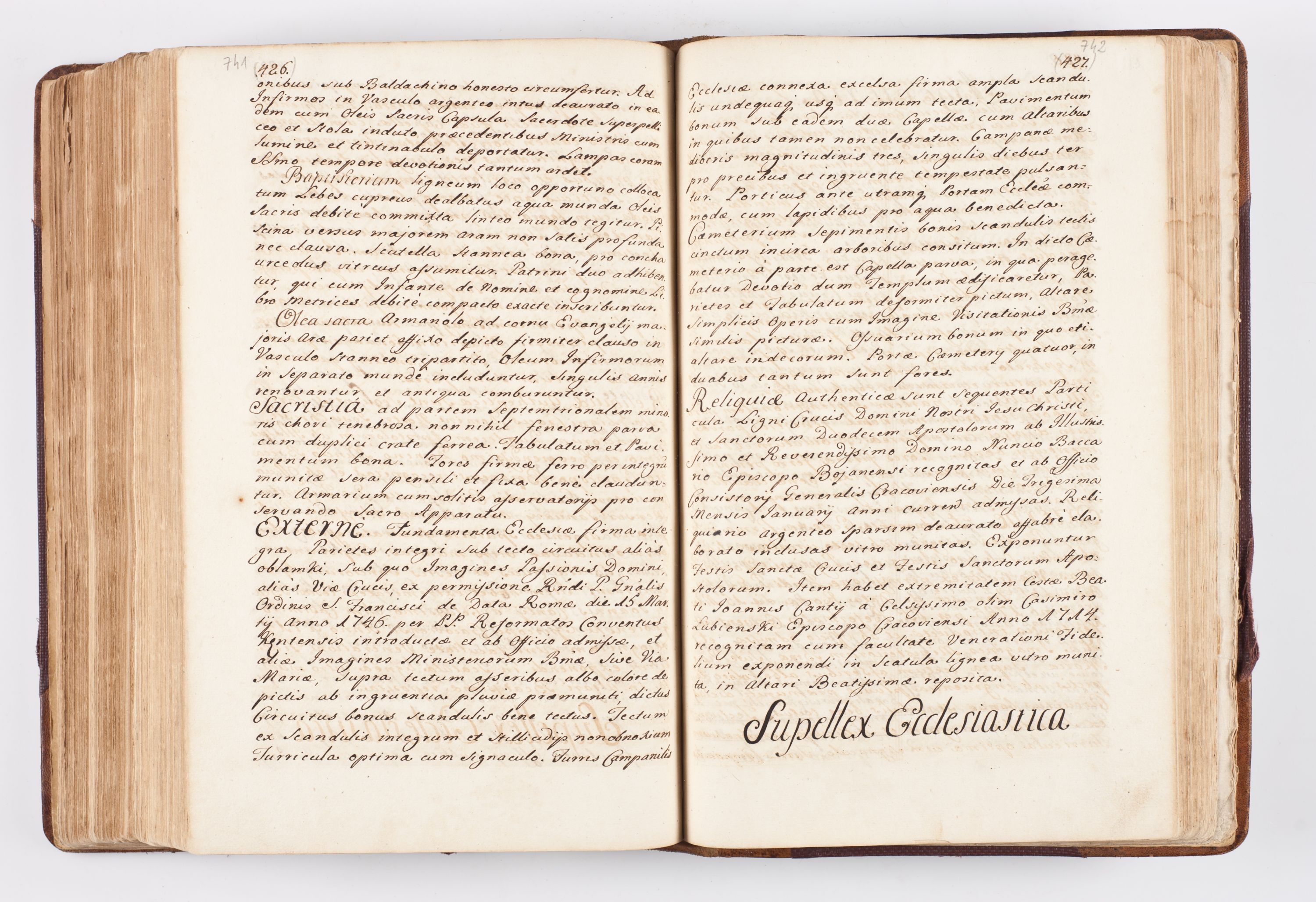 Visitatio ecclesiarum parochialium, praebendarum, capellarum, hospitalium atque confraternitatum, nec non beneficiorum in decanatibus Oswiecimensis et Zathoriensis, archidiaconatus et officialatus Cracoviensis existentium per R.D. Franciscum Lanckoroński, canonicum cathedralem Cracoviensem, visitatorem delegatum a.D. 1747 et 1748 expedita