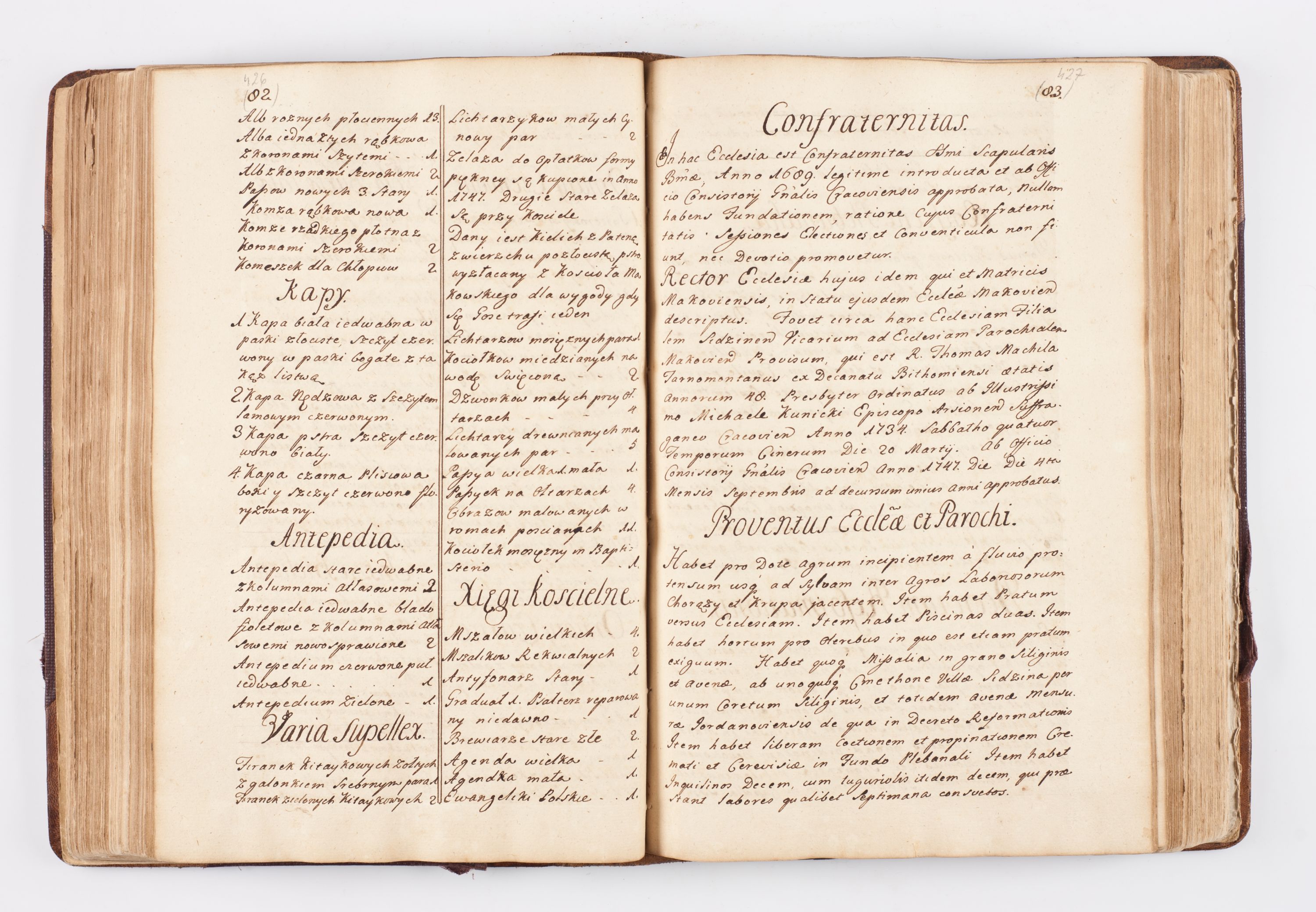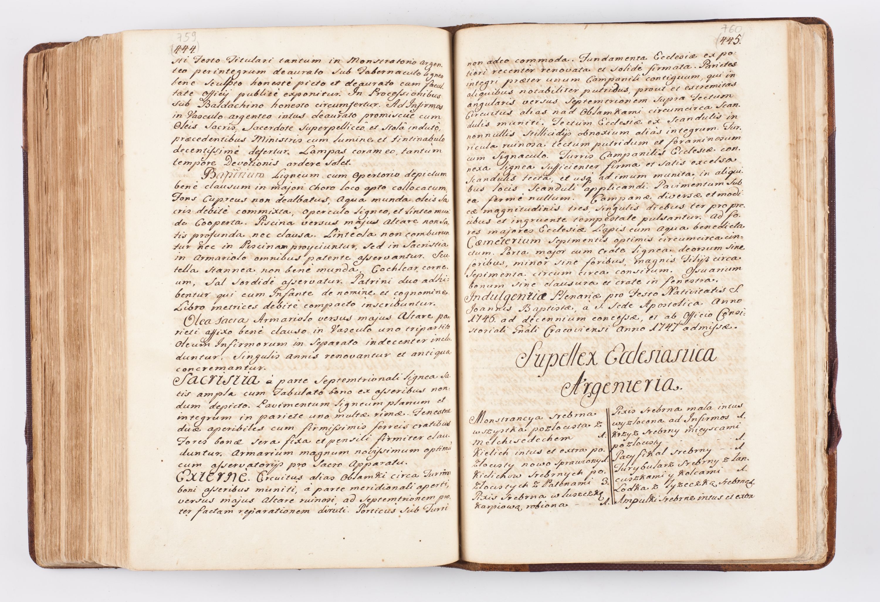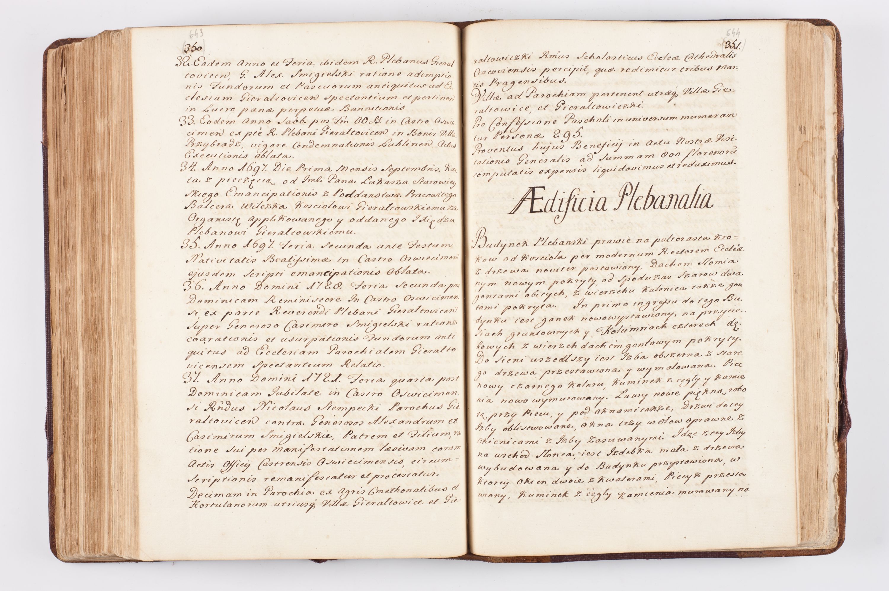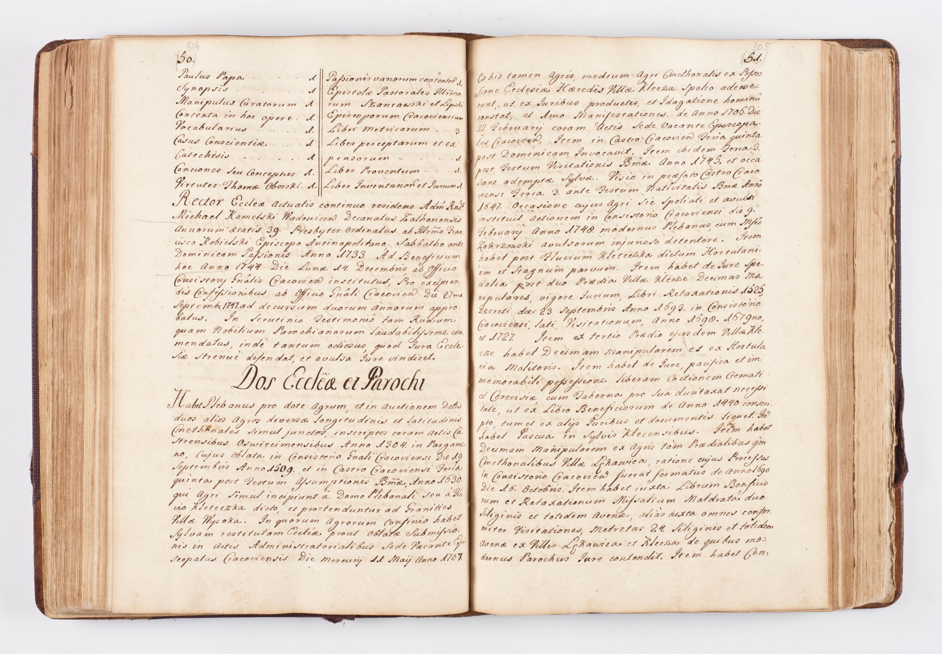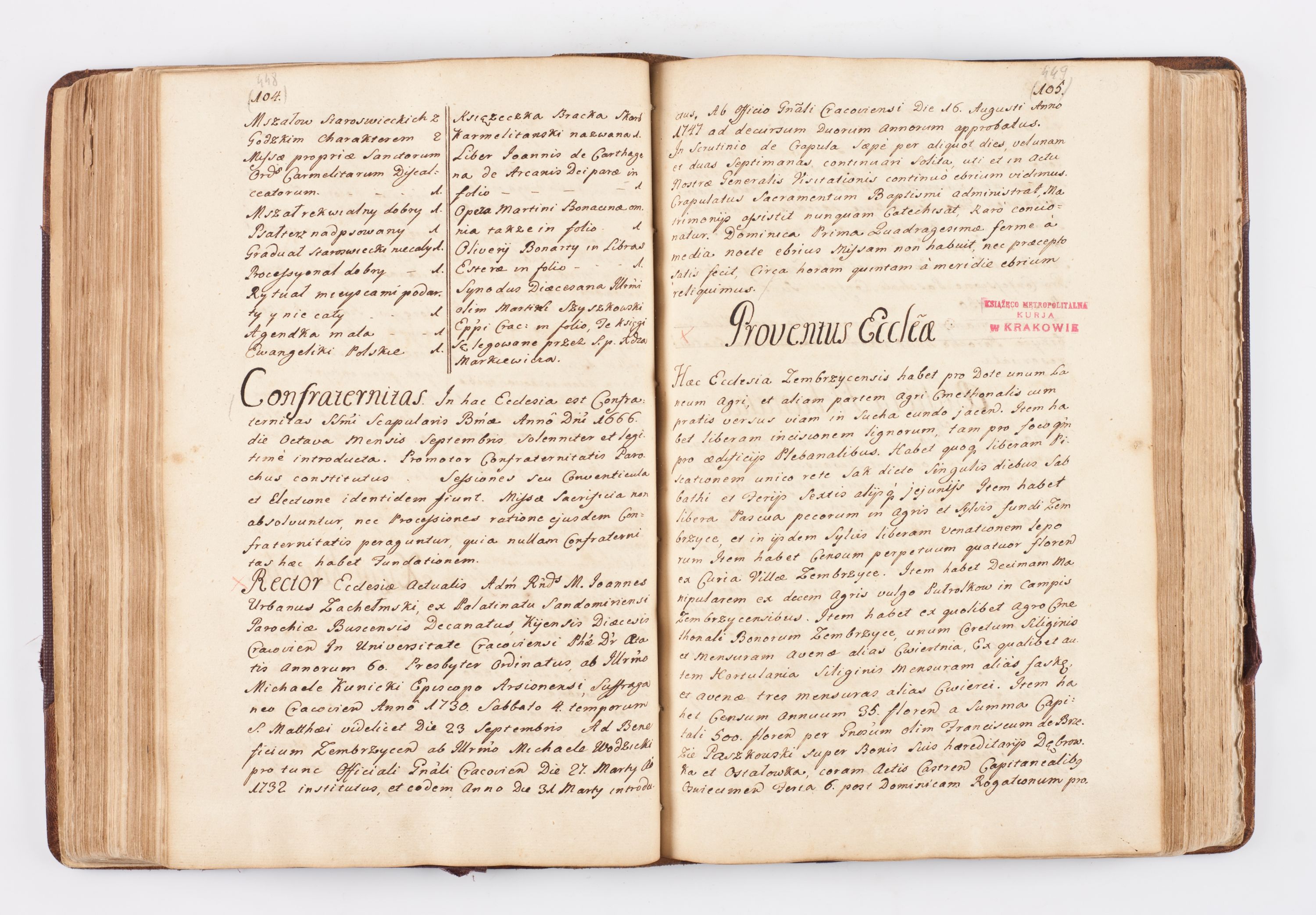 Visitatio ecclesiarum parochialium, praebendarum, capellarum, hospitalium atque confraternitatum, nec non beneficiorum in decanatibus Oswiecimensis et Zathoriensis, archidiaconatus et officialatus Cracoviensis existentium per R.D. Franciscum Lanckoroński, canonicum cathedralem Cracoviensem, visitatorem delegatum a.D. 1747 et 1748 expedita