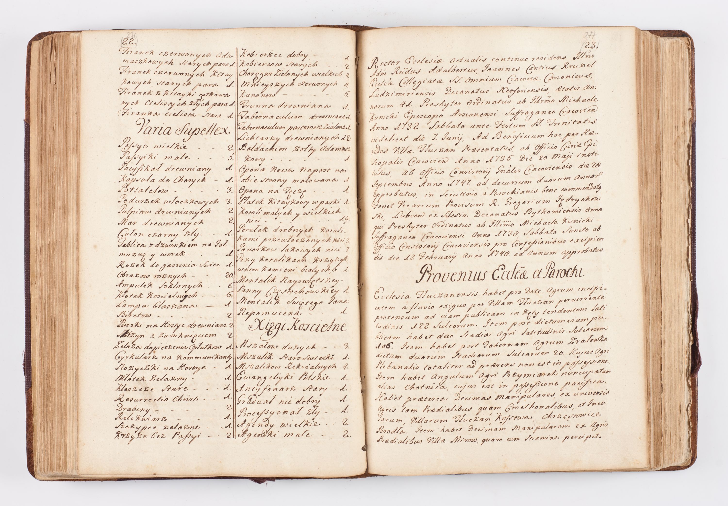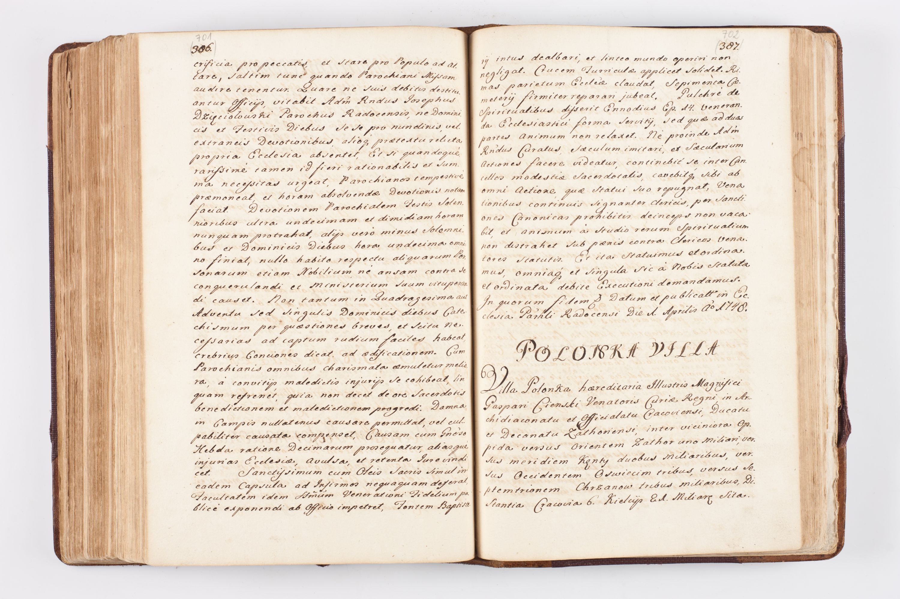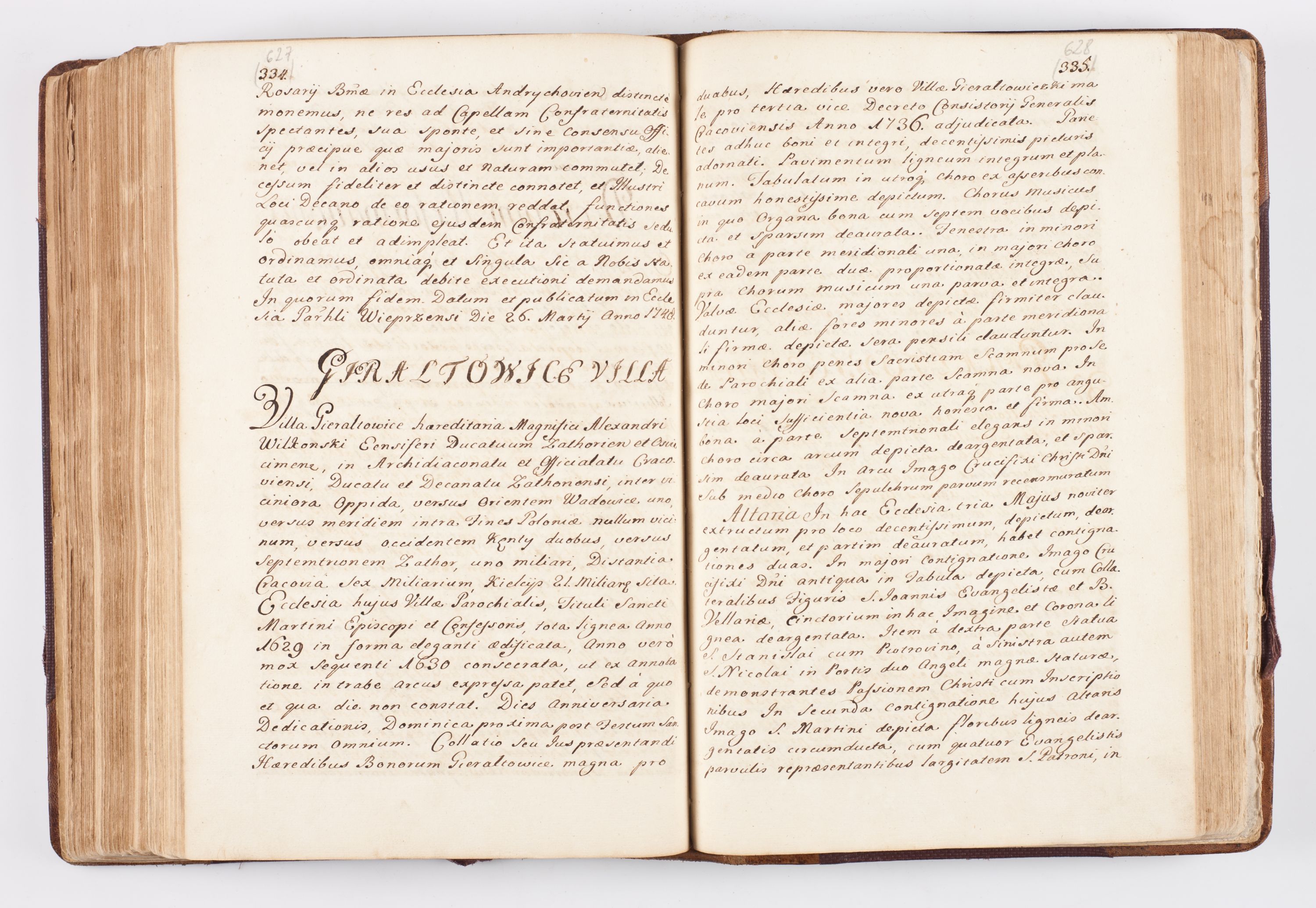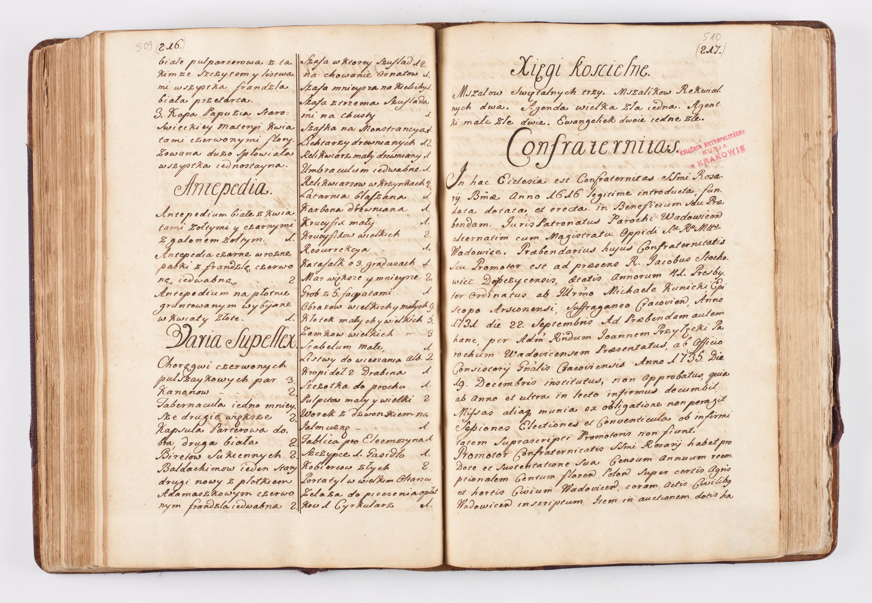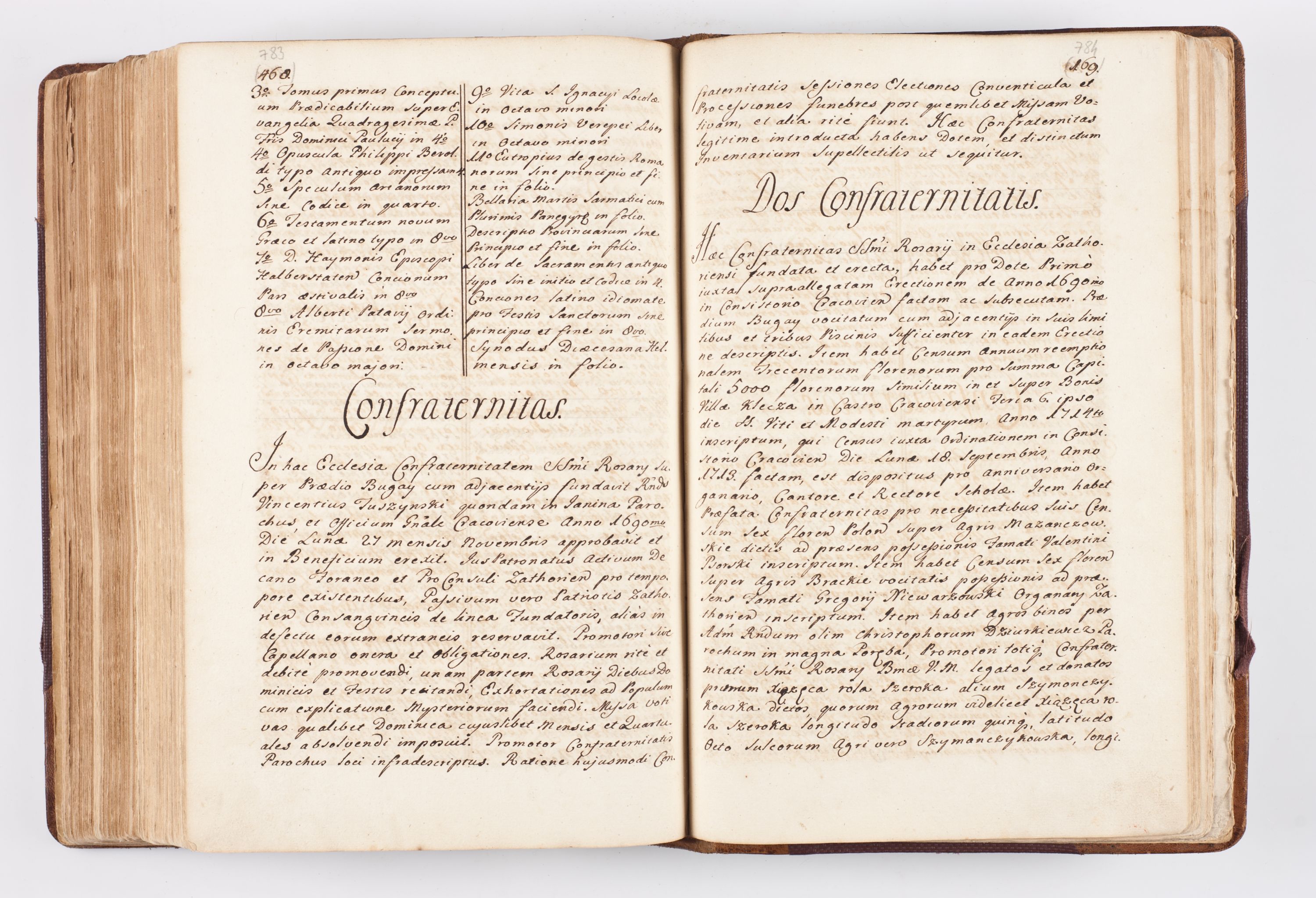 Visitatio ecclesiarum parochialium, praebendarum, capellarum, hospitalium atque confraternitatum, nec non beneficiorum in decanatibus Oswiecimensis et Zathoriensis, archidiaconatus et officialatus Cracoviensis existentium per R.D. Franciscum Lanckoroński, canonicum cathedralem Cracoviensem, visitatorem delegatum a.D. 1747 et 1748 expedita
