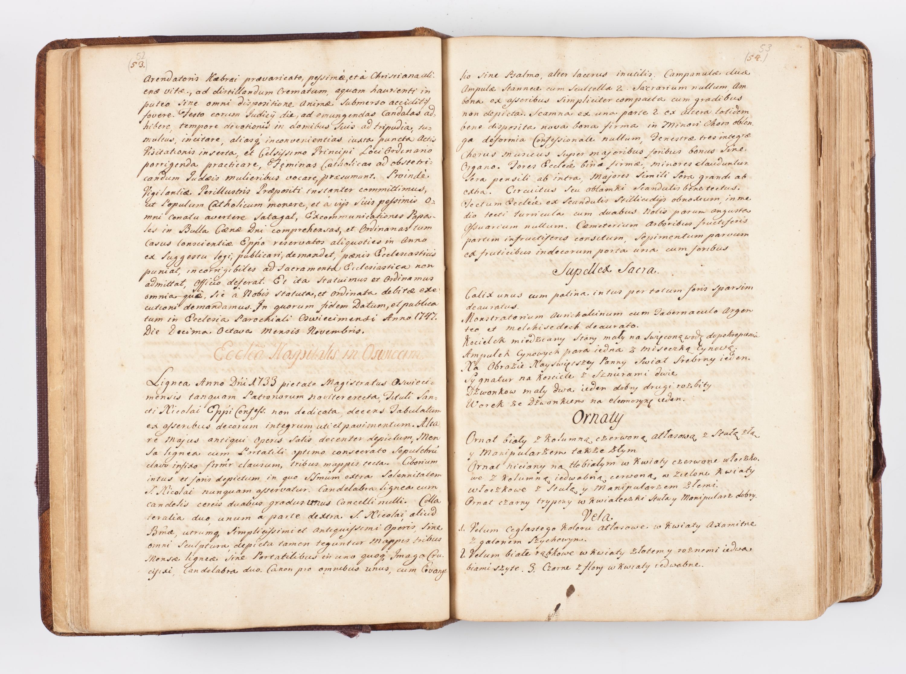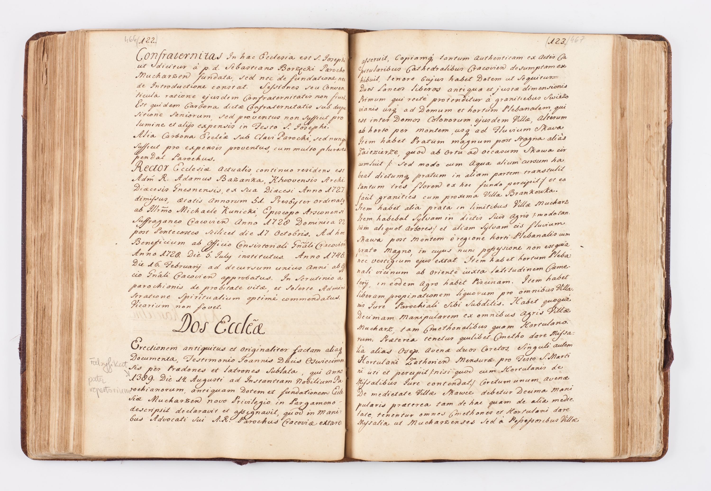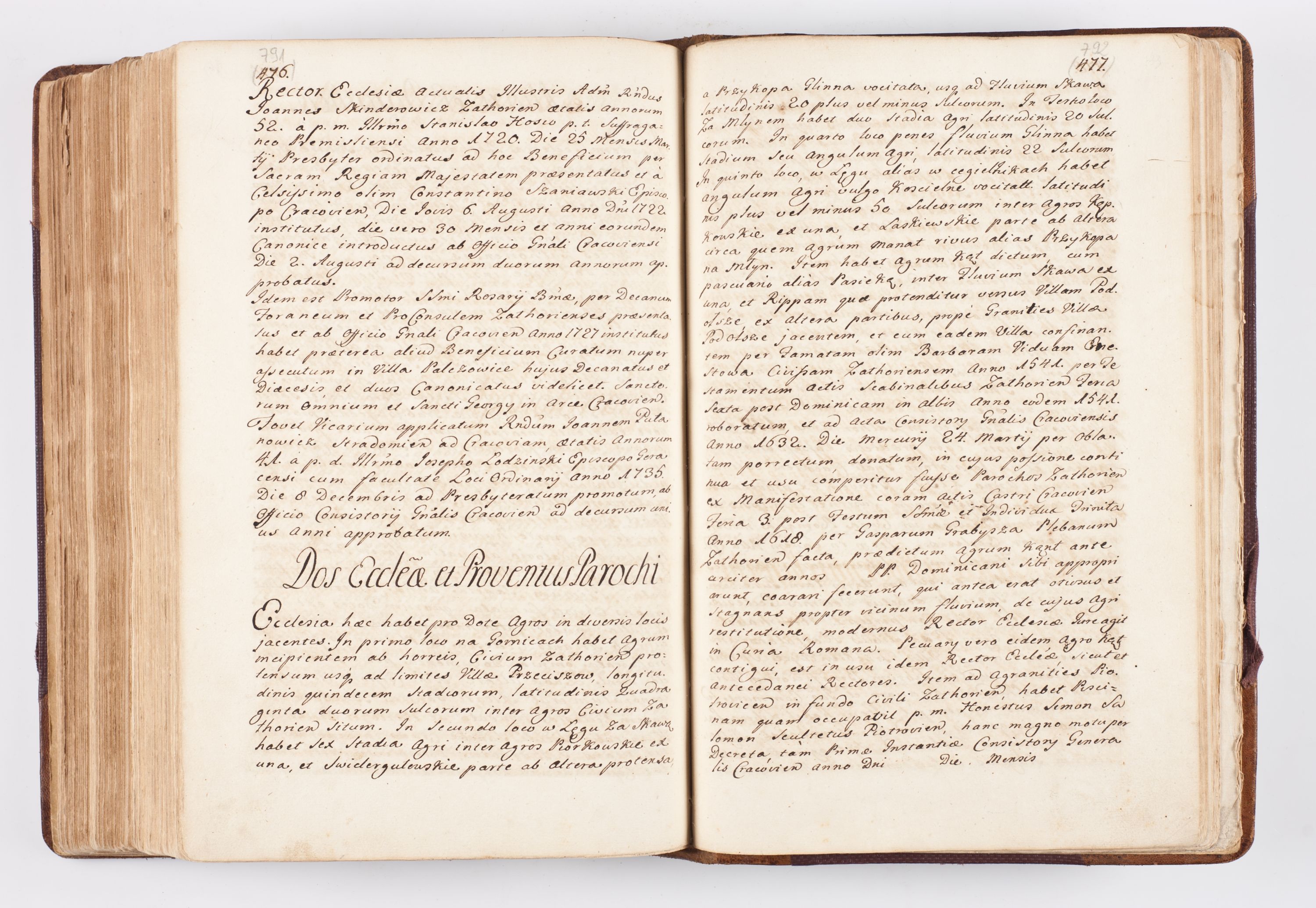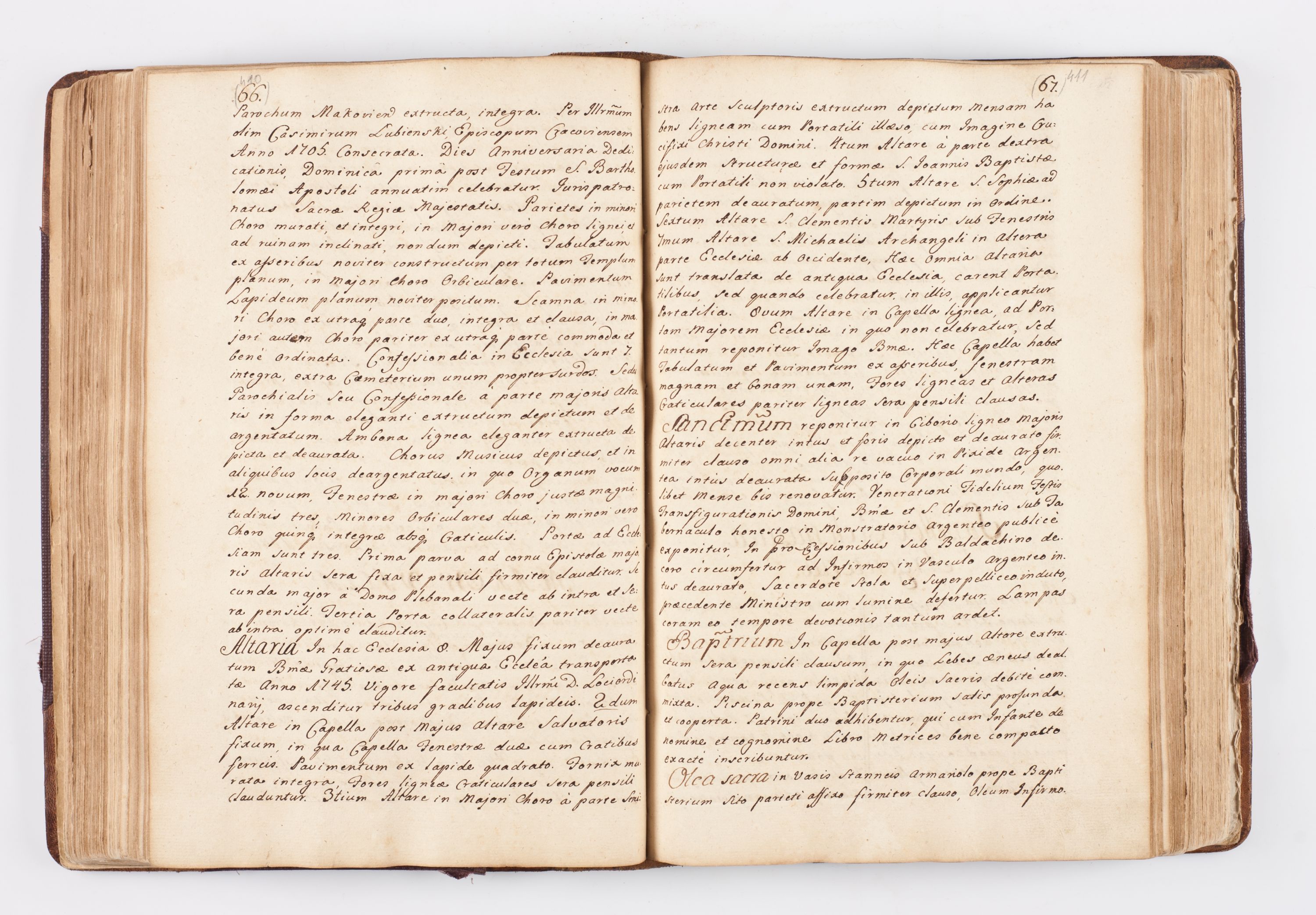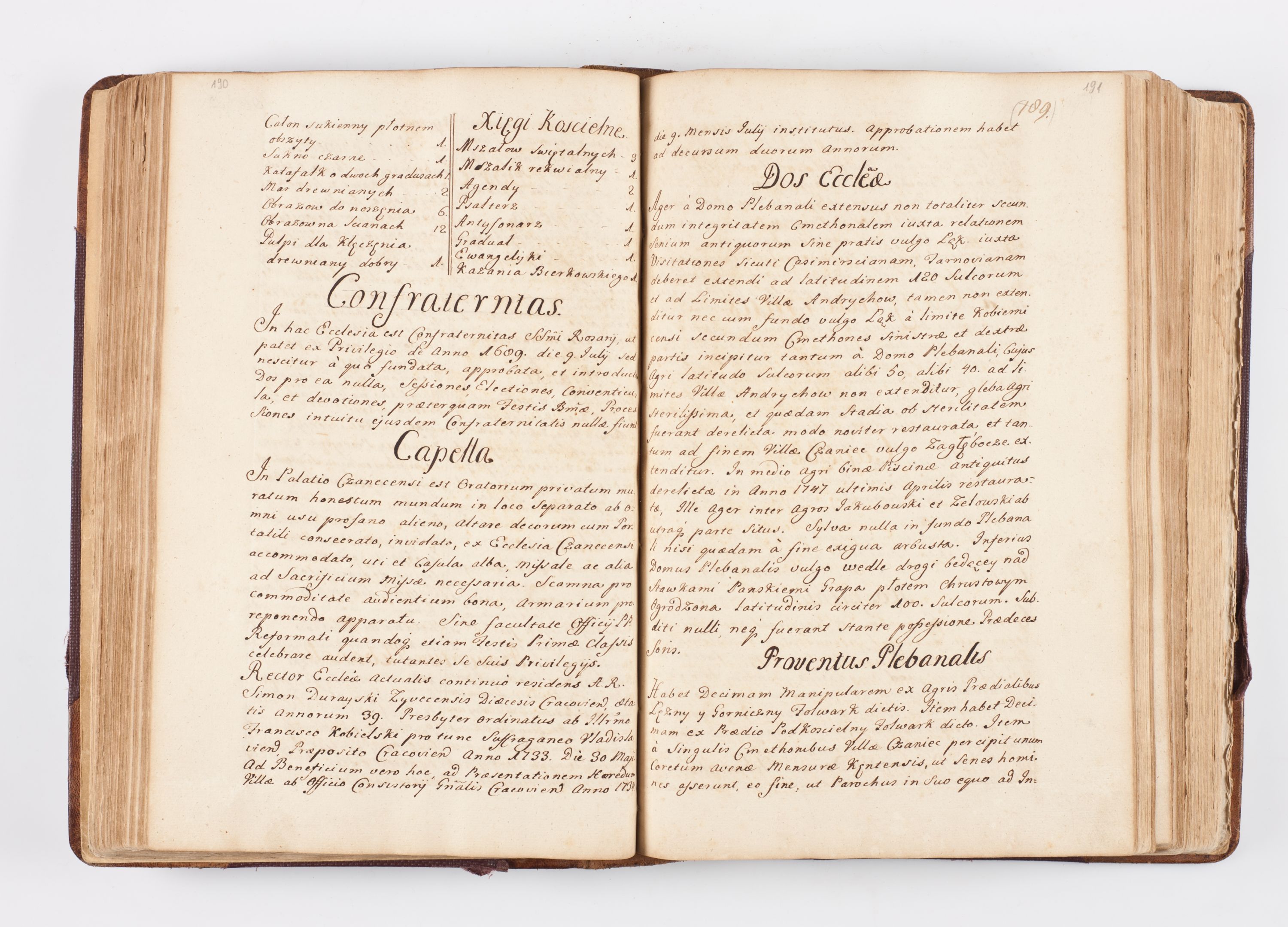 Visitatio ecclesiarum parochialium, praebendarum, capellarum, hospitalium atque confraternitatum, nec non beneficiorum in decanatibus Oswiecimensis et Zathoriensis, archidiaconatus et officialatus Cracoviensis existentium per R.D. Franciscum Lanckoroński, canonicum cathedralem Cracoviensem, visitatorem delegatum a.D. 1747 et 1748 expedita
