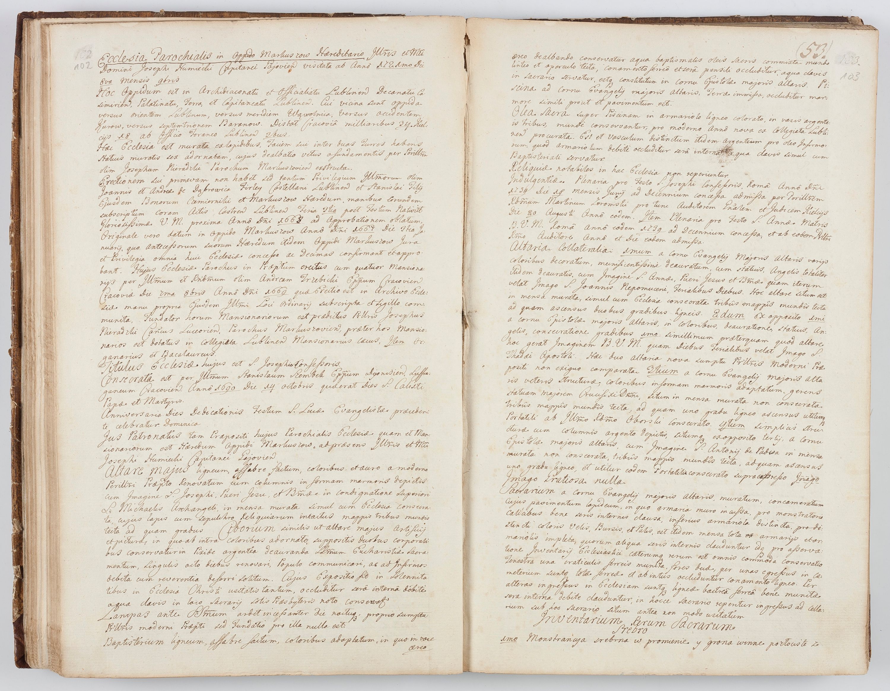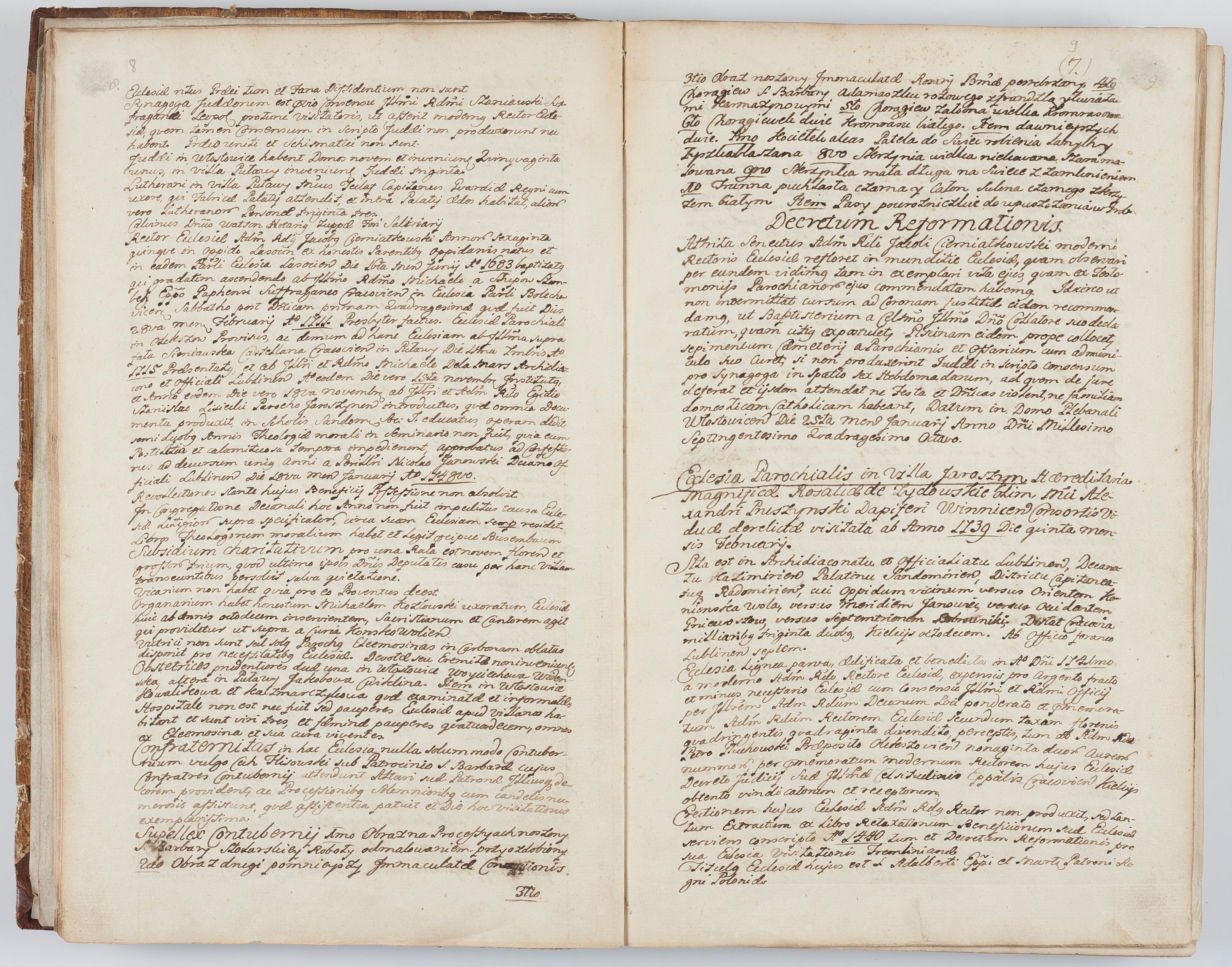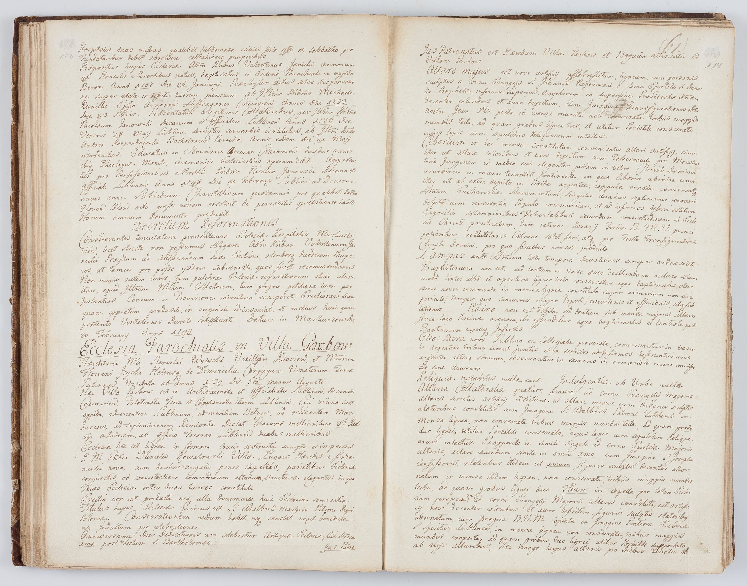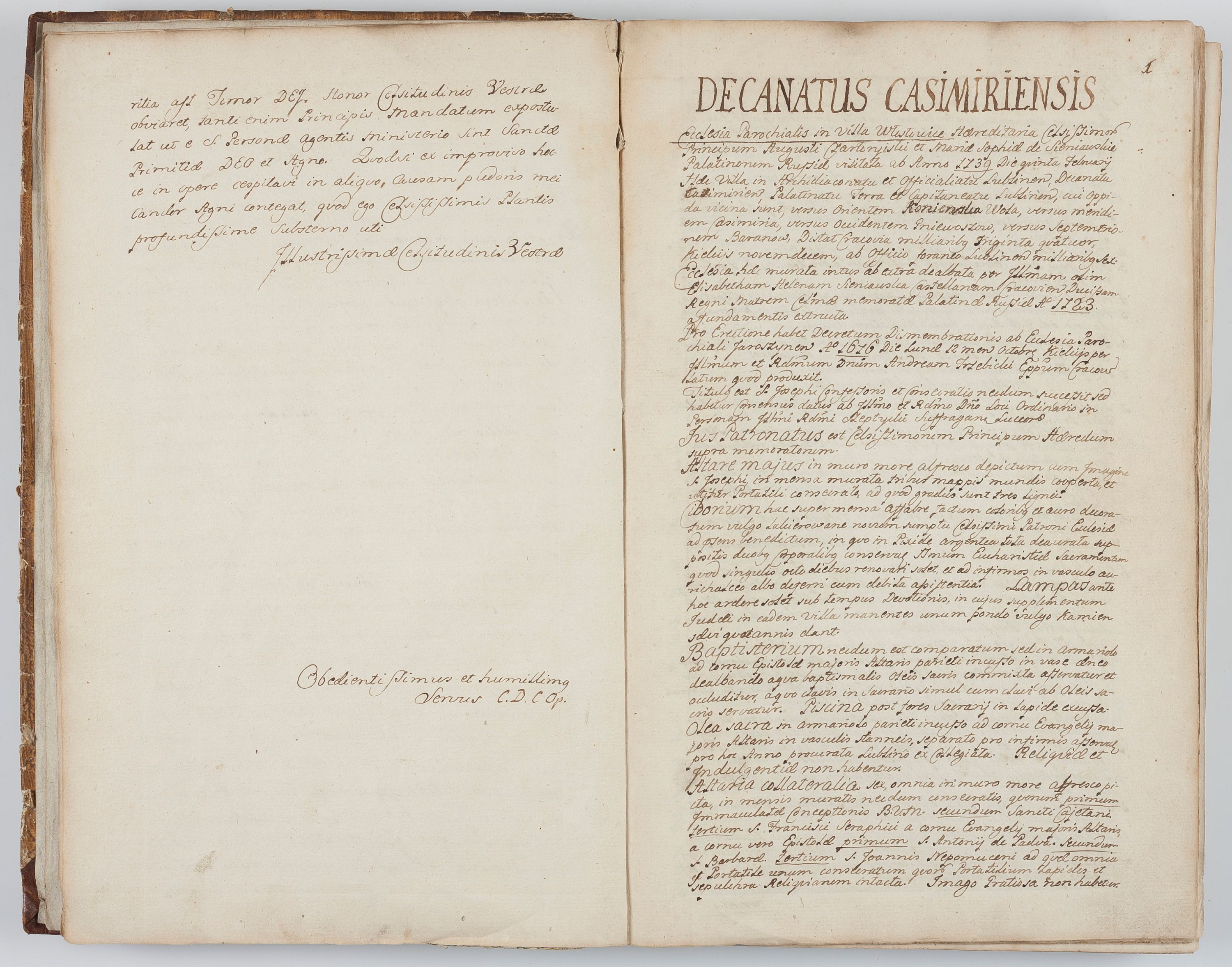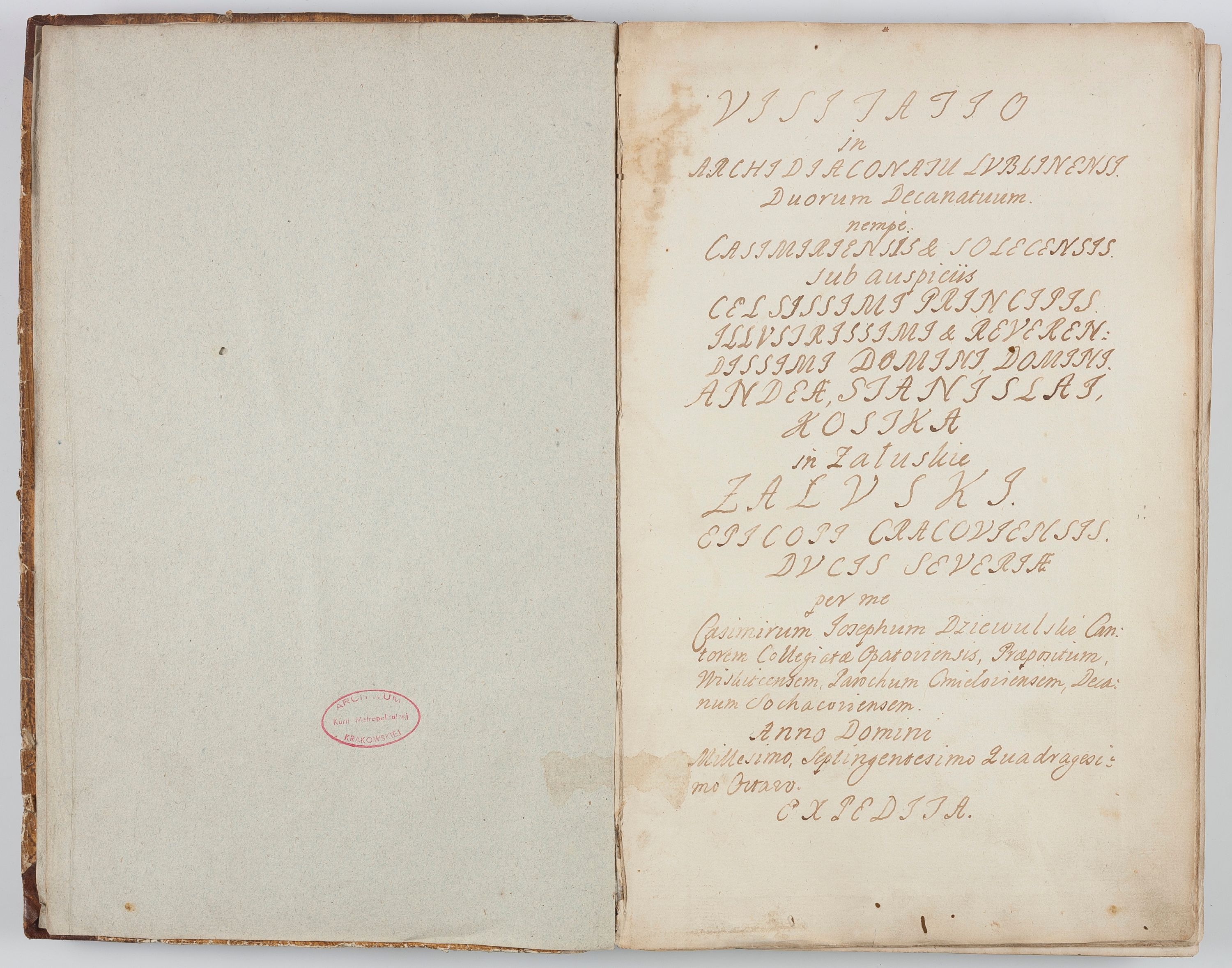 Visitatio in archidiaconatu Lublinensi duorum decanatuum, nempe: Casimiriensis et Solecensis sub auspiciis Cel. Principis R.D. Andreae Stanislai Kostka in Załuskie Załuski, episcopi Cracoviensis, ducis Severiae, per me Casimirium Josephum Dziewulski, cantorem Collegiatae Opatoviensis, praepositum Wislicensem, parochum Chmieloviensem, decanum Sochaczoviensem a.D. 1748 expedita