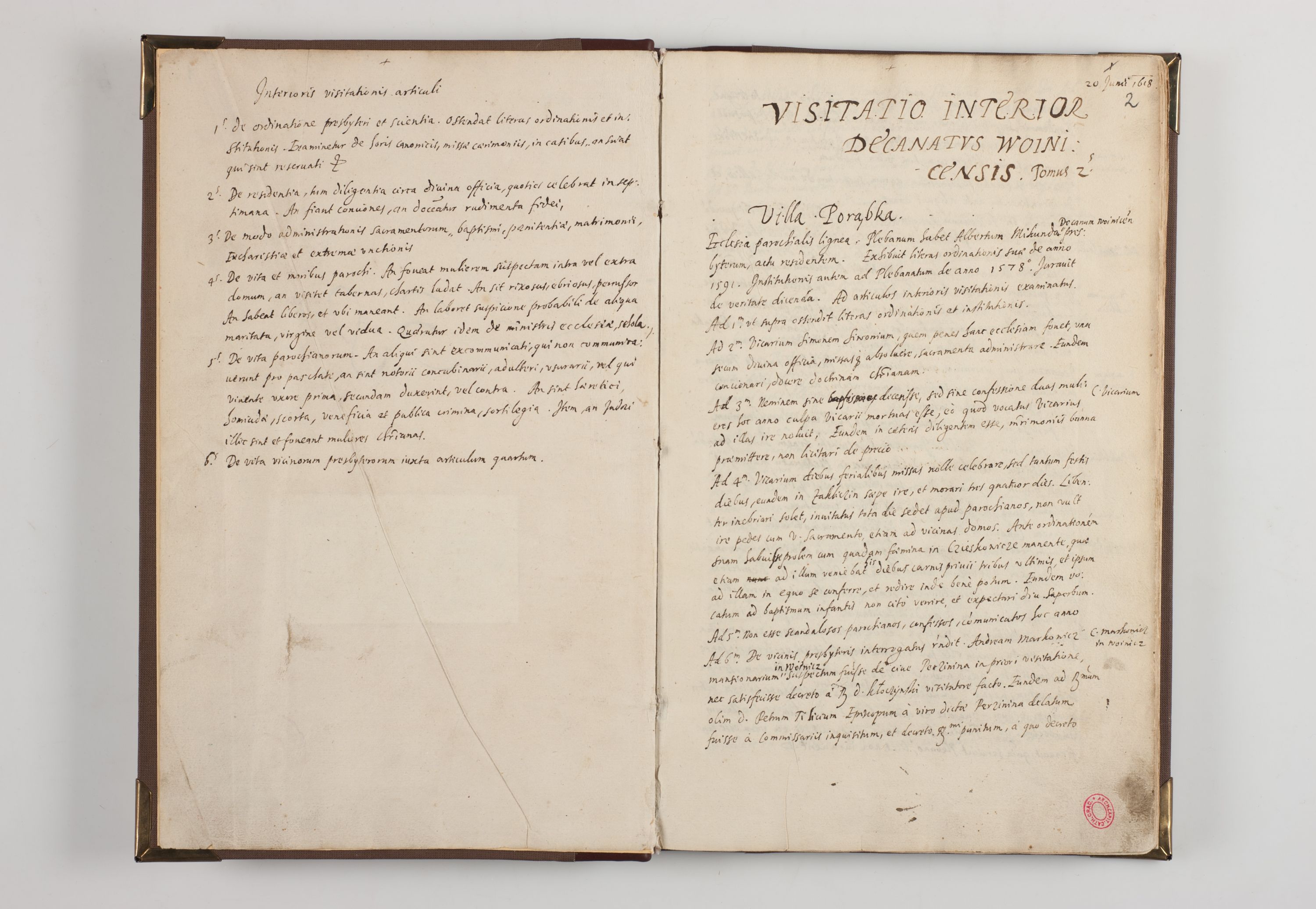 Visitatio interior decanatuum: Voynicensis, Scalensis - Opatovecensis - Pacanoviensis - Kijensis - Andreoviensis - Sokolinensis, ad archidiaconatum Cracoviensem pertinentium, per R. D. Joannem Foxium, archidiaconatum Cracoviensem, prothonotarium apostolicum a. D. 1618 incepta et eodem finita et absoluta
