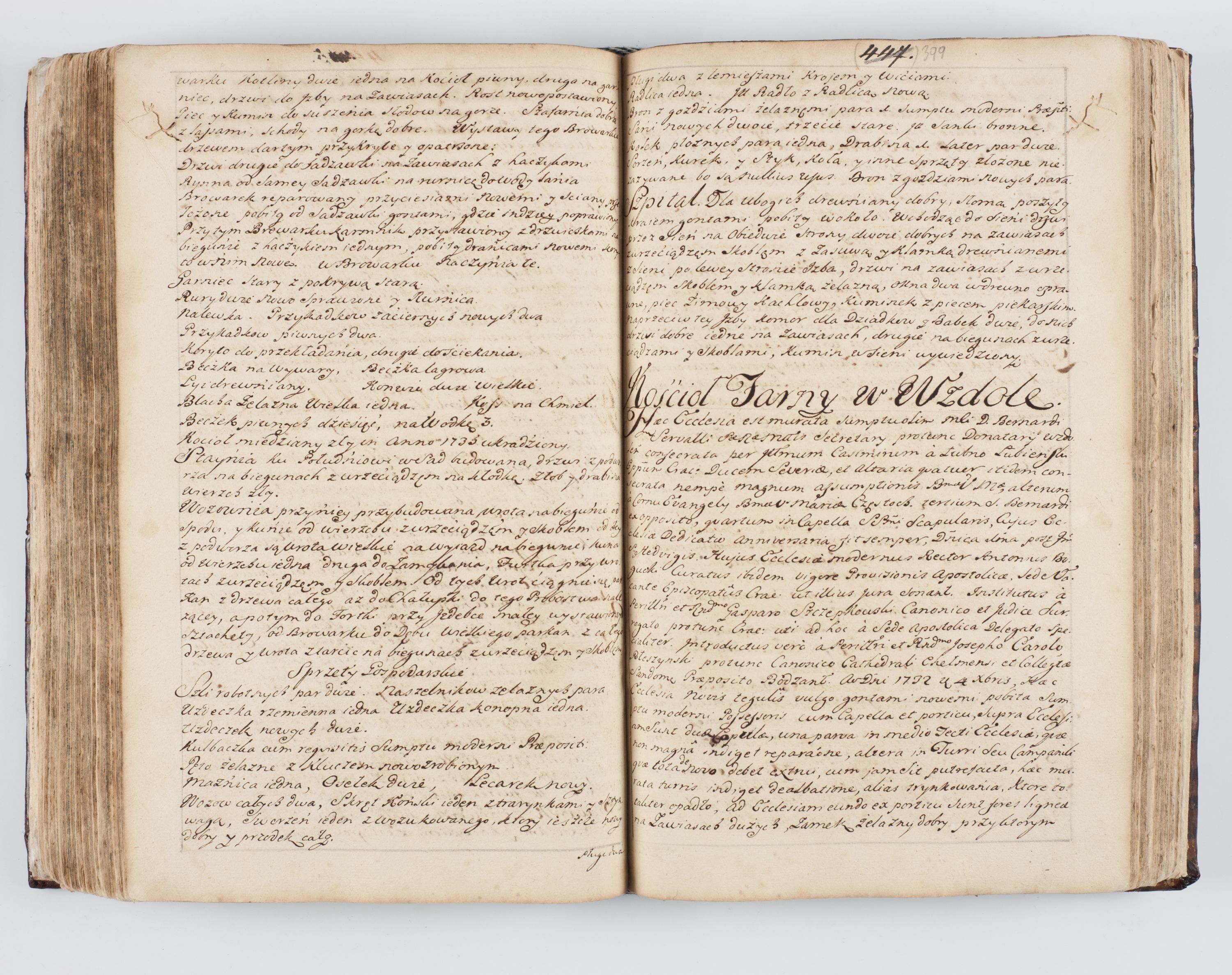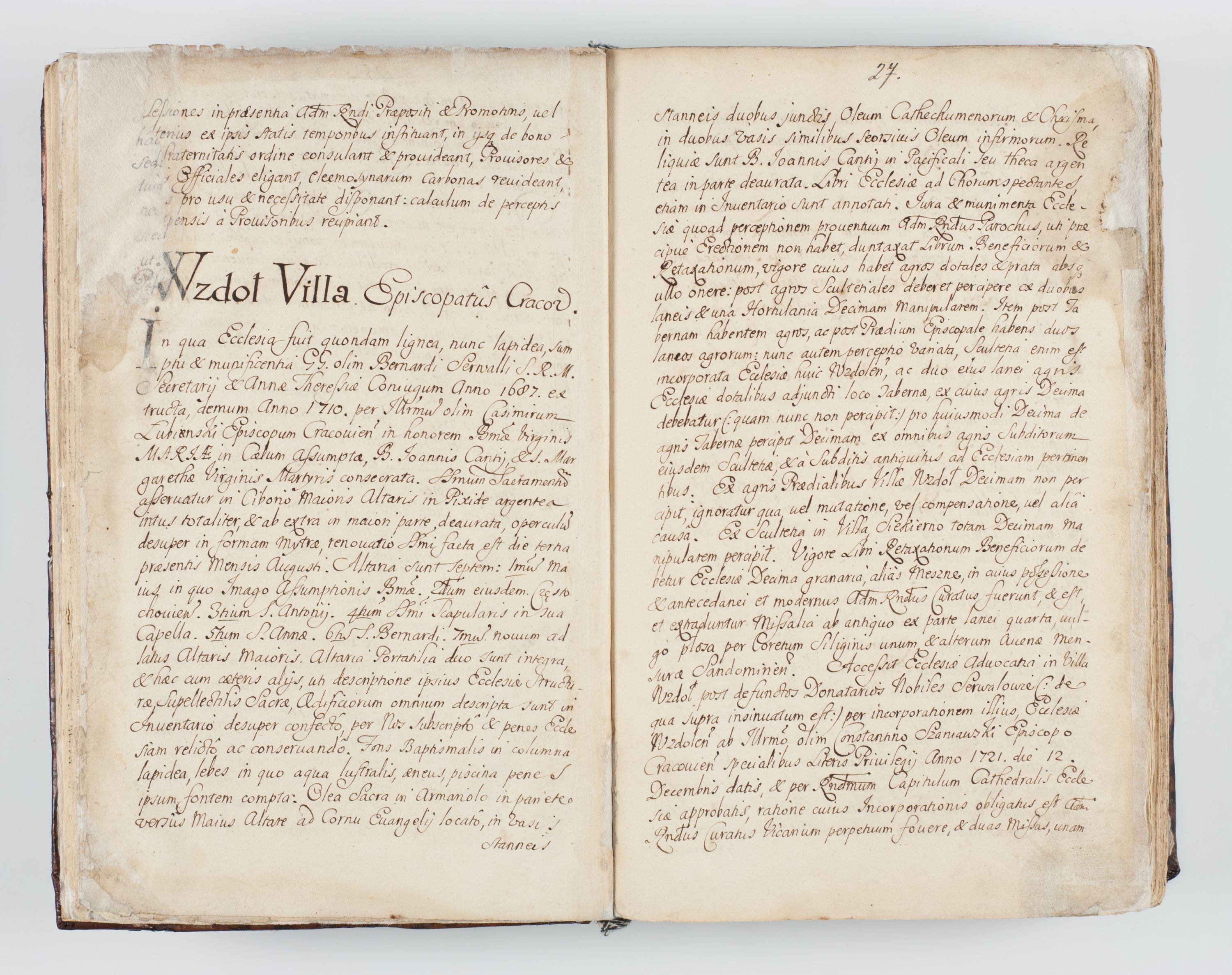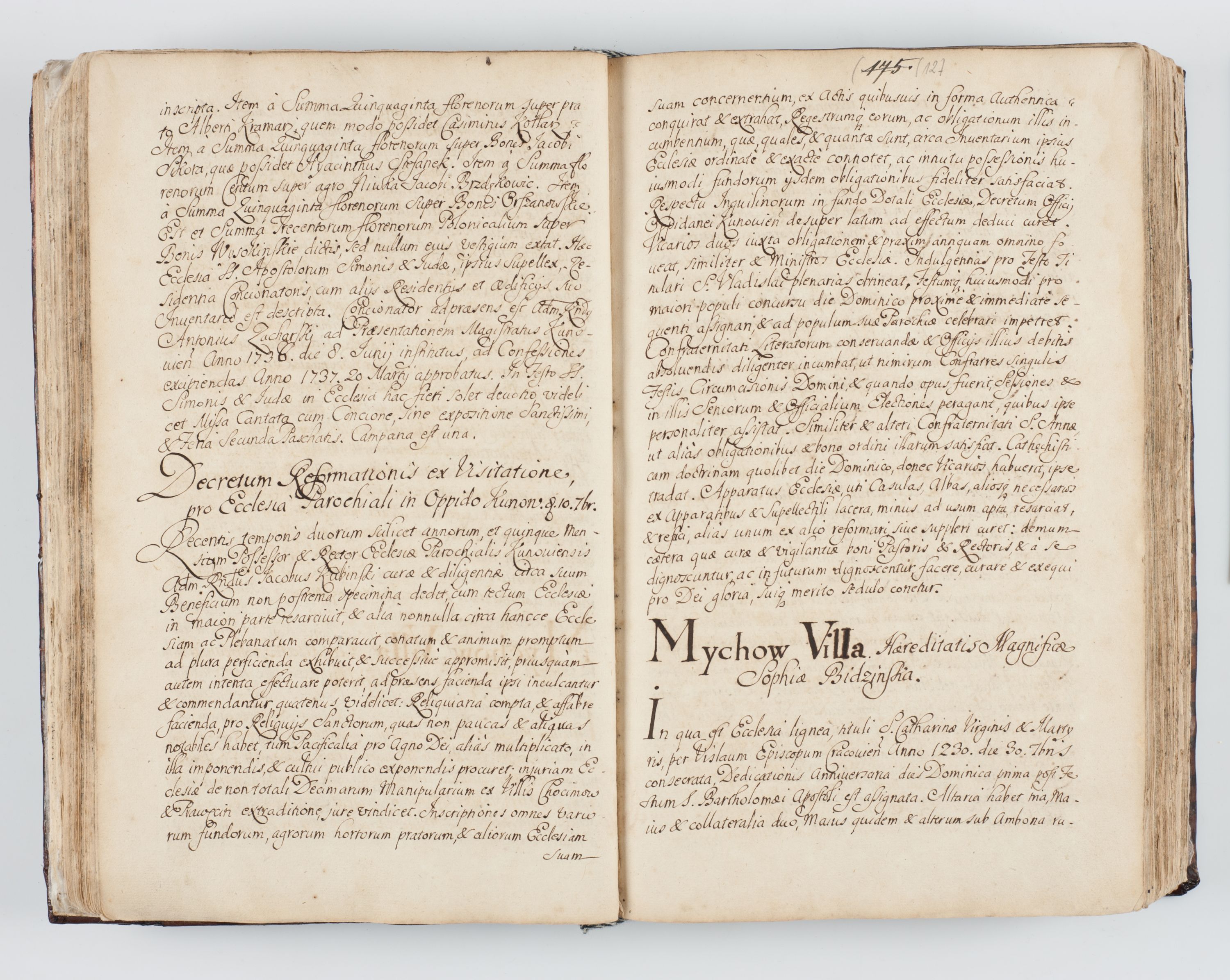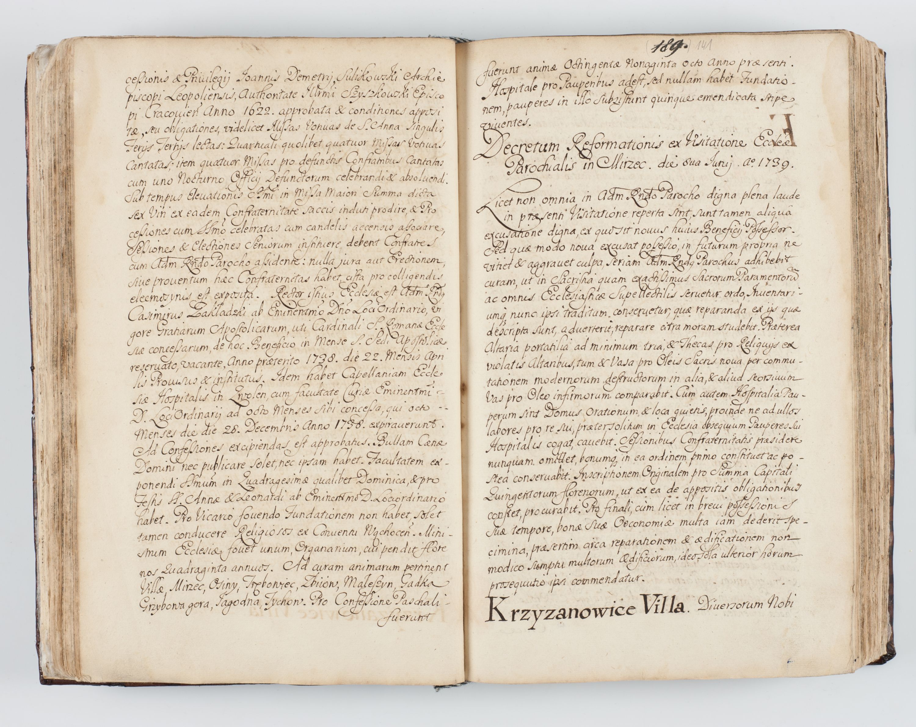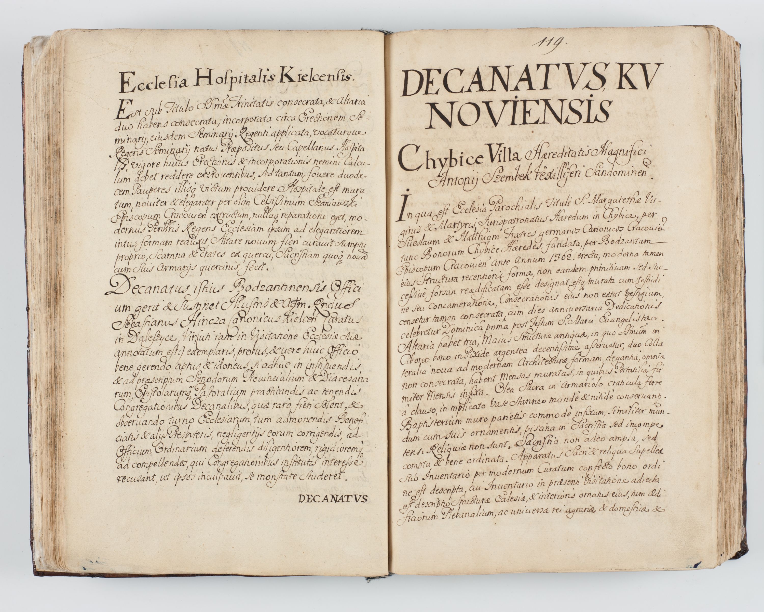Visitatio interna et externa ecclesiarum praeposituralium, parachialium, hospitalium et aliorum beneficiorum in decanatibus Bodzantinensi ac Kunoviensi consistentium per me Venceslaum Hieronymum de Bogusławice Sierakowski, pro tunc episcopum Cestrensem, coadiutorem Livoniae et Piltinensis, custodem Coronarum Regni , canonicum Cracoviensem uti tanquam praepositum Kielcensem, praeviis litteris innotescentialibus via cursoria per R.D. Decanos directis anno 1738 die 29 Julii inchoata et successivo anno 1739 die 14 memsis Junii terminata et peracta