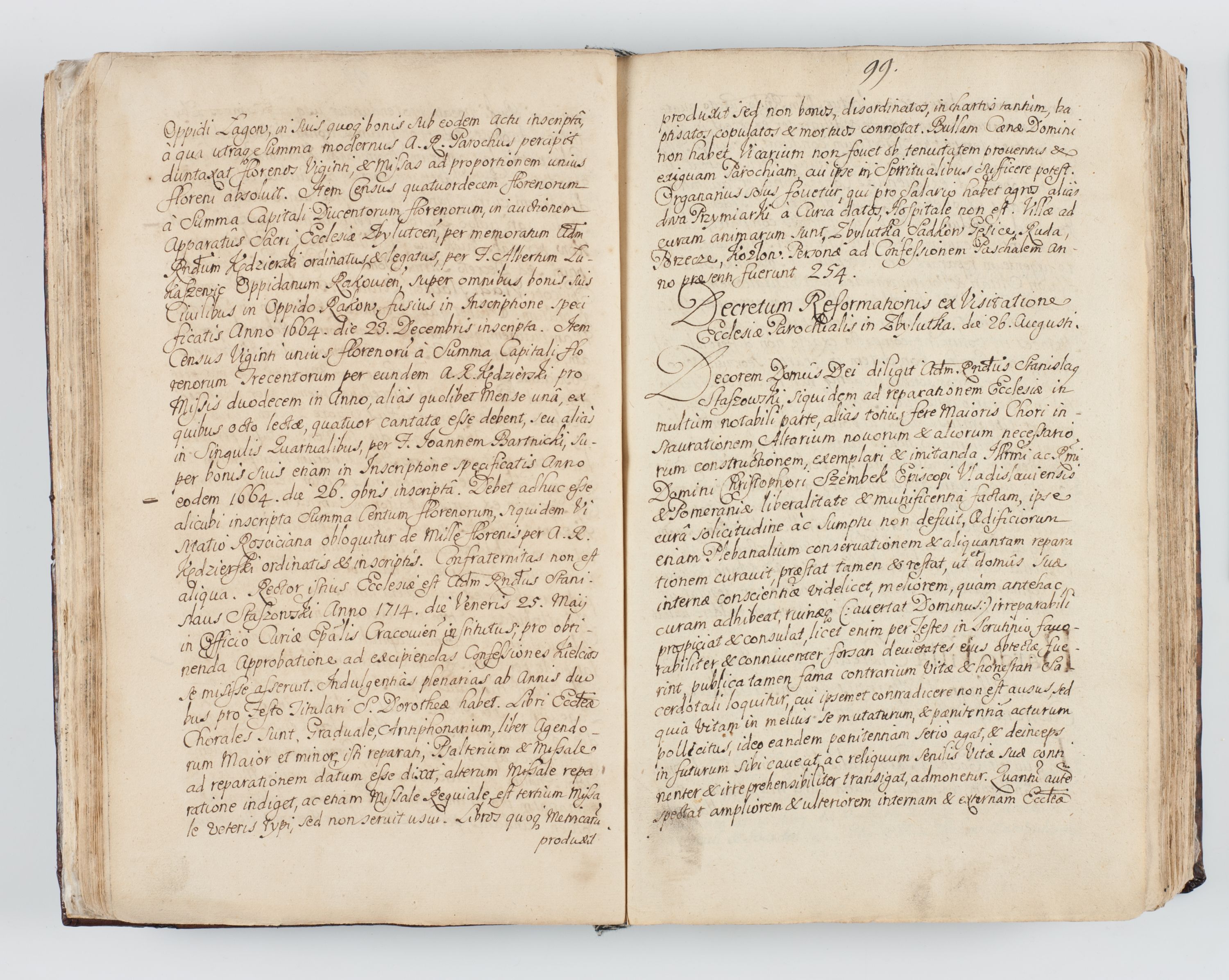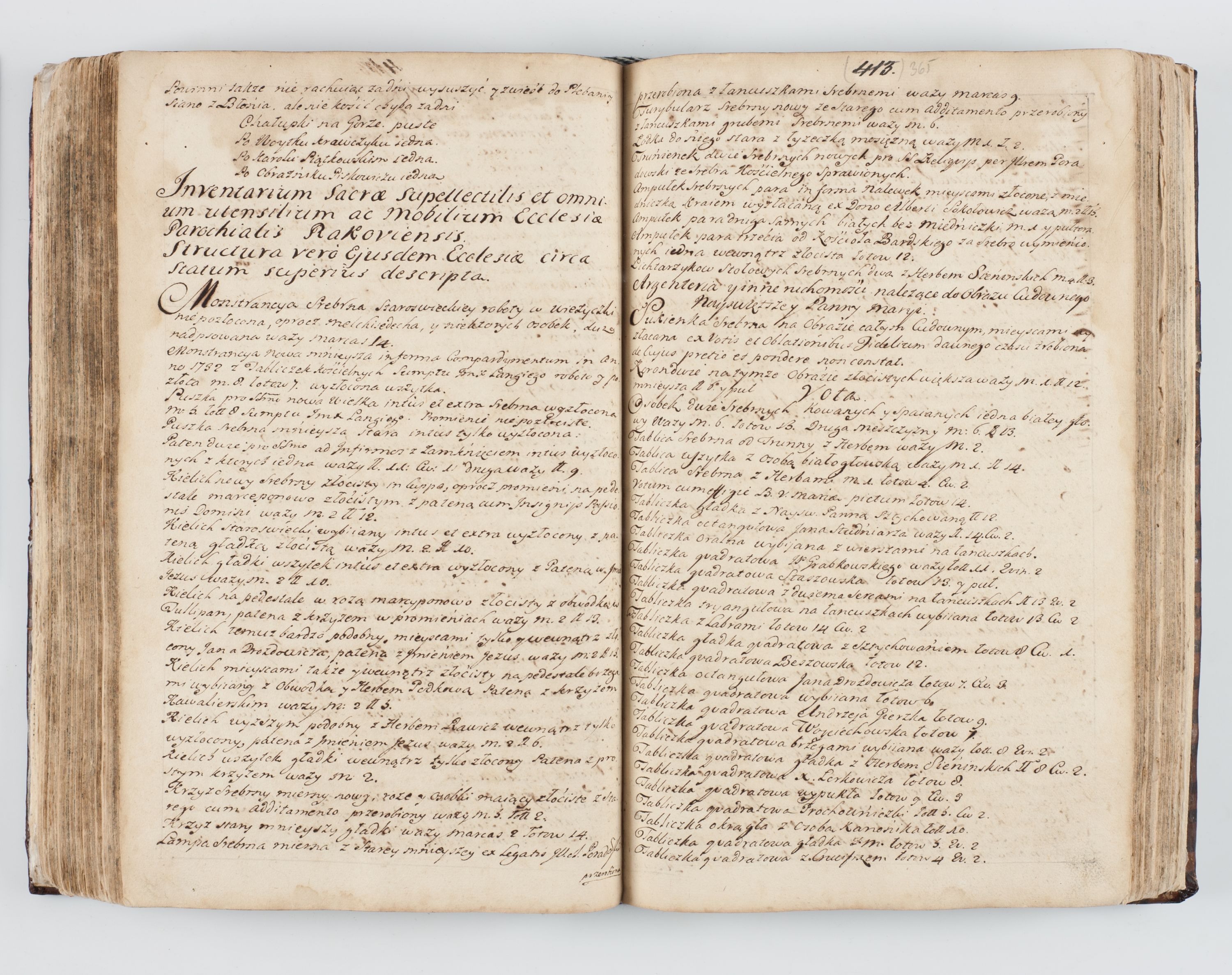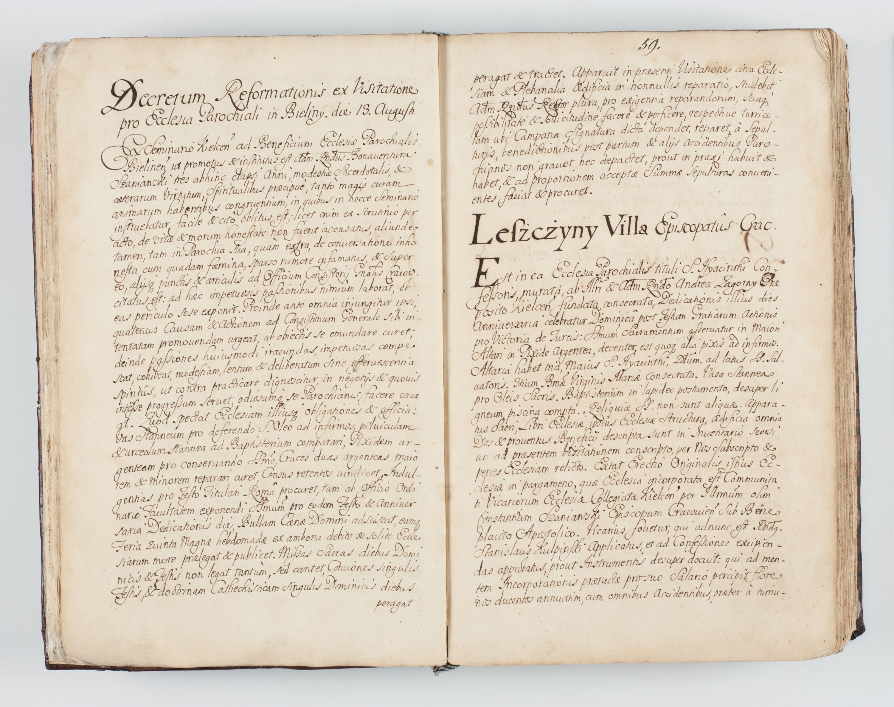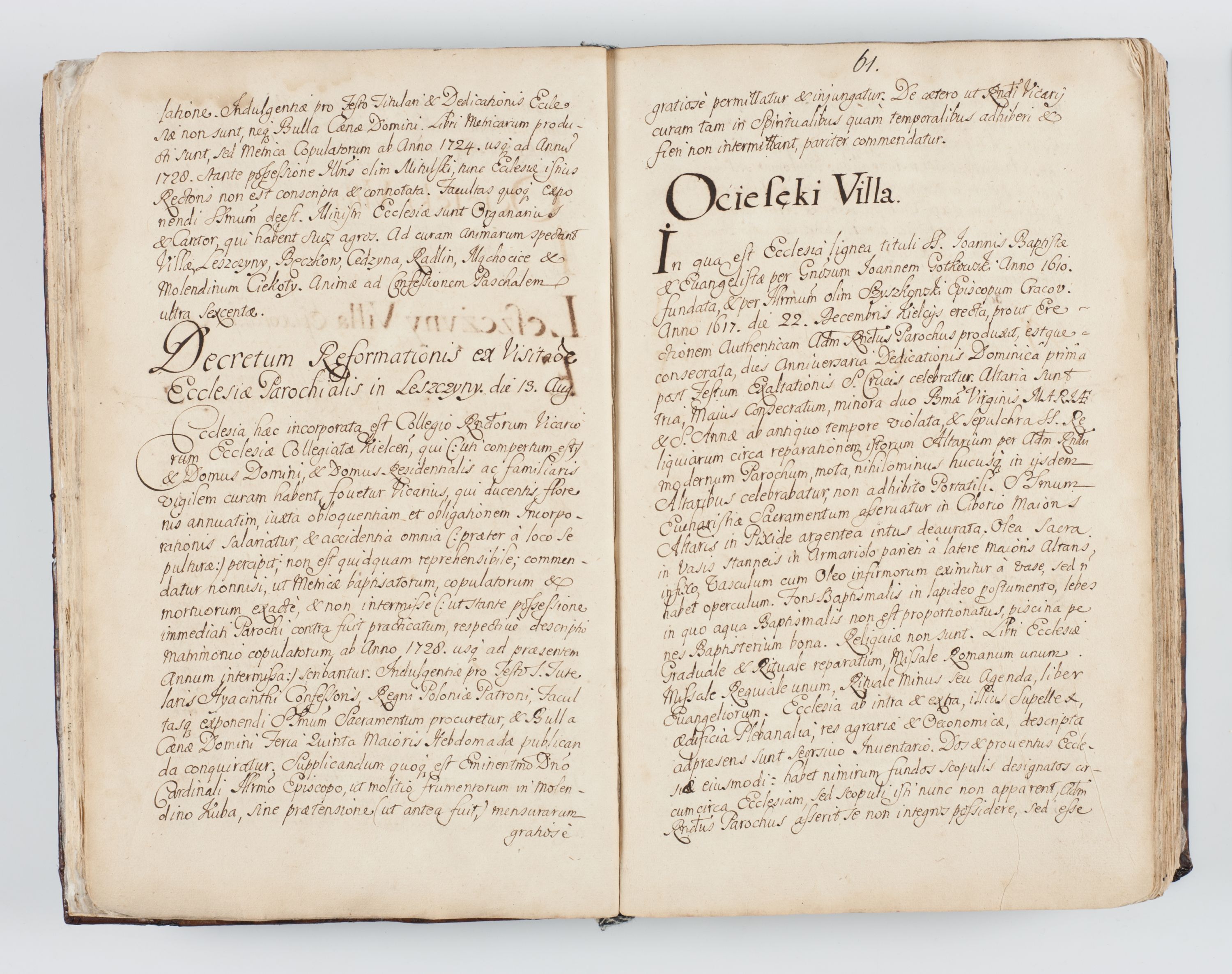 Visitatio interna et externa ecclesiarum praeposituralium, parachialium, hospitalium et aliorum beneficiorum in decanatibus Bodzantinensi ac Kunoviensi consistentium per me Venceslaum Hieronymum de Bogusławice Sierakowski, pro tunc episcopum Cestrensem, coadiutorem Livoniae et Piltinensis, custodem Coronarum Regni , canonicum Cracoviensem uti tanquam praepositum Kielcensem, praeviis litteris innotescentialibus via cursoria per R.D. Decanos directis anno 1738 die 29 Julii inchoata et successivo anno 1739 die 14 memsis Junii terminata et peracta