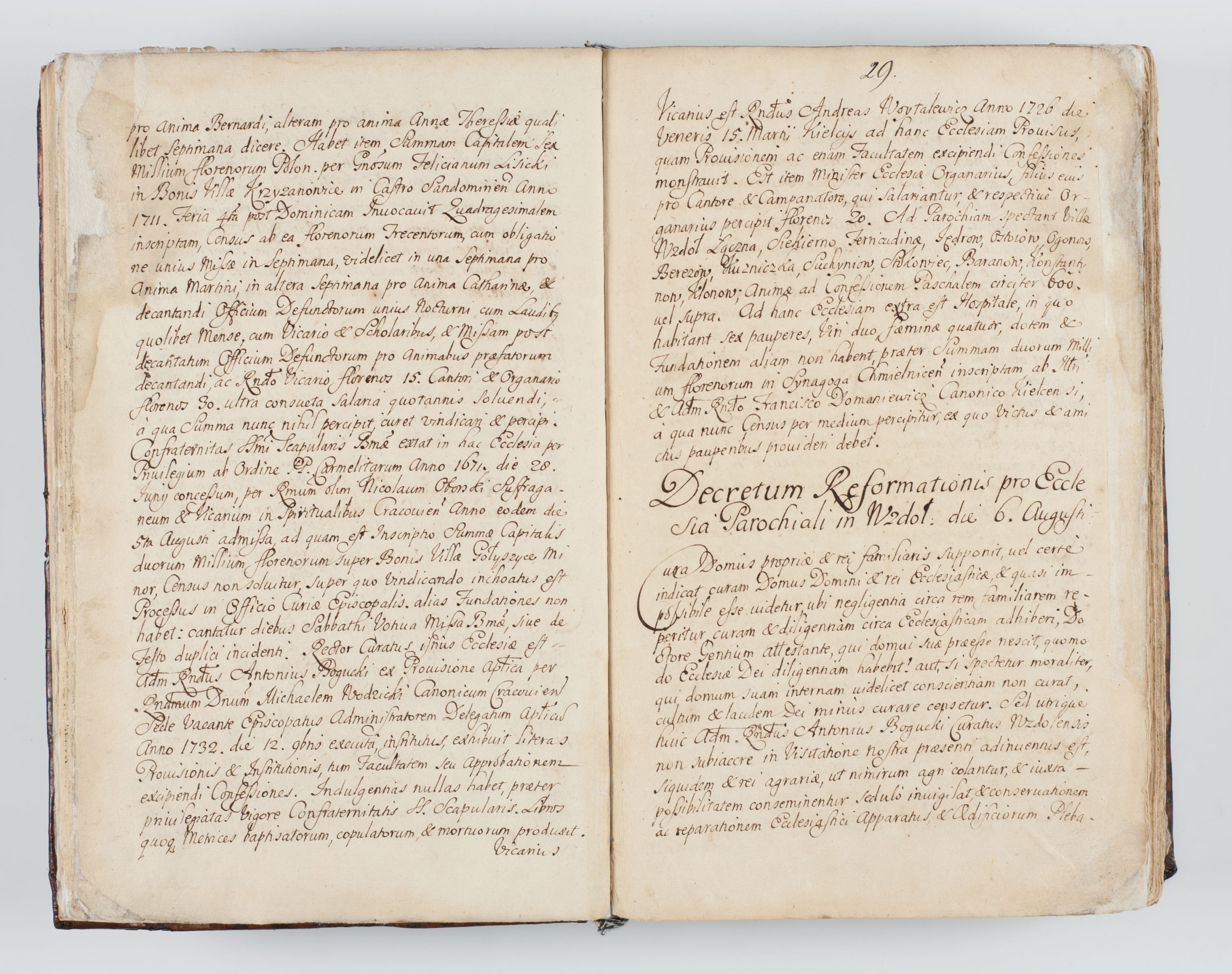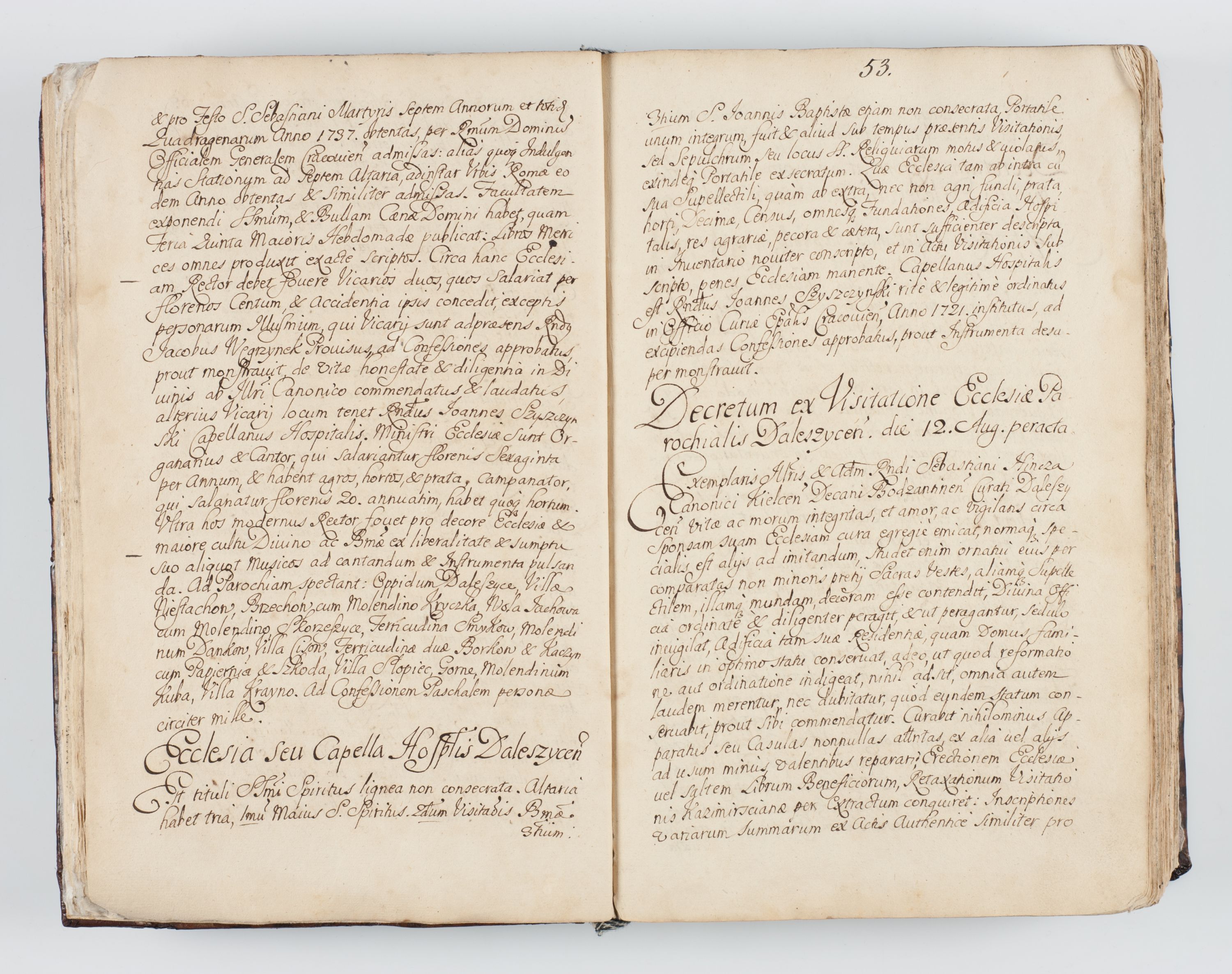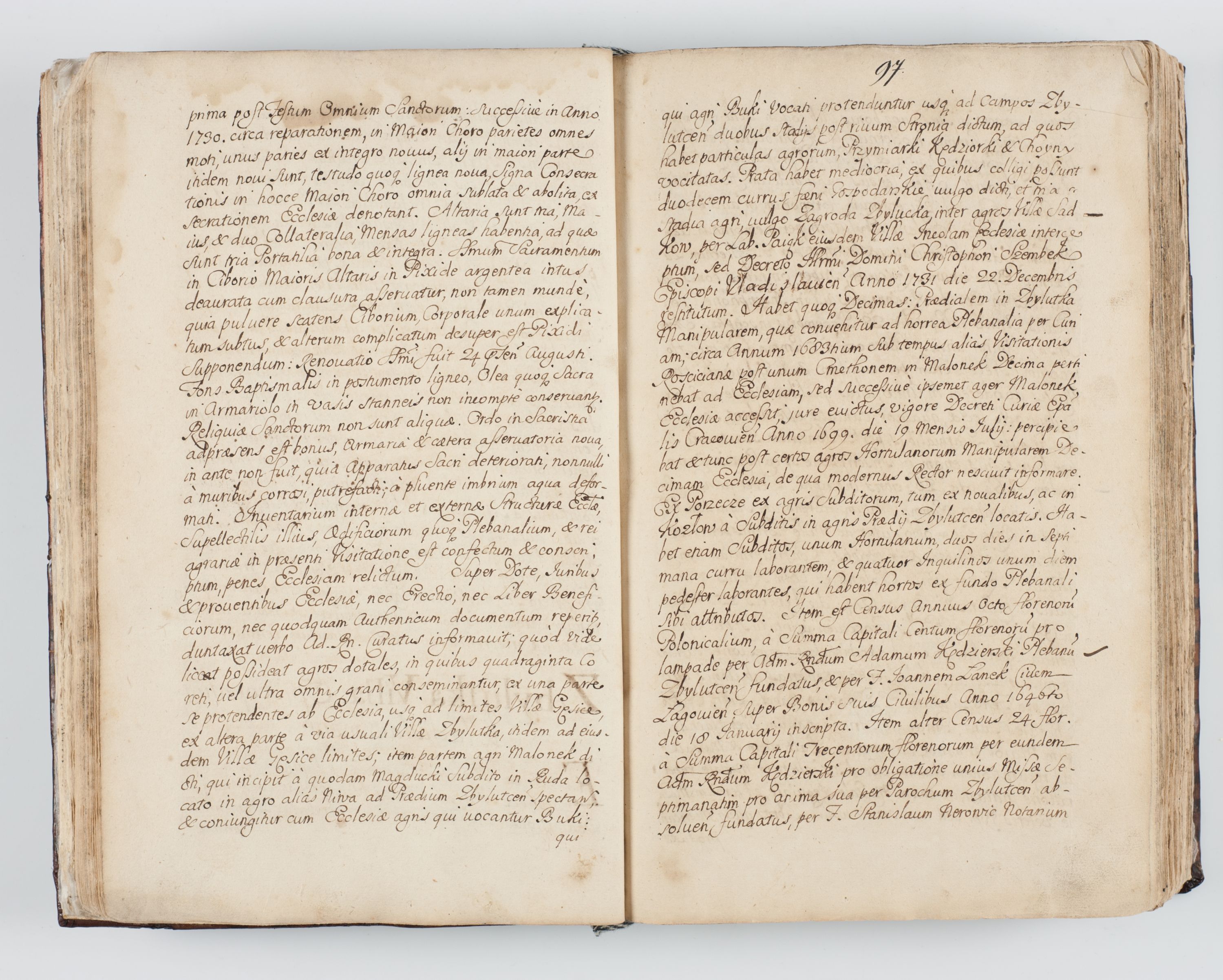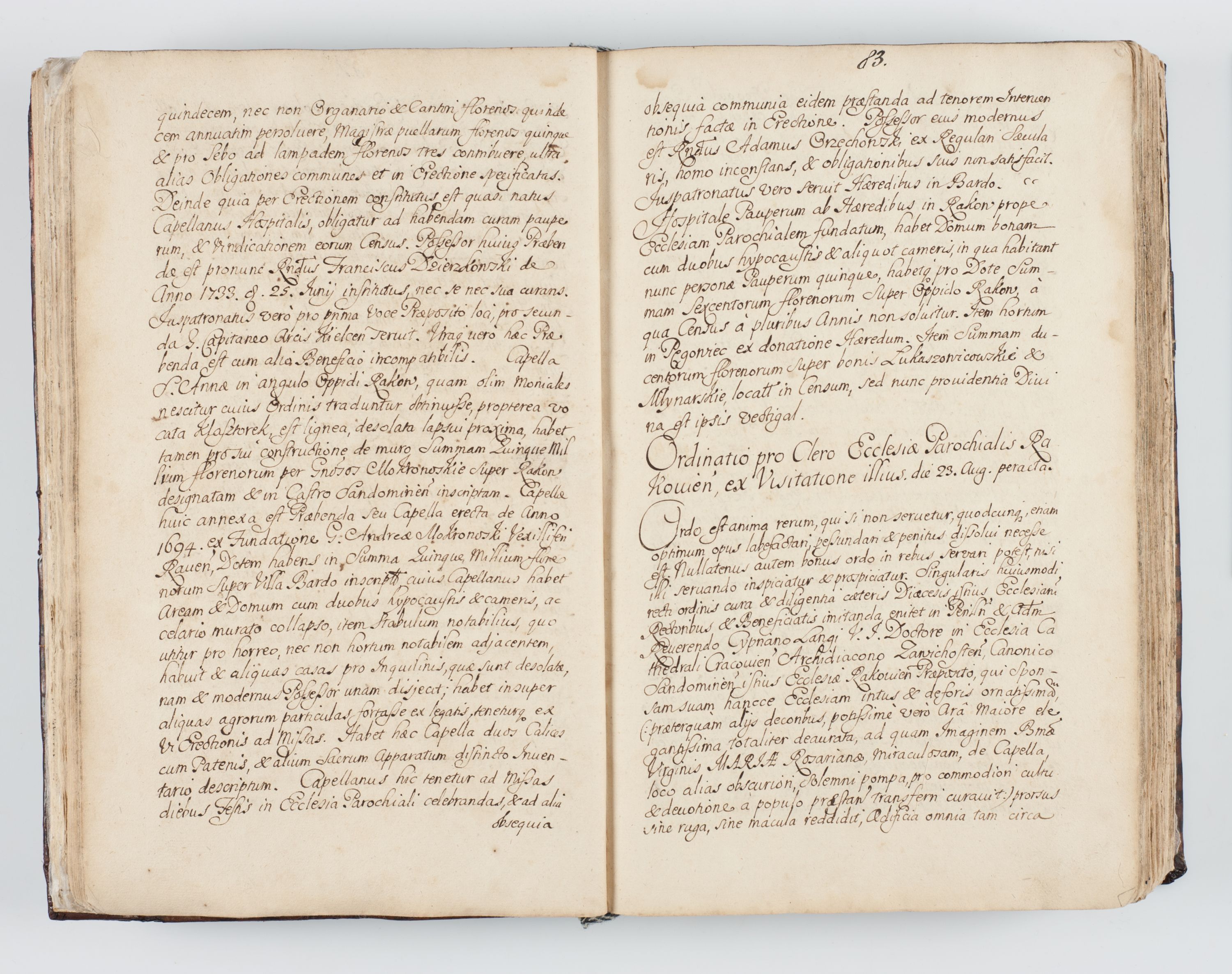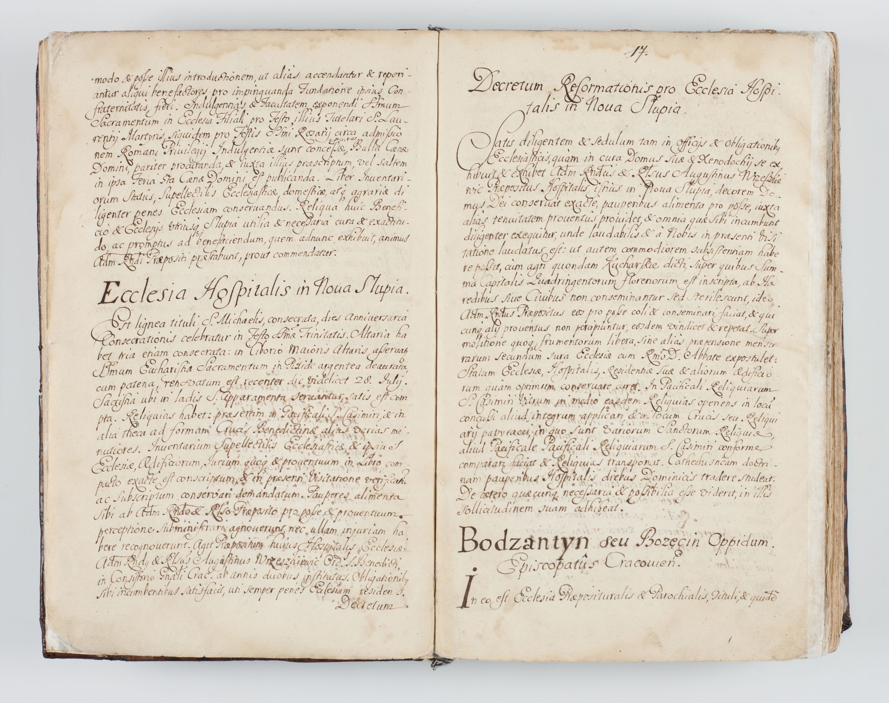 Visitatio interna et externa ecclesiarum praeposituralium, parachialium, hospitalium et aliorum beneficiorum in decanatibus Bodzantinensi ac Kunoviensi consistentium per me Venceslaum Hieronymum de Bogusławice Sierakowski, pro tunc episcopum Cestrensem, coadiutorem Livoniae et Piltinensis, custodem Coronarum Regni , canonicum Cracoviensem uti tanquam praepositum Kielcensem, praeviis litteris innotescentialibus via cursoria per R.D. Decanos directis anno 1738 die 29 Julii inchoata et successivo anno 1739 die 14 memsis Junii terminata et peracta