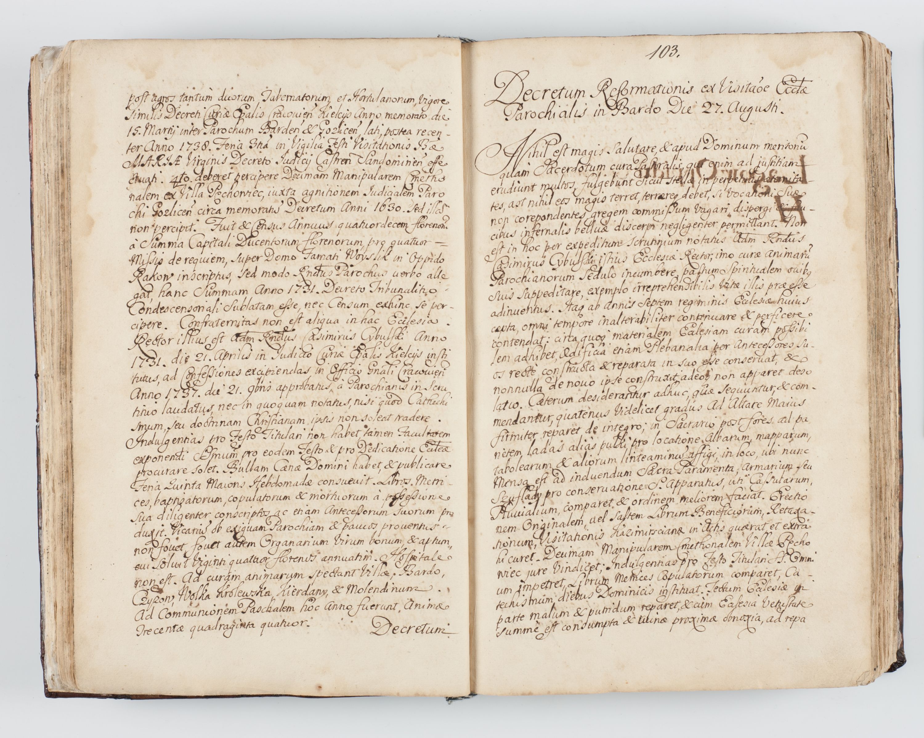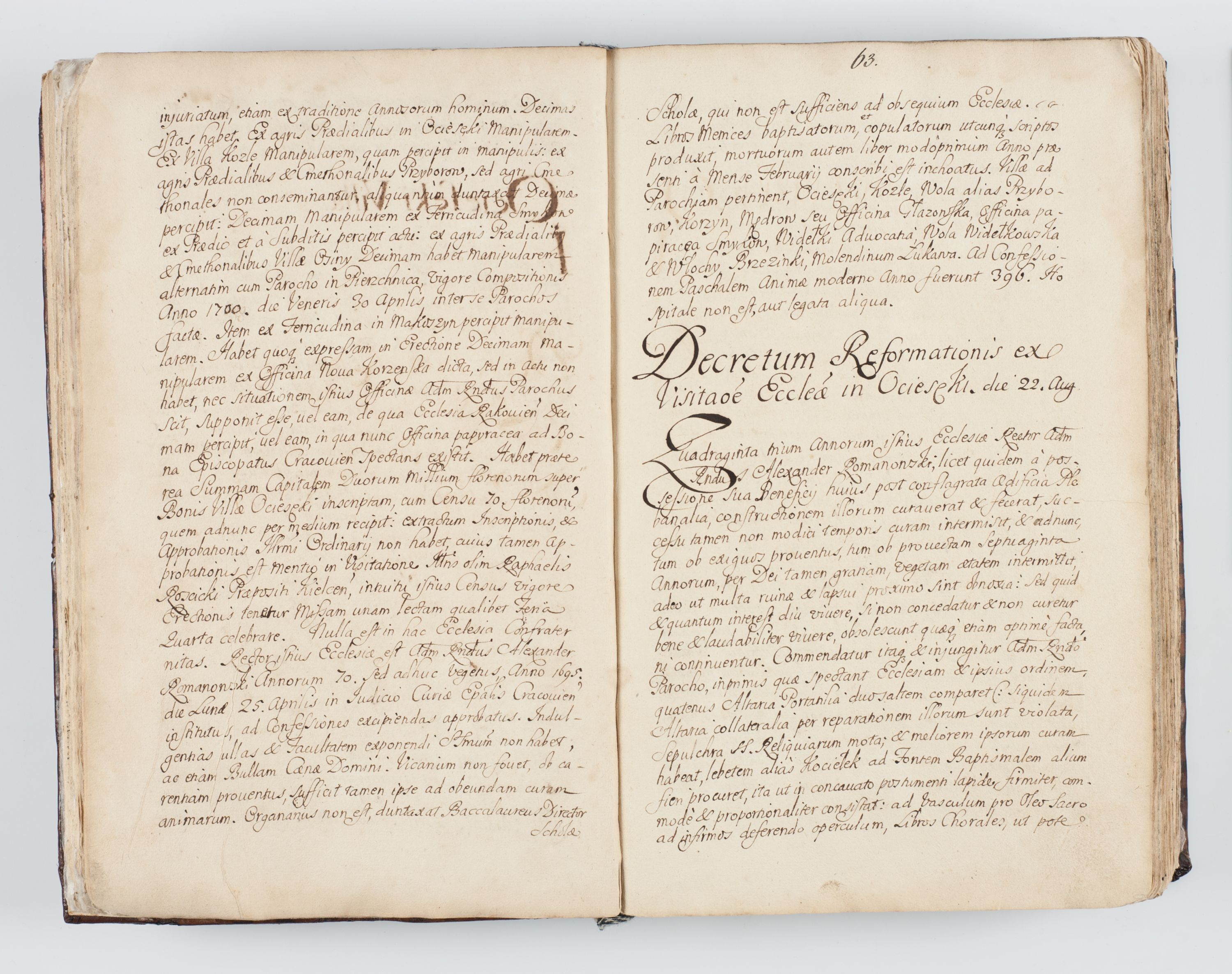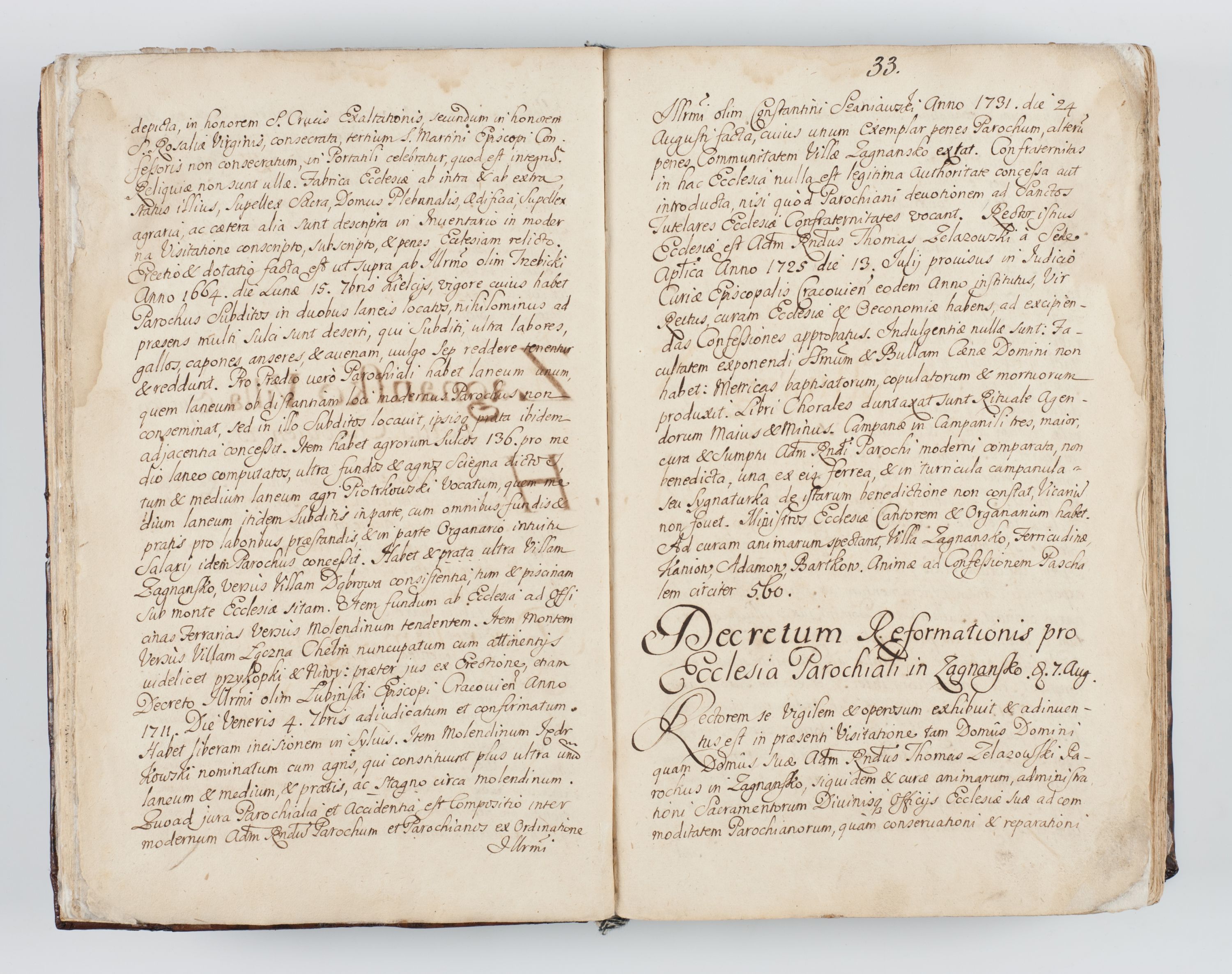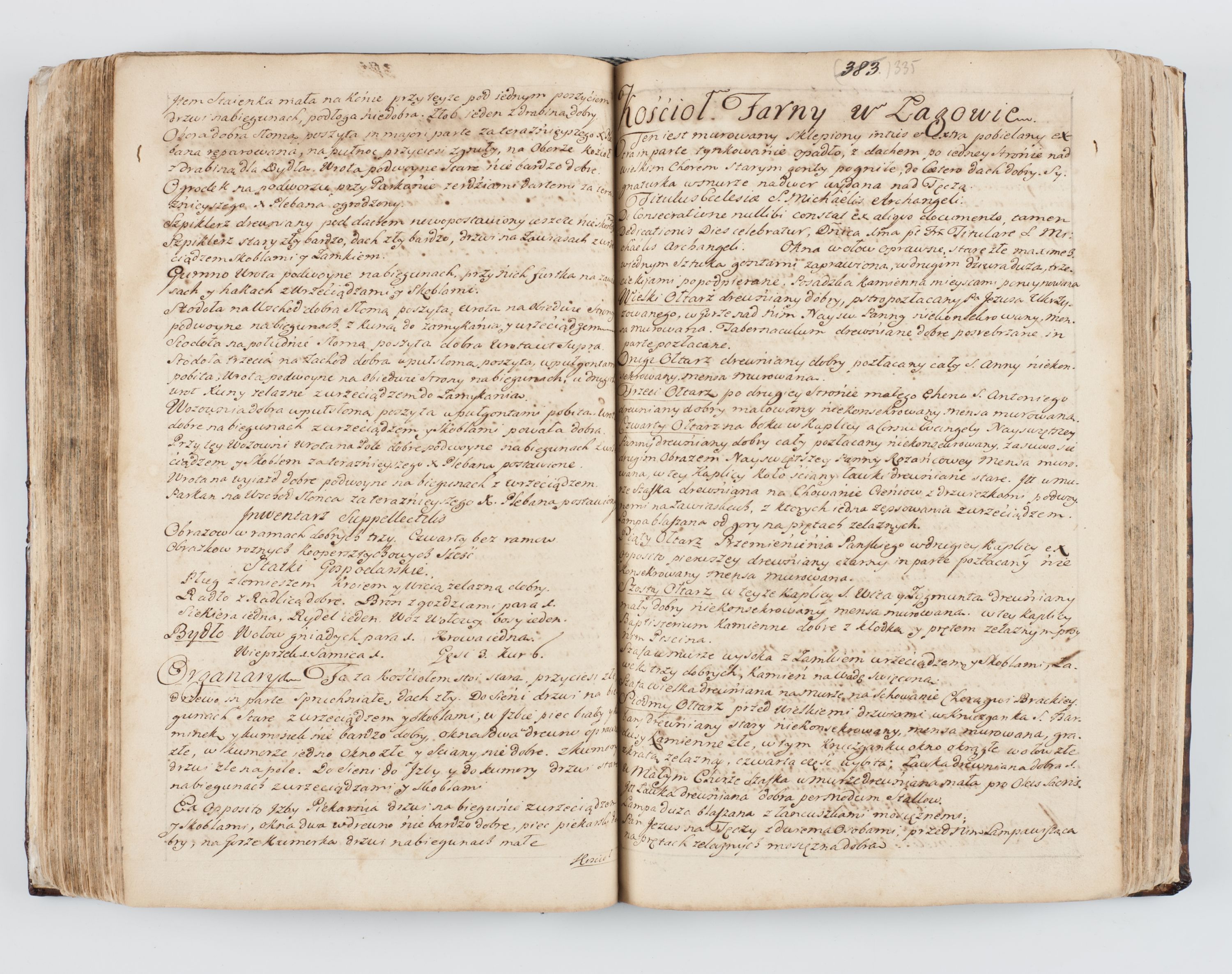 Visitatio interna et externa ecclesiarum praeposituralium, parachialium, hospitalium et aliorum beneficiorum in decanatibus Bodzantinensi ac Kunoviensi consistentium per me Venceslaum Hieronymum de Bogusławice Sierakowski, pro tunc episcopum Cestrensem, coadiutorem Livoniae et Piltinensis, custodem Coronarum Regni , canonicum Cracoviensem uti tanquam praepositum Kielcensem, praeviis litteris innotescentialibus via cursoria per R.D. Decanos directis anno 1738 die 29 Julii inchoata et successivo anno 1739 die 14 memsis Junii terminata et peracta