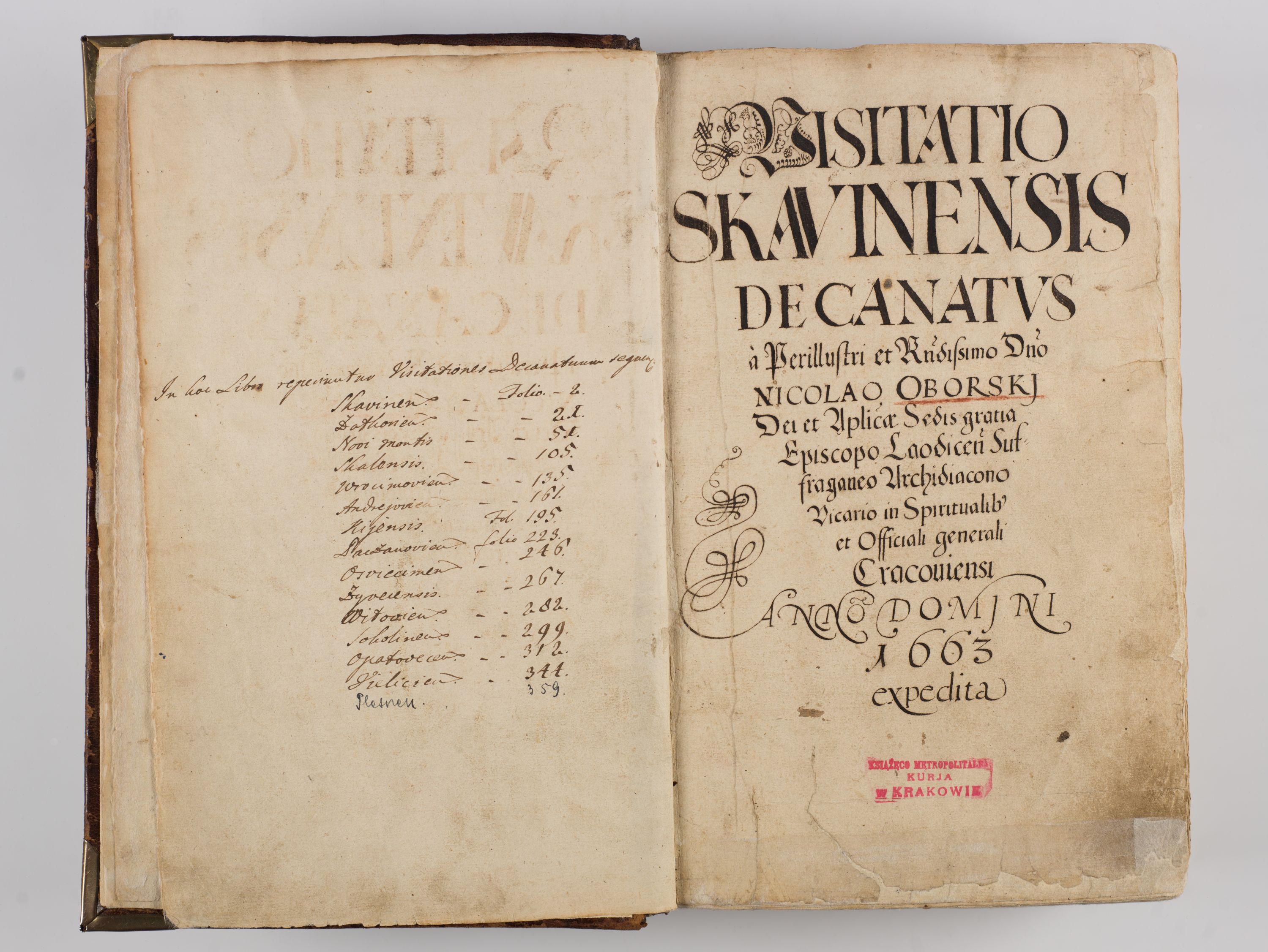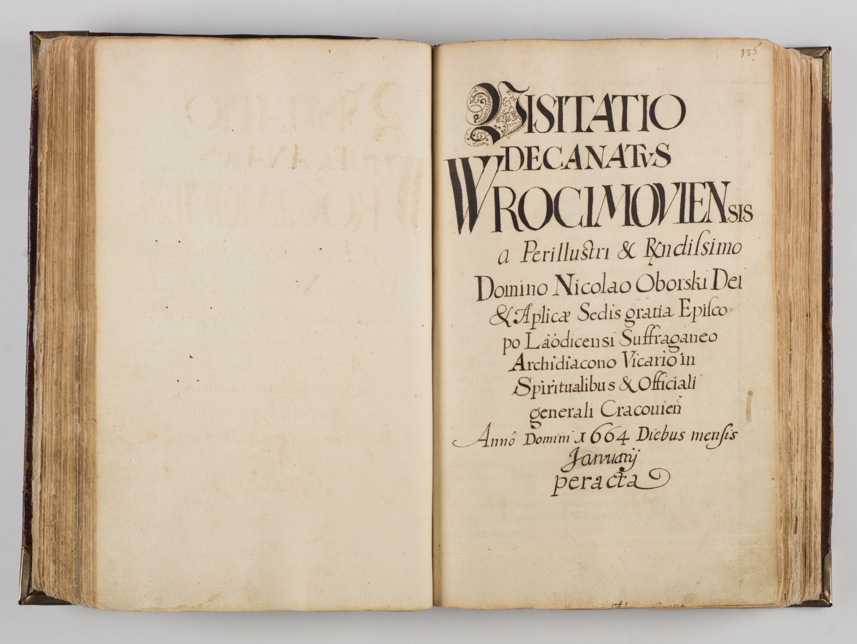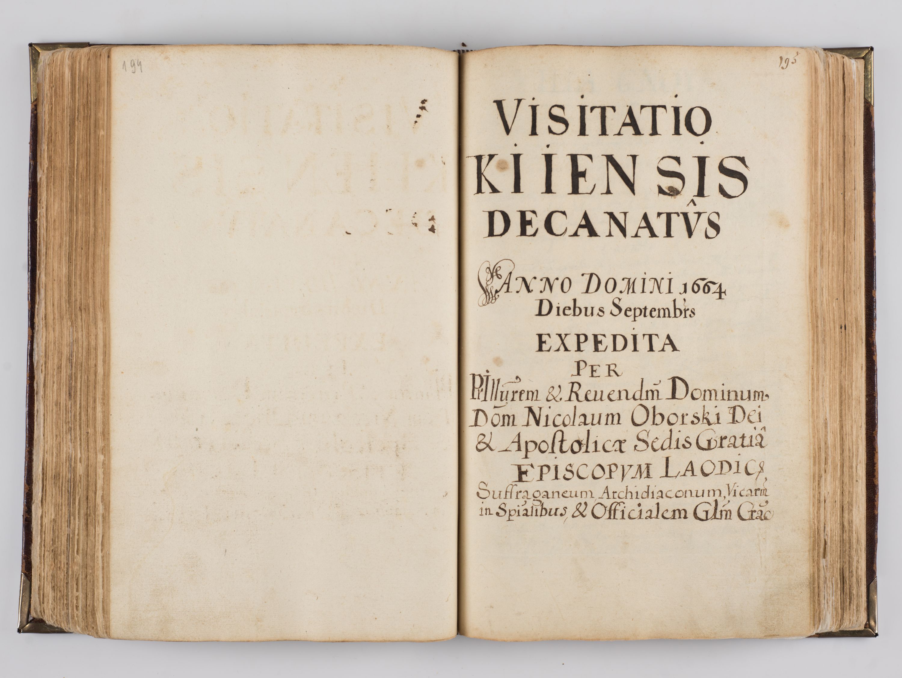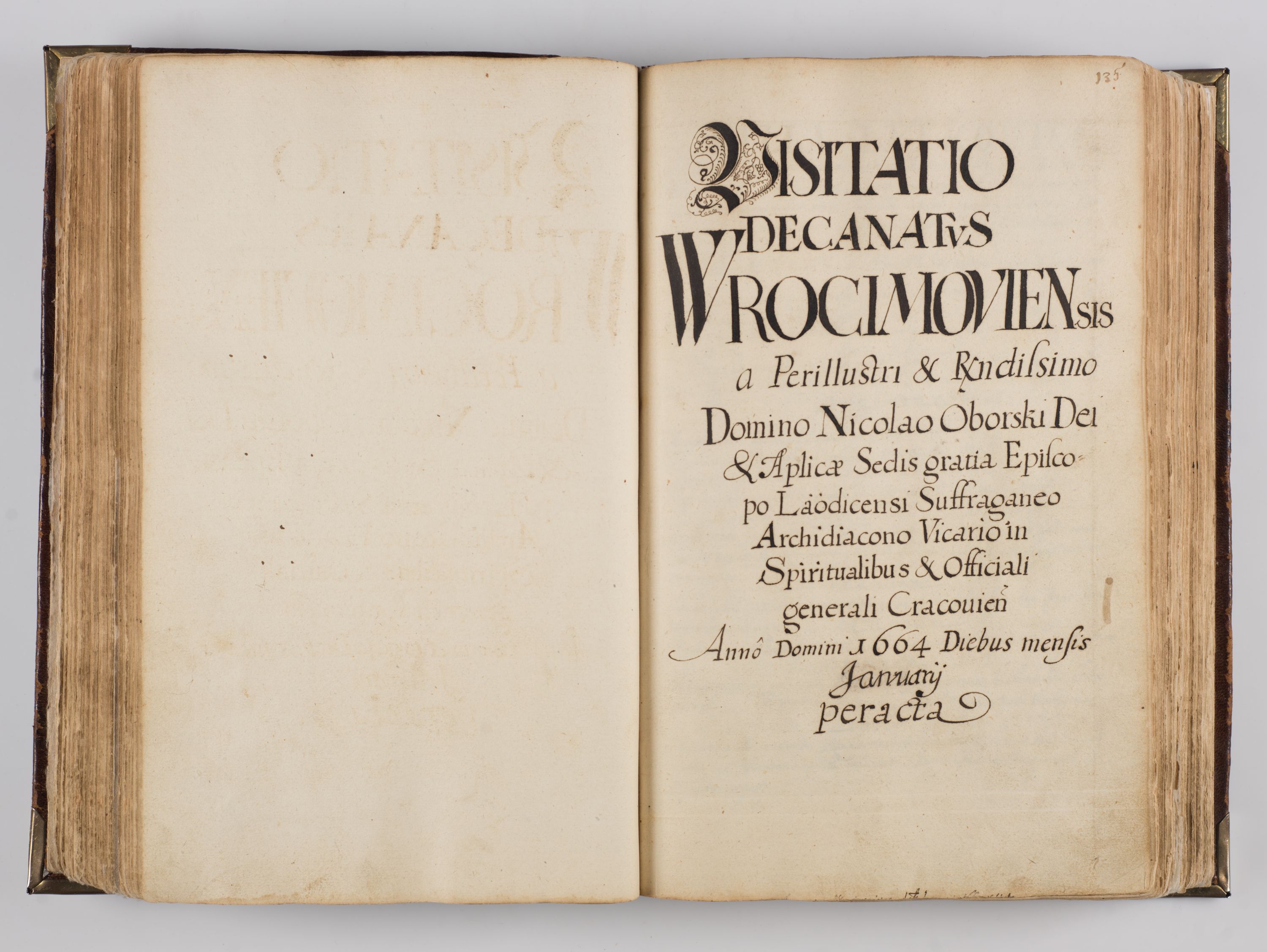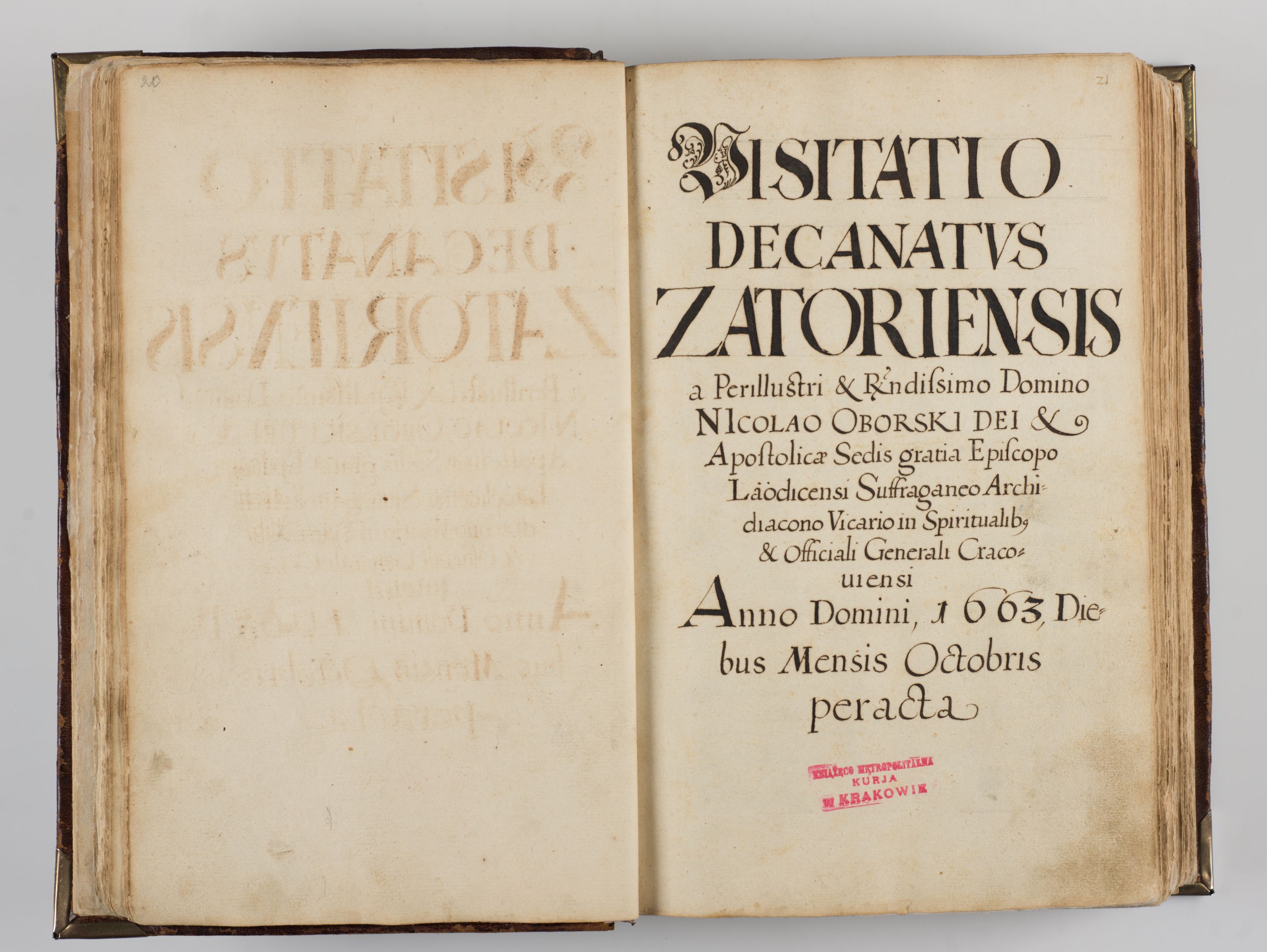 Visitatio quindecim decanatuum, nempe: Skavinensis, Zathoriensis, Novi Montis, Skalensis, Wrocimoviensis, Adreoviensis, Kijensis, Paczanoviensis, Oswiecimensis, Żywiecensis, Witoviensis, Skoliensis, Opatovecensis, Wielicensis et Plesnensis a Peril. et R.D. Nicolao Oborski, episcopo Laodicensis, suffraganeo, archidiacono, vicario in spiritualibus generali Cracoviensi in annis 1663 - 1665 expedita