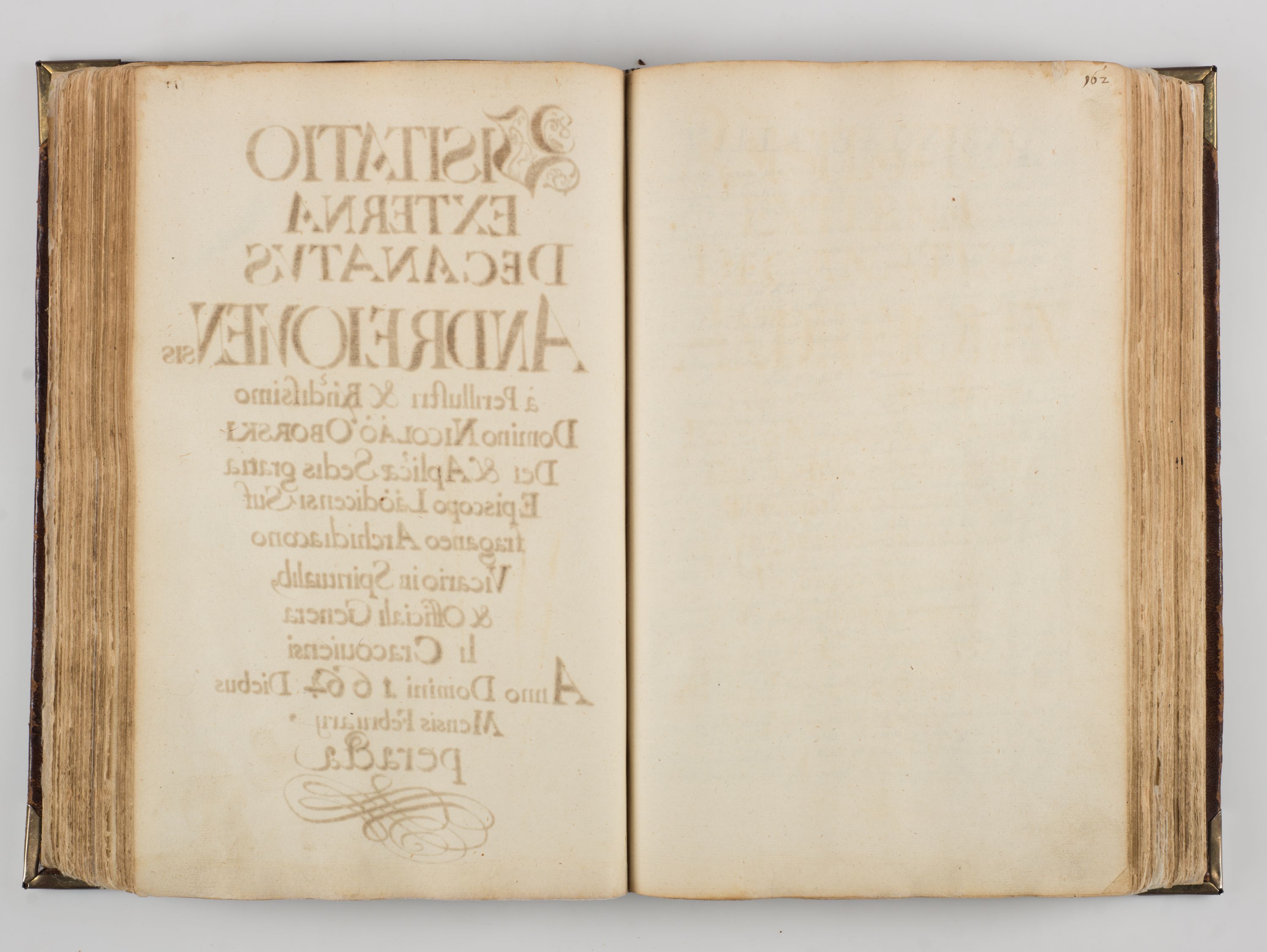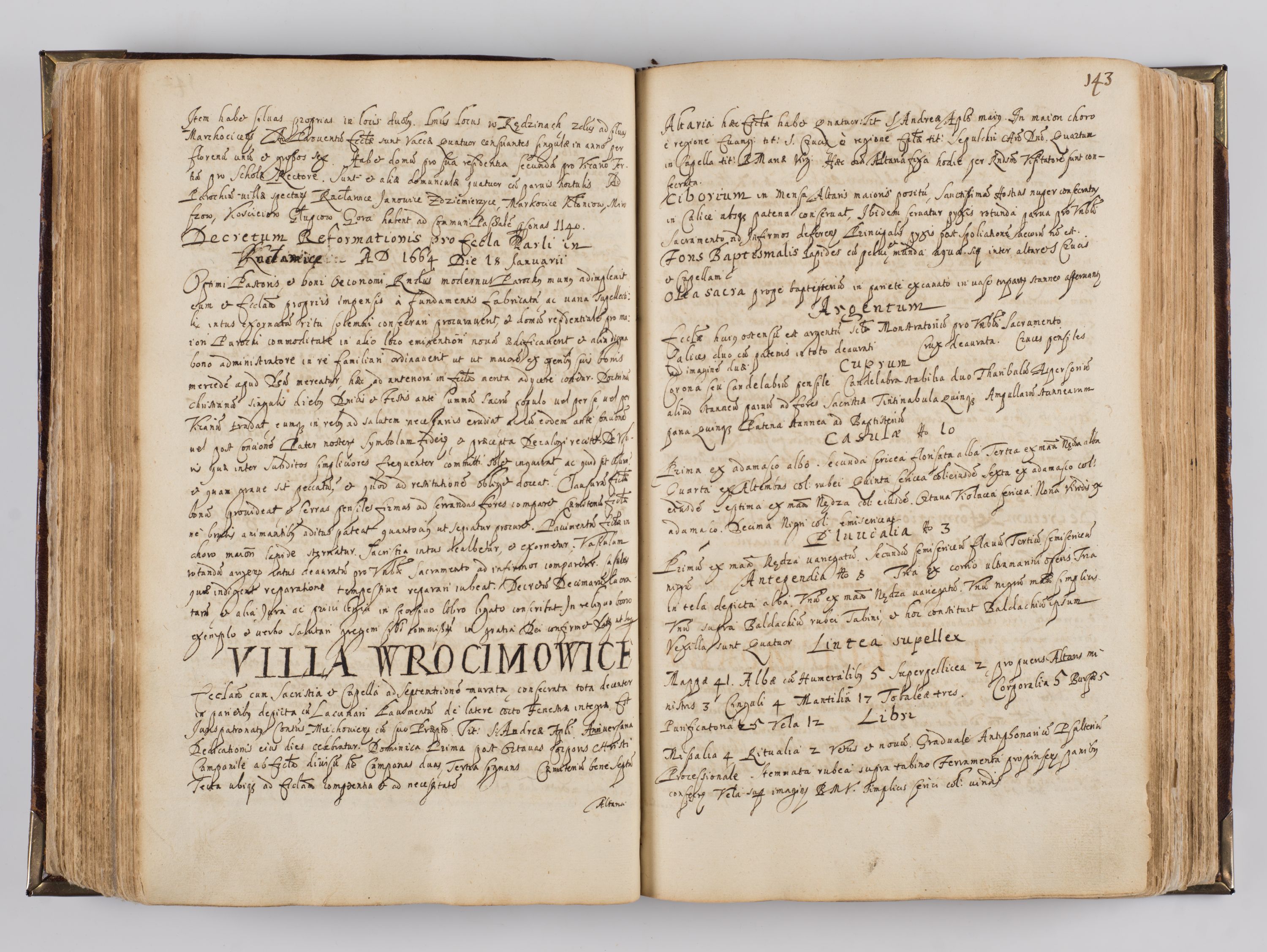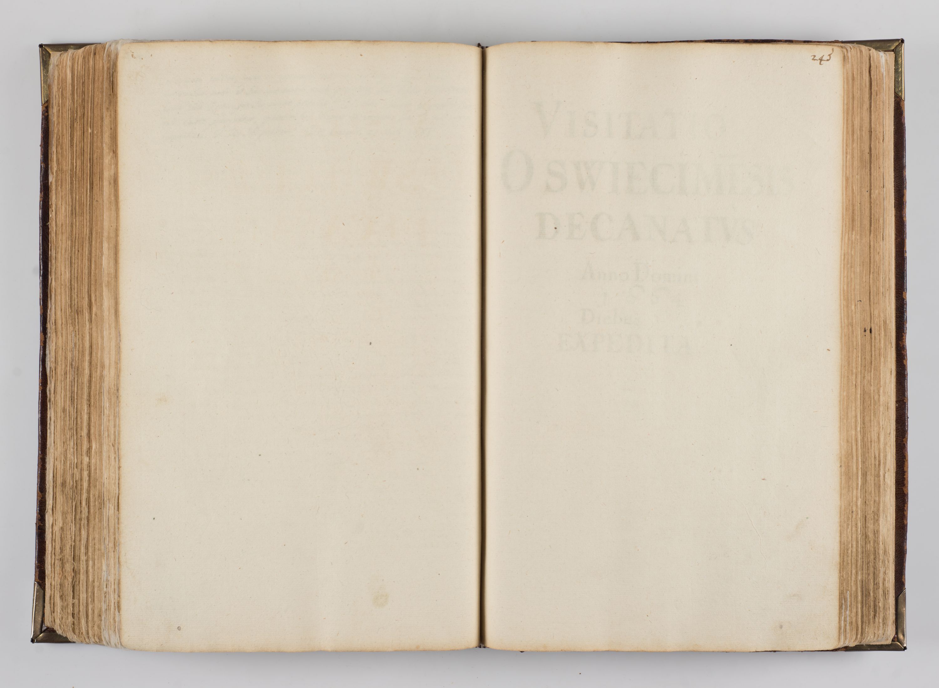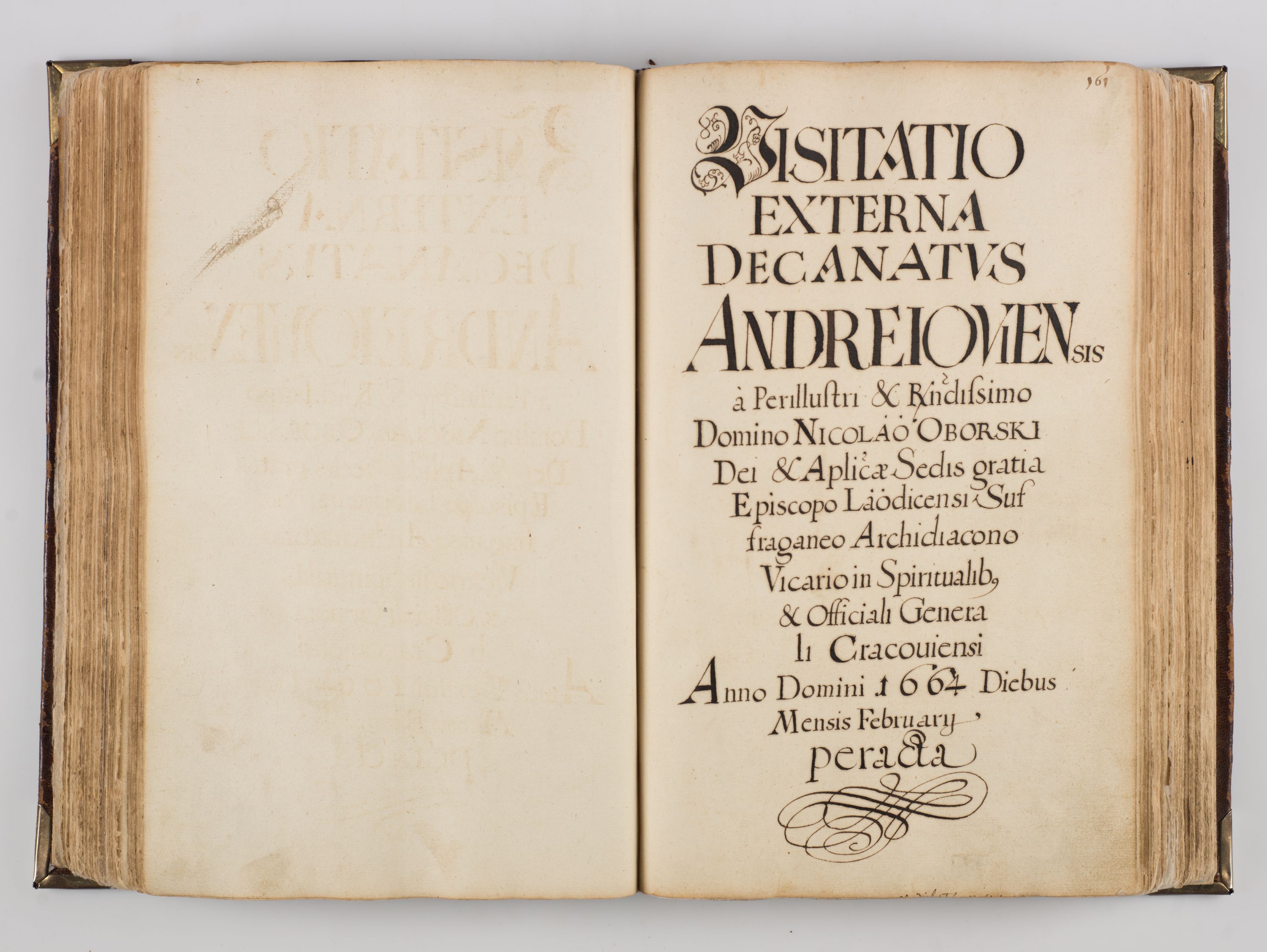 Visitatio quindecim decanatuum, nempe: Skavinensis, Zathoriensis, Novi Montis, Skalensis, Wrocimoviensis, Adreoviensis, Kijensis, Paczanoviensis, Oswiecimensis, Żywiecensis, Witoviensis, Skoliensis, Opatovecensis, Wielicensis et Plesnensis a Peril. et R.D. Nicolao Oborski, episcopo Laodicensis, suffraganeo, archidiacono, vicario in spiritualibus generali Cracoviensi in annis 1663 - 1665 expedita