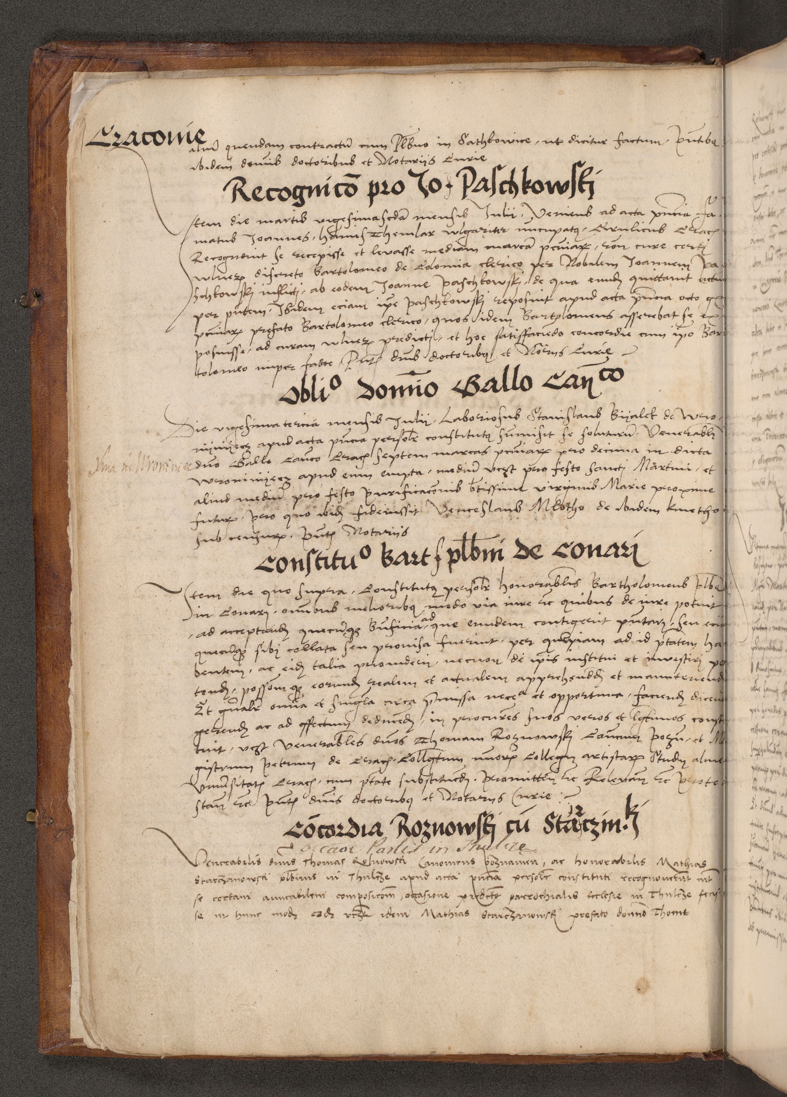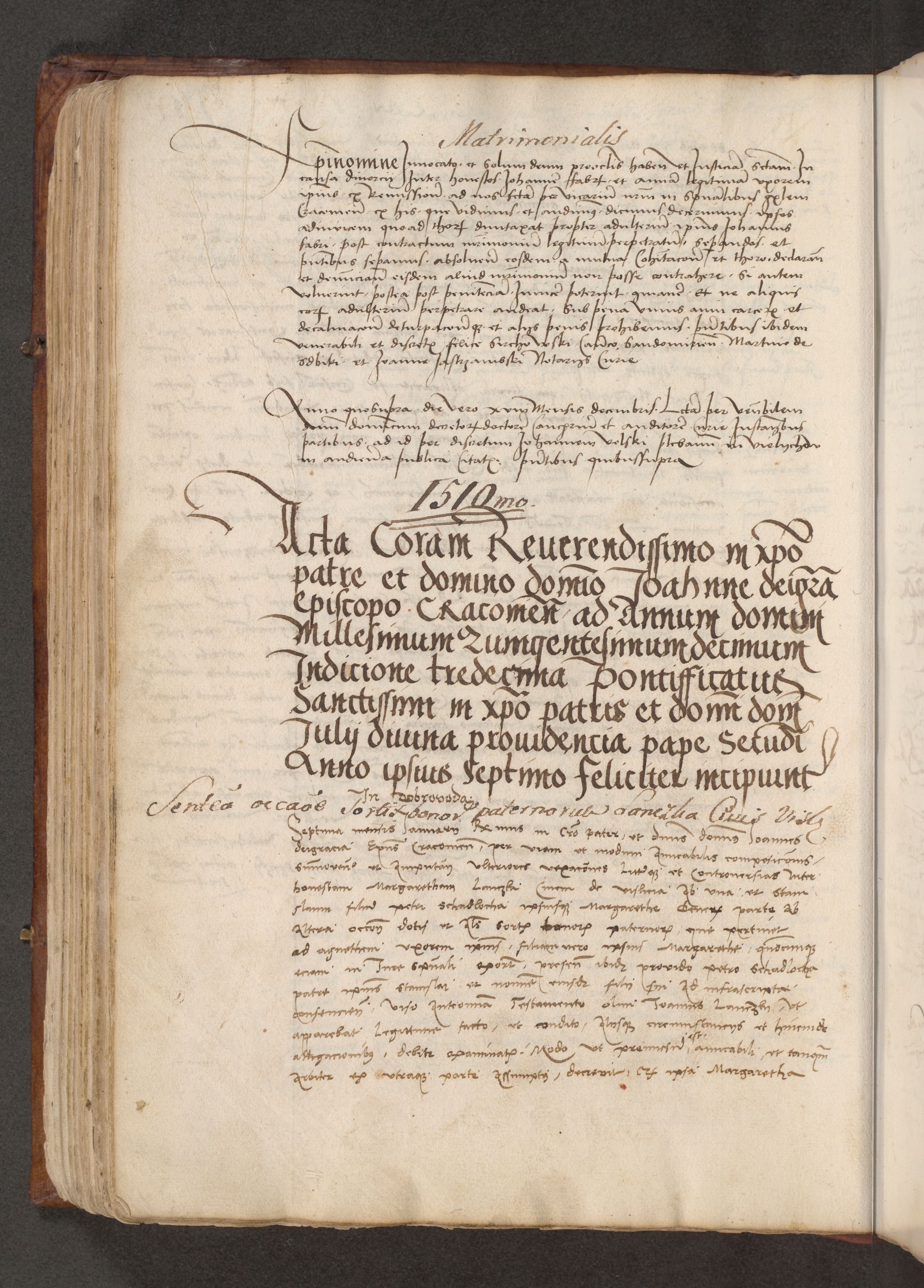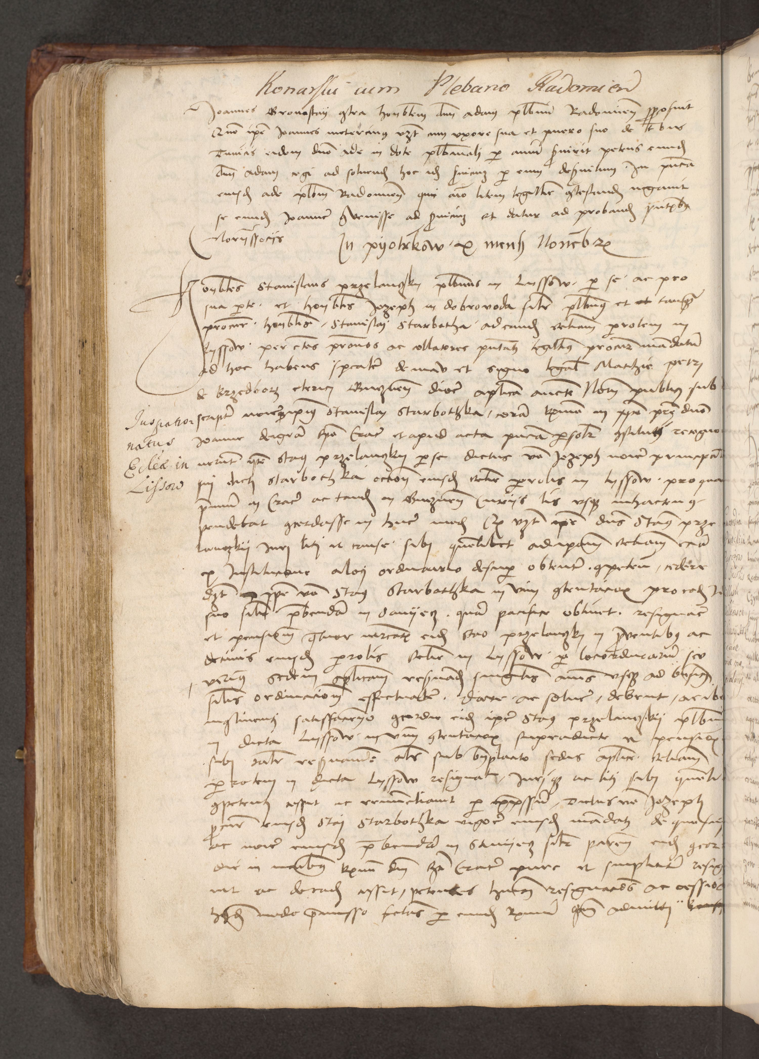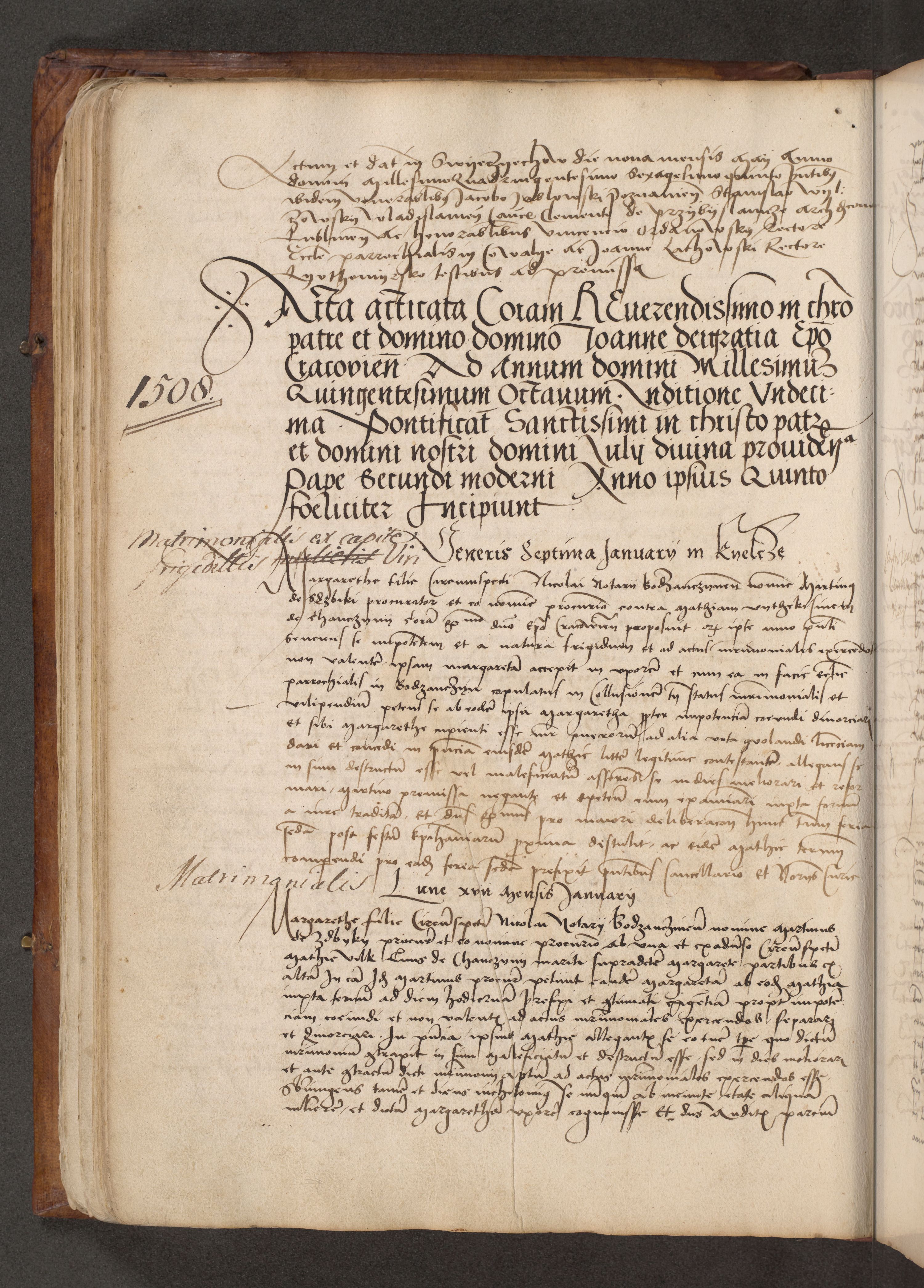 Volumen I-mum actorum R. D. Joannis Konarski, episcopi Cracoviensis ab an D. 1503 ad annum 1514 inclusive acticata et registata, quorum indicem in dine voluminis videre est.