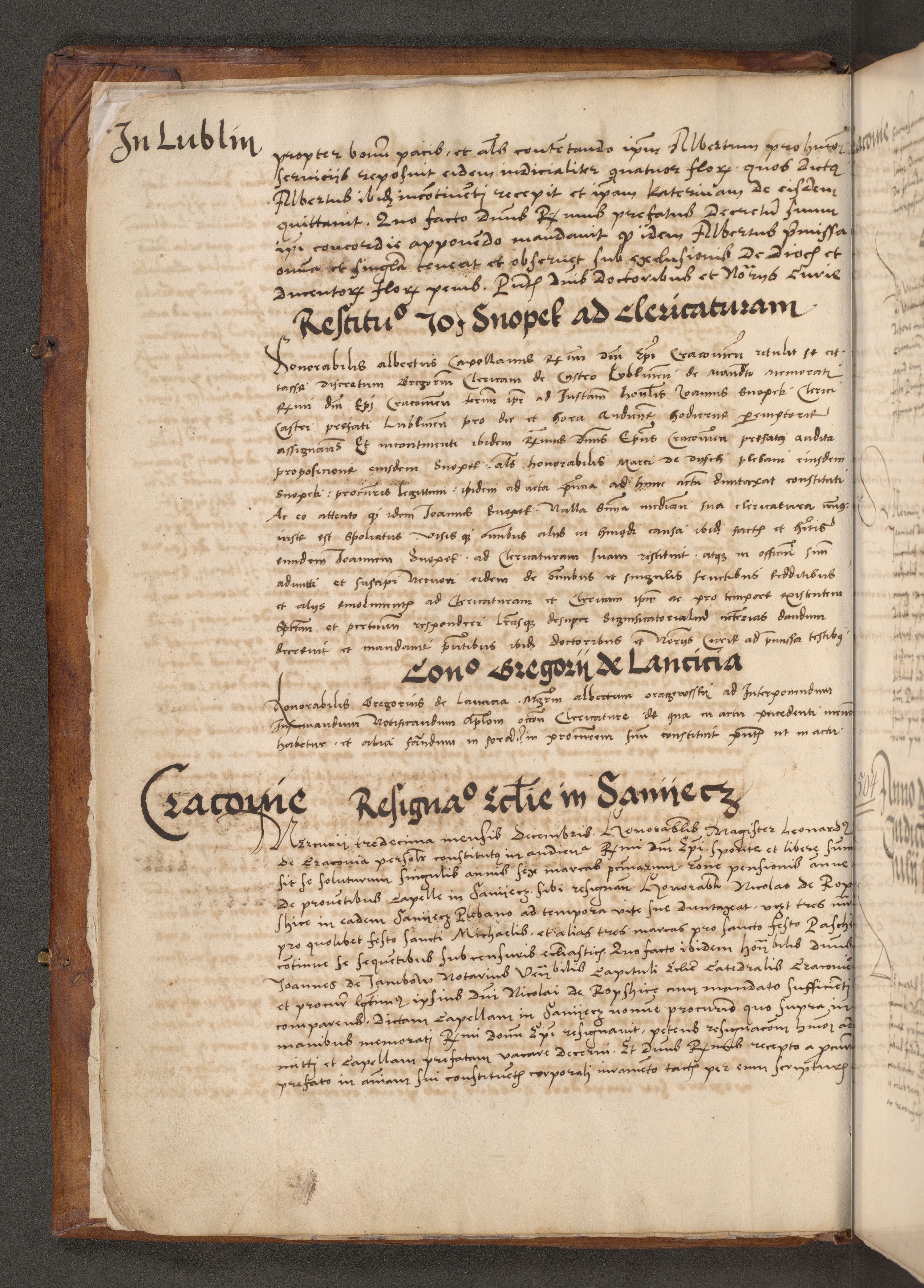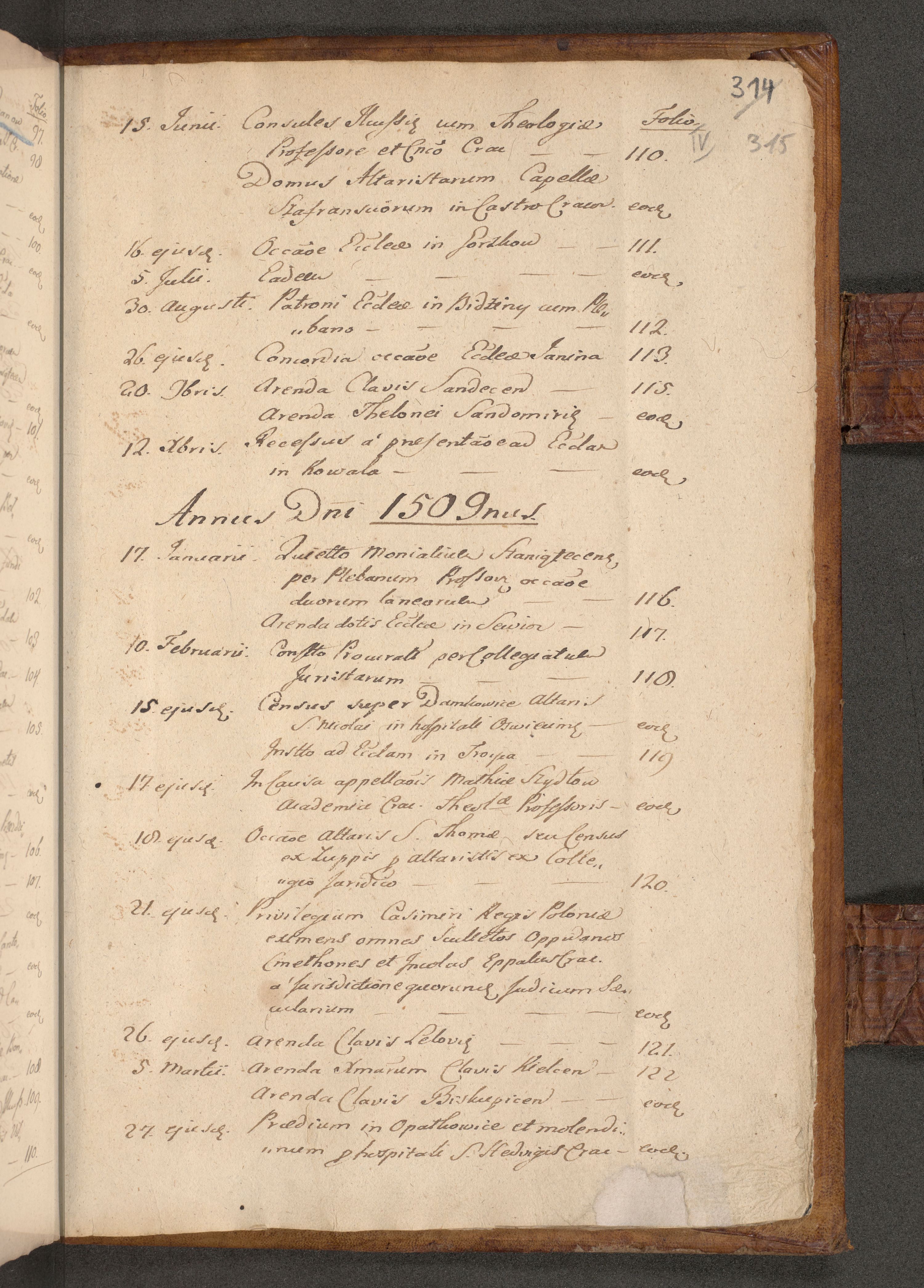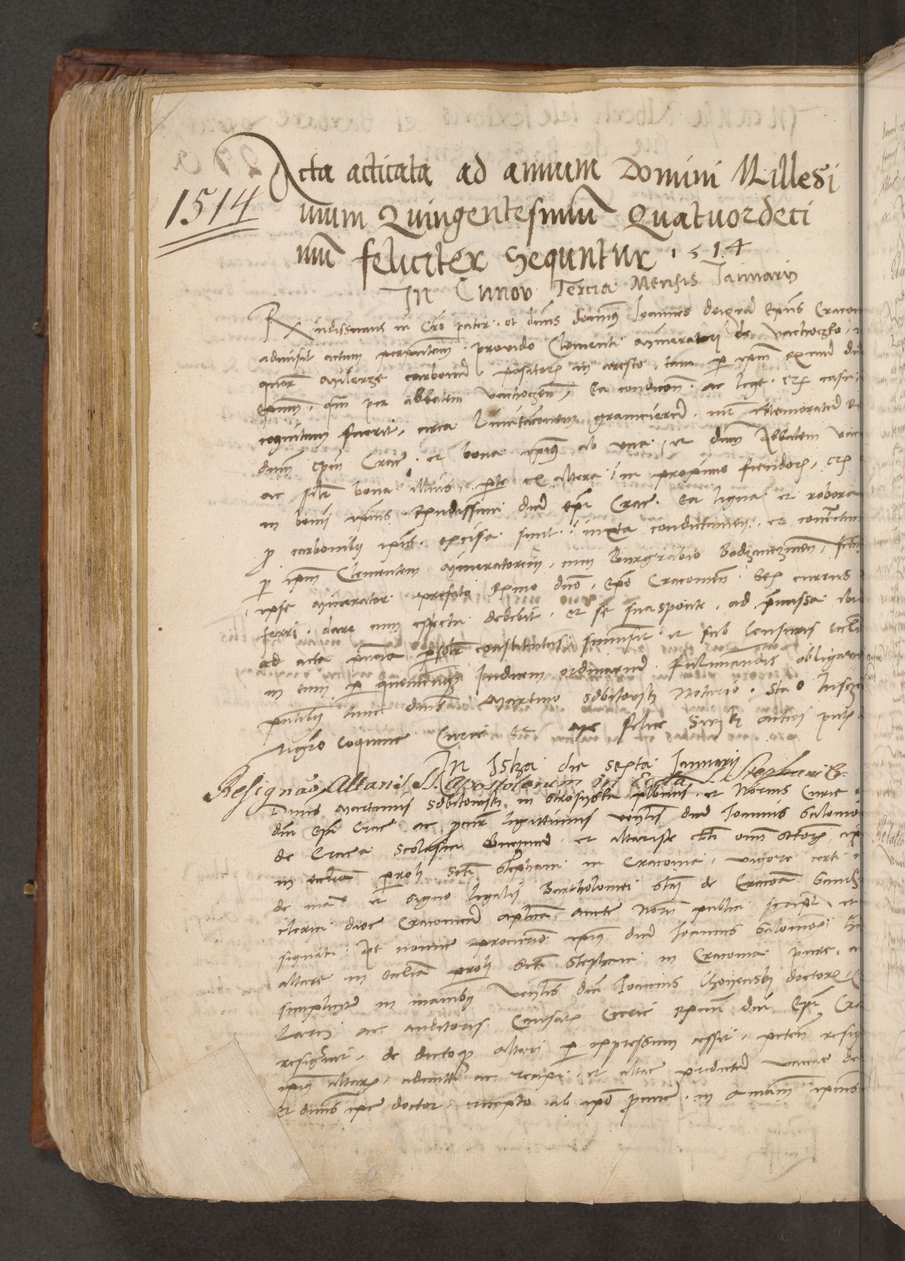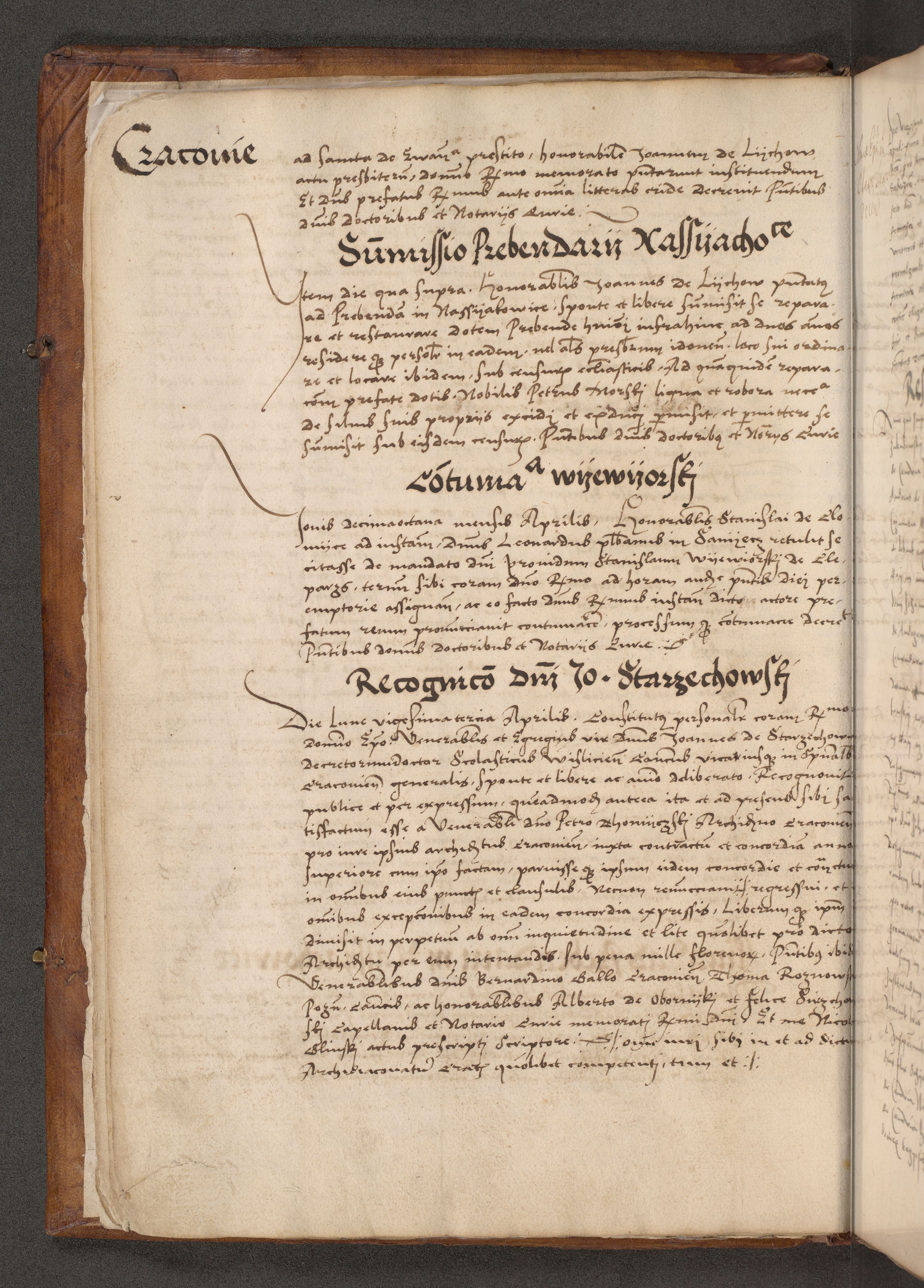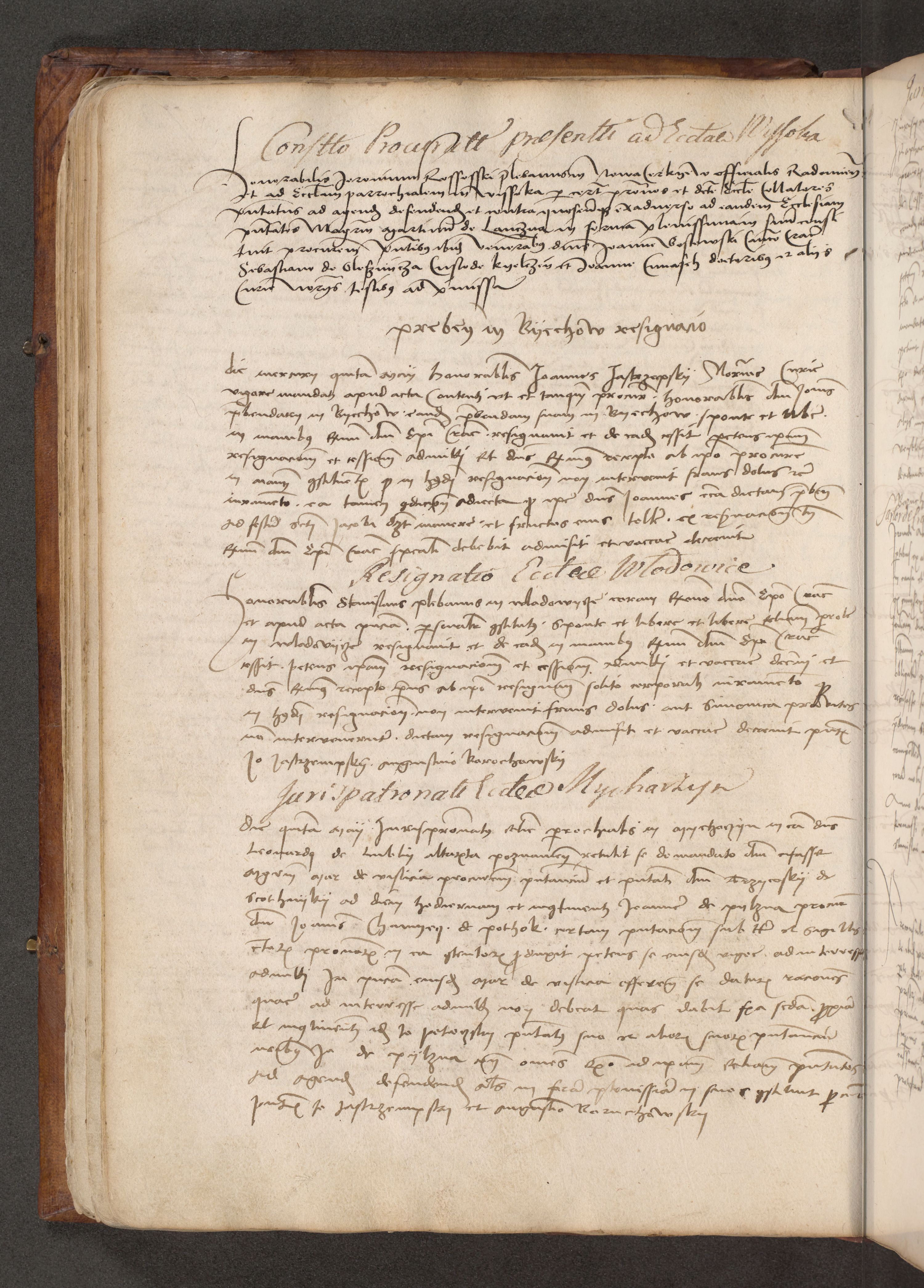 Volumen I-mum actorum R. D. Joannis Konarski, episcopi Cracoviensis ab an D. 1503 ad annum 1514 inclusive acticata et registata, quorum indicem in dine voluminis videre est.