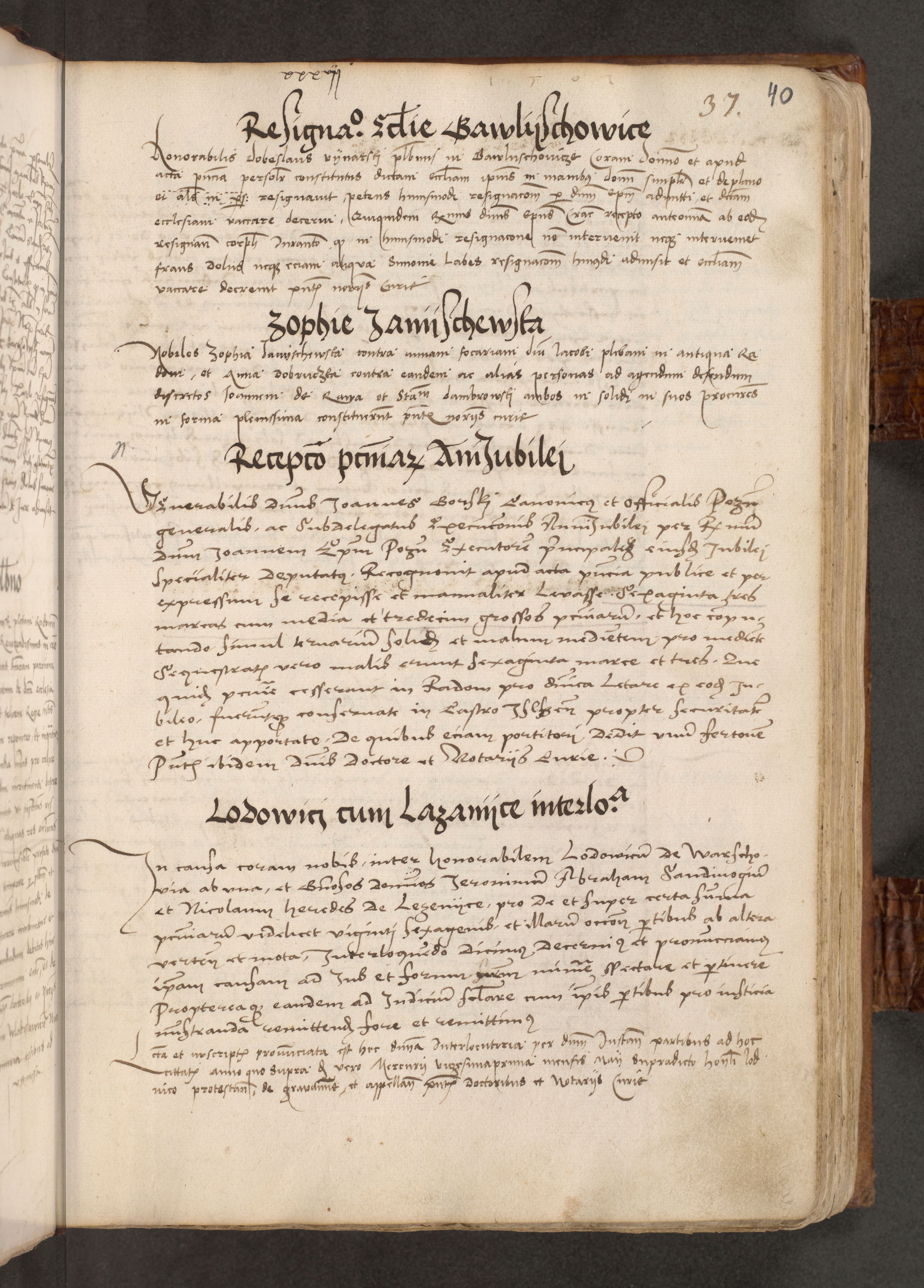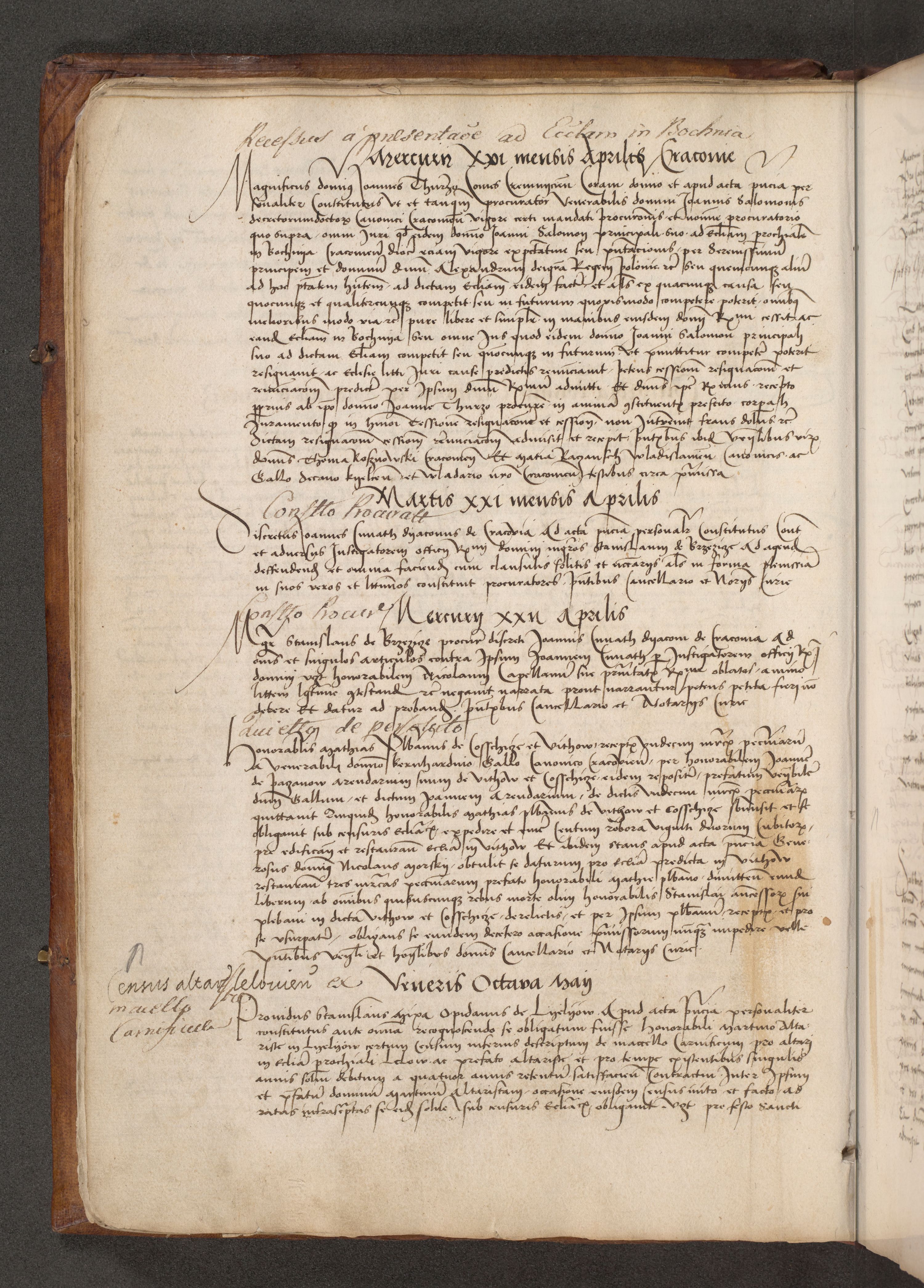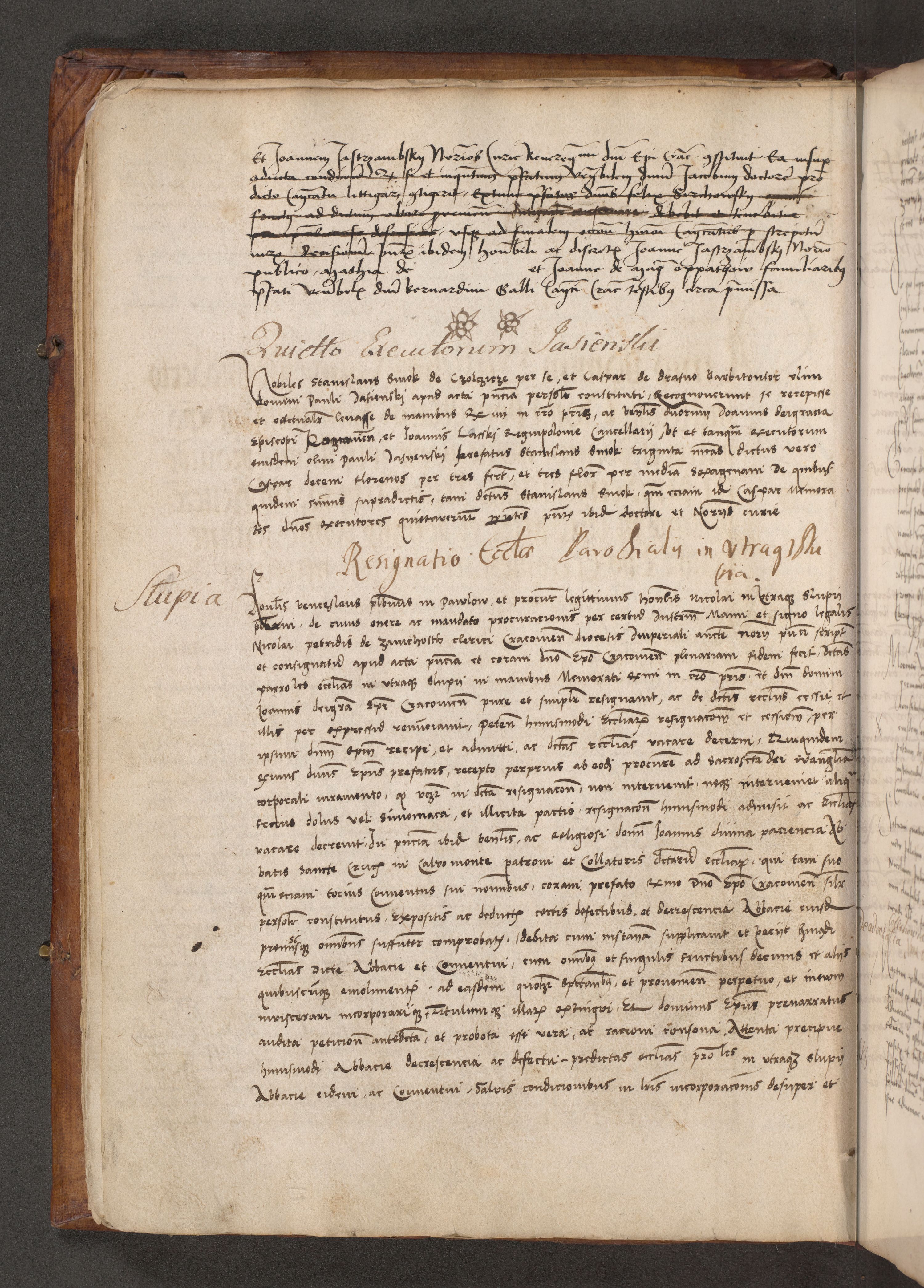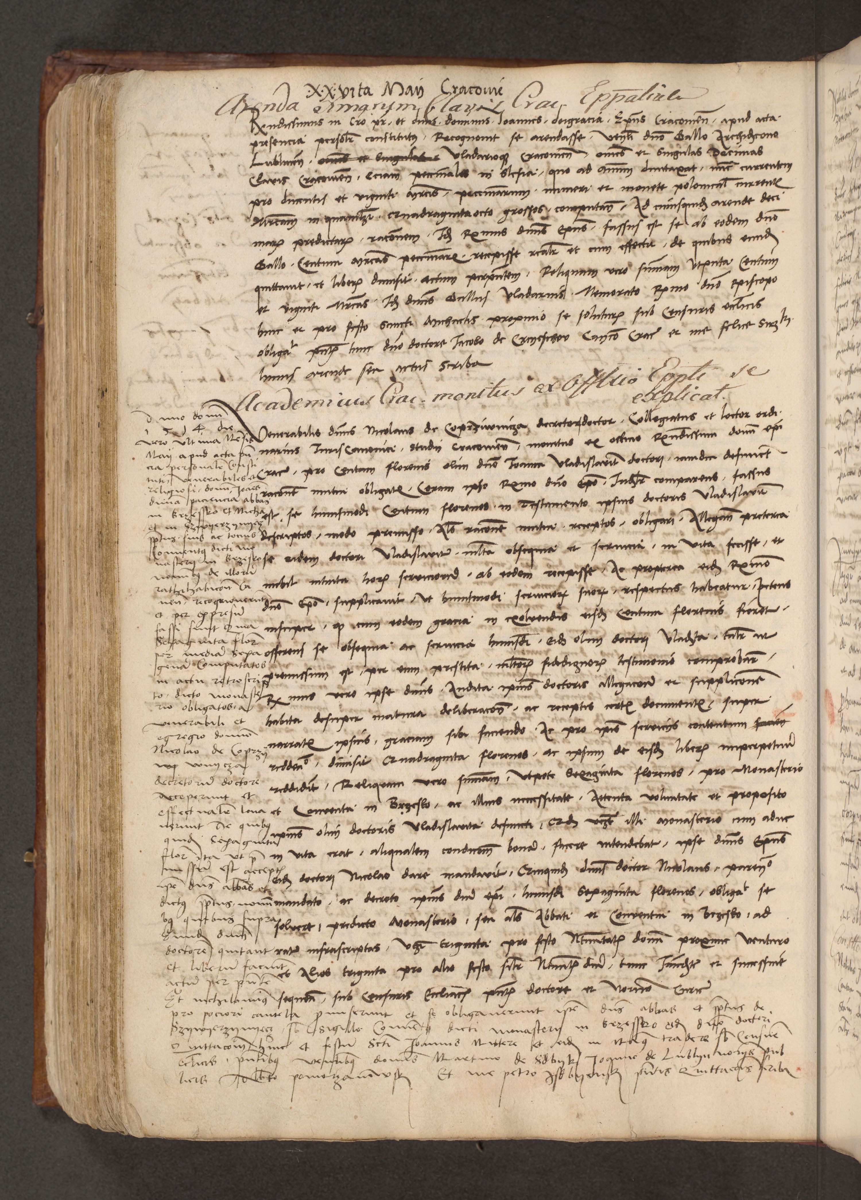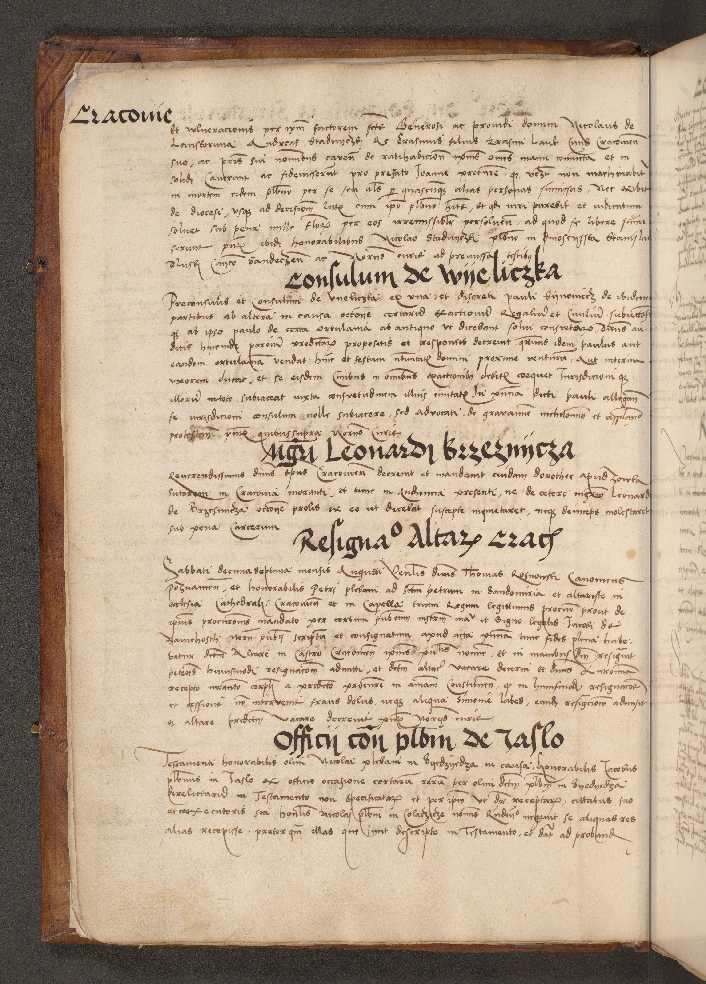 Volumen I-mum actorum R. D. Joannis Konarski, episcopi Cracoviensis ab an D. 1503 ad annum 1514 inclusive acticata et registata, quorum indicem in dine voluminis videre est.