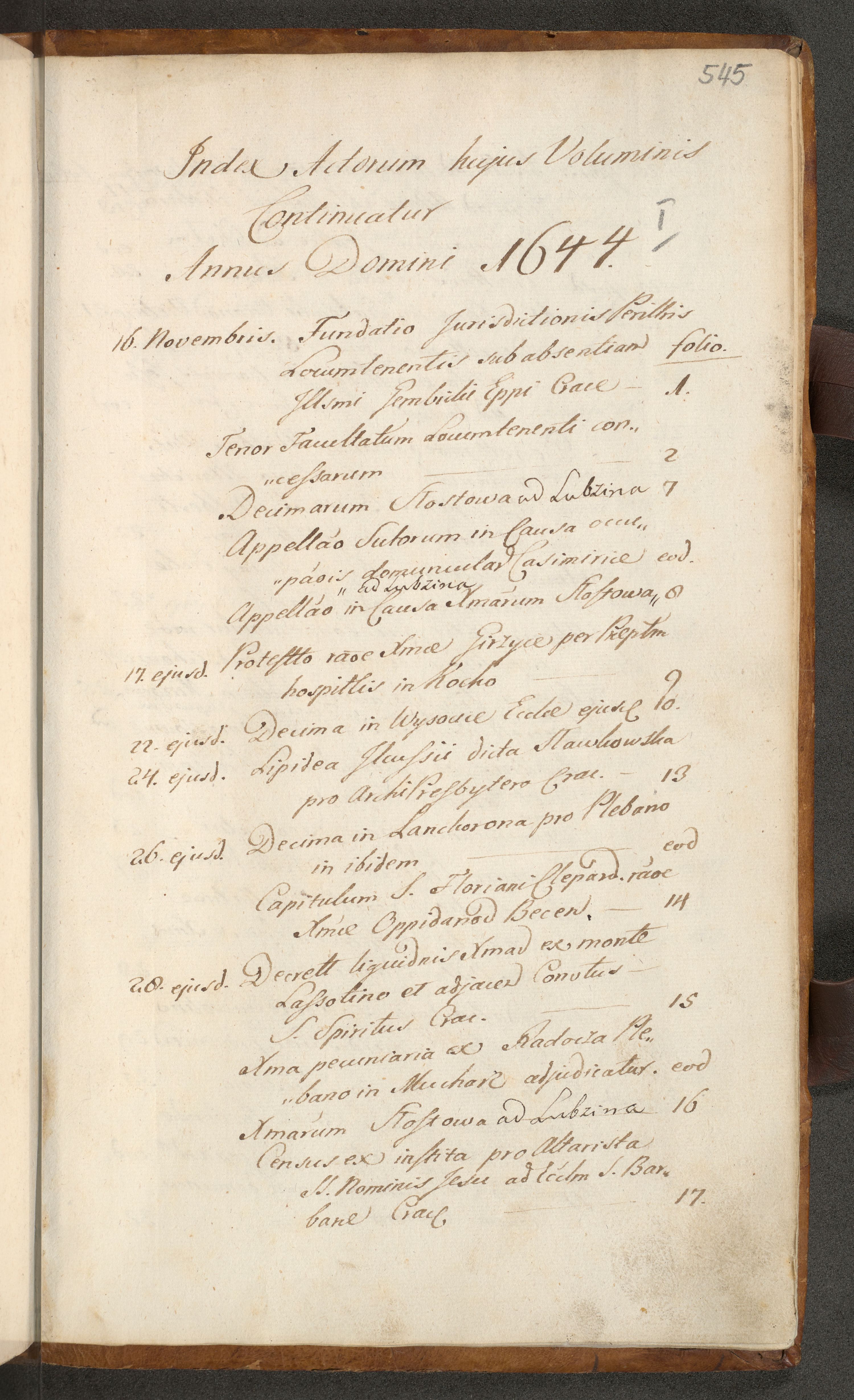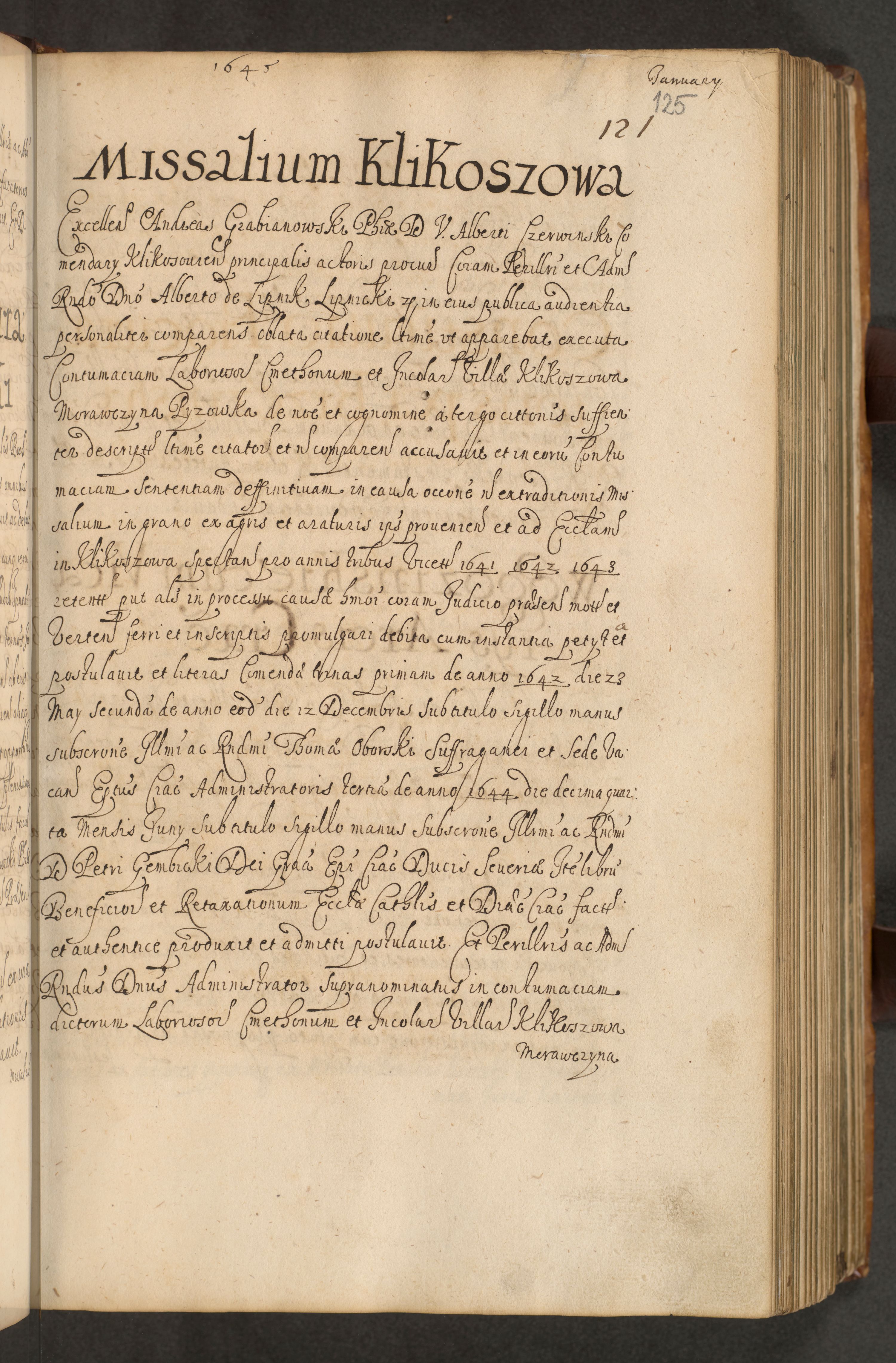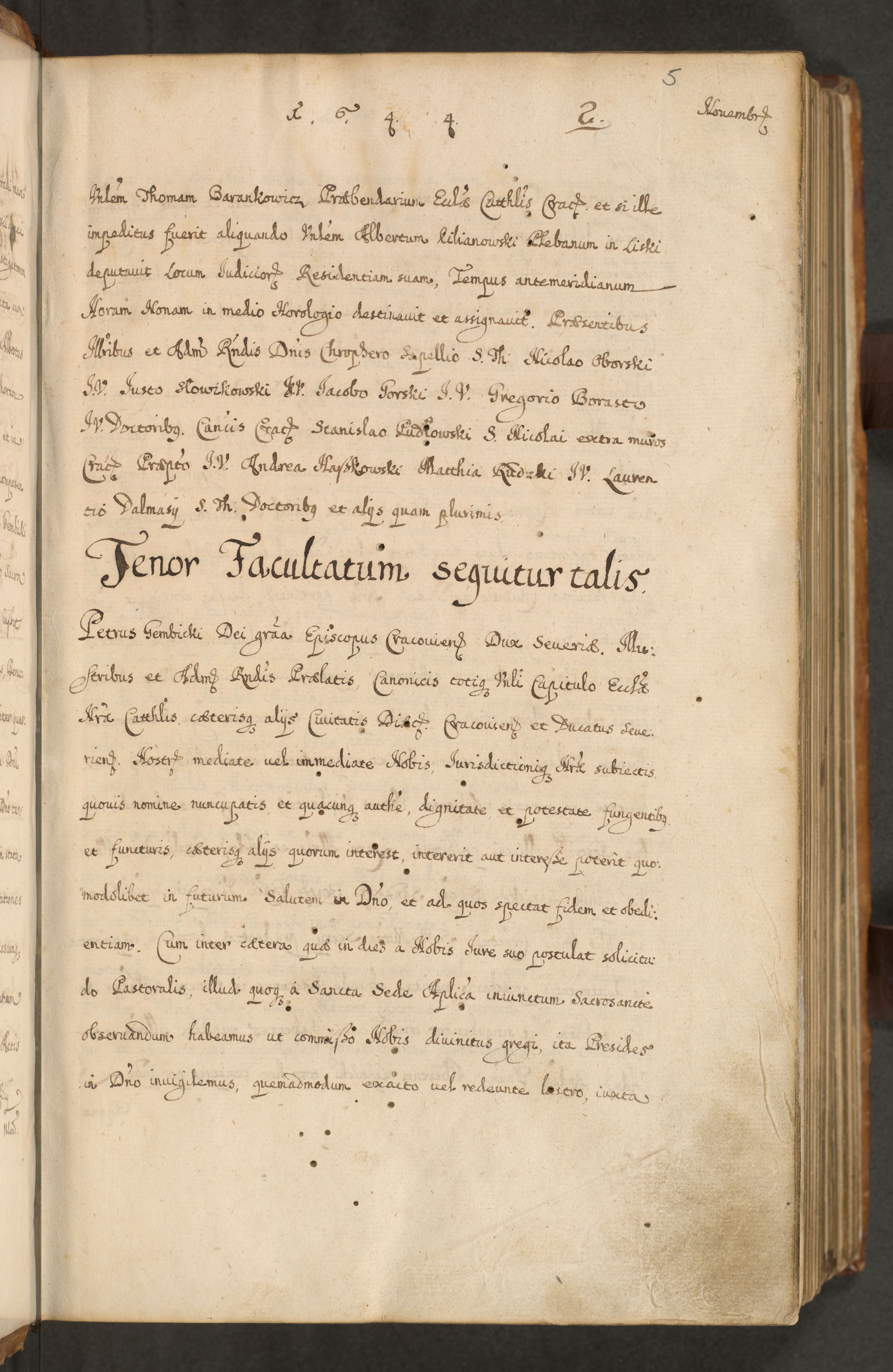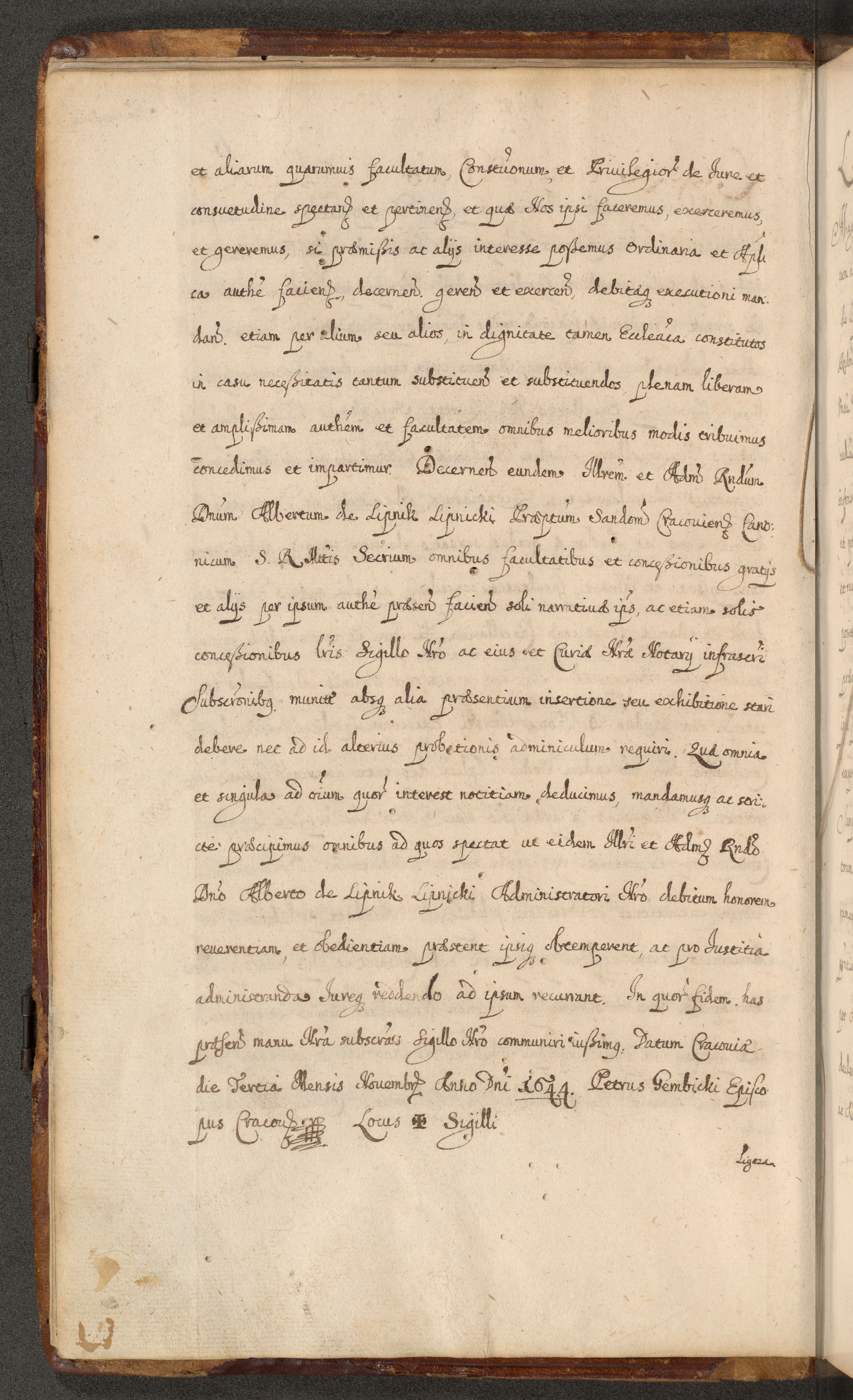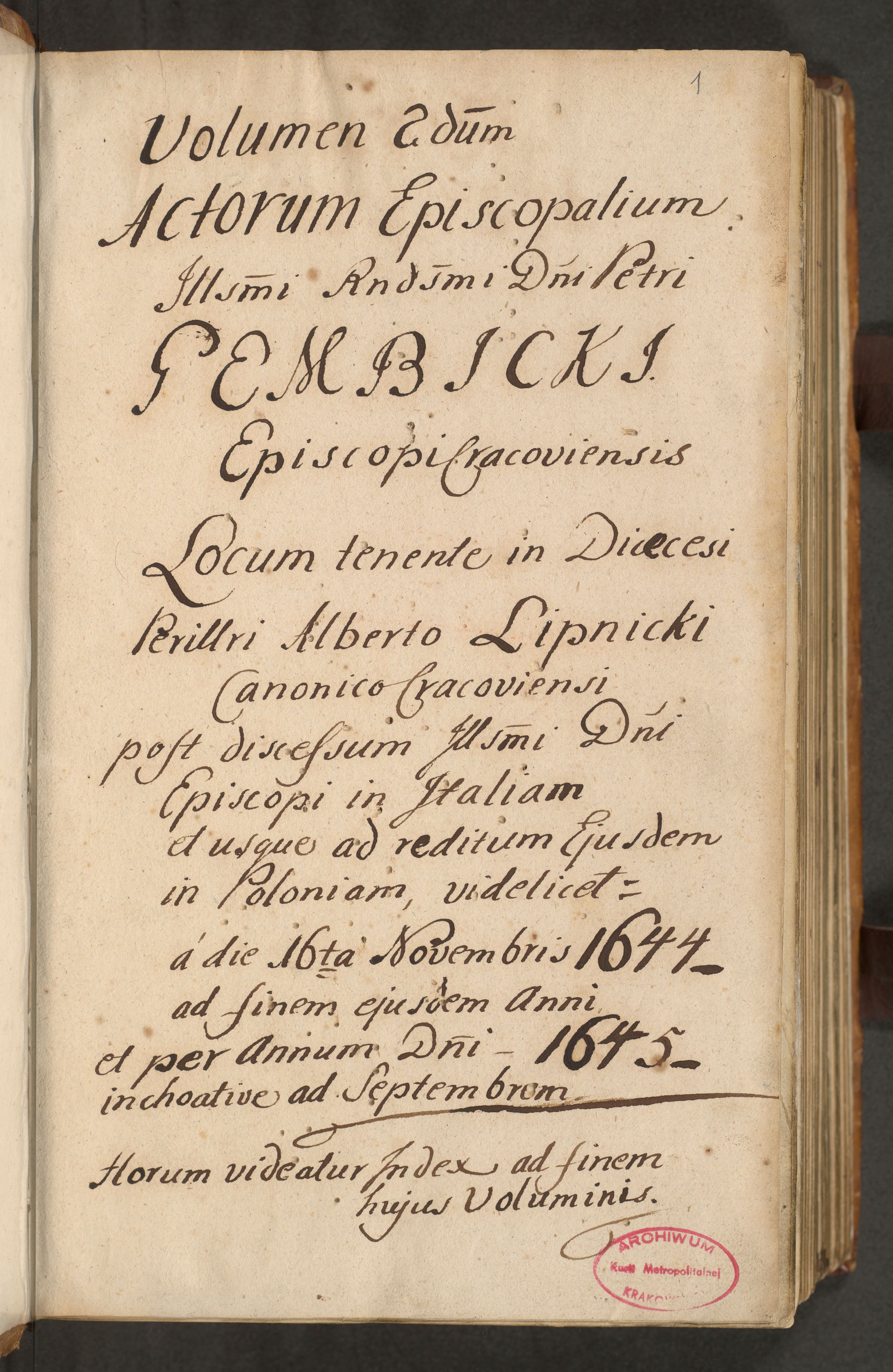 Volumen II actorum episcopalium R. D. Petri Gembicki, episcopi Cracoviensis, locum tenente in dioecesi R. D. Alberto Lipnicki, canonico Cracoviensi post discessum R. D. Episcopi in Italiam et usque ad redditum eiusdem in Poloniam, videlicet a die 16 Novembris 1644 et per a. D. 1645 inchoative ad Septembrem. Horum videatur index ad finem huius voluminis