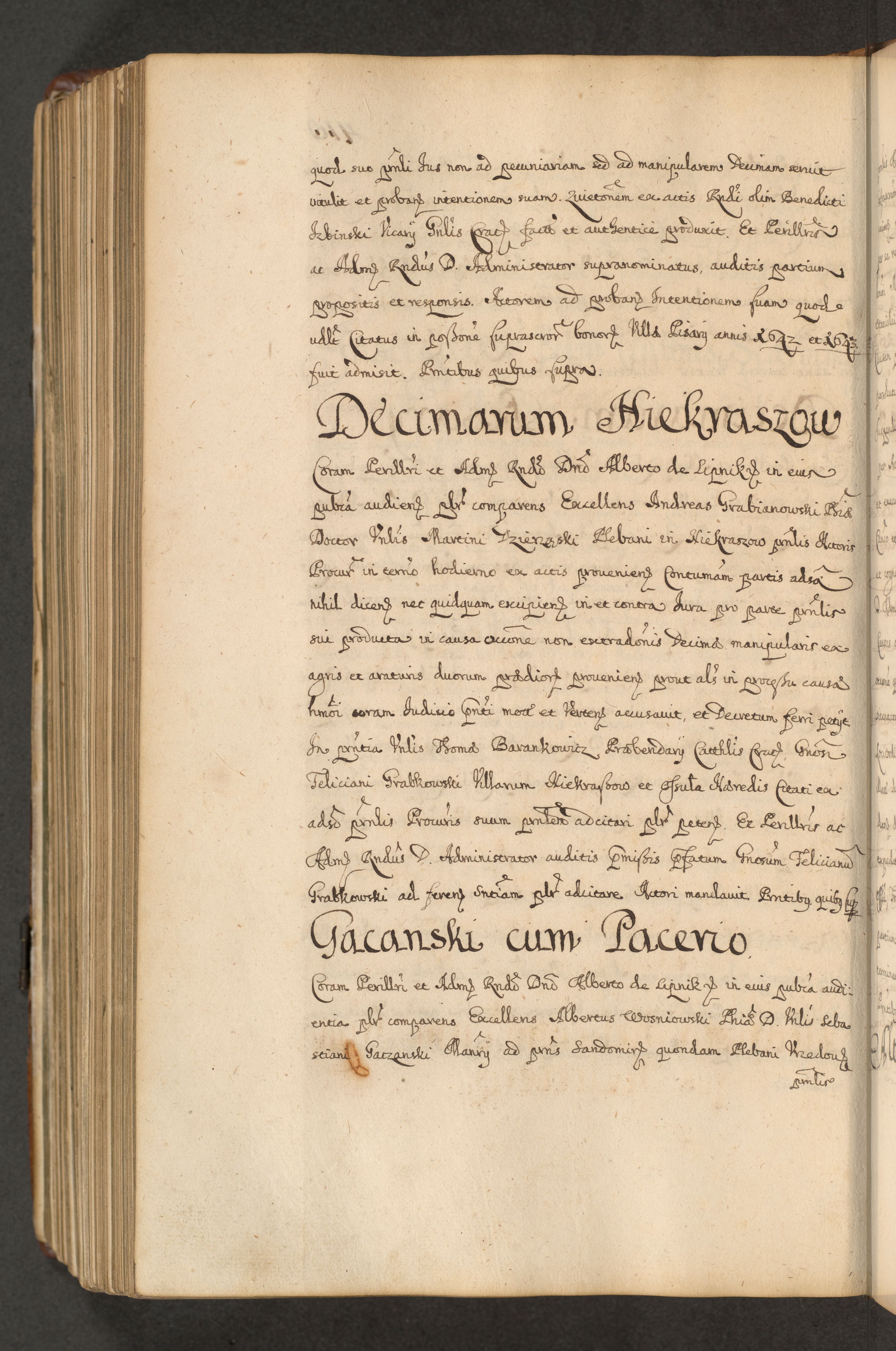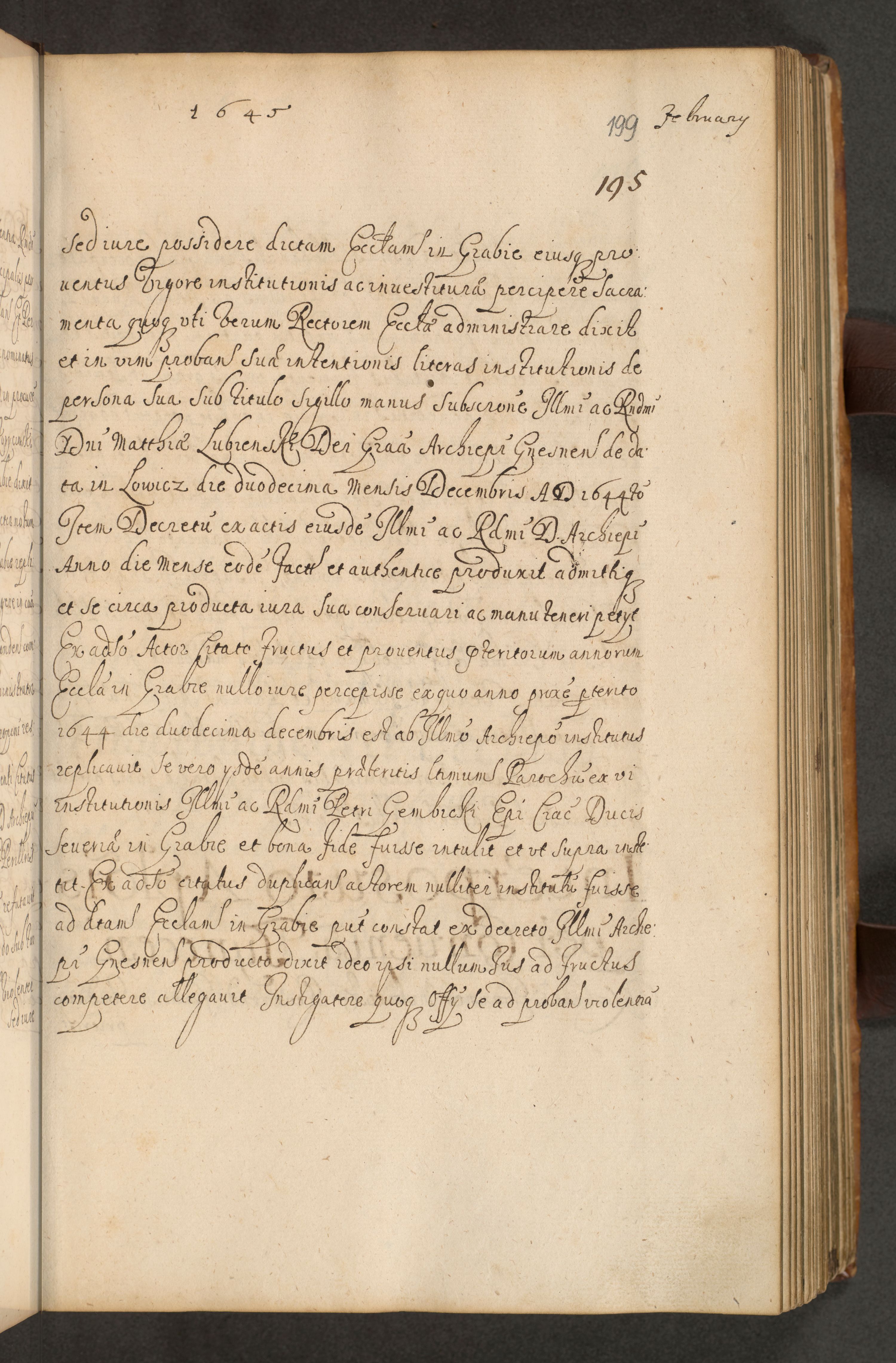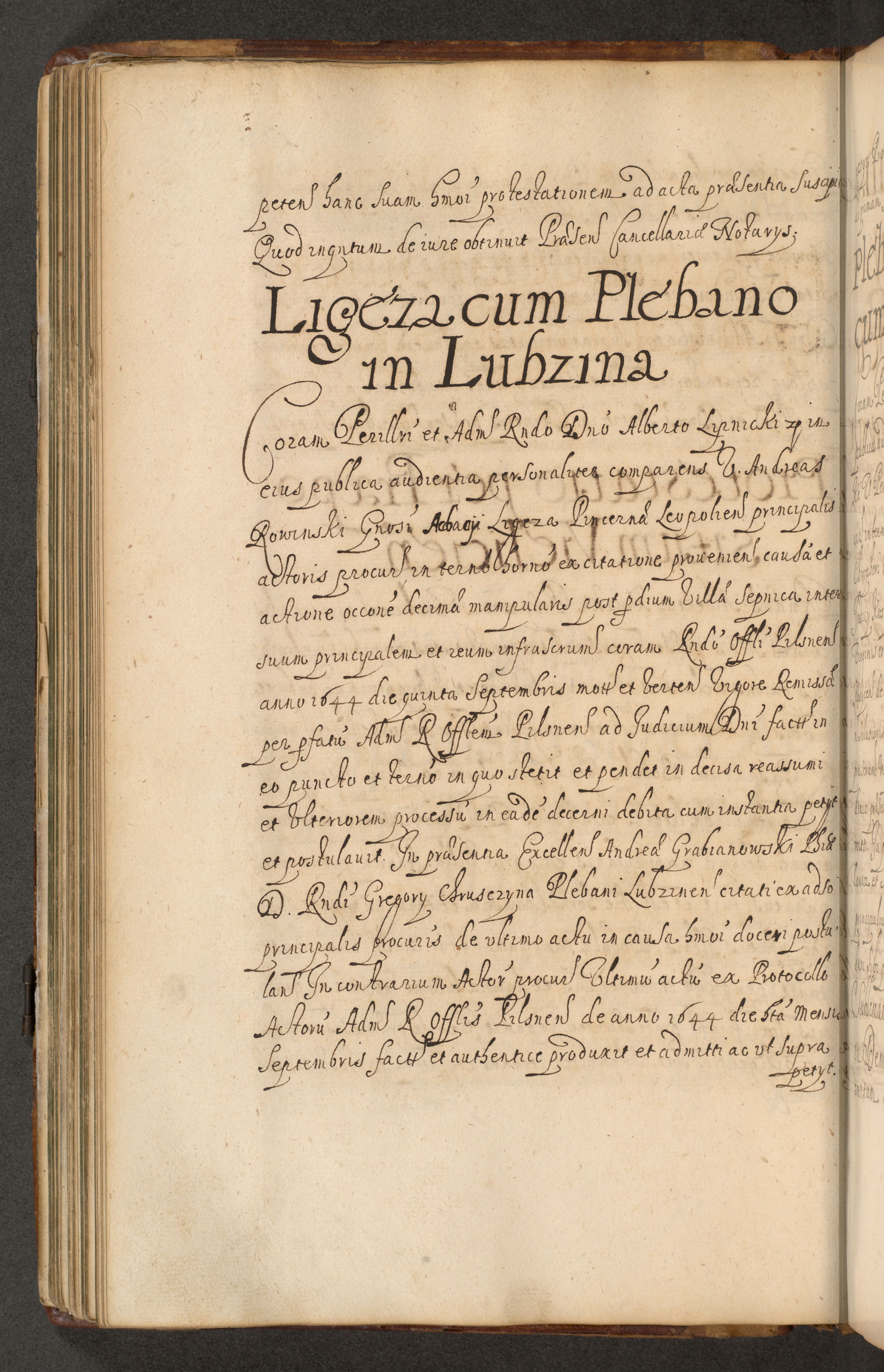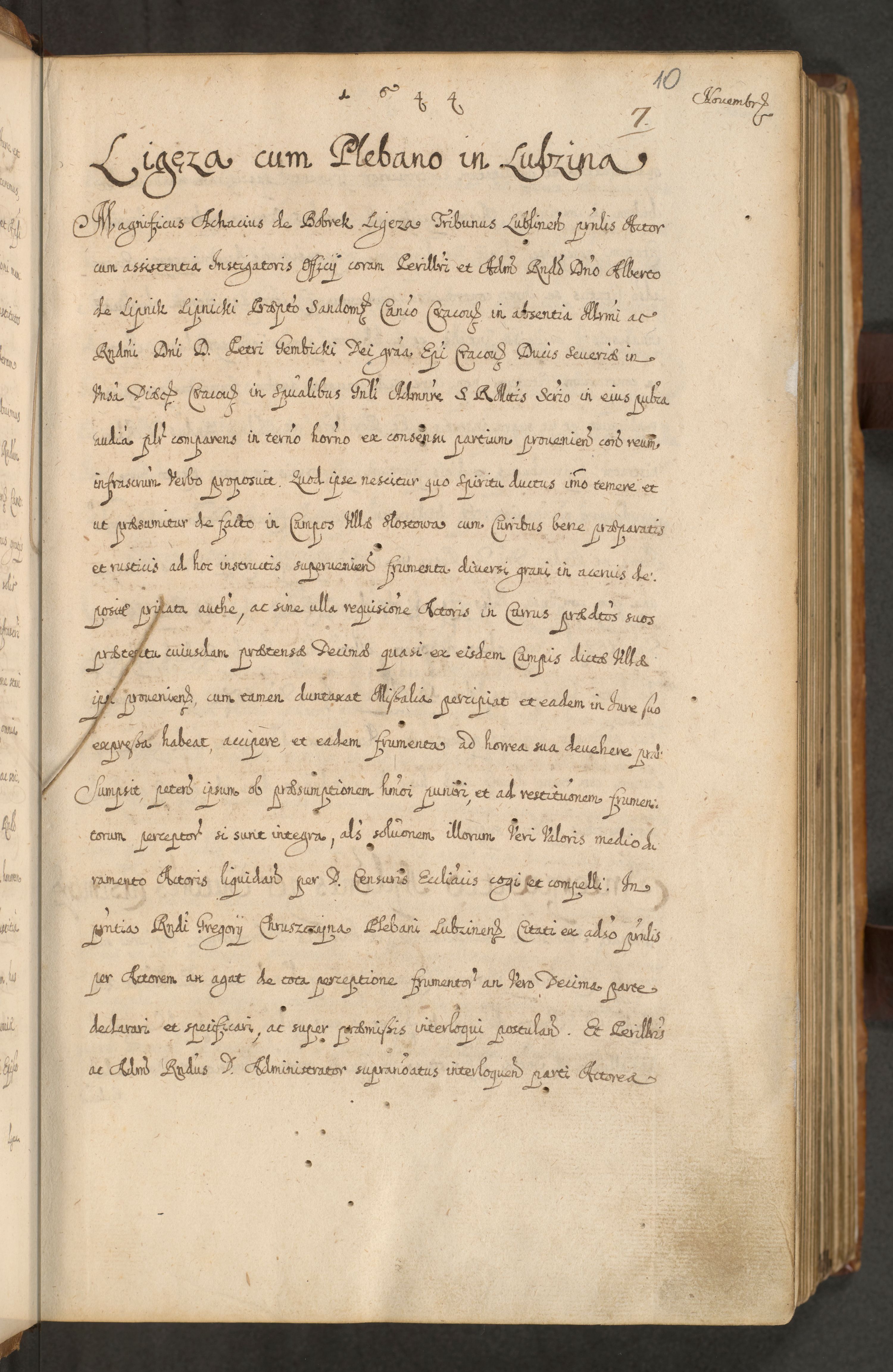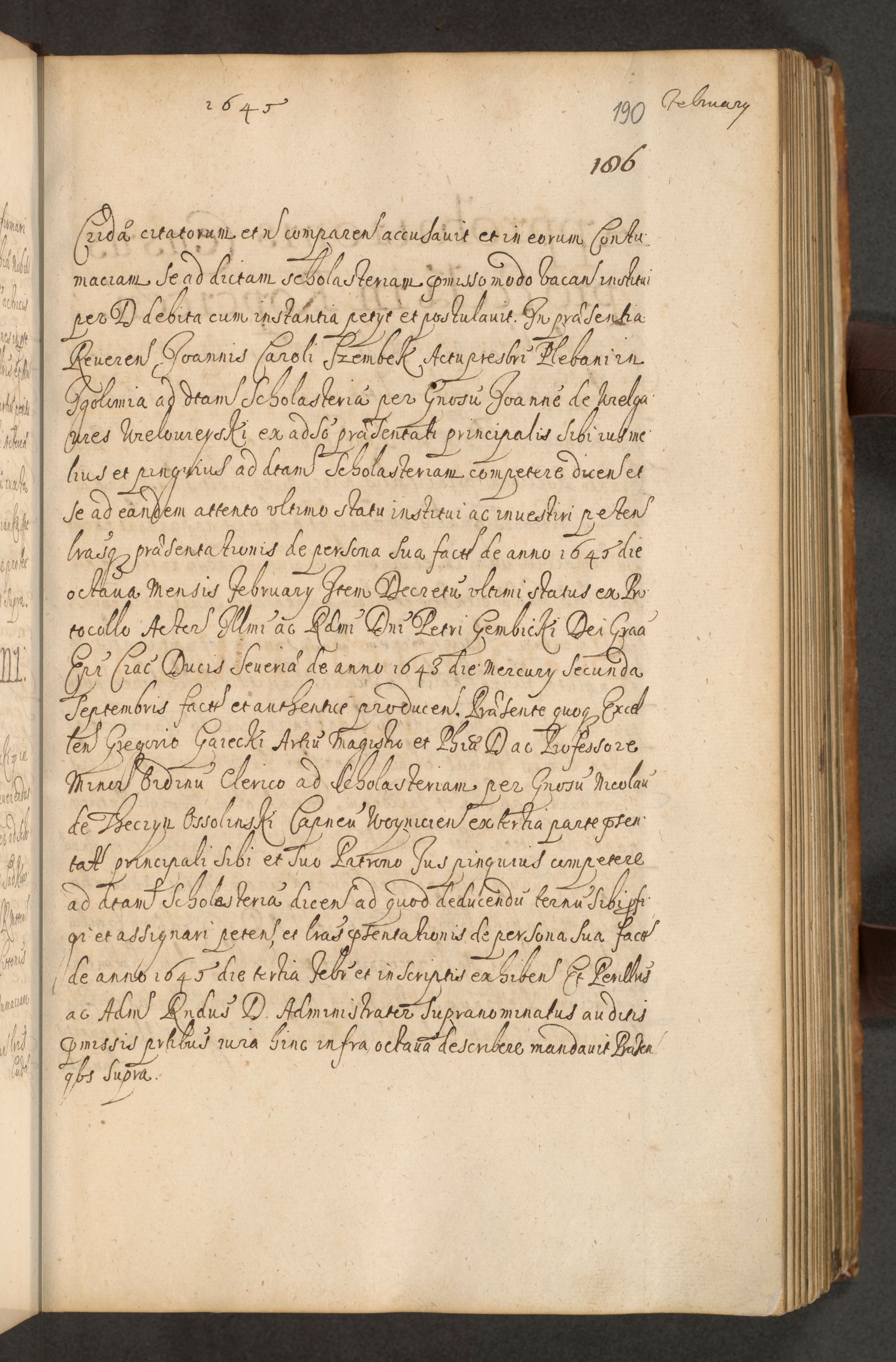 Volumen II actorum episcopalium R. D. Petri Gembicki, episcopi Cracoviensis, locum tenente in dioecesi R. D. Alberto Lipnicki, canonico Cracoviensi post discessum R. D. Episcopi in Italiam et usque ad redditum eiusdem in Poloniam, videlicet a die 16 Novembris 1644 et per a. D. 1645 inchoative ad Septembrem. Horum videatur index ad finem huius voluminis