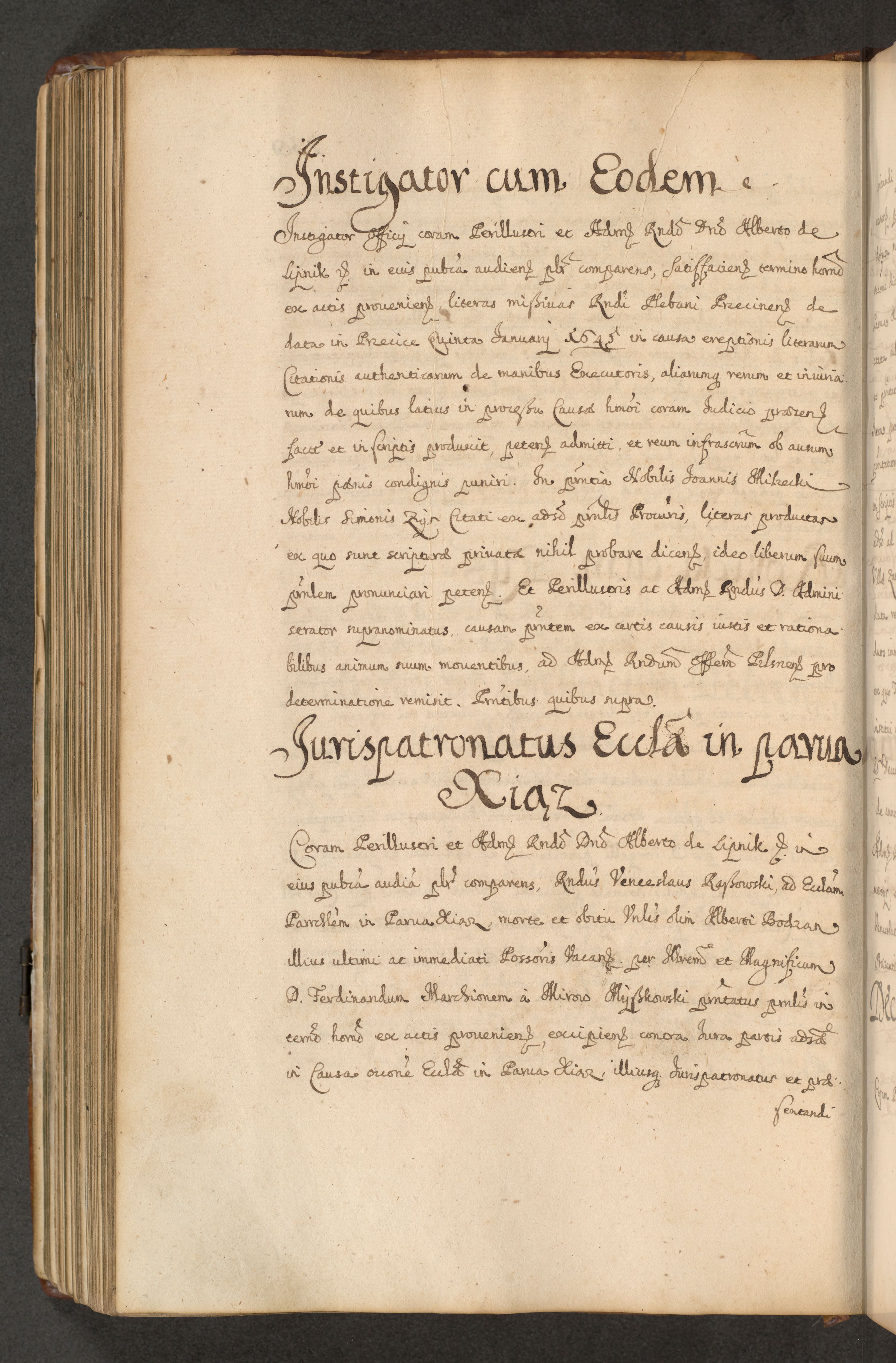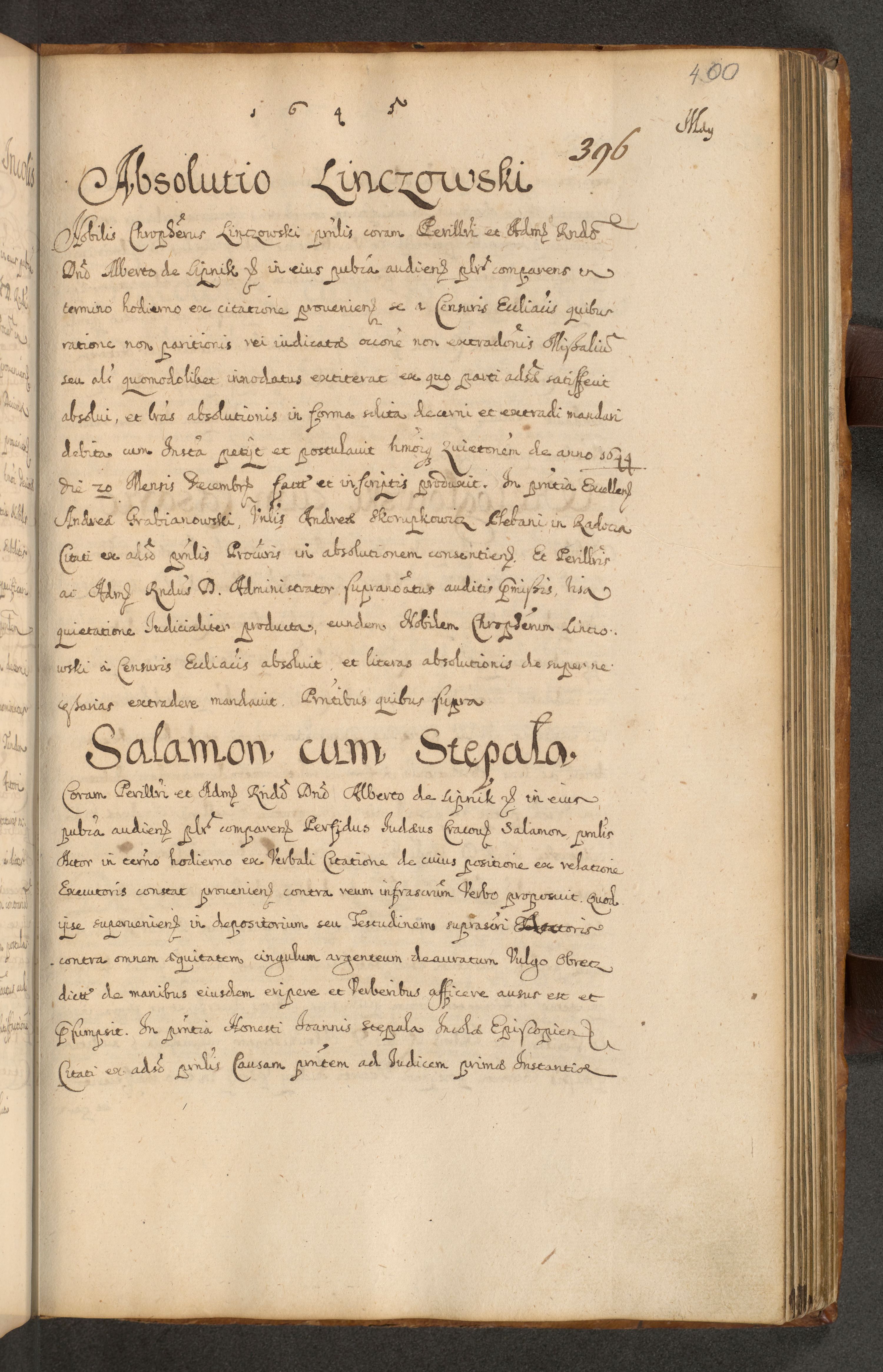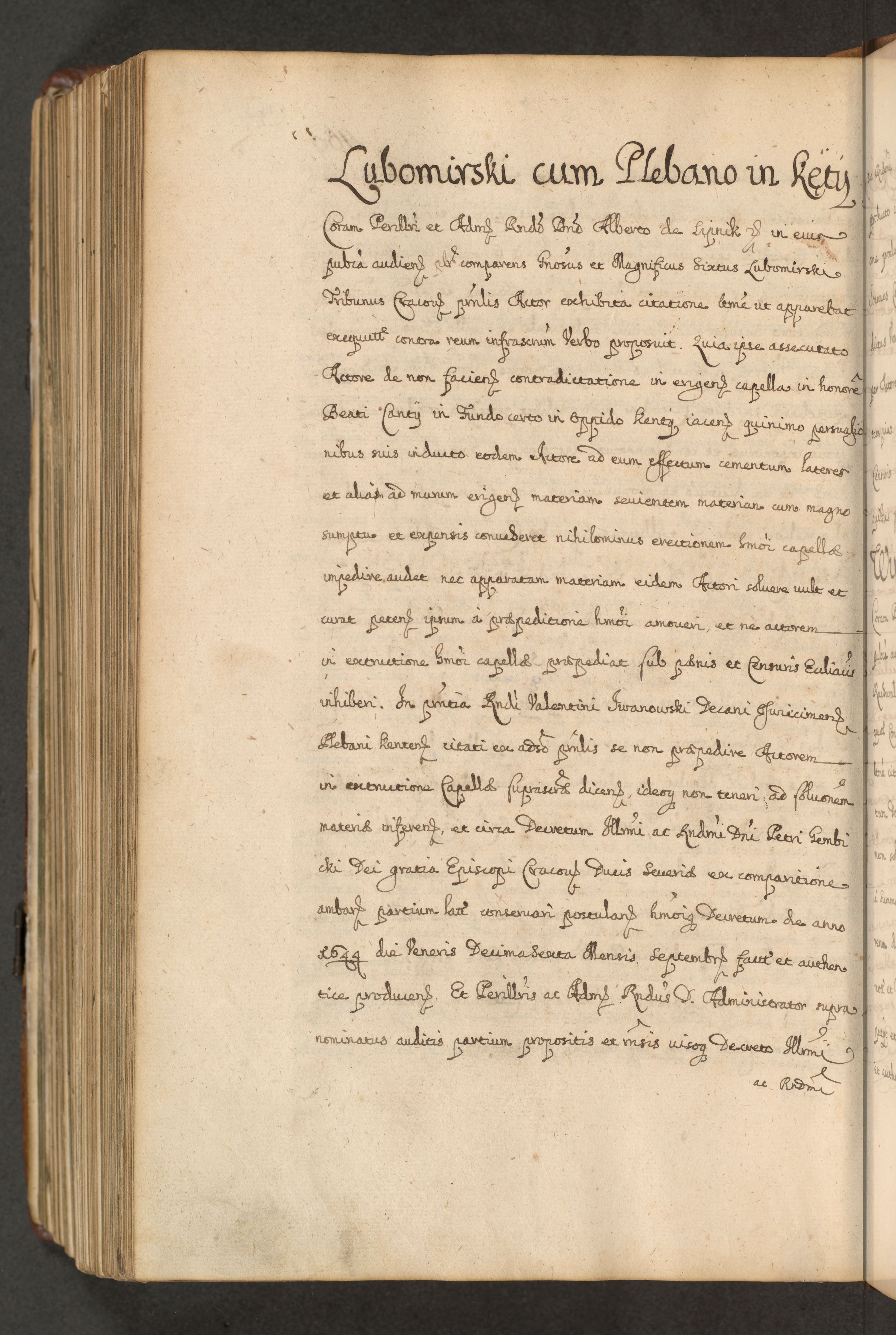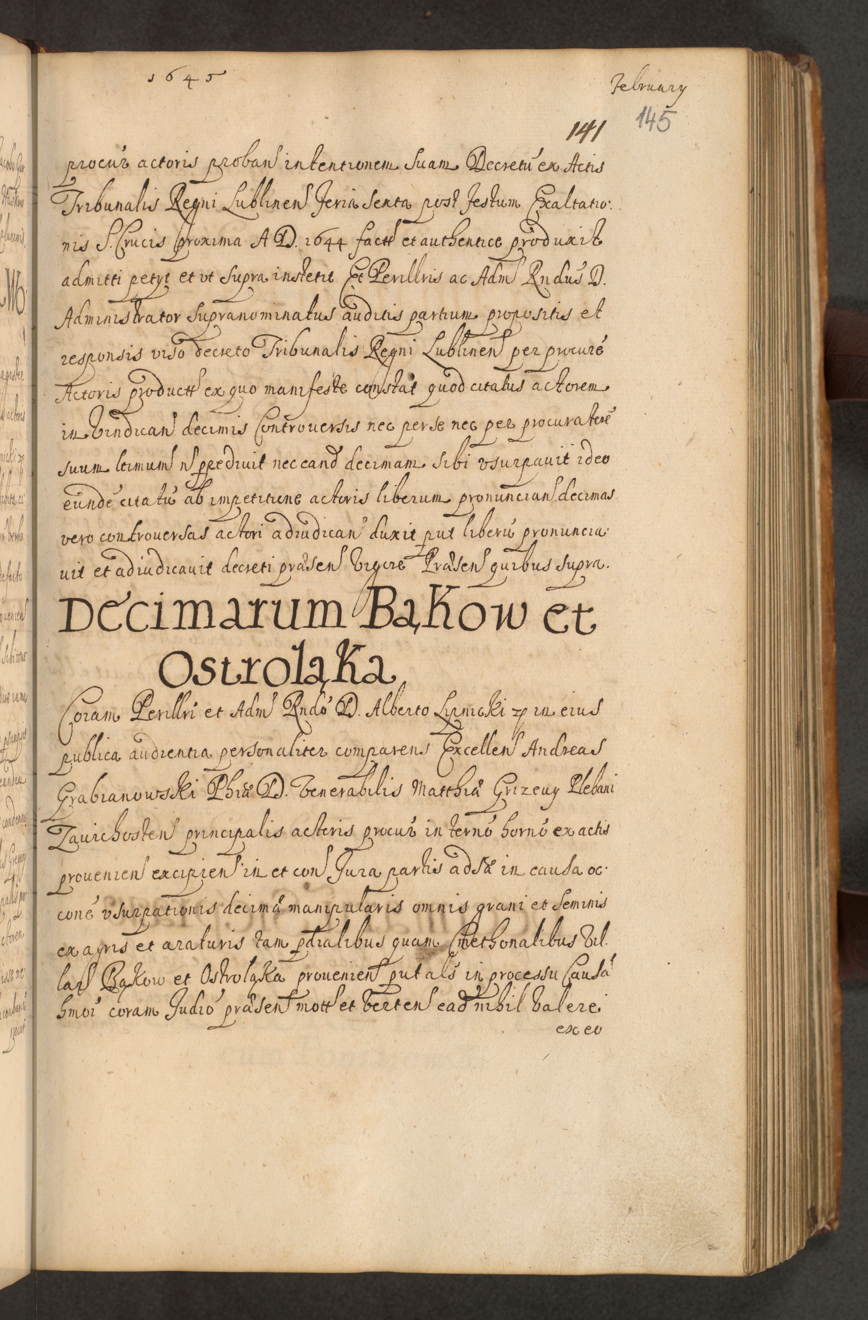 Volumen II actorum episcopalium R. D. Petri Gembicki, episcopi Cracoviensis, locum tenente in dioecesi R. D. Alberto Lipnicki, canonico Cracoviensi post discessum R. D. Episcopi in Italiam et usque ad redditum eiusdem in Poloniam, videlicet a die 16 Novembris 1644 et per a. D. 1645 inchoative ad Septembrem. Horum videatur index ad finem huius voluminis