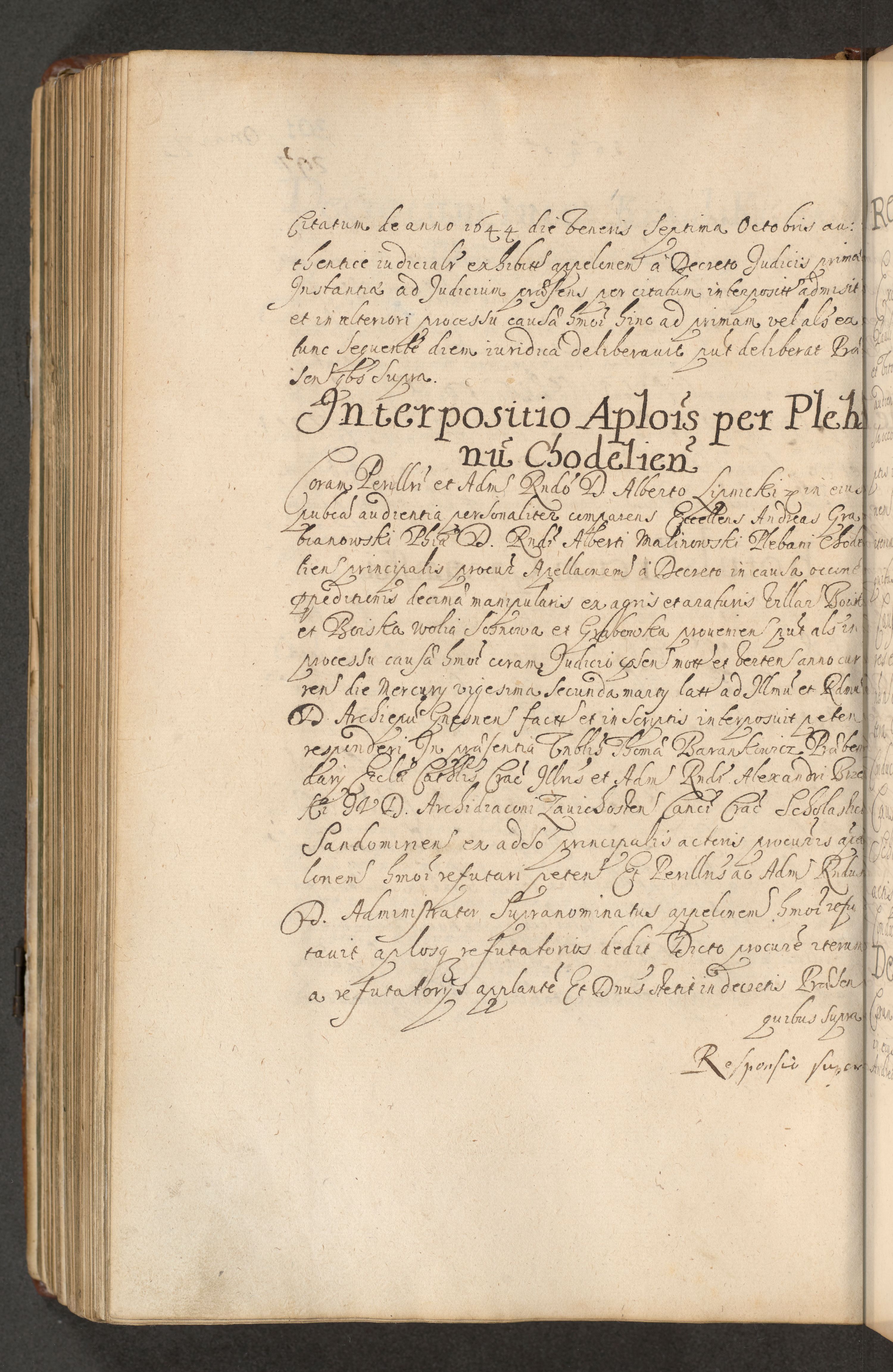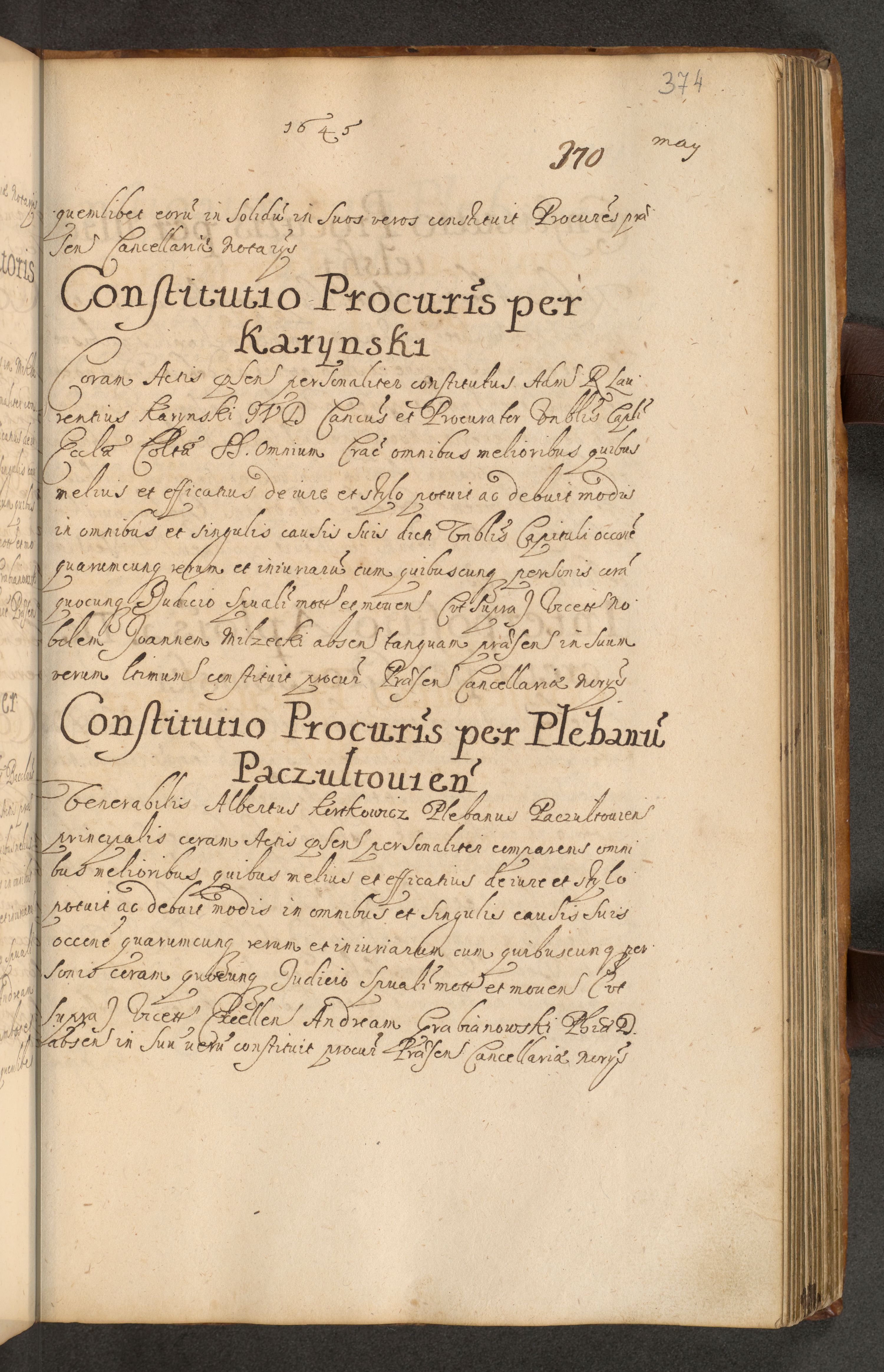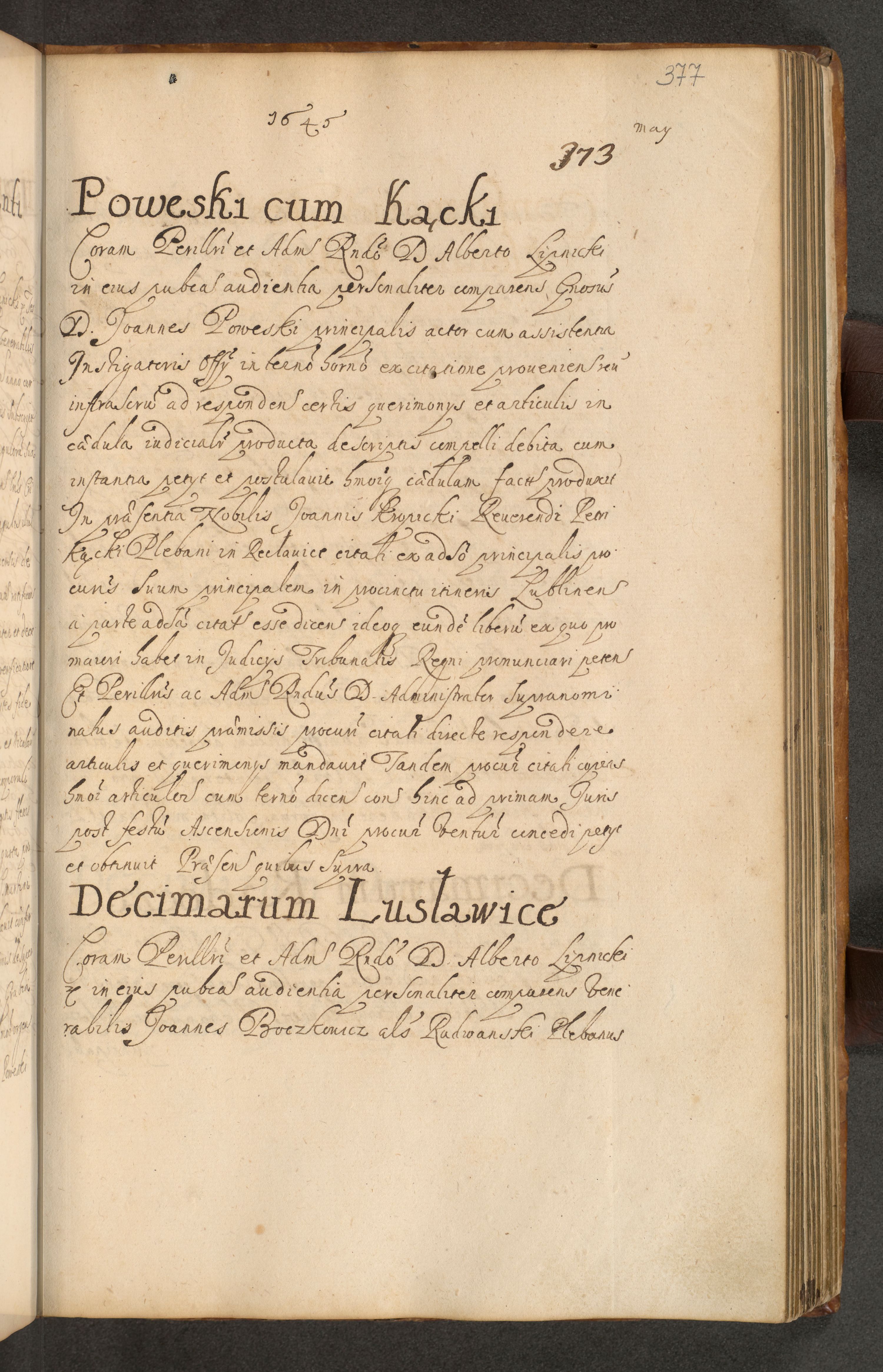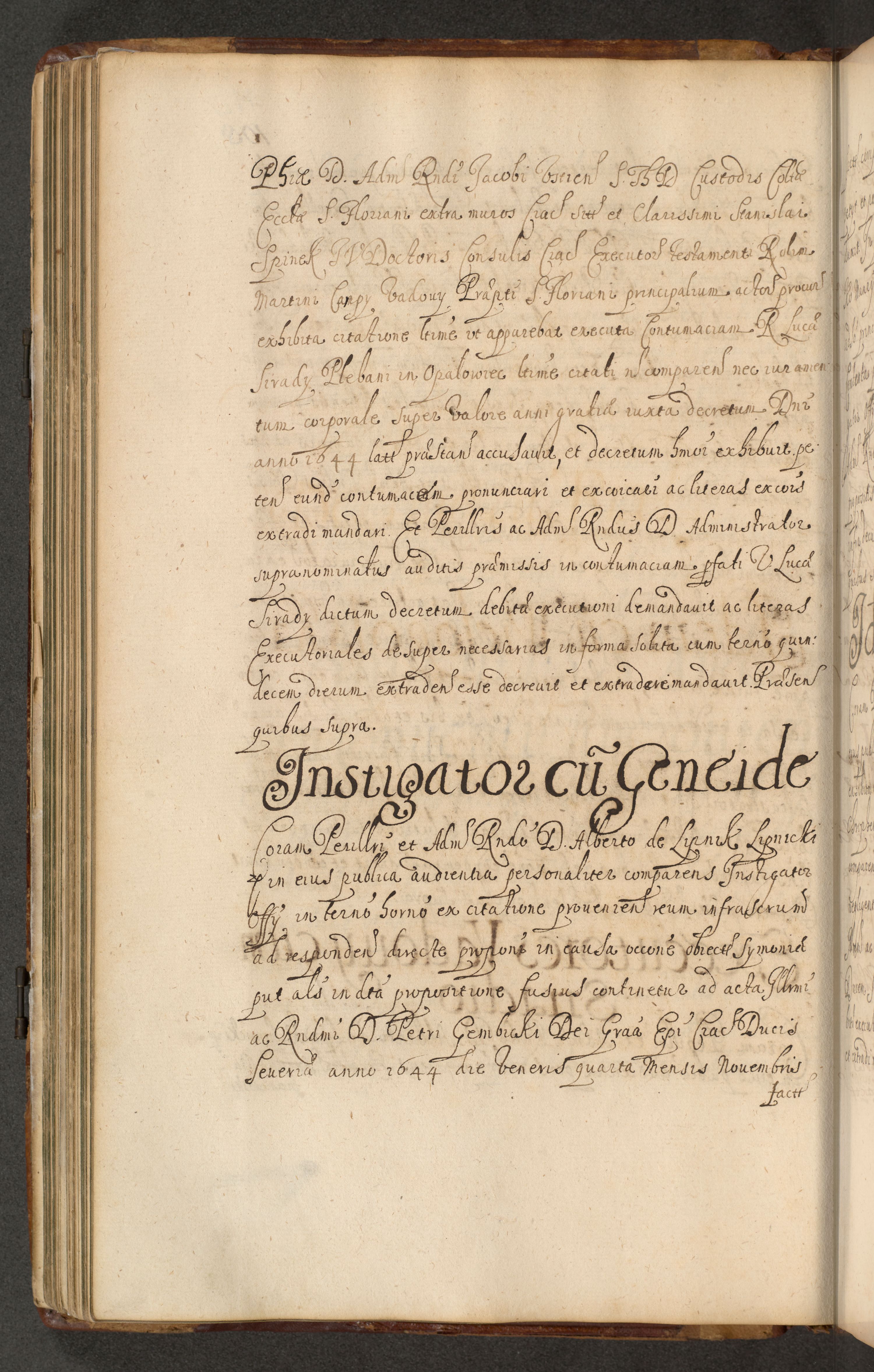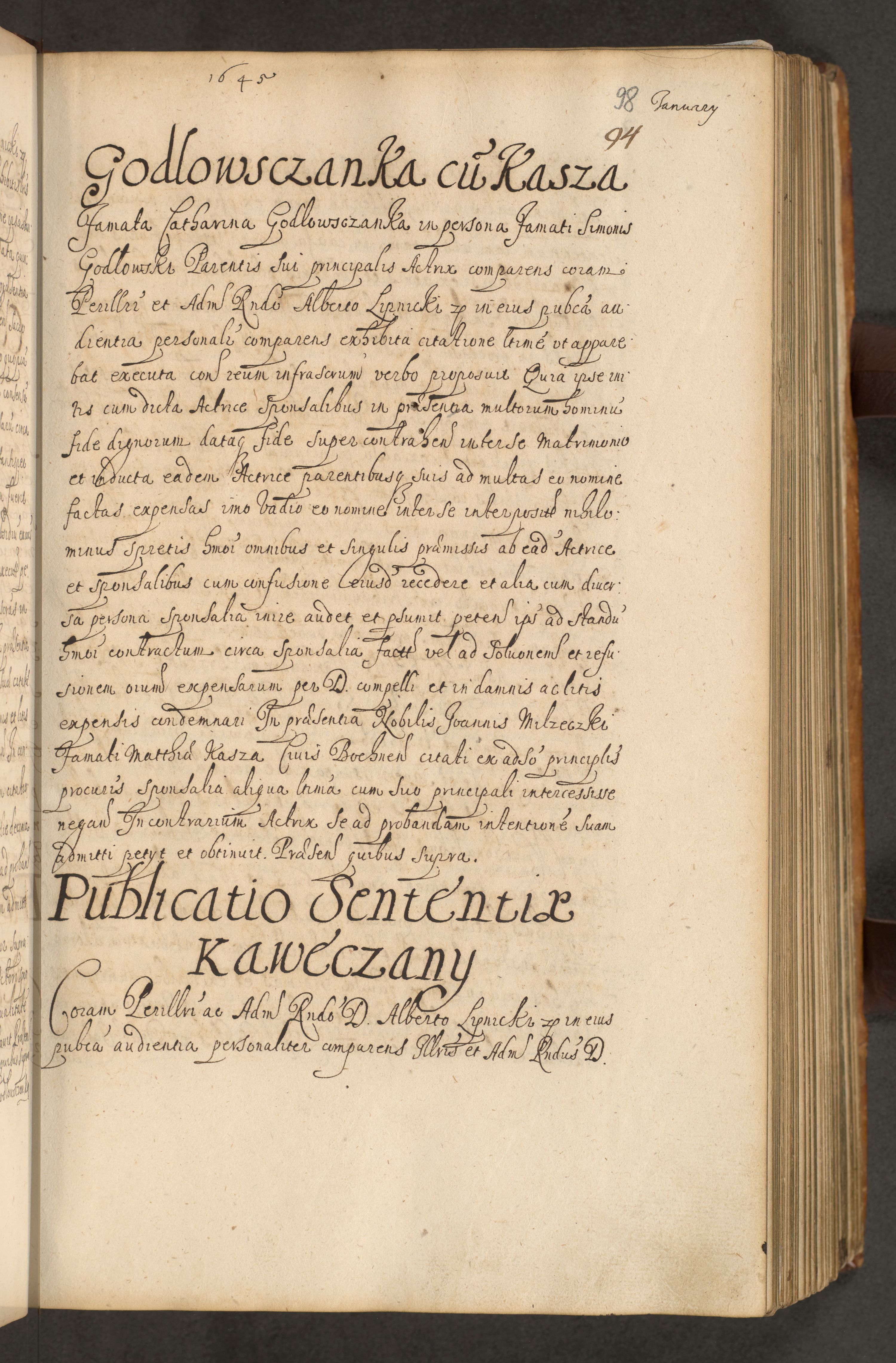 Volumen II actorum episcopalium R. D. Petri Gembicki, episcopi Cracoviensis, locum tenente in dioecesi R. D. Alberto Lipnicki, canonico Cracoviensi post discessum R. D. Episcopi in Italiam et usque ad redditum eiusdem in Poloniam, videlicet a die 16 Novembris 1644 et per a. D. 1645 inchoative ad Septembrem. Horum videatur index ad finem huius voluminis