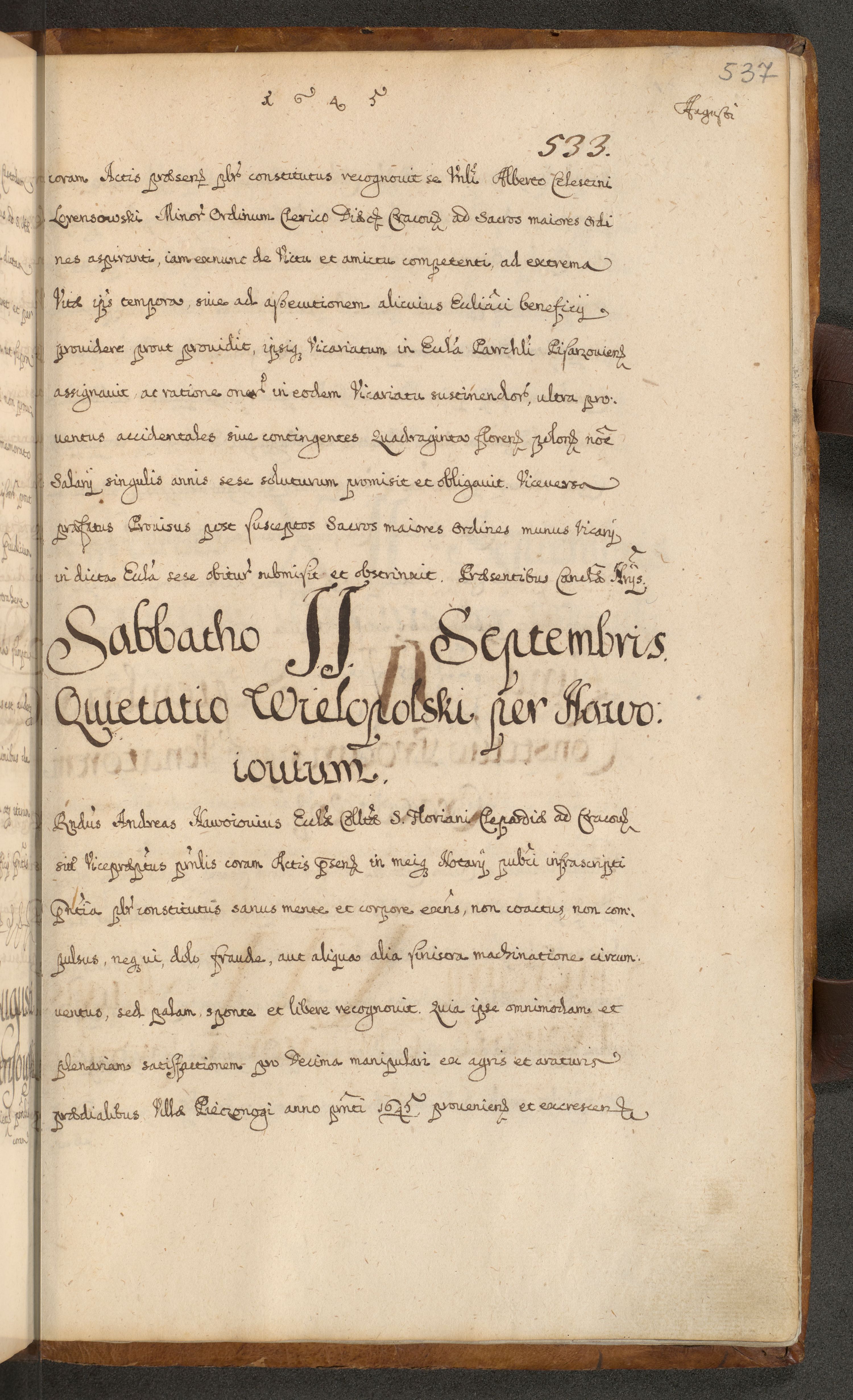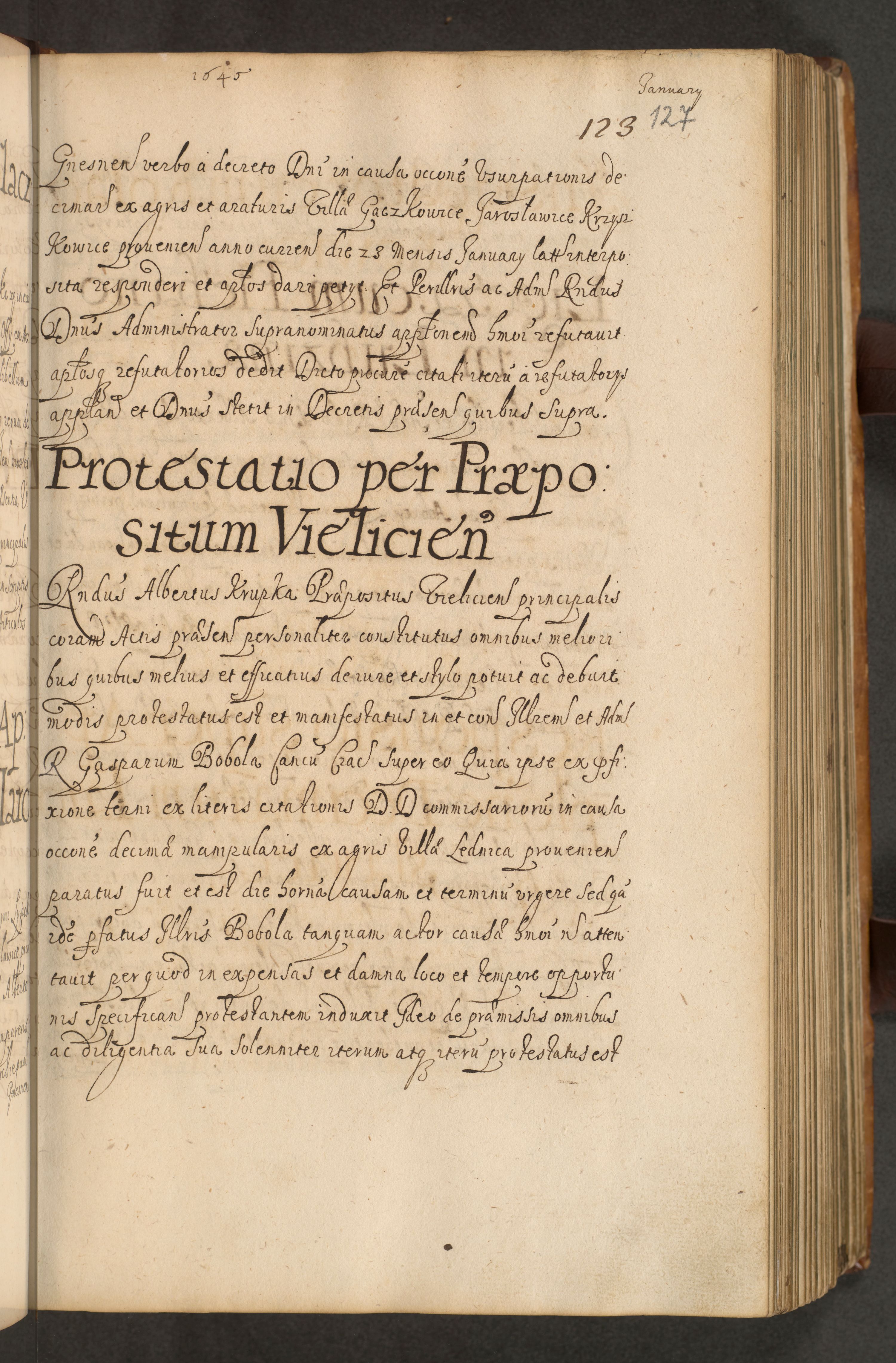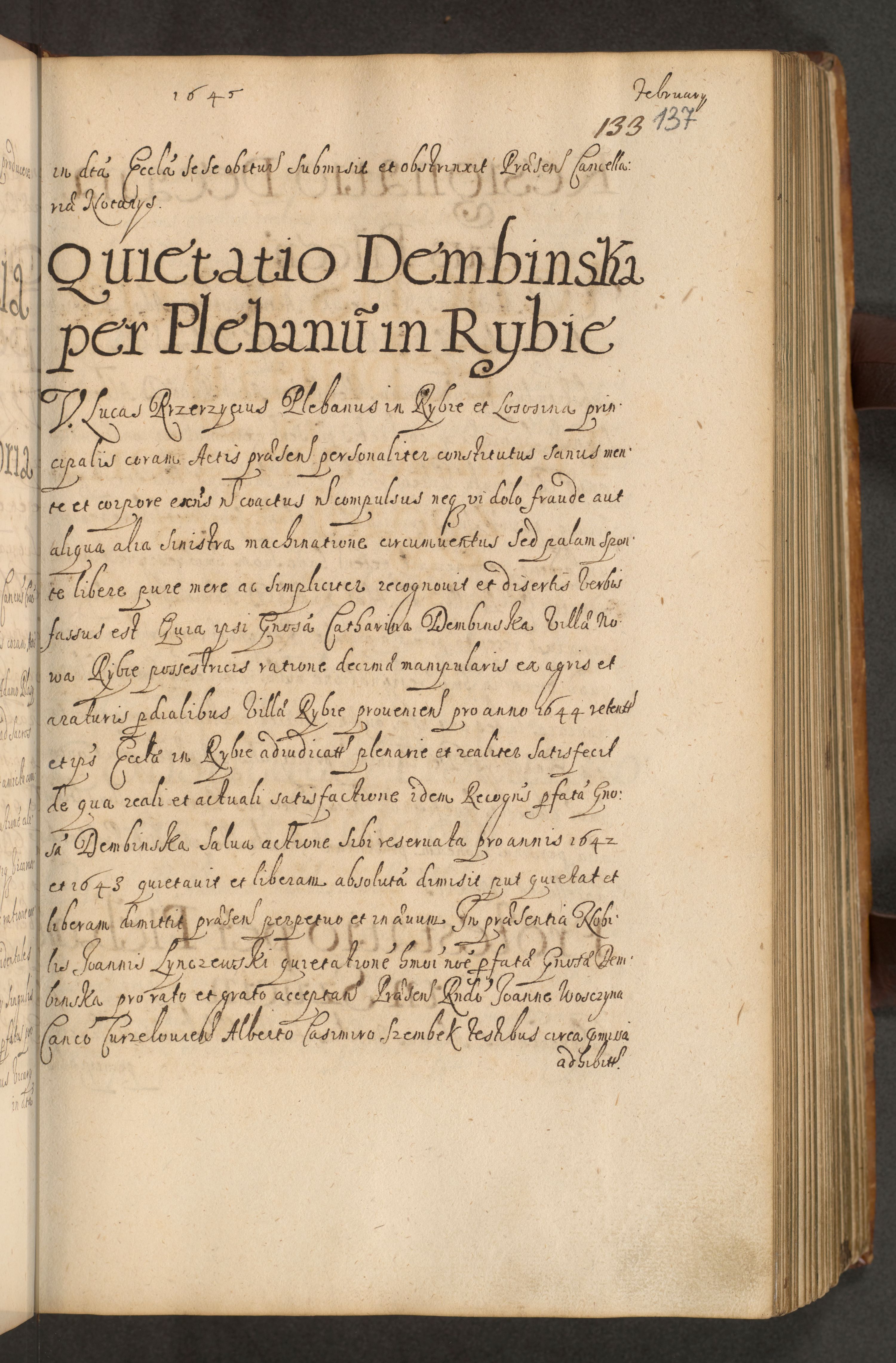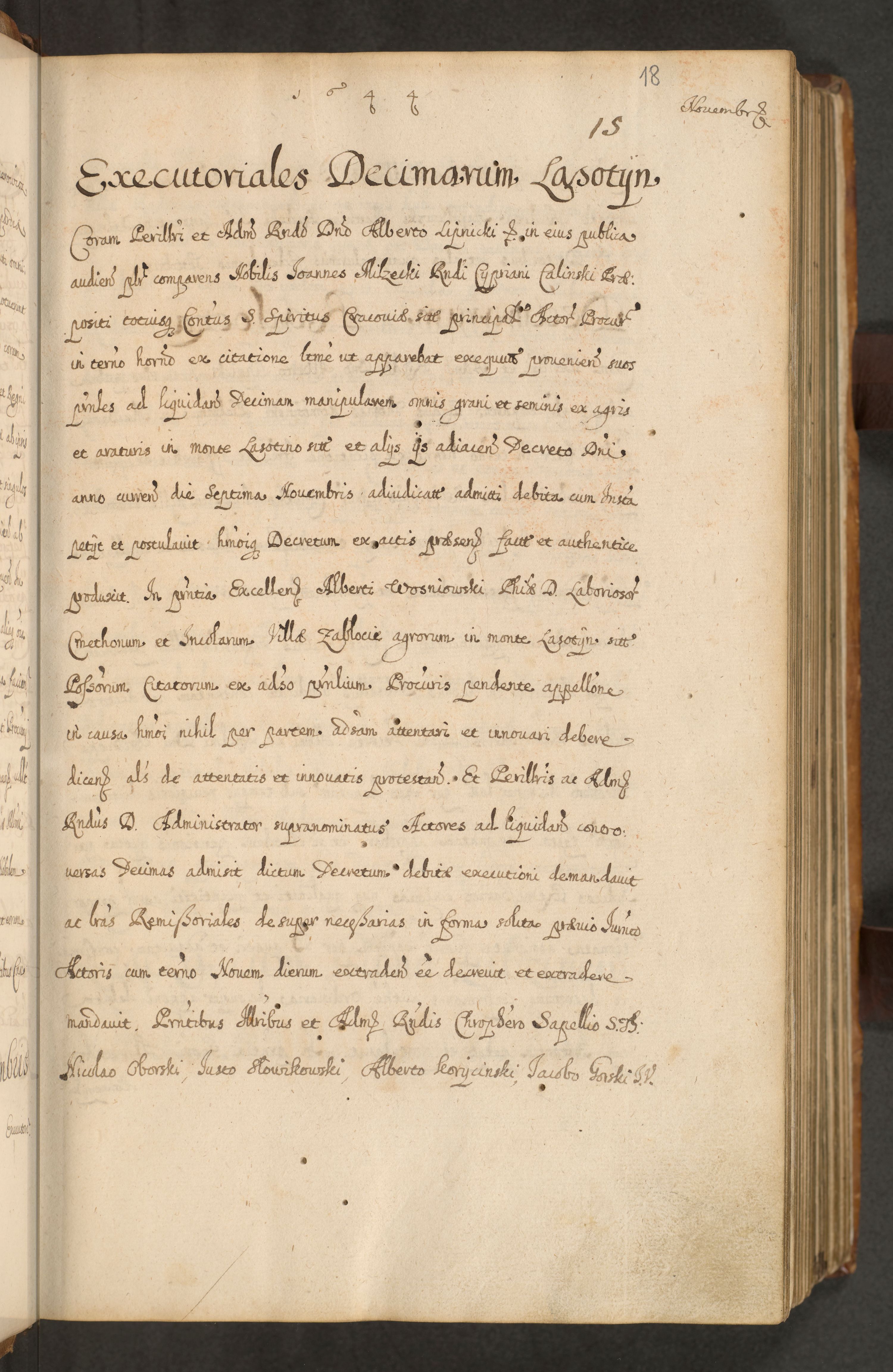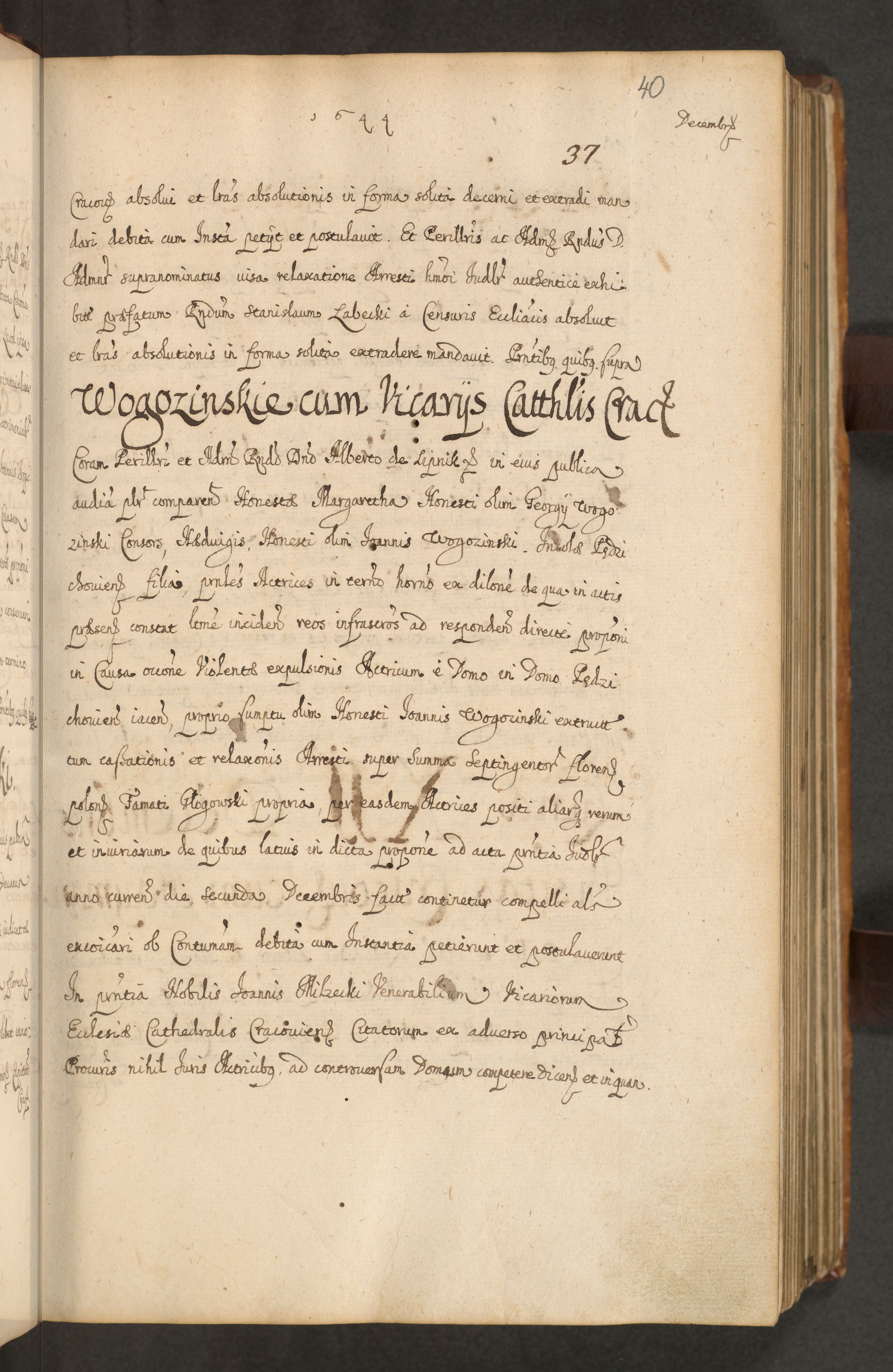 Volumen II actorum episcopalium R. D. Petri Gembicki, episcopi Cracoviensis, locum tenente in dioecesi R. D. Alberto Lipnicki, canonico Cracoviensi post discessum R. D. Episcopi in Italiam et usque ad redditum eiusdem in Poloniam, videlicet a die 16 Novembris 1644 et per a. D. 1645 inchoative ad Septembrem. Horum videatur index ad finem huius voluminis
