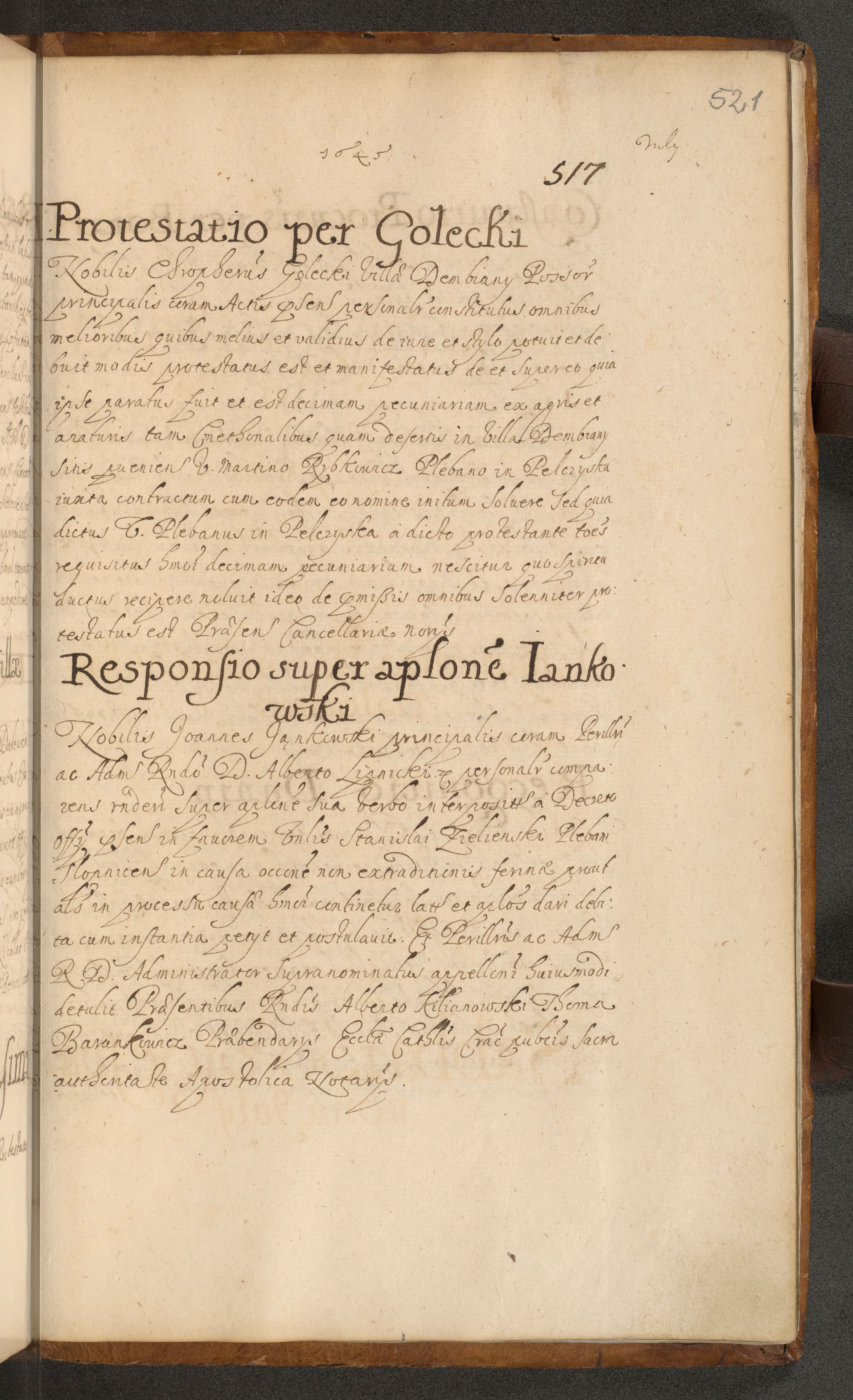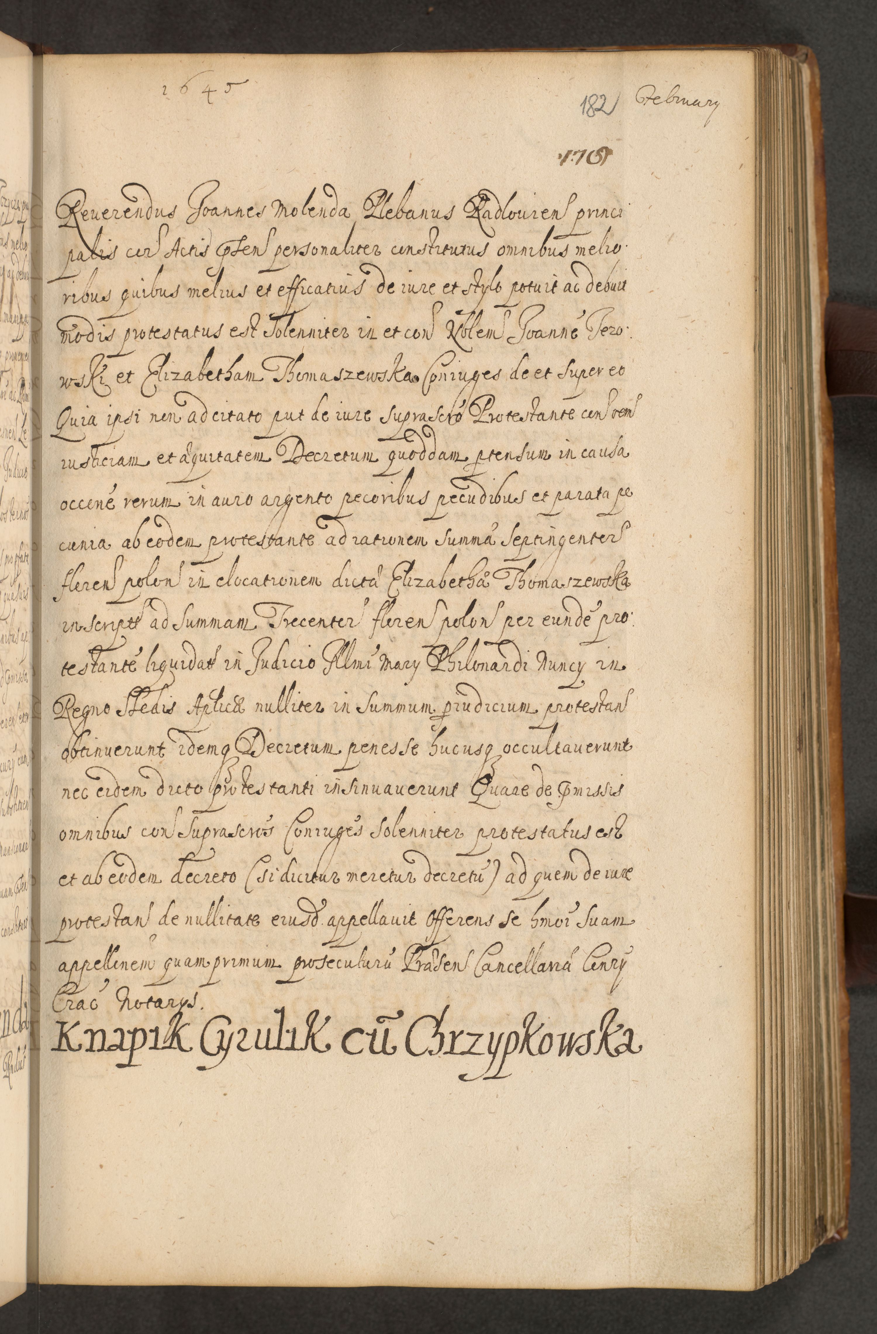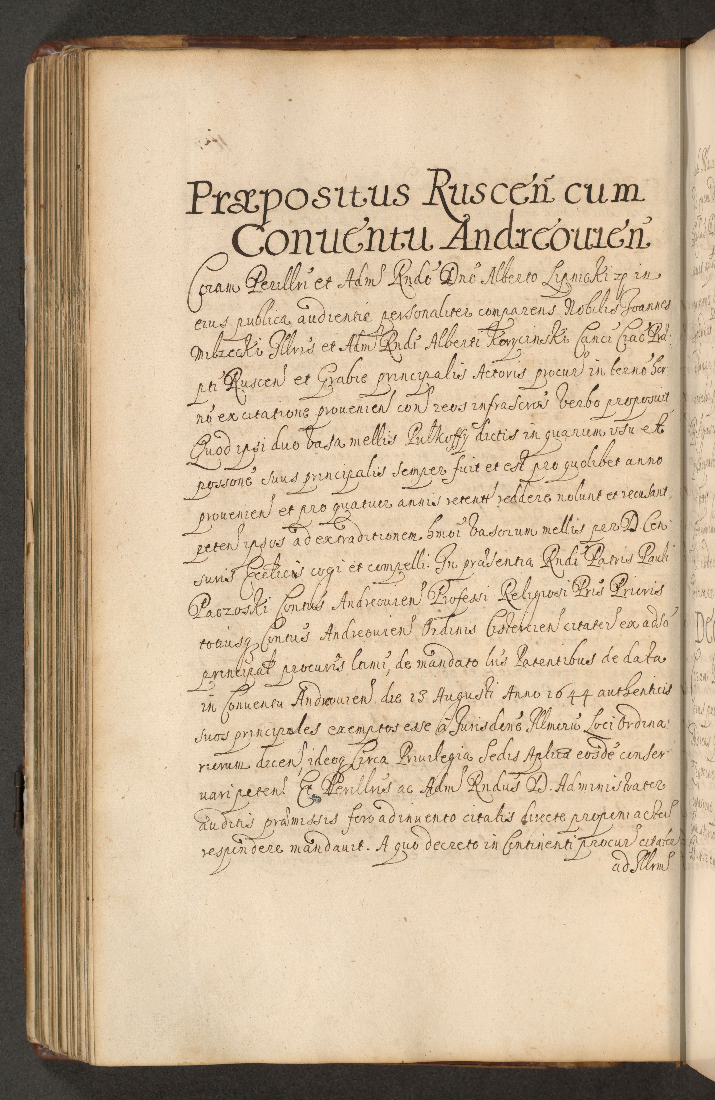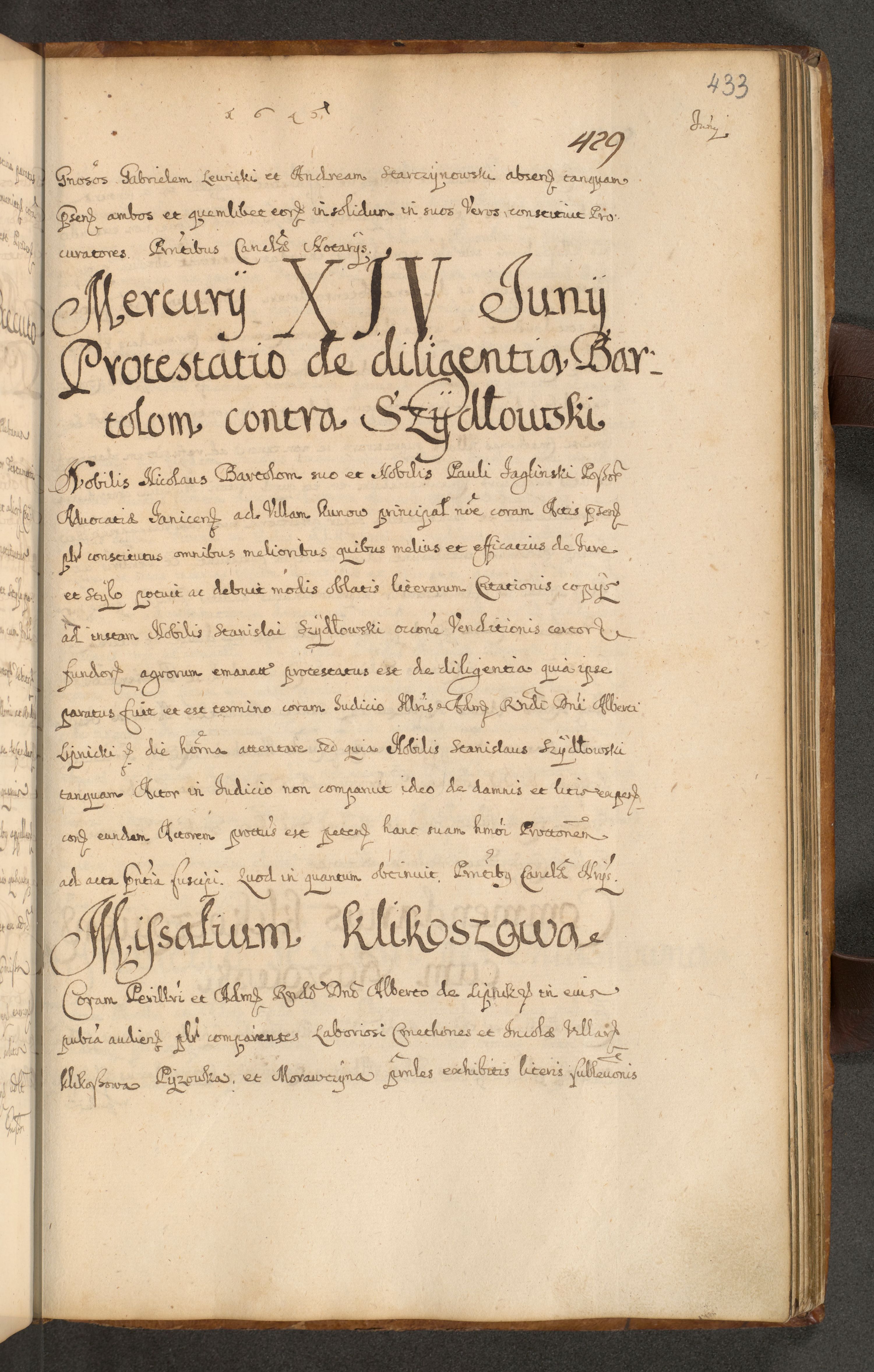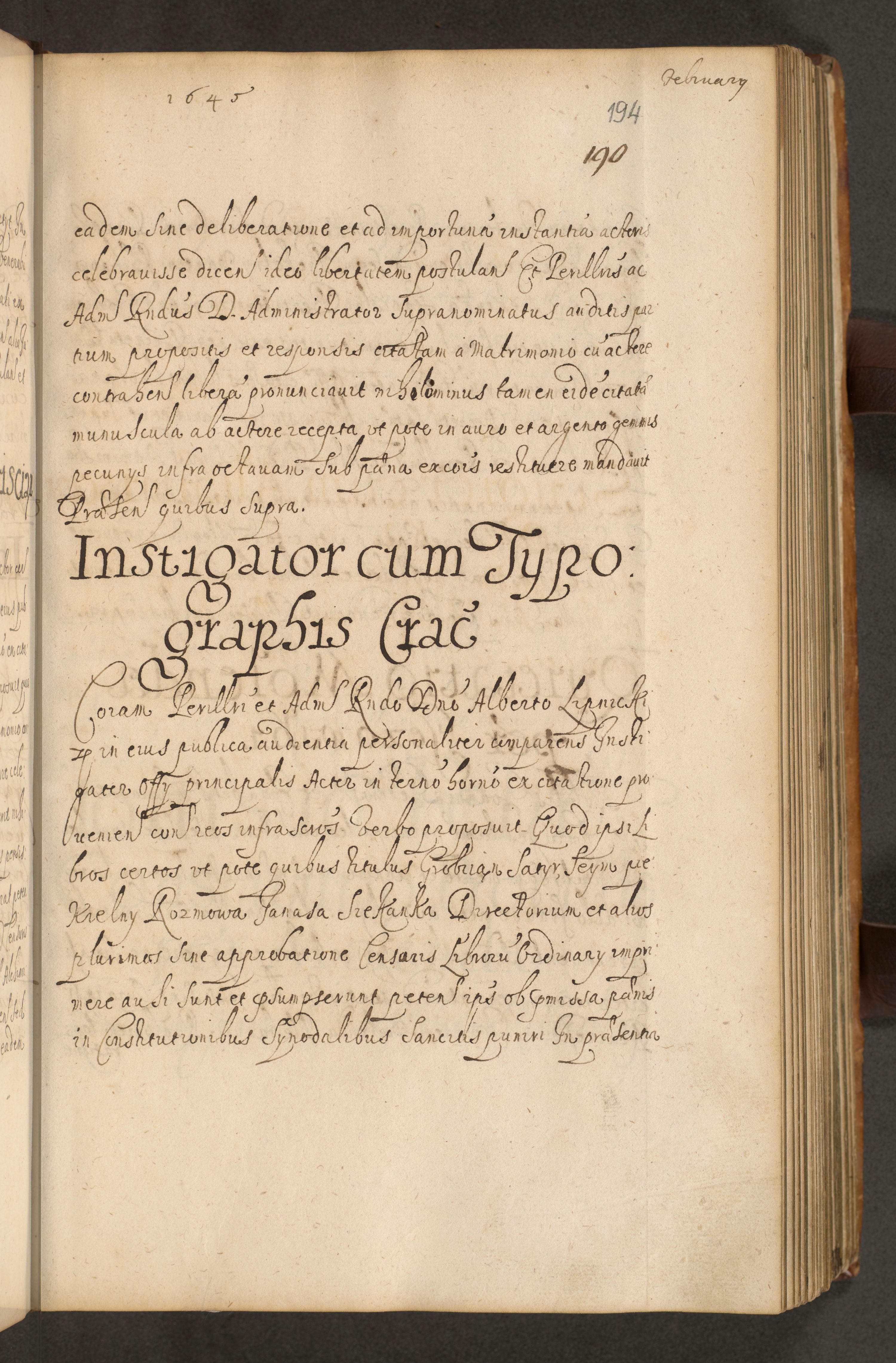 Volumen II actorum episcopalium R. D. Petri Gembicki, episcopi Cracoviensis, locum tenente in dioecesi R. D. Alberto Lipnicki, canonico Cracoviensi post discessum R. D. Episcopi in Italiam et usque ad redditum eiusdem in Poloniam, videlicet a die 16 Novembris 1644 et per a. D. 1645 inchoative ad Septembrem. Horum videatur index ad finem huius voluminis