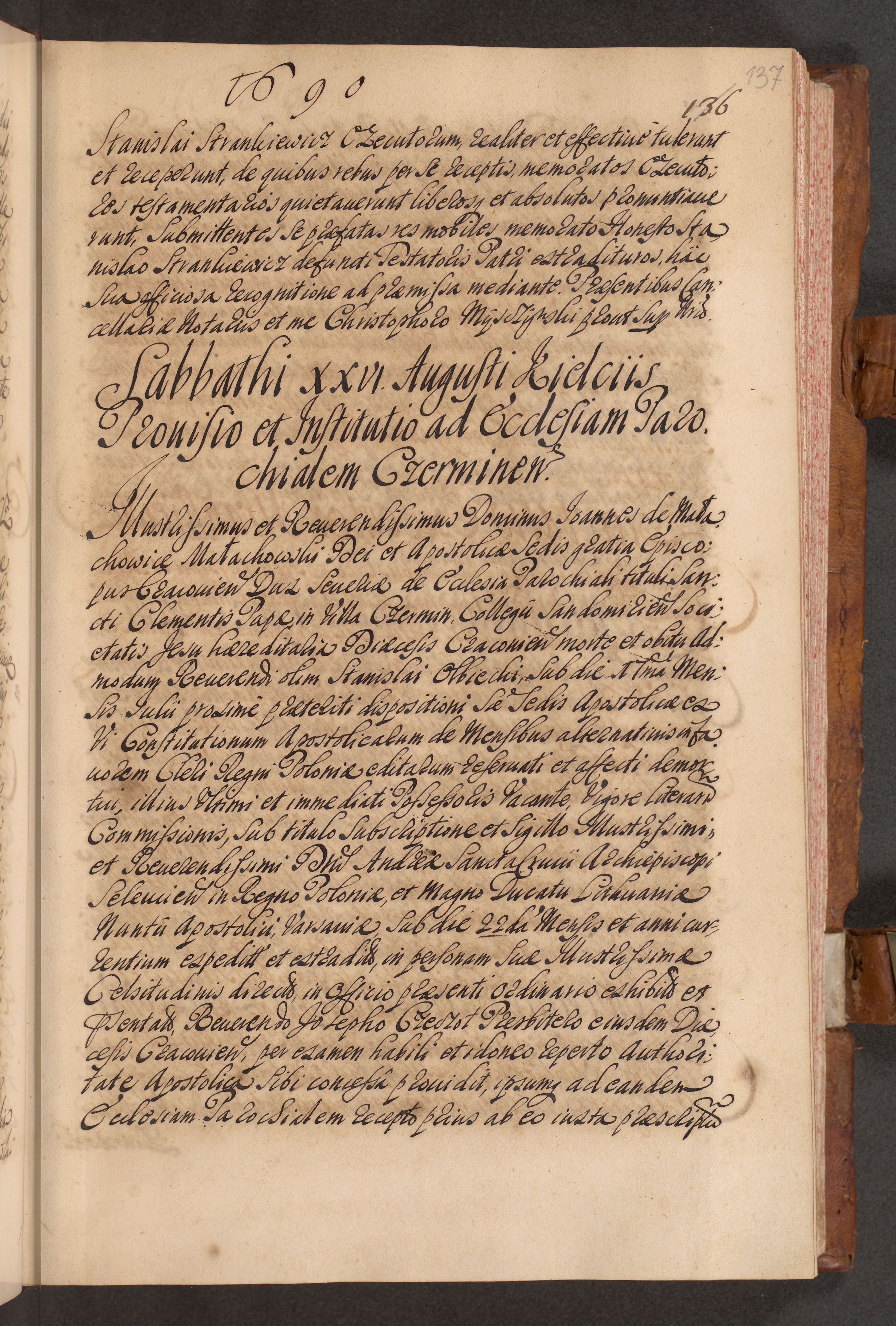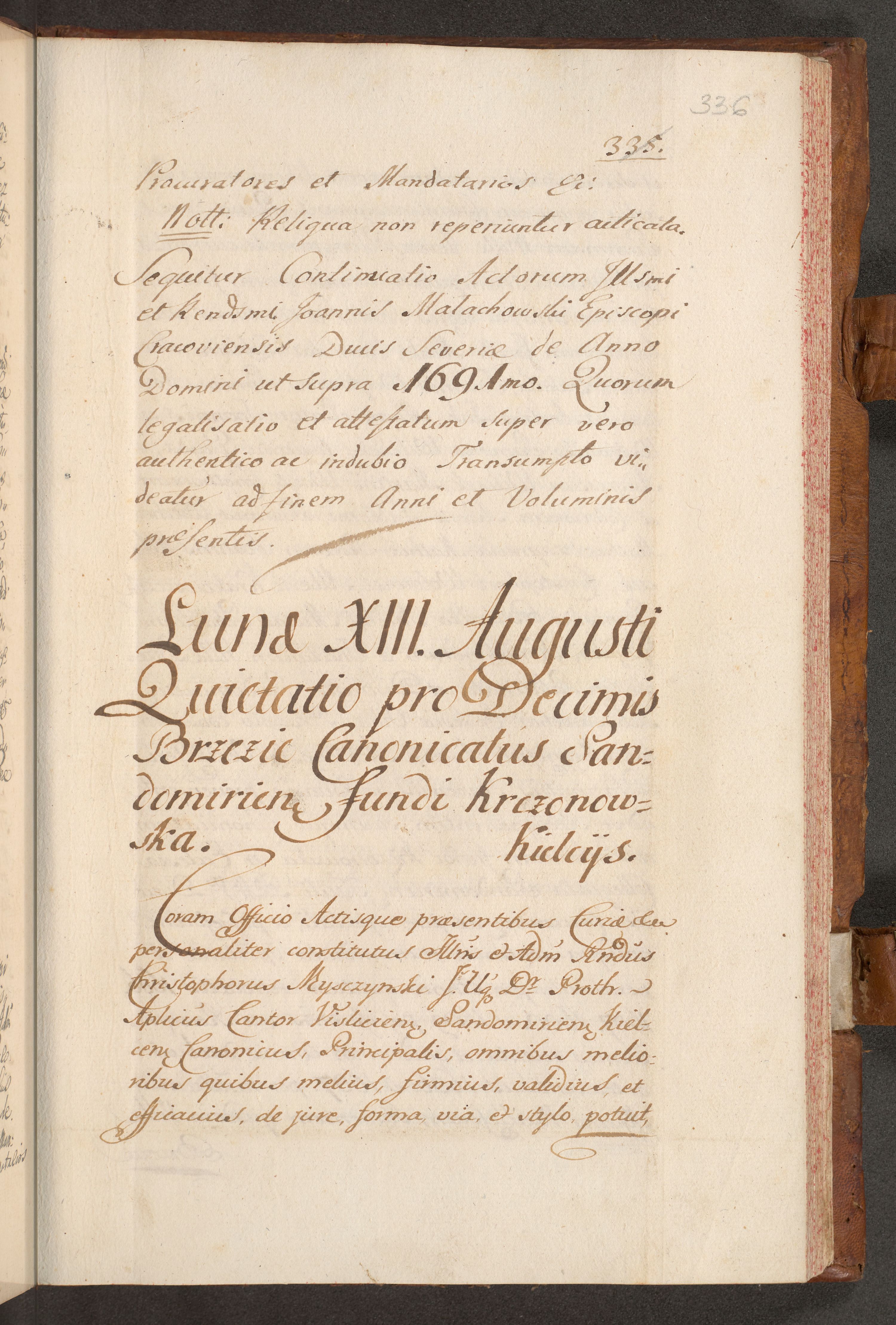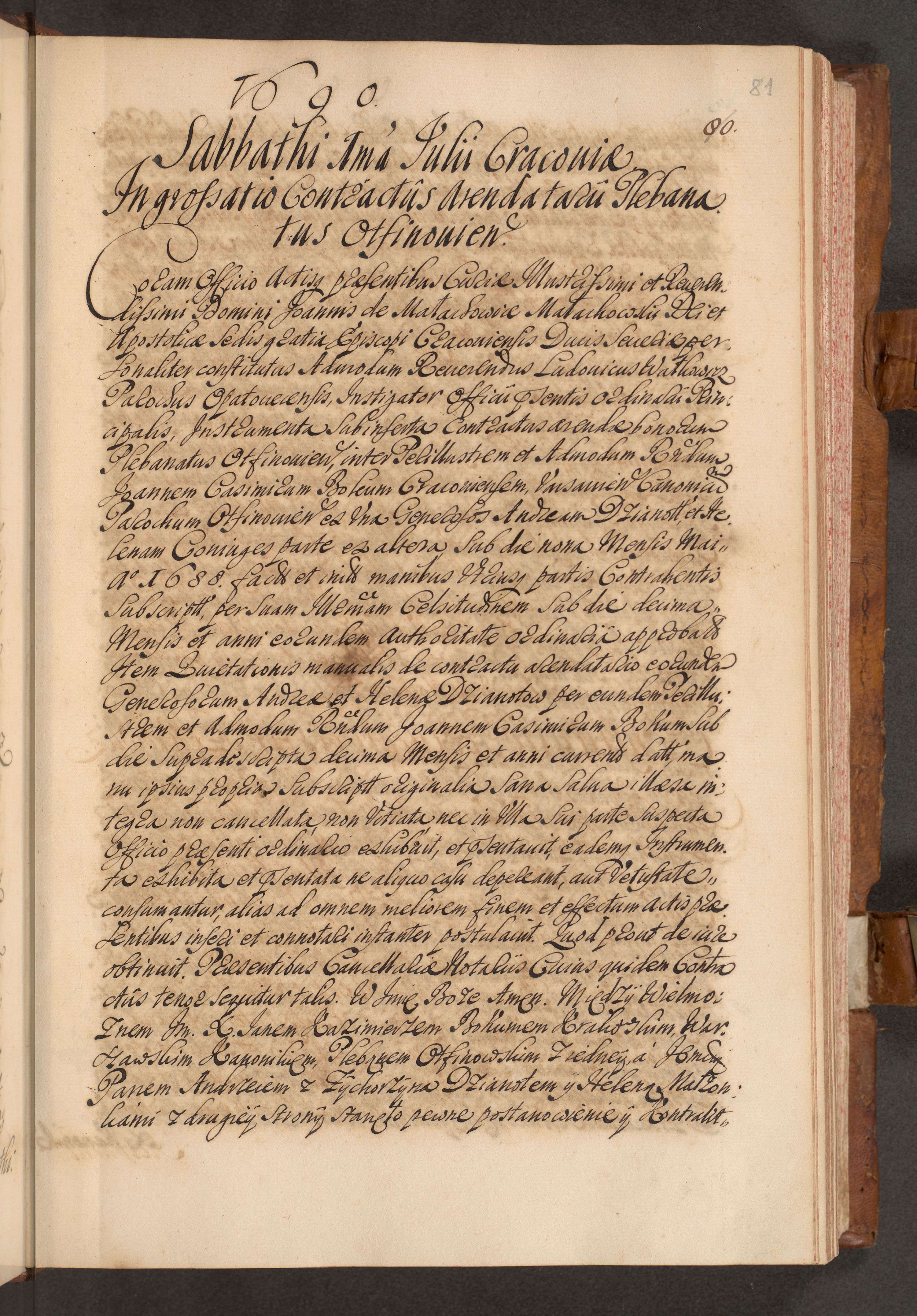 Volumen V actorum episcopalium R. D. Joannis Małachowski, episcopi Cracoviensis, ducis Severiae per annos 1690 et 1691 acticatorum, quorum index ad finem praesentis voluminis exhibetur adnotatus